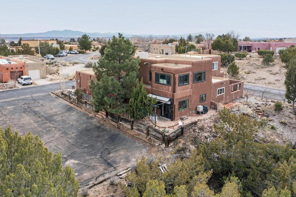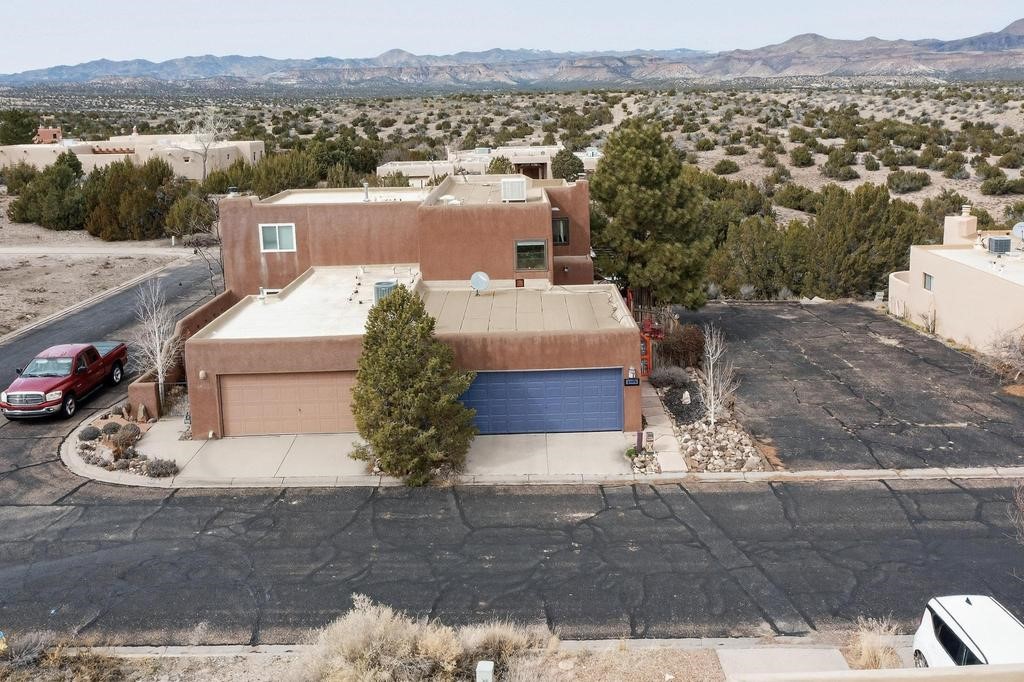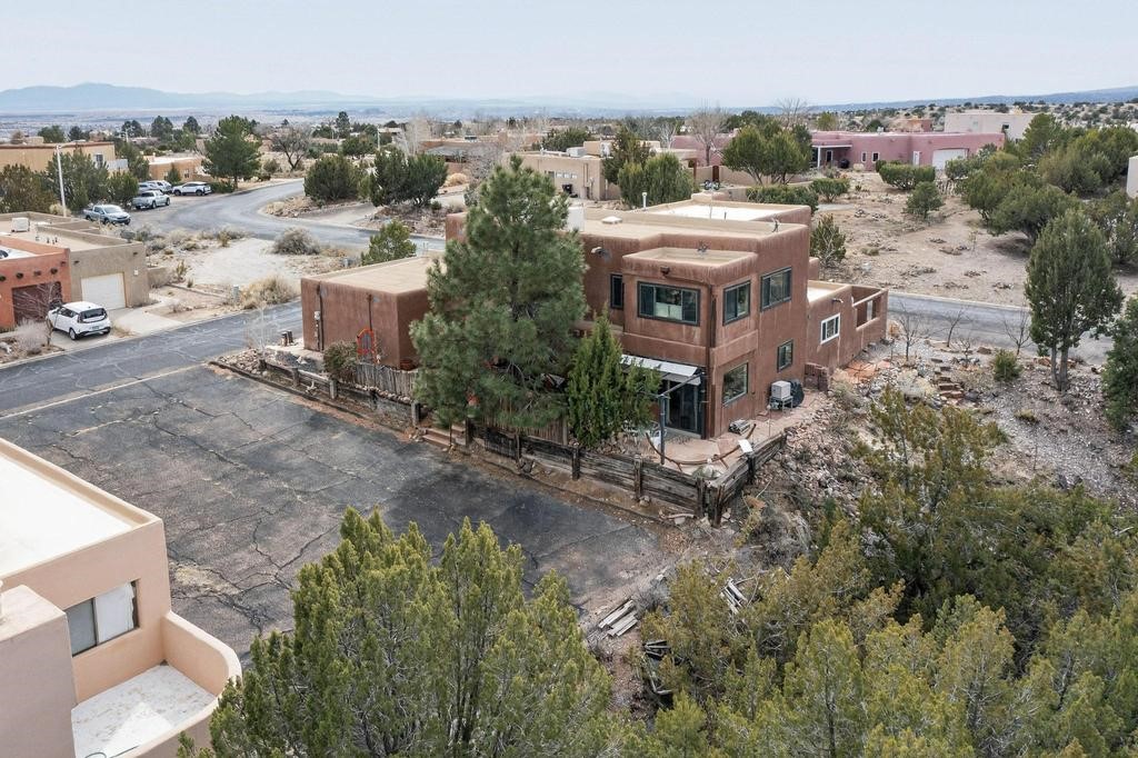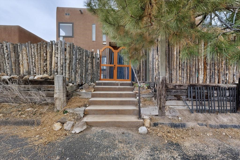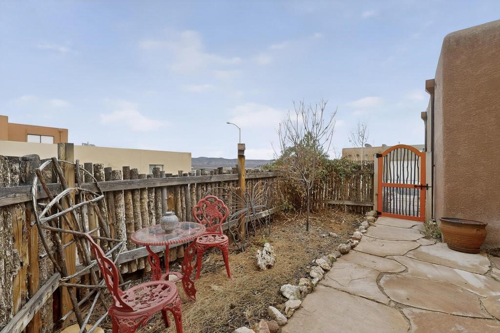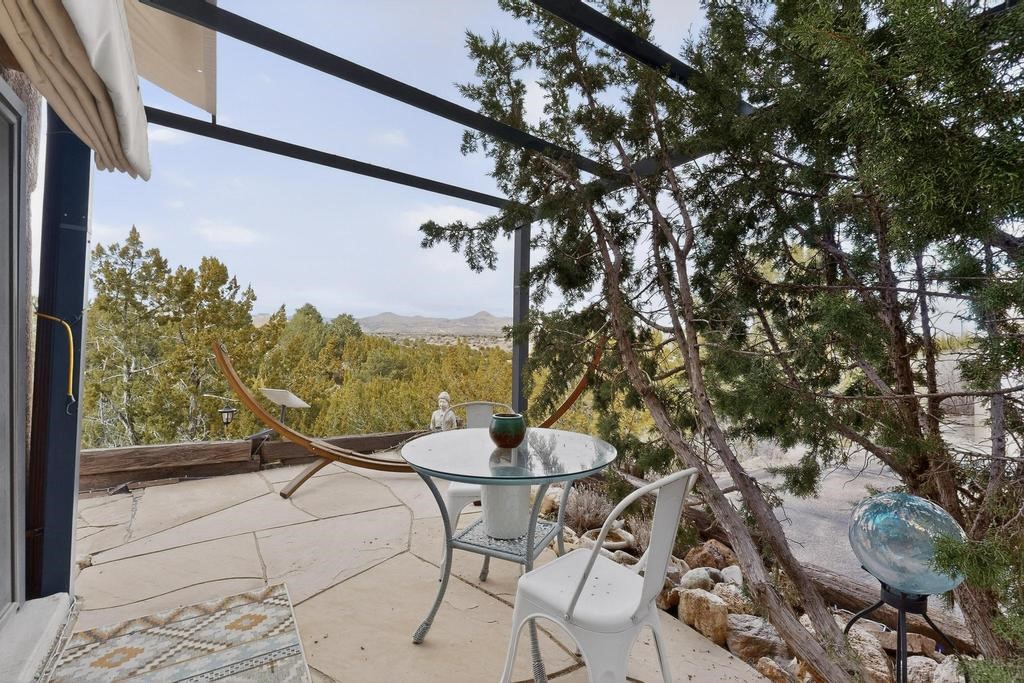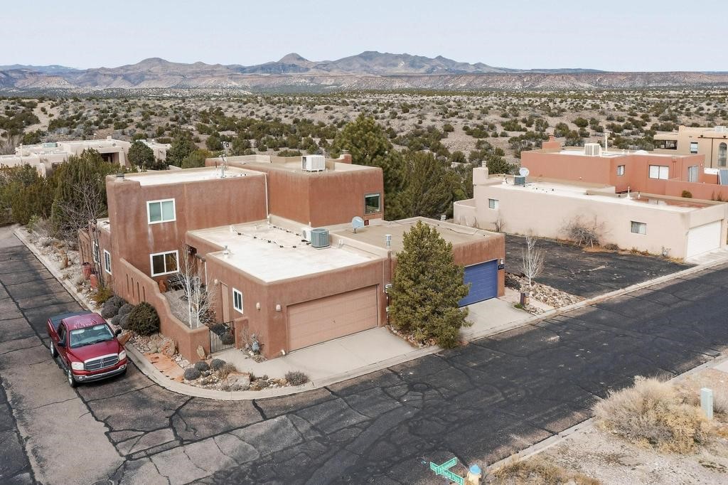 Welcome to a peaceful oasis with incredible views! This updated 2 bedroom, 2 bathroom townhome is full of light & character. A kiva fireplace warms the living space where you can still talk to folks in the kitchen, and enjoy the outdoor views. Downstairs you'll find 1 bedroom & bathroom, and when you go upstairs, notice the nichos along the wall for art. Off of the main bedroom upstairs is a bonus room that the seller is currently using as an art studio. Its could be so many things and with views like that, who wouldn't want to spend time in there?! The laundry is also upstairs along with a bathroom suite. There is plenty of storage with closets, an attached garage & a big storage room. Enjoy nature & sunsets on the flagstone patio w/ retractable awning. Located between Santa Fe & ABQ.