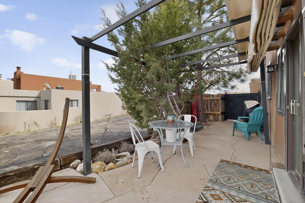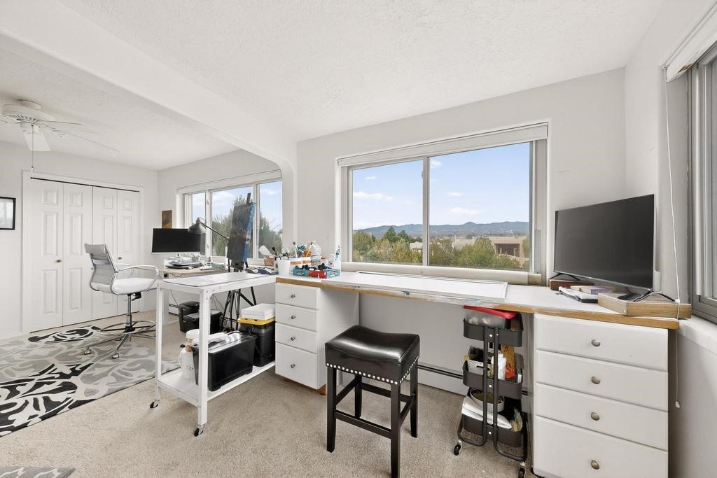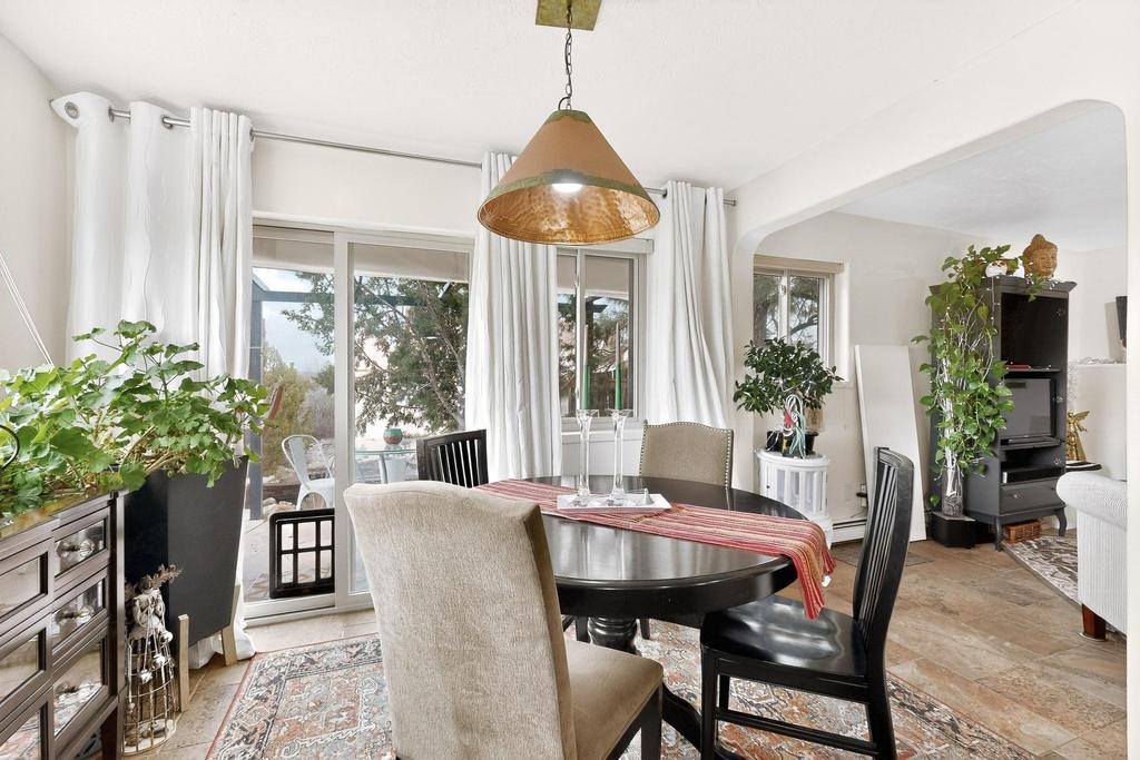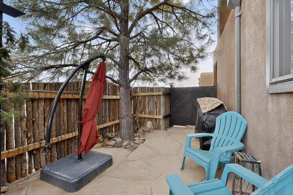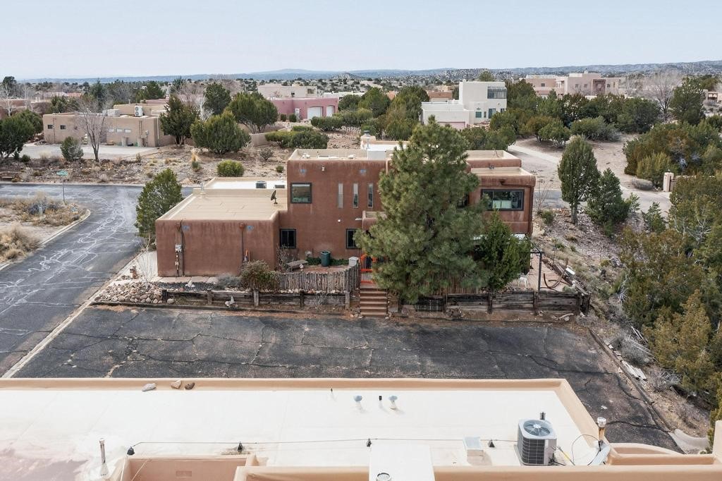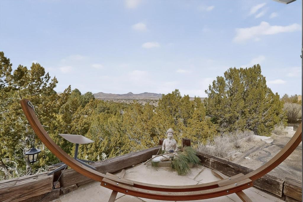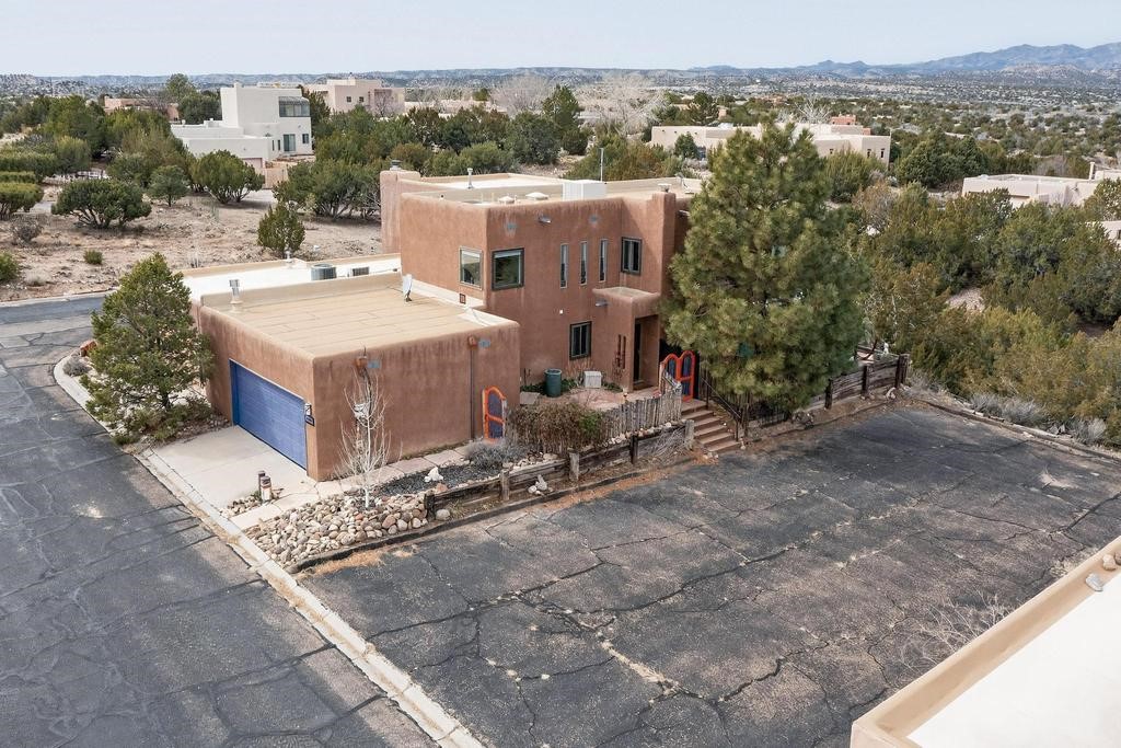 Welcome to a peaceful oasis with incredible views! This updated 2 bedroom, 2 bathroom townhome is full of light & character. A kiva fireplace warms the living space where you can still talk to folks in the kitchen, and enjoy the outdoor views. Downstairs you'll find 1 bedroom & bathroom, and when you go upstairs, notice the nichos along the wall for art. Off of the main bedroom upstairs is a bonus room that the seller is currently using as an art studio. Its could be so many things and with views like that, who wouldn't want to spend time in there?! The laundry is also upstairs along with a bathroom suite. There is plenty of storage with closets, an attached garage & a big storage room. Enjoy nature & sunsets on the flagstone patio w/ retractable awning. Located between Santa Fe & ABQ.