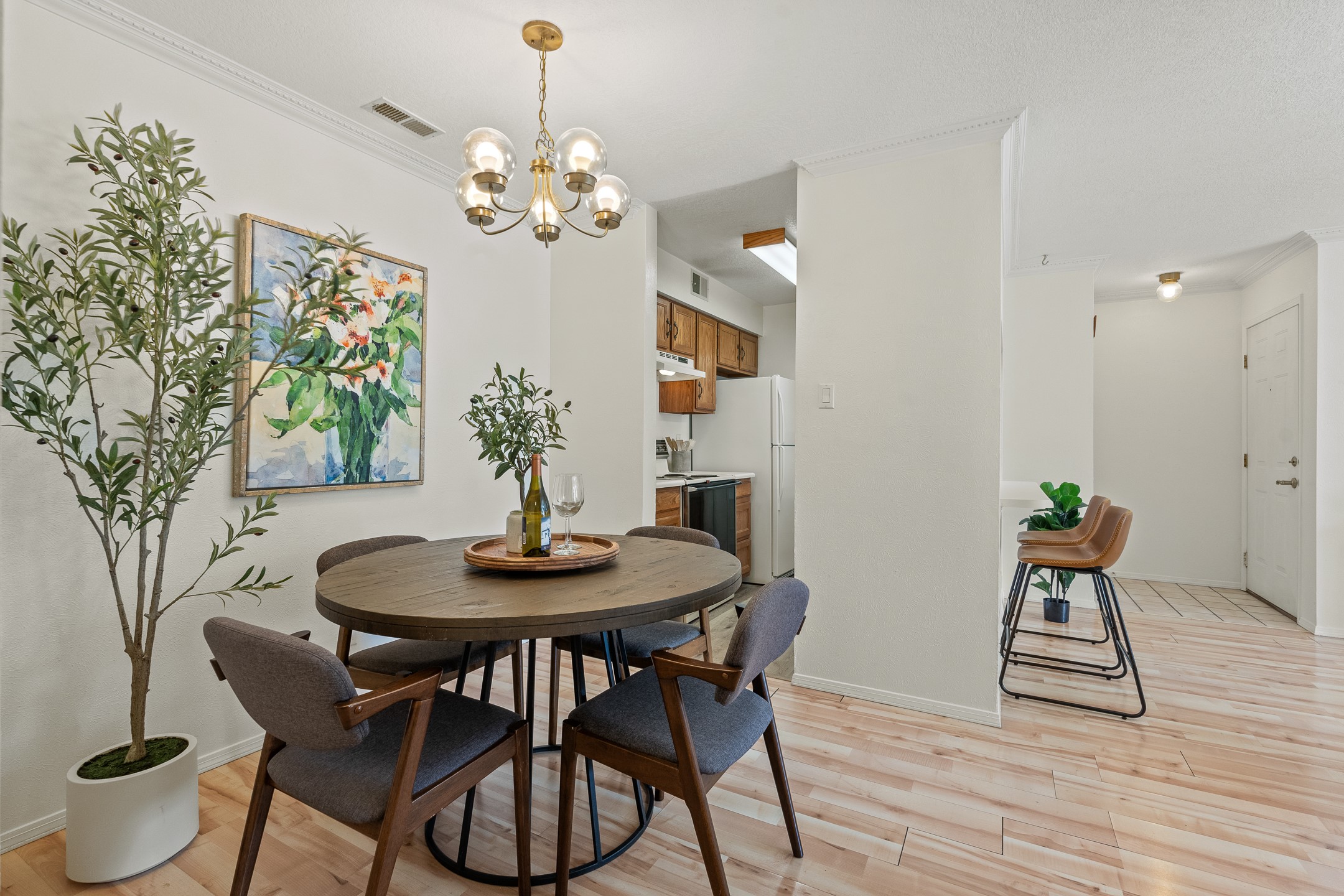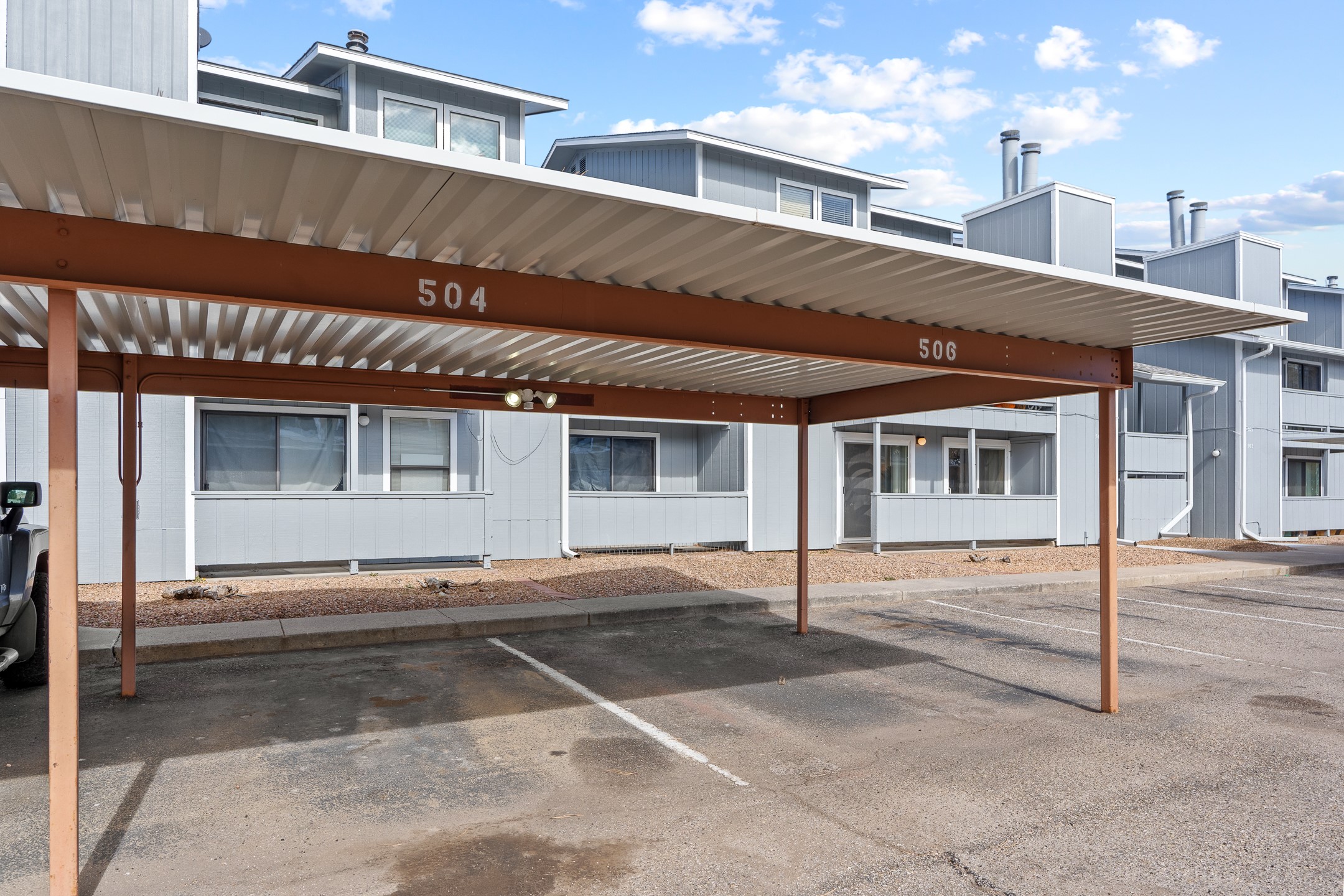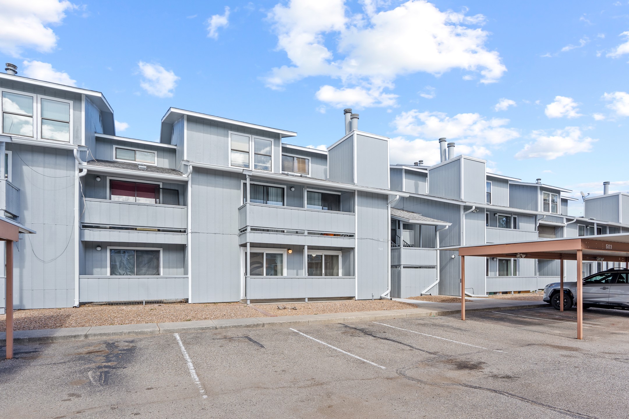 Move-in ready and perfectly positioned in the heart of Downtown Los Alamos, this south-facing, ground-level 1-bedroom, 1-bath Ridge Park condo offers effortless living in an unbeatable location.Thoughtfully designed with an efficient and inviting floor plan, the living room features a cozy wood-burning fireplace--ideal for snowy Los Alamos winters--and opens to a private patio perfect for morning coffee or relaxing evenings. The galley kitchen offers convenient bar seating and flows seamlessly into a dedicated dining area highlighted by a charming mid-century chandelier and built-in bookshelf for added character and function.The spacious primary bedroom includes ample closet storage and a sliding glass door with direct patio access. A full bathroom is located just across the hall, easily accessible from both the bedroom and main living space. Additional conveniences include an in-unit laundry room and a designated parking space.Ridge Park residents enjoy access to a community clubhouse, seasonal pool, and on-site exercise room. Monthly dues cover water, sewer, refuse, recycling, exterior maintenance, road maintenance, and snow removal.Located just one block from Ashley Pond, summer concerts, restaurants, the library, and local brewpubs, this home offers the very best of downtown living right outside your door. Schedule your showing today before this one is gone!
