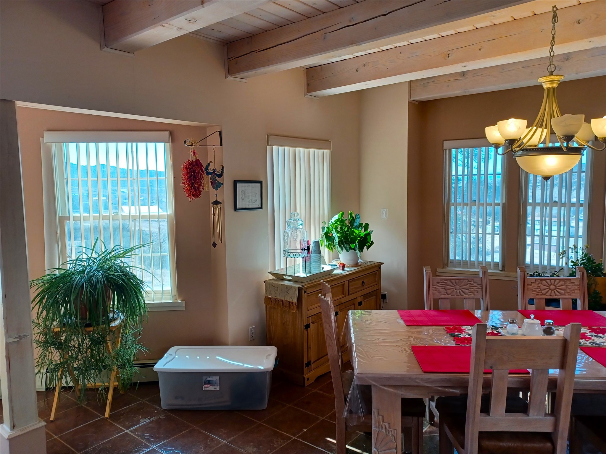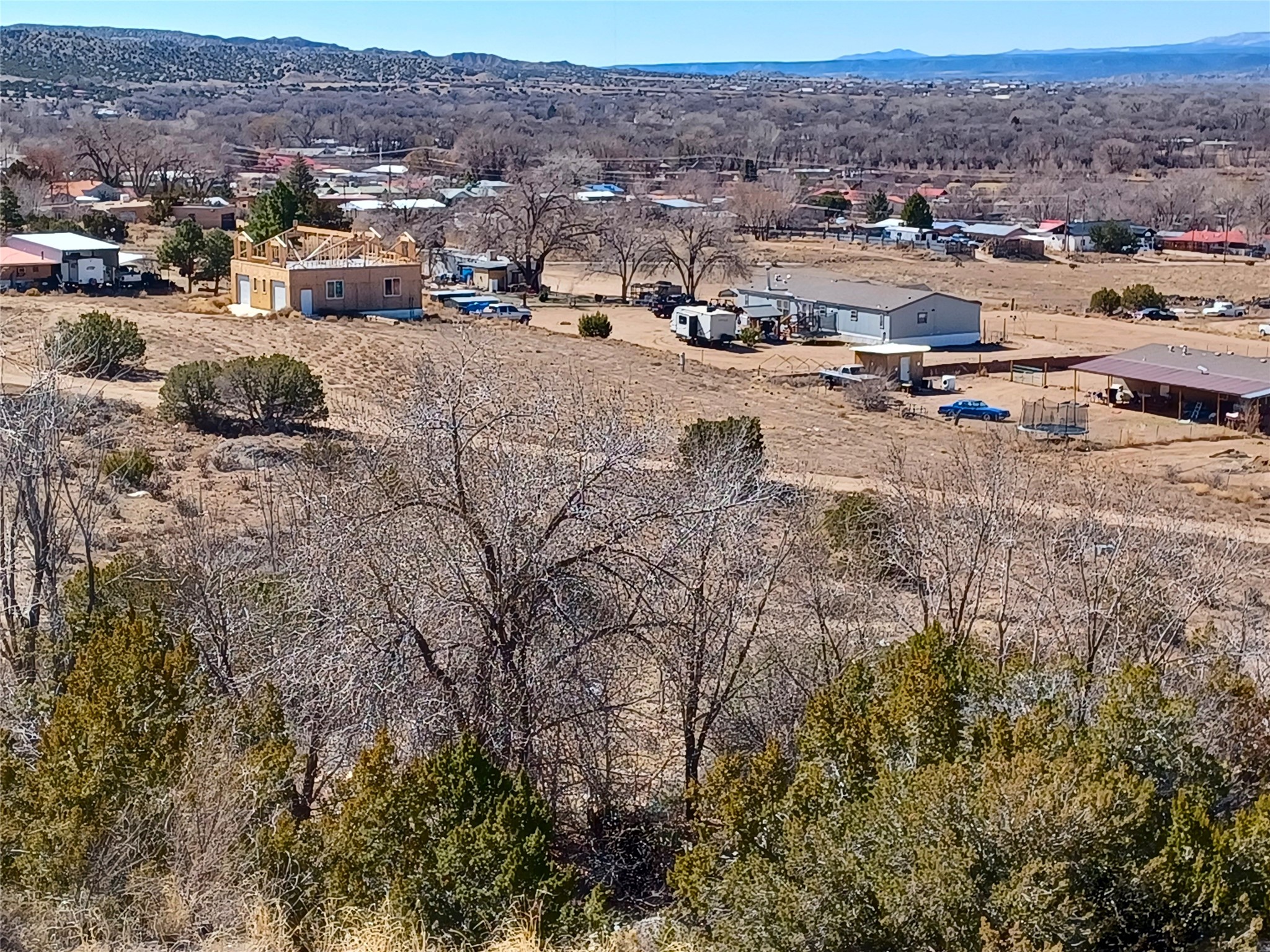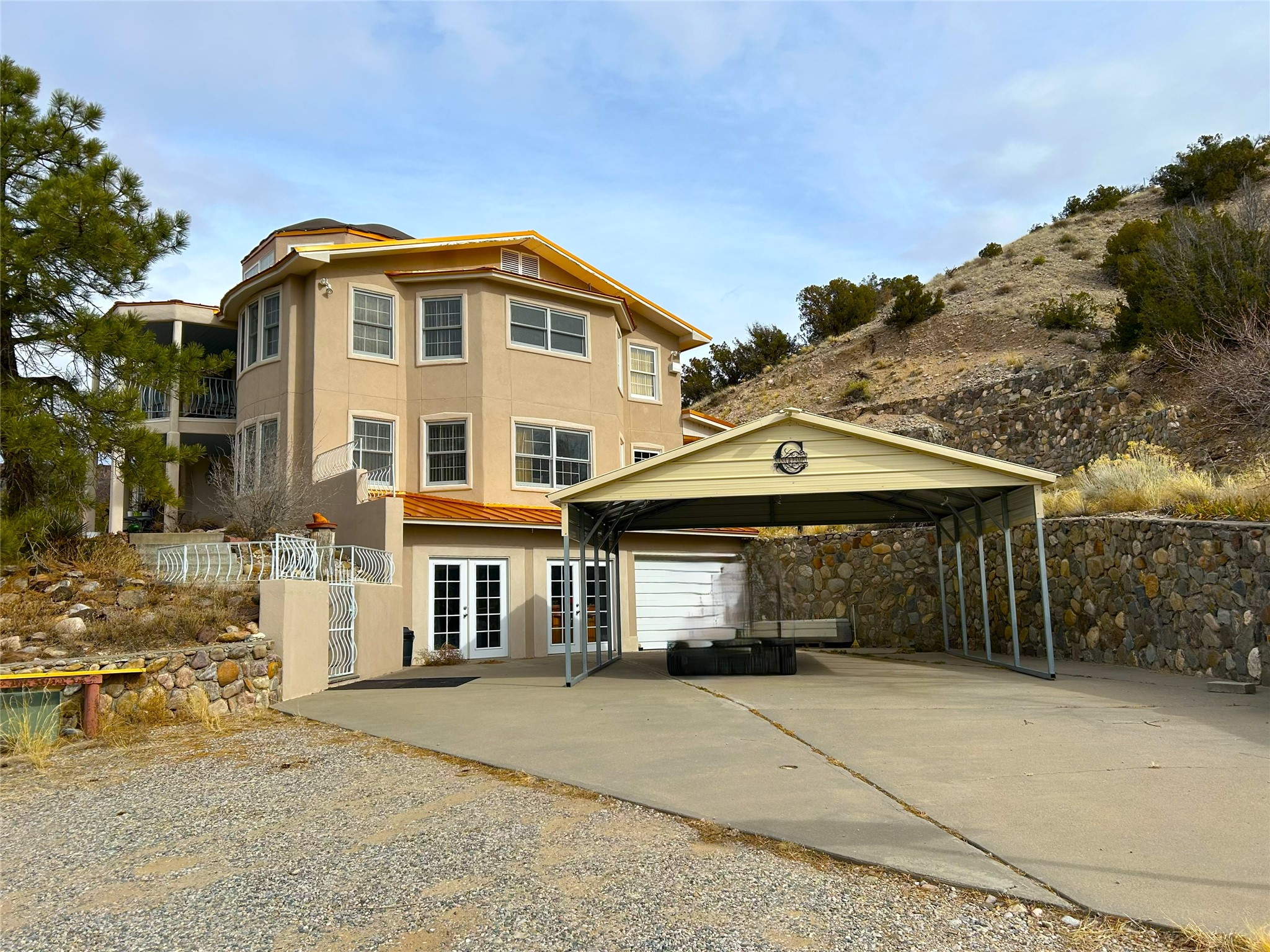 Welcome to a serene retreat nestled in the heart of the enchanting American Southwest. This custom-built, three-level home at 19 County Road 60A in Velarde, New Mexico, offers a harmonious blend of elegance and privacy. As you step into the majestic foyer, you're greeted by the warmth of beams with tongue and groove ceilings, complemented by tile floors that flow throughout the expansive 2,898 square feet of living space. There is a wood burning fireplace and natural gas is connected and in use. No propane tanks needed here.With four spacious bedrooms and 2.5 bathrooms, this single-family home is designed for comfort and style. The metal propanel pitched roof adds a touch of modernity, while the luxury terrace invites you to unwind and soak in the breathtaking views.Situated on nearly 8 acres of private land, this property boasts two private wells, ensuring a plentiful water supply. Its prime location offers a peaceful escape, yet it's conveniently positioned between the cultural hubs of Taos and Santa Fe, and just a stone's throw from the Rio Grande.Whether you're seeking solitude or adventure, this home offers the perfect balance. It includes a second structure with an unfinished garage on a full concrete slab with electrical service. Embrace the opportunity to own a piece of the great American Southwest. Schedule a showing to experience it in person today!