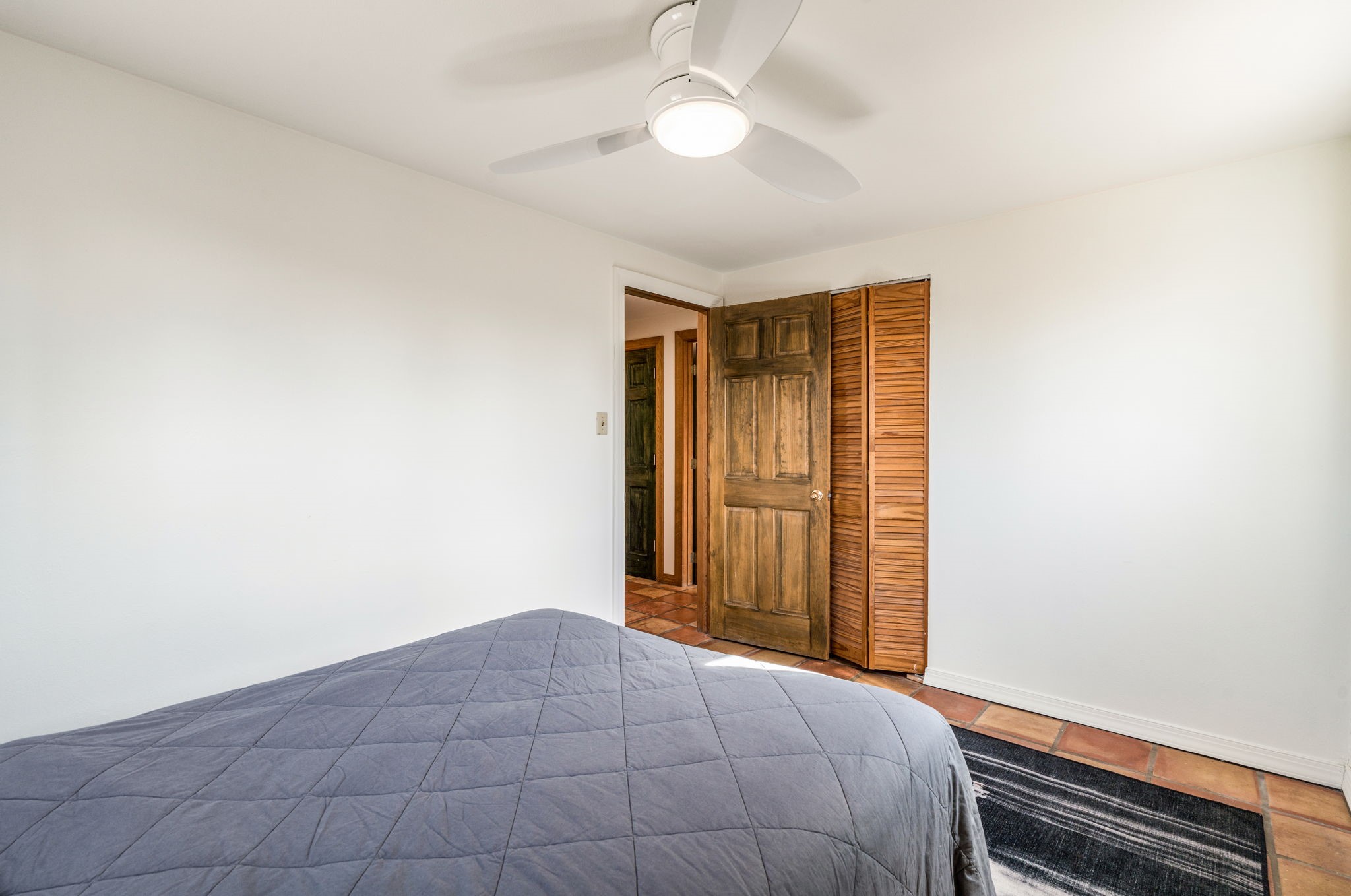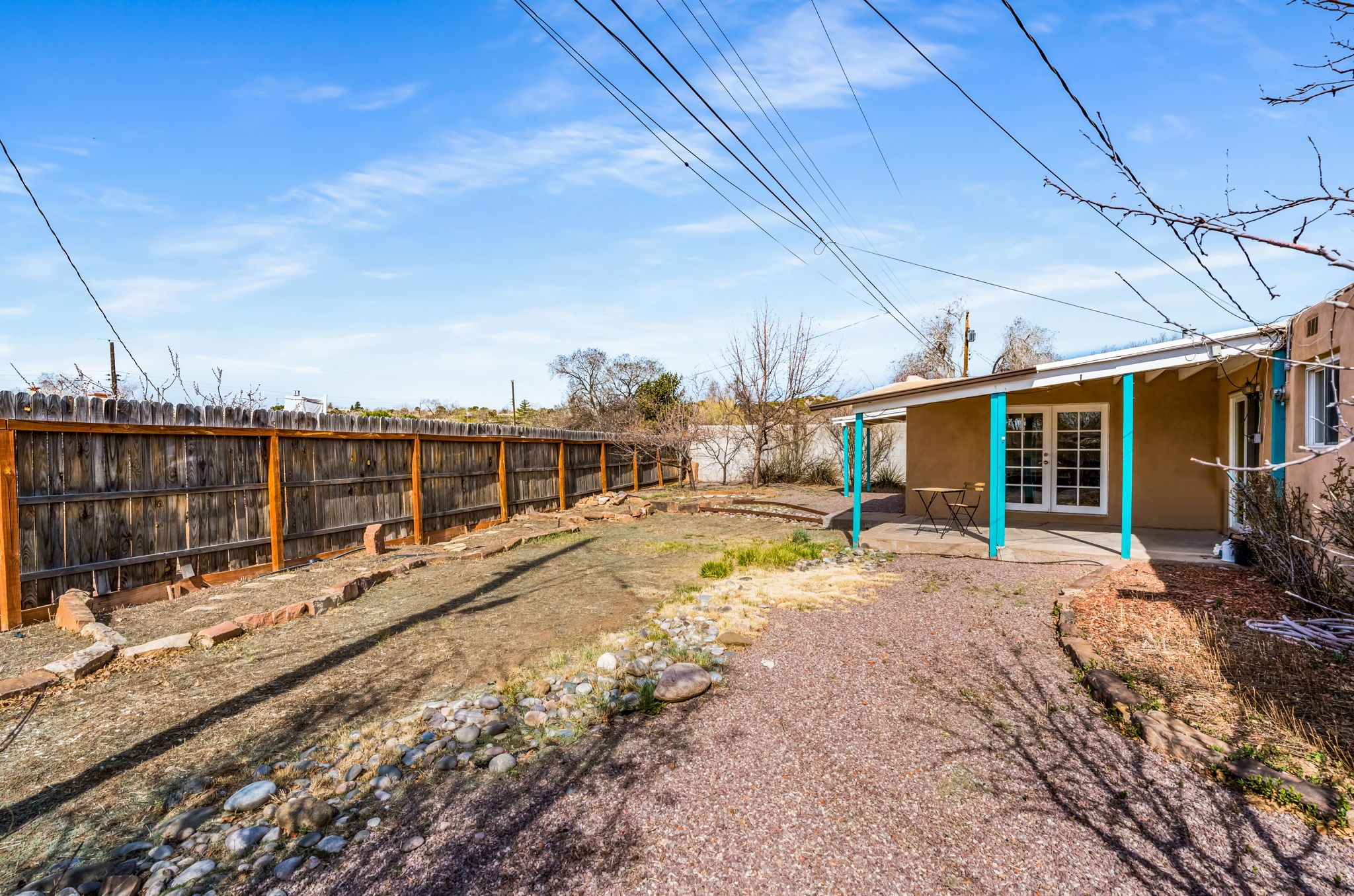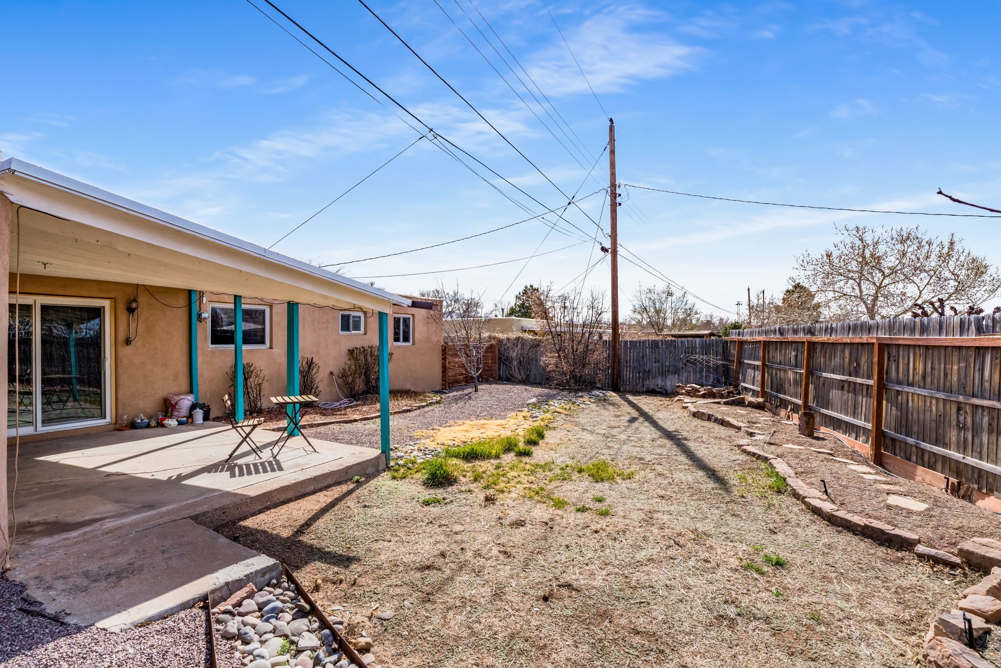 Discover comfort, charm, and versatility in this spacious Casa Solana home, perfectly positioned to enjoy the best of Santa Fe living. With three bright bedrooms and a generous studio space, this home offers the flexibility you've been looking for--ideal for creative pursuits, a home office, or guest accommodations.The inviting studio is a standout feature, showcasing warm brick floors and two sets of elegant French doors that open onto covered portals and a large, fully fenced backyard, replete with apple and peach trees.. Whether you're entertaining, working from home, or simply relaxing, this indoor-outdoor connection creates a wonderful sense of openness and light.Throughout the main living areas, classic Saltillo tile floors add timeless Southwestern character. The expansive living room is beautifully framed by wood posts and beams and offers lovely views of the Sangre de Cristo Mountains--an inspiring backdrop for everyday living. The dining room is filled with natural light and features a sliding glass door that leads directly to the covered portal and backyard, making outdoor dining and gatherings effortless.The updated kitchen is both stylish and functional, with attractive cabinetry and newer stainless steel appliances, including a modern induction stove that home cooks will appreciate.All three bedrooms are filled with natural light and equipped with ceiling fans for comfort. The bathroom has been tastefully updated, and the home also includes newer high-efficiency washer and dryer units. Year-round comfort is ensured with efficient mini-split systems for both heating and cooling.A one-car garage completes the package, while the home's location puts you just moments from the Solana Center, neighborhood coffee shops, restaurants, and city parks.Warm, welcoming, and full of character--this Casa Solana gem is not to be missed.