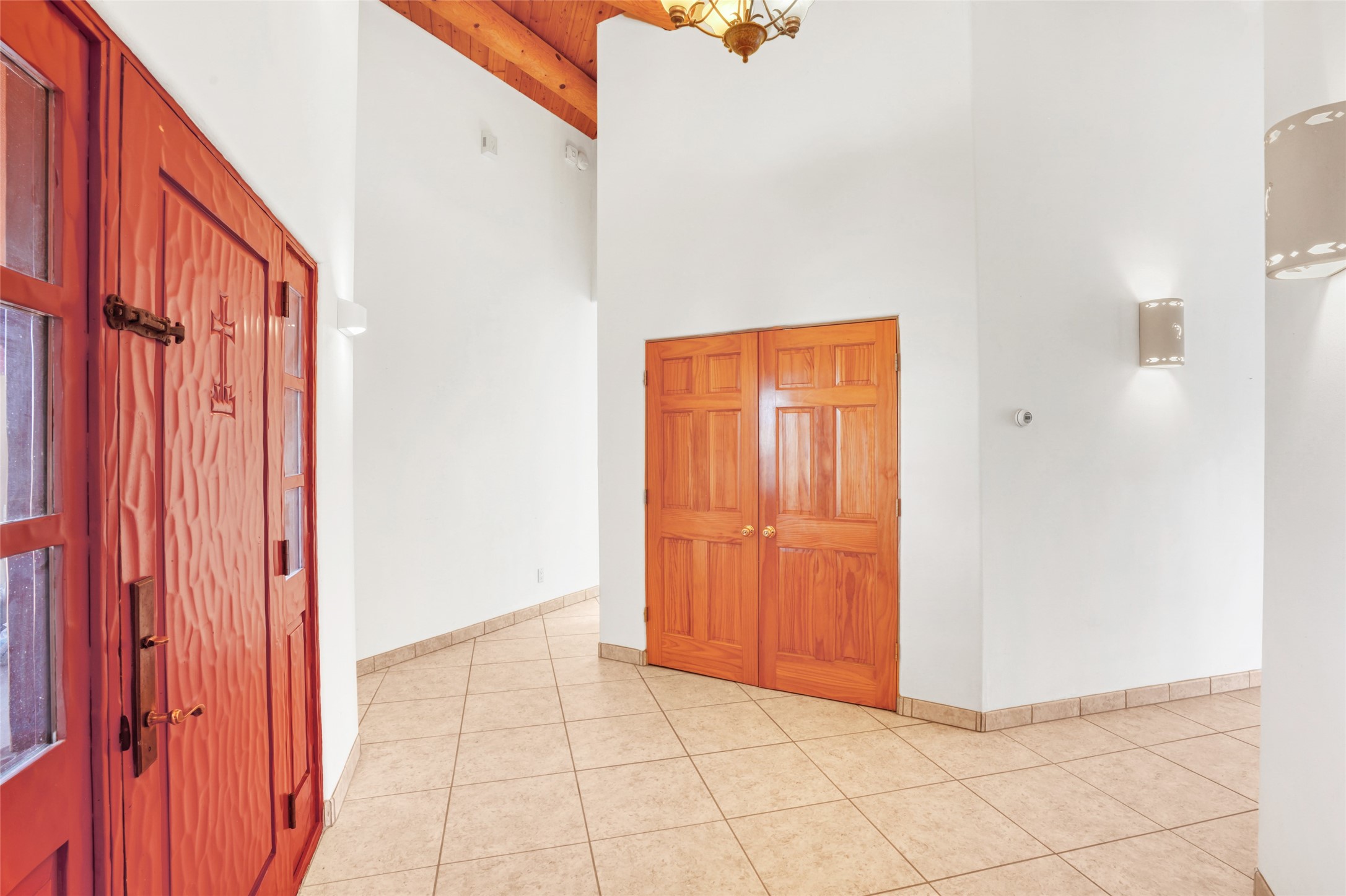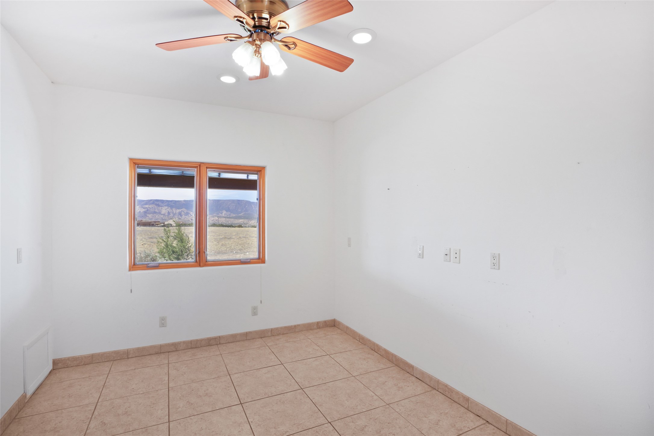 24 Hunter Drive is a pueblo style home in the Vista de Pedernal subdivision near Abiquiu. The home offers three bedrooms and two bathrooms and sits on approximately ten acres with open views across the Rio Chama Valley.The living room features viga ceilings and a wood burning kiva fireplace and opens to a large west facing portal with long views toward Pedernal. The kitchen is open and functional with generous counter space and natural morning light looking east toward the Sangre de Cristo Mountains.There are three garage spaces, including an oversized bay suitable for an RV or large equipment. The land is mostly flat and usable with room for a barn or additional outbuildings. Reasonable covenants are in place to help protect property values while still allowing flexibility for land use.The location provides a manageable drive to Espanola, Santa Fe, and Los Alamos.