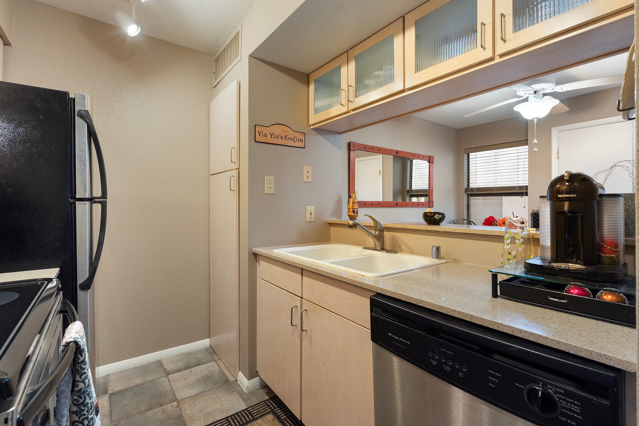 Here's a fantastic two-bedroom two-bathroom ground-floor condo located on the north side of Santa Fe! Nestled on 16 tree-covered acres, The Reserve At Santa Fe remains one of the most attractive and convenient places to live at a very affordable price. This cozy condo near the historic downtown Santa Fe Plaza features a very warm and inviting living/dining space, two private bedrooms, including a primary bedroom with en suite bathroom, no interior steps, and a refreshing and relaxing outdoor patio. Additional community amenities on the grounds include a year-round heated outdoor pool and hot tub, a large workout room with many treadmills and workout equipment, and a large laundry facility for your convenience. There are also plenty of parking spaces, bike racks, several outdoor grills for barbecuing, and great, naturally landscaped areas to walk your pets in this special gated community. LANL commuters driving to and from Los Alamos also appreciate this location, which provides easy access to Highway 285/84. Come and see this amazing home today!