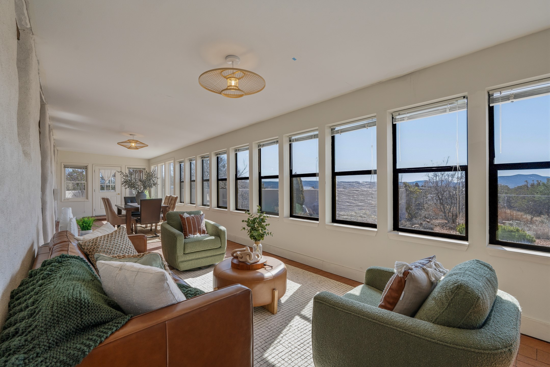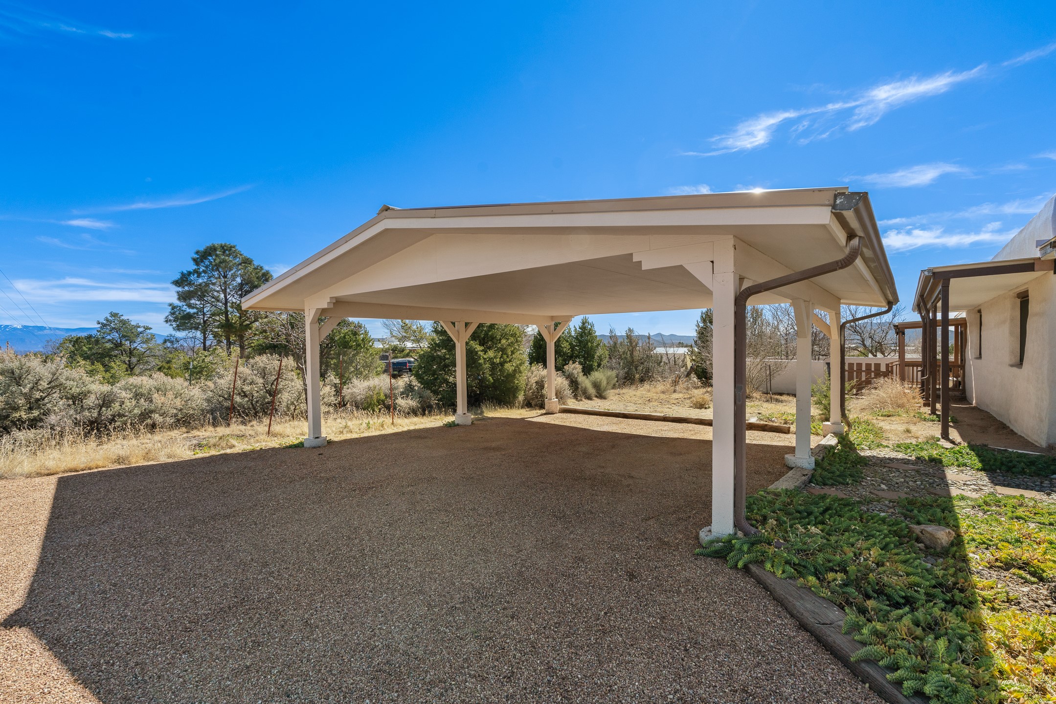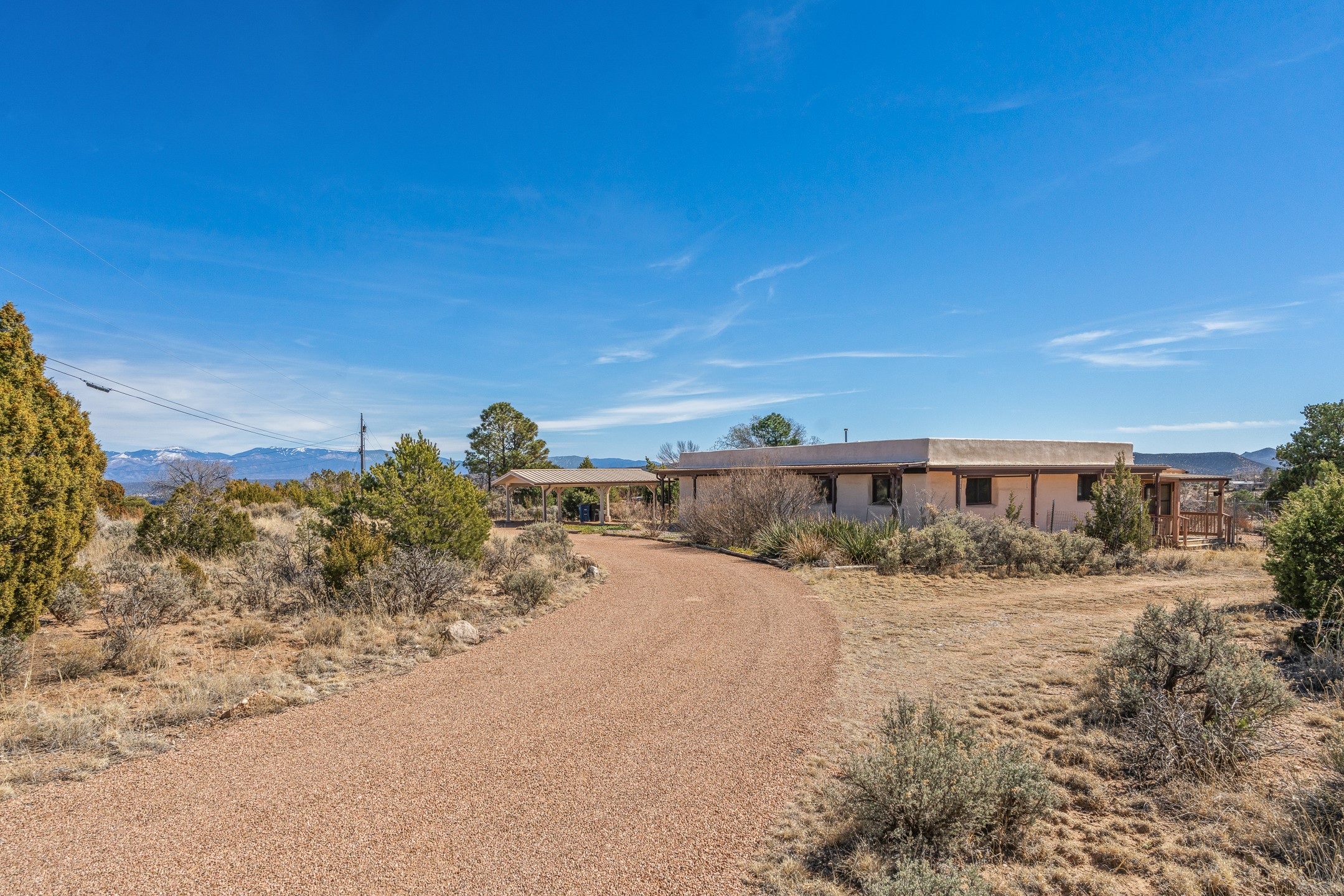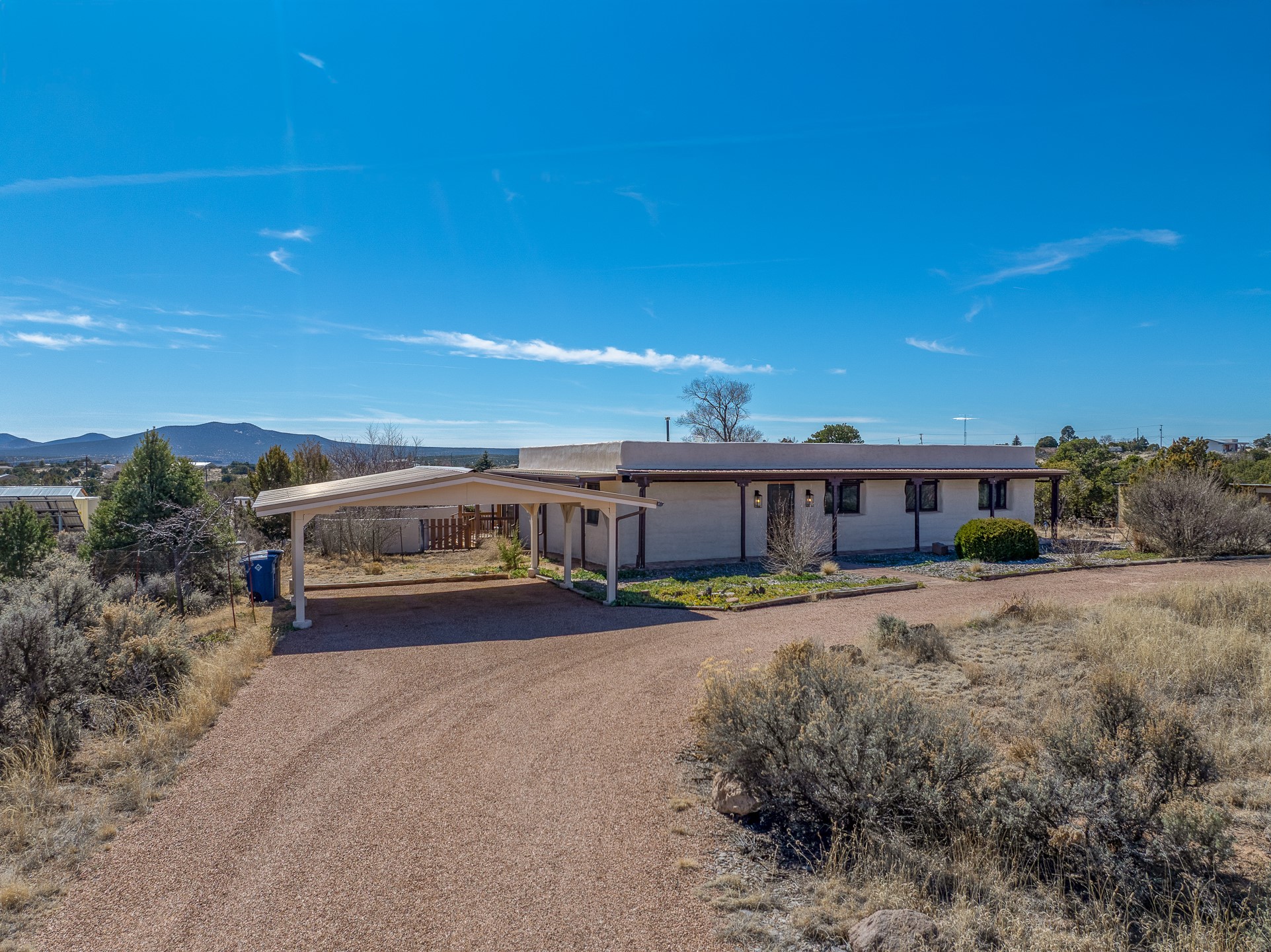 Set on just over 3 acres in the Pajarito Acres community of White Rock, this distinctive 4-bedroom, 2-bath adobe home blends timeless Southwestern character with thoughtful updates and rich architectural detail. The entry welcomes you with a beautiful stone wall and warm Saltillo tile floors, setting the tone for the craftsmanship found throughout. Exposed wood beams, natural wood ceilings, and handcrafted wood doors create a warm and inviting atmosphere. In the living area, a striking decorative breeze block wall adds architectural interest while subtly defining the space. A pellet stove provides warmth and ambiance during cooler months. The kitchen offers updated appliances, a beautiful stone backsplash, abundant cabinetry, and generous workspace, all opening seamlessly to the dining and living areas, ideal for everyday living and entertaining. Just beyond the sliding doors off the dining area, the sunroom adds approximately 550 square feet of additional heated living space (included in the total 2,350 sq ft). With brick flooring and walls of windows, this bright space offers the perfect place to relax or enjoy views of the surrounding landscape. Thick adobe walls provide natural insulation, keeping the home cool in summer while the sunroom captures passive solar warmth in winter for improved energy efficiency.The home offers four versatile bedrooms, each with durable Pergo flooring. The primary suite includes a walk-in closet and updated bathroom, while the second bath serves the additional bedrooms. One bedroom features built-in shelving, ideal for a home office. The 3+ acre property offers views to the South and East, space for gardening, recreation, or simply enjoying the peaceful surroundings. Two outbuildings provide additional storage, while a two-car carport and circular driveway offer convenient parking. Additional highlights include a tankless hot water heater, updated lighting, and updated windows throughout the main home. Located minutes from Los Alamos National Laboratory, scenic trails, and White Rock parks and amenities, this property offers a rare combination of space, character, and convenience. If you are looking for acreage and an authentic adobe character in Pajarito Acres, 3 Maya Lane is a truly special opportunity. Schedule a showing today!