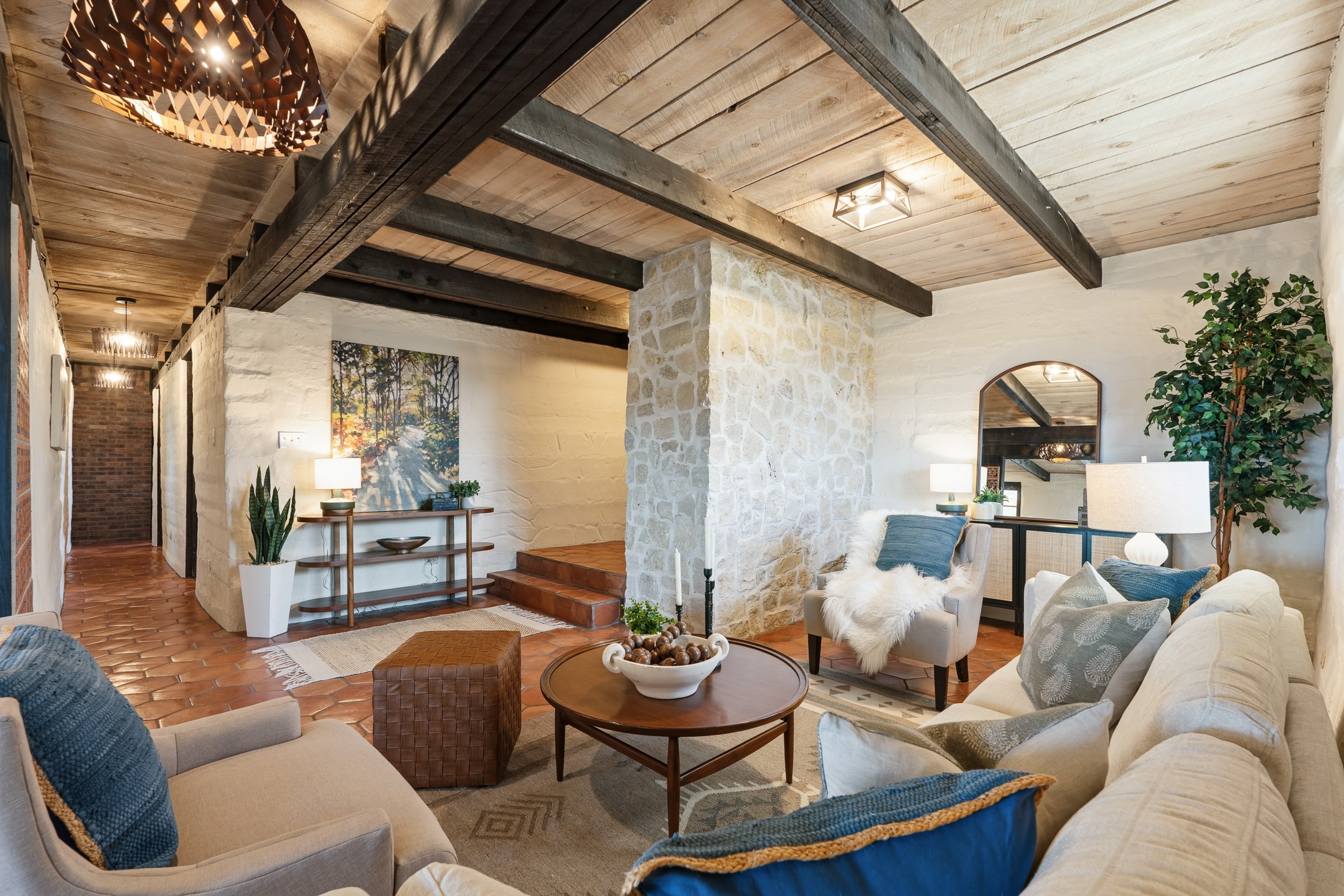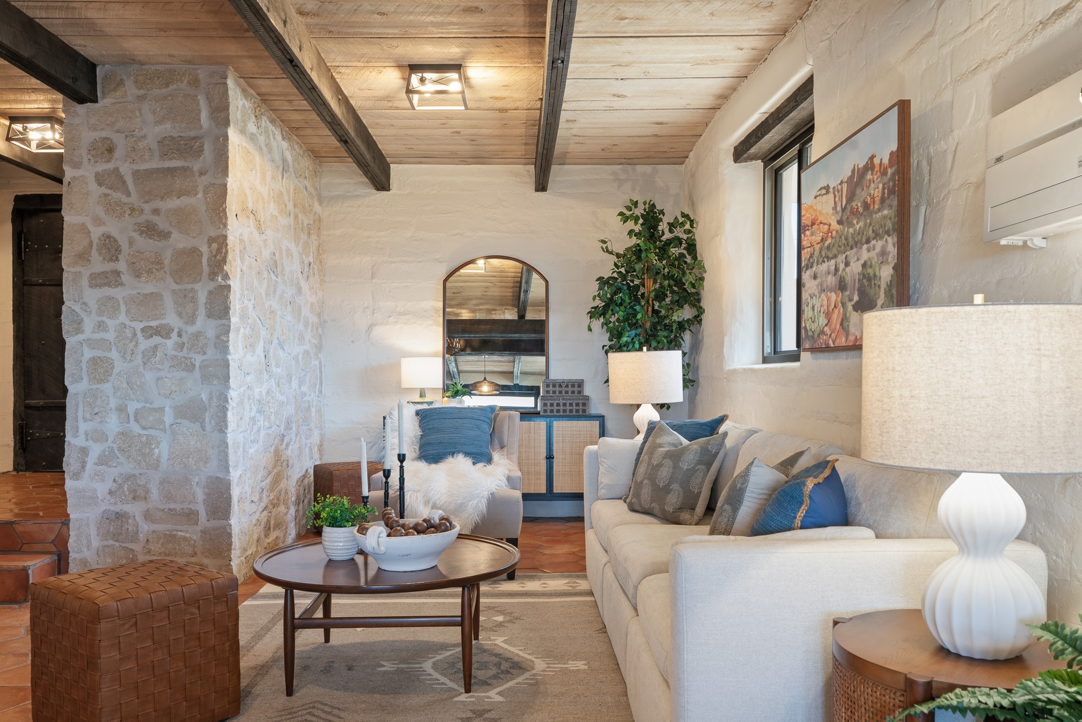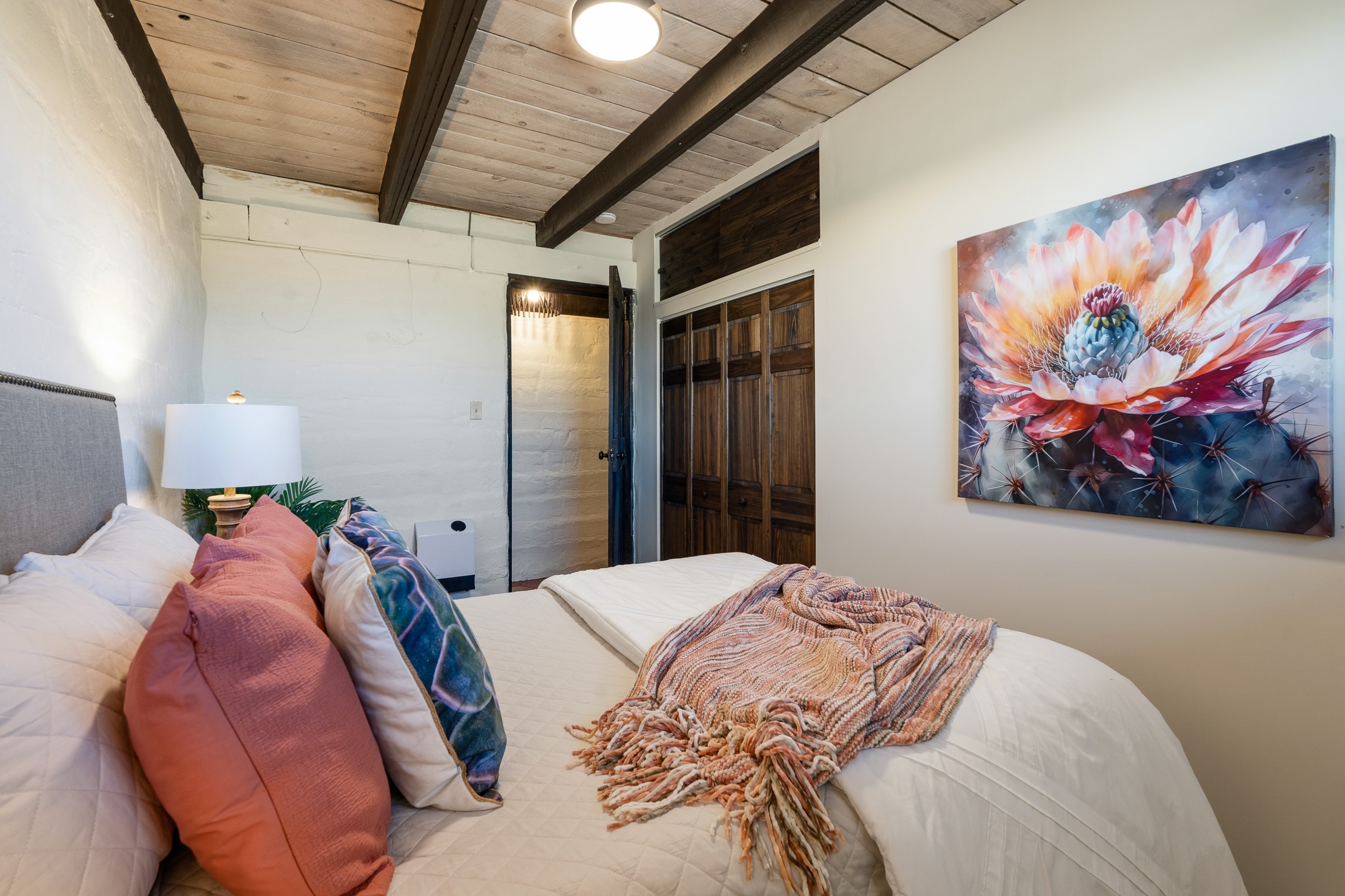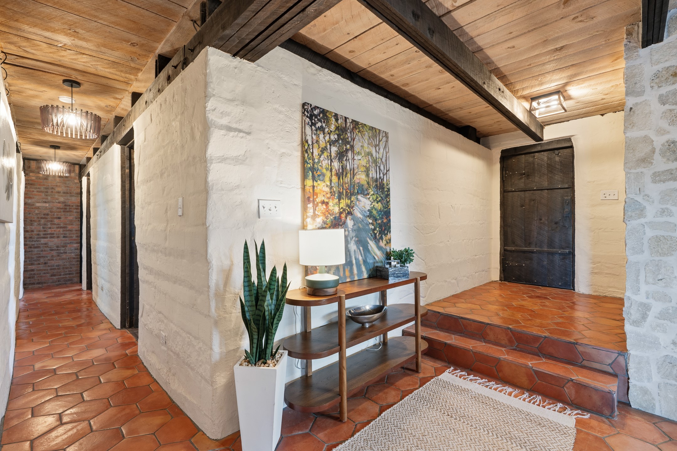 Set on just over 3 acres in the Pajarito Acres community of White Rock, this distinctive 4-bedroom, 2-bath adobe home blends timeless Southwestern character with thoughtful updates and rich architectural detail. The entry welcomes you with a beautiful stone wall and warm Saltillo tile floors, setting the tone for the craftsmanship found throughout. Exposed wood beams, natural wood ceilings, and handcrafted wood doors create a warm and inviting atmosphere. In the living area, a striking decorative breeze block wall adds architectural interest while subtly defining the space. A pellet stove provides warmth and ambiance during cooler months. The kitchen offers updated appliances, a beautiful stone backsplash, abundant cabinetry, and generous workspace, all opening seamlessly to the dining and living areas, ideal for everyday living and entertaining. Just beyond the sliding doors off the dining area, the sunroom adds approximately 550 square feet of additional heated living space (included in the total 2,350 sq ft). With brick flooring and walls of windows, this bright space offers the perfect place to relax or enjoy views of the surrounding landscape. Thick adobe walls provide natural insulation, keeping the home cool in summer while the sunroom captures passive solar warmth in winter for improved energy efficiency.The home offers four versatile bedrooms, each with durable Pergo flooring. The primary suite includes a walk-in closet and updated bathroom, while the second bath serves the additional bedrooms. One bedroom features built-in shelving, ideal for a home office. The 3+ acre property offers views to the South and East, space for gardening, recreation, or simply enjoying the peaceful surroundings. Two outbuildings provide additional storage, while a two-car carport and circular driveway offer convenient parking. Additional highlights include a tankless hot water heater, updated lighting, and updated windows throughout the main home. Located minutes from Los Alamos National Laboratory, scenic trails, and White Rock parks and amenities, this property offers a rare combination of space, character, and convenience. If you are looking for acreage and an authentic adobe character in Pajarito Acres, 3 Maya Lane is a truly special opportunity. Schedule a showing today!