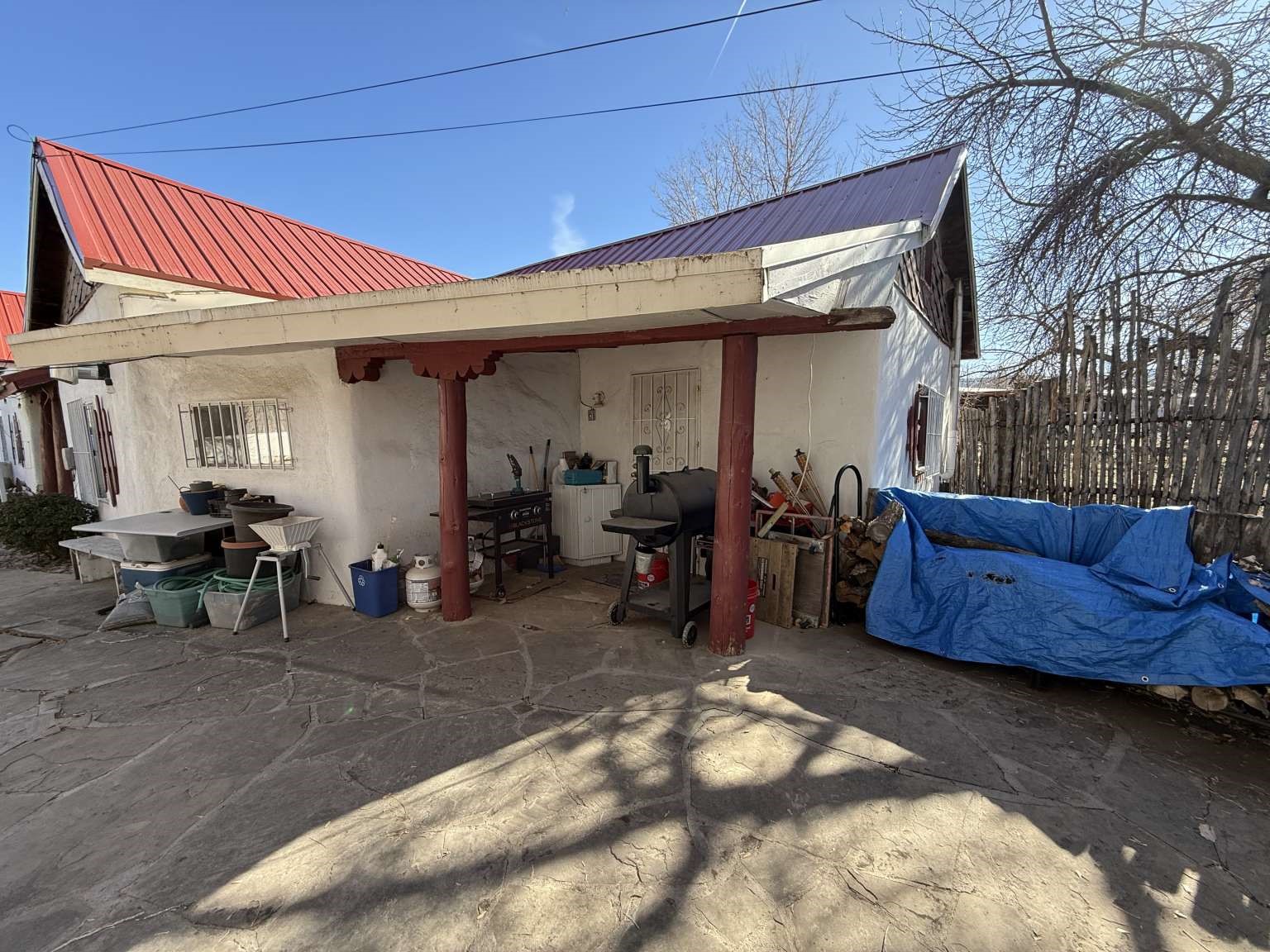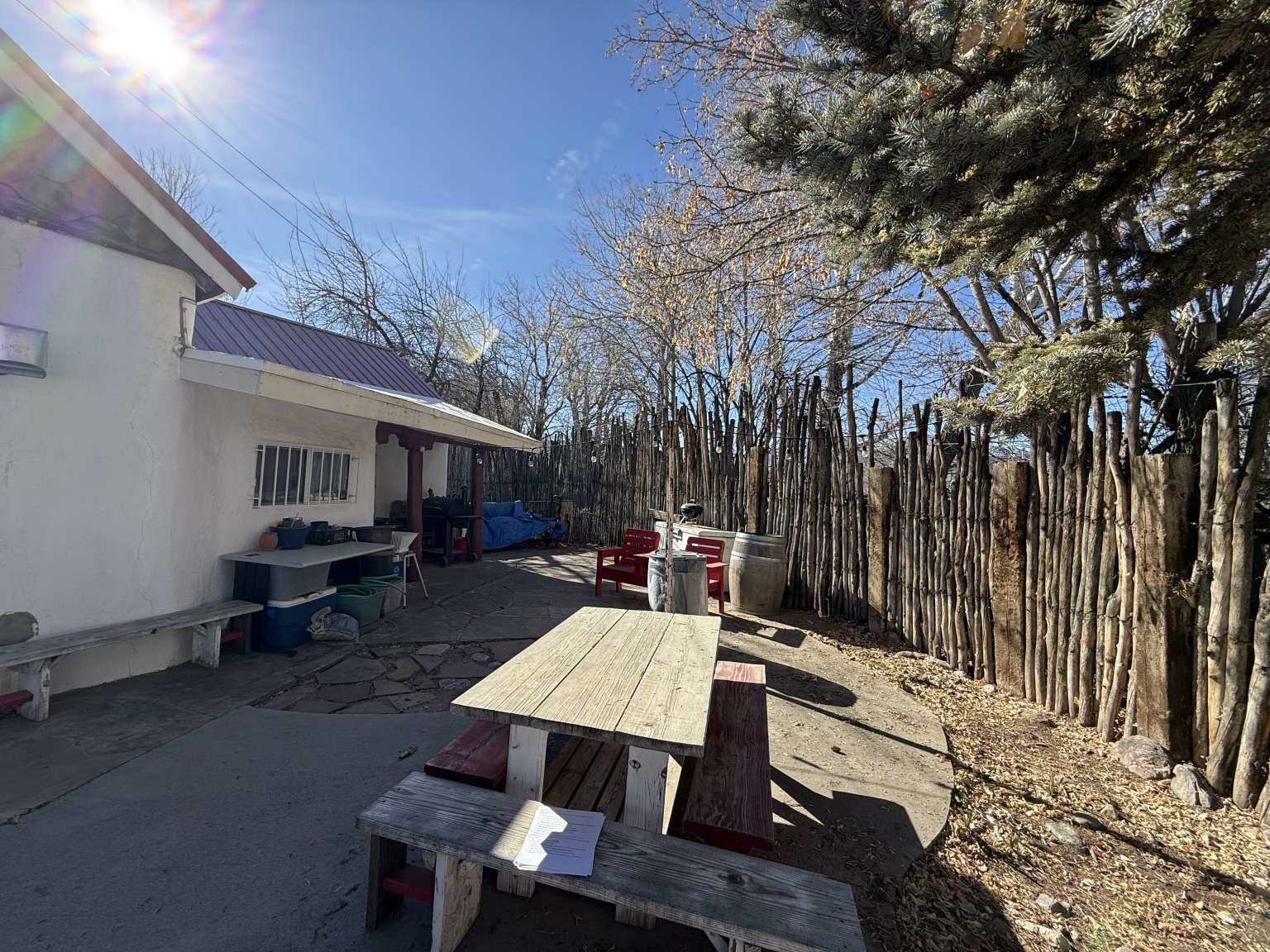 Nestled in Ranchos de Taos, this 2,268-square-foot adobe-style residence offers a unique opportunity on a lush one-acre lot. The exterior features a durable, newly installed metal roof. Inside, find a spacious layout with a full attic and the comfort of a wood stove, heaters, and HVAC. A valuable addition to the property is the inclusion of water rights. This site is ideal for those looking to finalize a vision, as electrical updates are currently in progress. Enjoy a peaceful setting with a courtyard and fruit trees in a sought-after neighborhood.