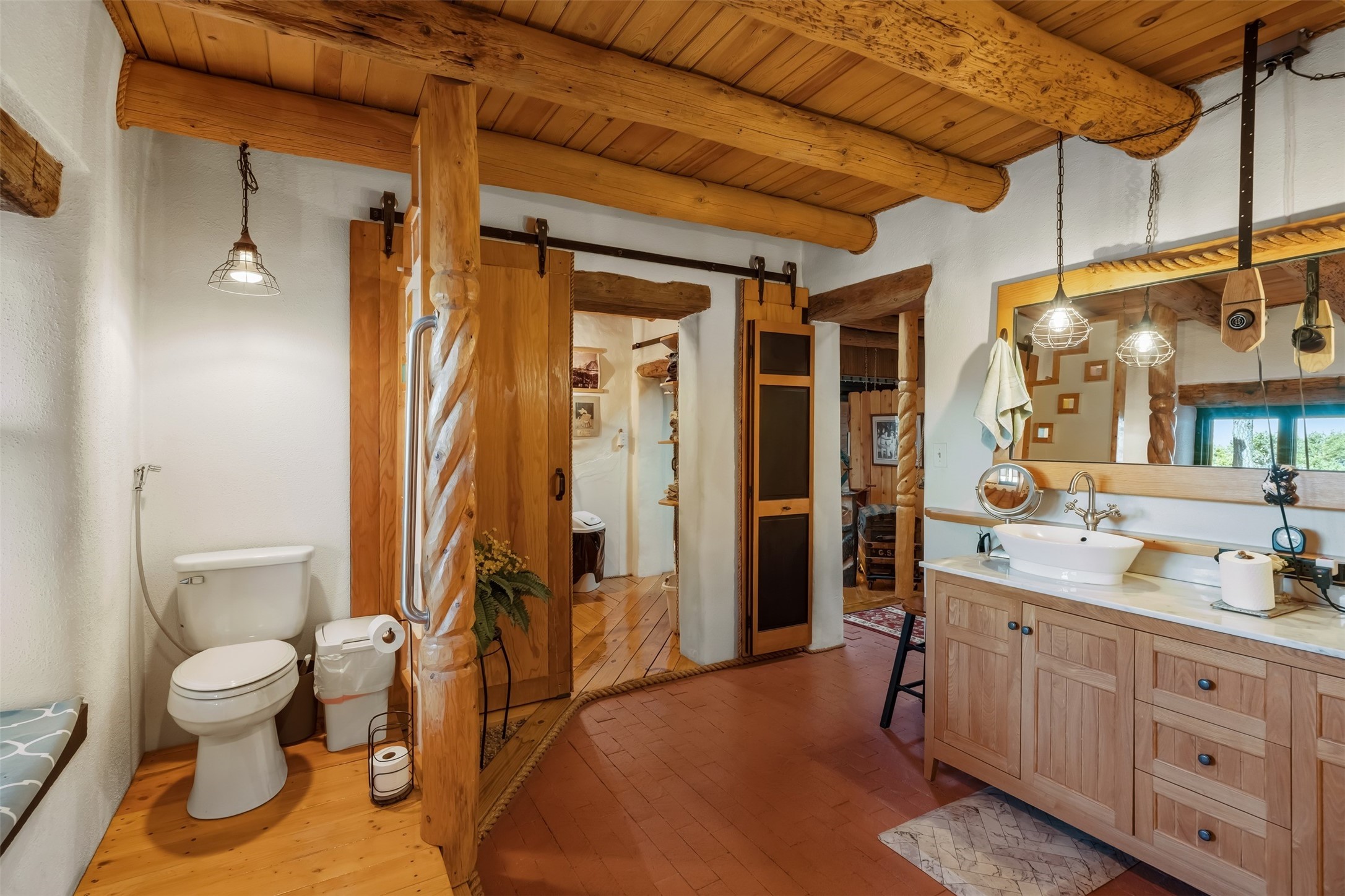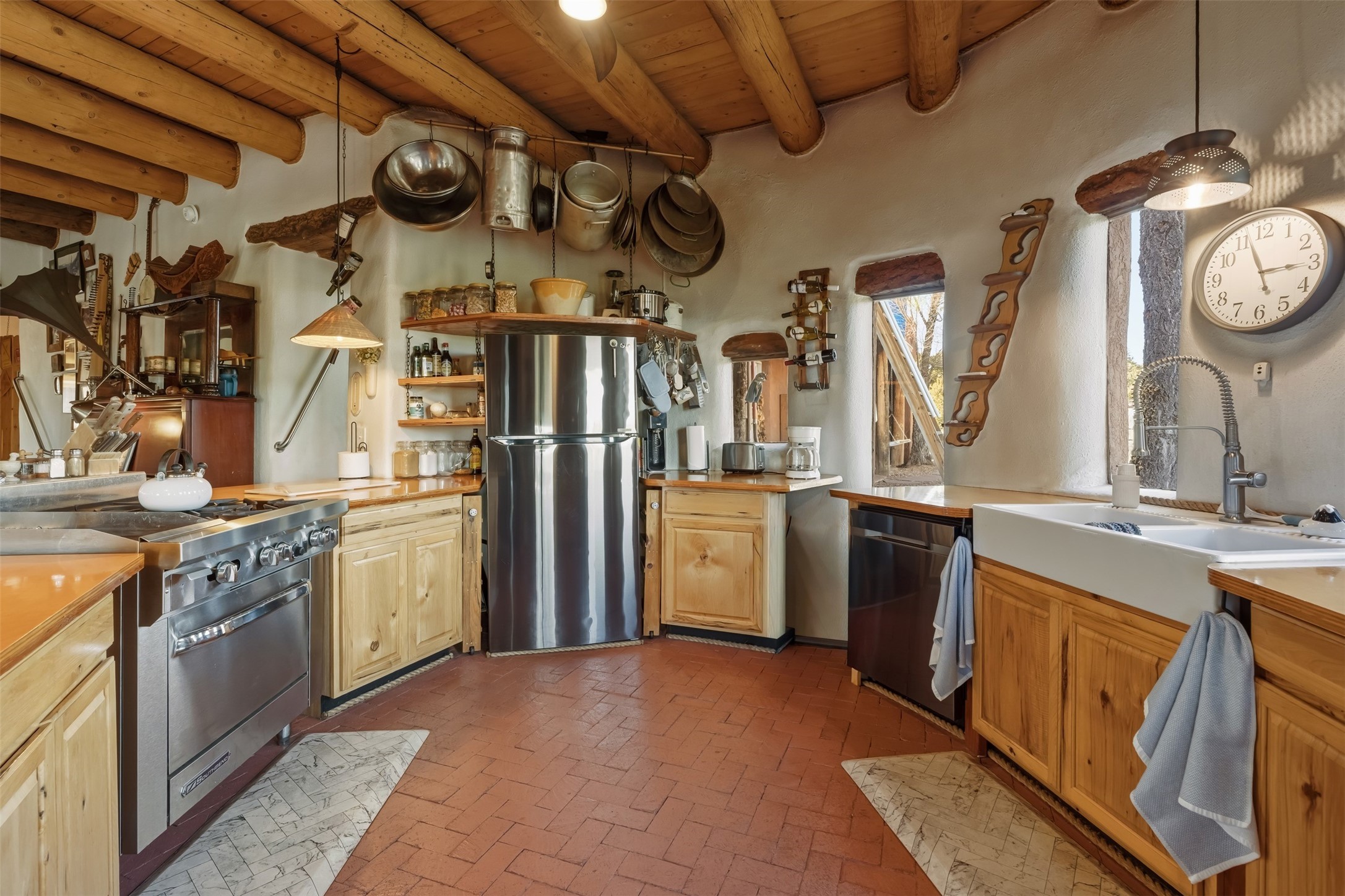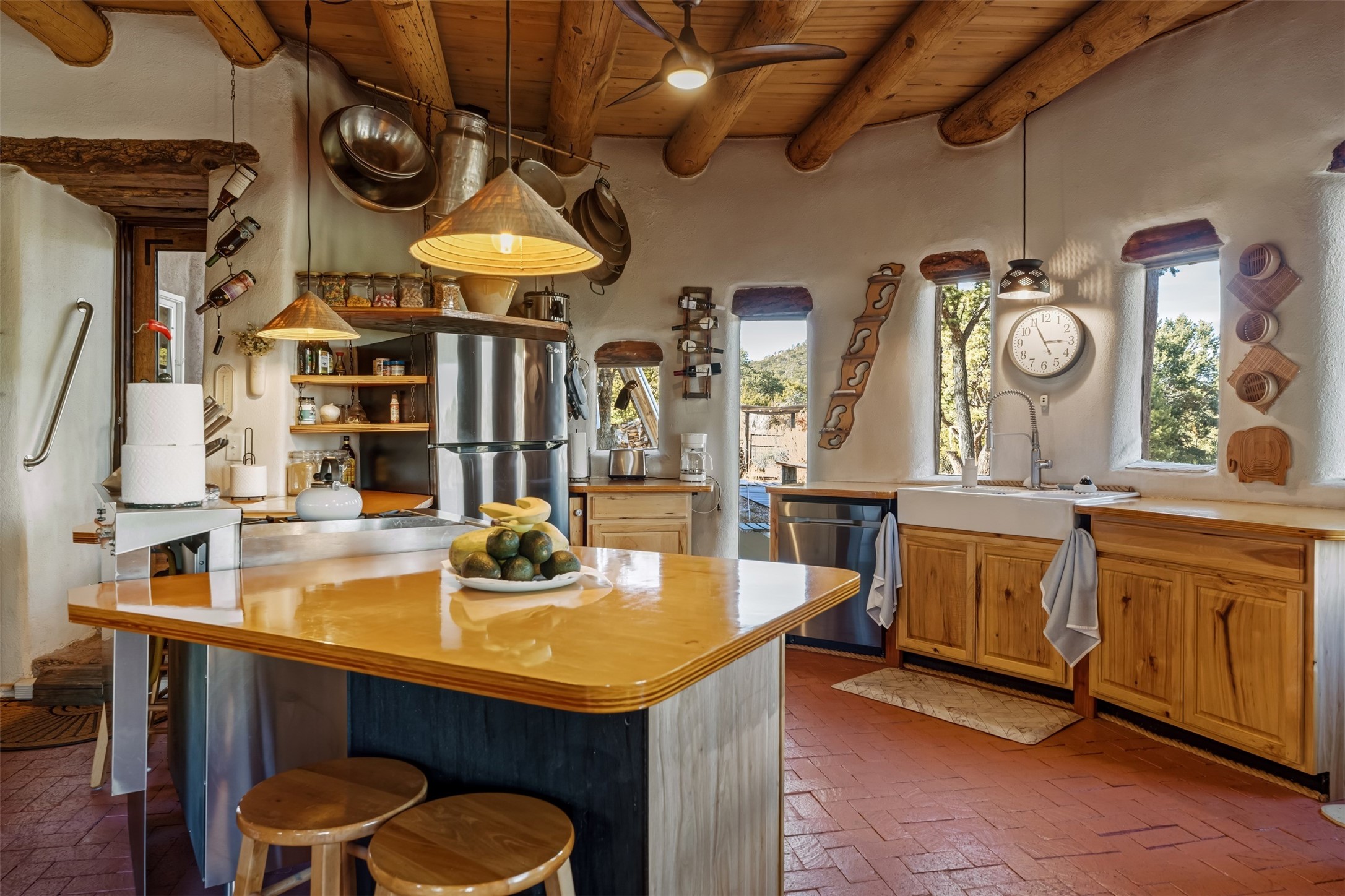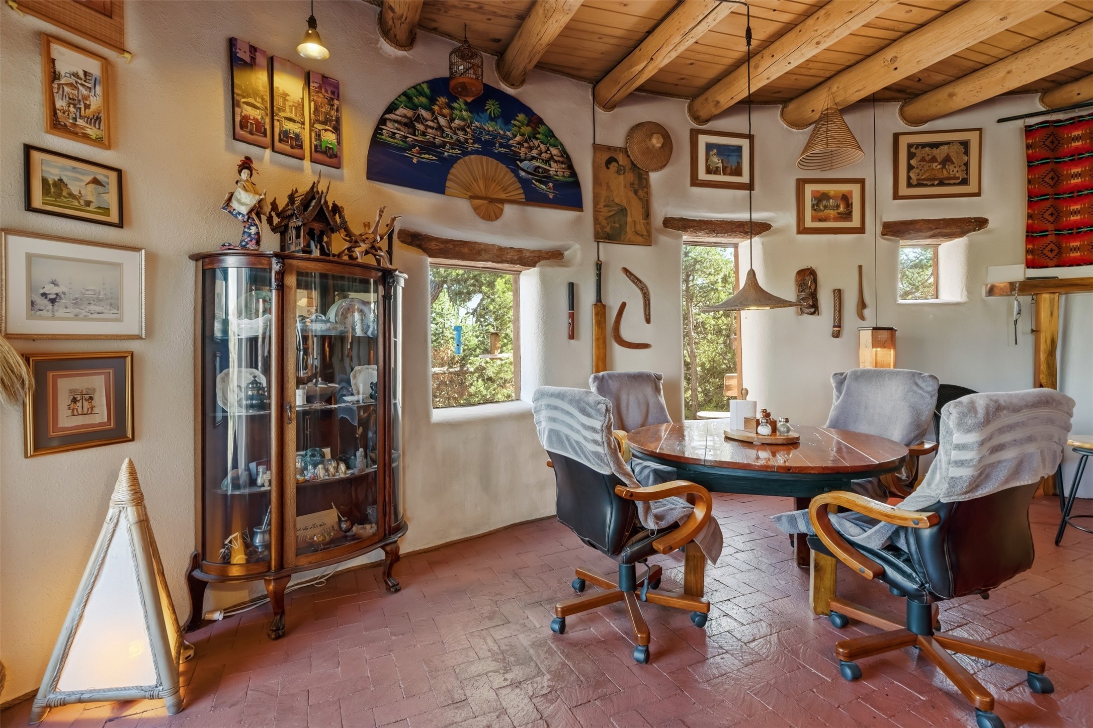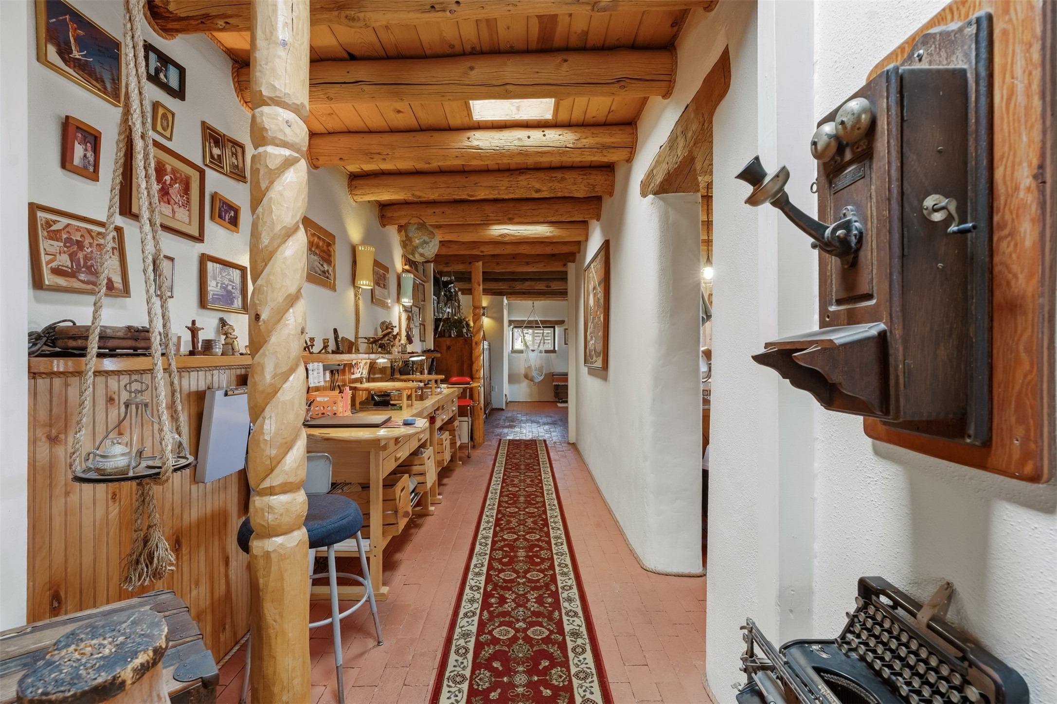 Perched along the historic Old Santa Fe Trail at approximately 7,777 feet in elevation, this hilltop residence spans ten peaceful acres with sweeping high desert views in every direction. Expansive skies, mature trees, and a wraparound vantage point create unforgettable sunsets and panoramic scenery from the elevated deck.The three bedroom, two and one half bath home has been carefully maintained and thoughtfully crafted with traditional Southwest character. Exposed vigas, handcrafted wood details, wood burning fireplaces, and generous windows invite warmth and natural light throughout the open living, dining, and kitchen areas.A welcoming gathering space near the entry sets the tone for celebrations and relaxed entertaining. A separate studio offers privacy for artistic or professional pursuits. Additional structures include a detached garage with barn and workshop space, plus an auxiliary outbuilding and covered parking area that add flexibility and utility.With approximately 3,000 square feet of living space, the floor plan offers the possibility of creating two distinct one bedroom living quarters, opening the door to income potential or comfortable guest accommodations. The land is served by a private well and septic system and may be split into two five acre parcels, providing future options.Surrounded by trails for hiking and cycling, yet only minutes from the Plaza, dining, and cultural destinations, this property offers both seclusion and accessibility. Equipment such as a tractor, implements, generator, and many operational tools related to the upkeep of the land may be available by separate consideration.This is an opportunity for the next steward to continue its legacy. Culmination of ownership is desired, expressions of interest are invited, all reasonable inquiries and sincere offers entertained.