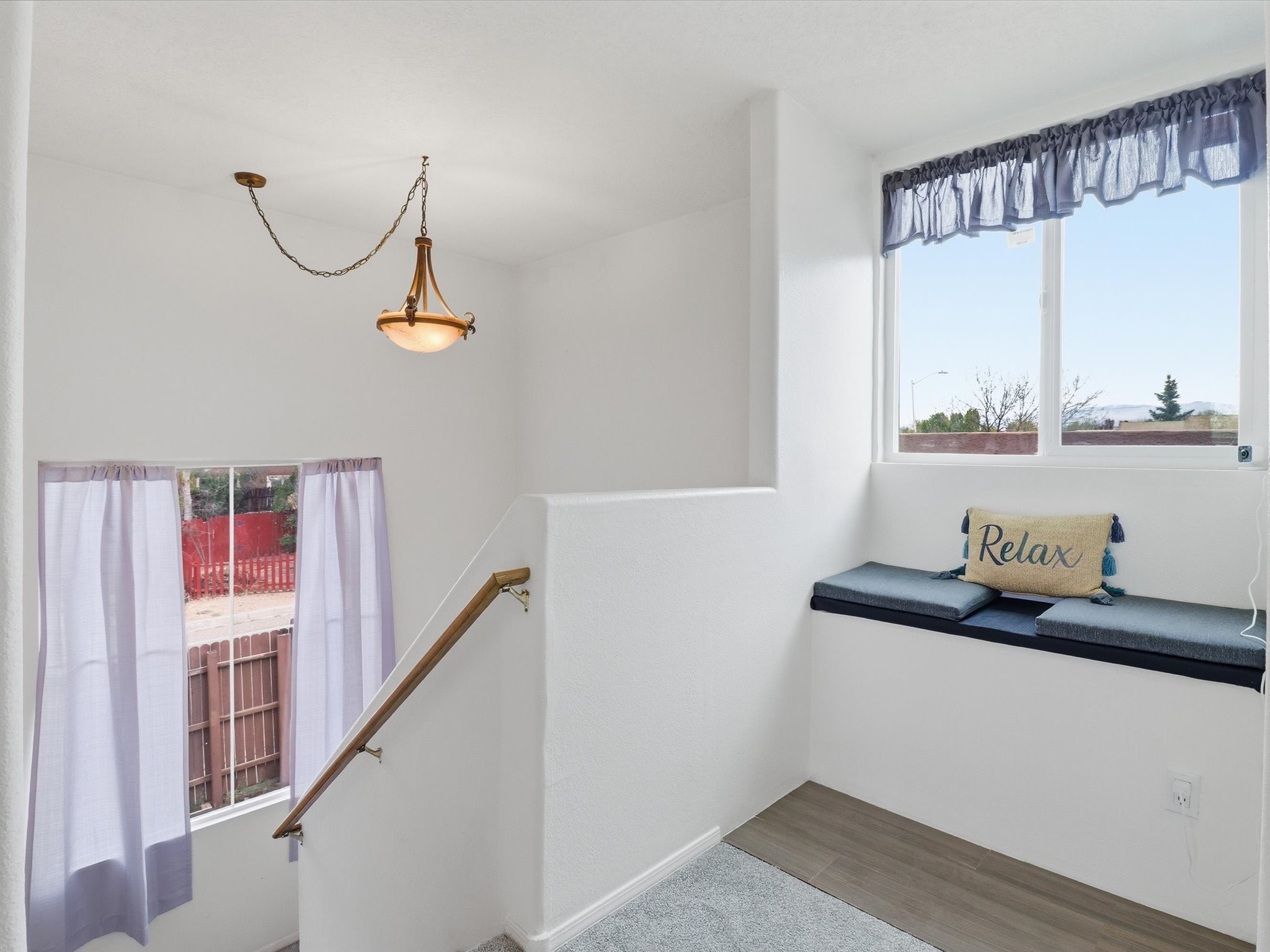 Nestled in a well-established section of Tierra Contenta, this inviting 4-bedroom, 3-bath, two-story home perfectly blends comfort, functionality, and charm. The primary bedroom is conveniently located upstairs with an attached bathroom featuring dual sinks, while the 3rd bathroom serves the 3rd and 4th bedrooms, offering thoughtful convenience for family living.Step inside to a spacious floorplan that balances privacy and shared spaces. The enclosed kitchen flows straight into the open dining and living areas, which connect seamlessly to the backyard through full glass doors--ideal for indoor-outdoor living. Upstairs, a hallway with a cozy sitting space by an open window creates a peaceful retreat for reading or relaxing.Outside, the property features a fenced front yard with a covered portal, plus ample front and backyard space with endless potential to personalize--whether you envision a playground, landscaped garden, or lanai. Patio improvements provide additional outdoor entertaining options, making this a perfect spot to enjoy Santa Fe's beautiful climate.Located near schools, the public library, and the Plaza Contenta Commercial Center, this home combines convenience with a warm, welcoming community feel. Whether you're seeking a family-friendly residence or a smart investment, this property offers exceptional value in a highly desirable Santa Fe location.
