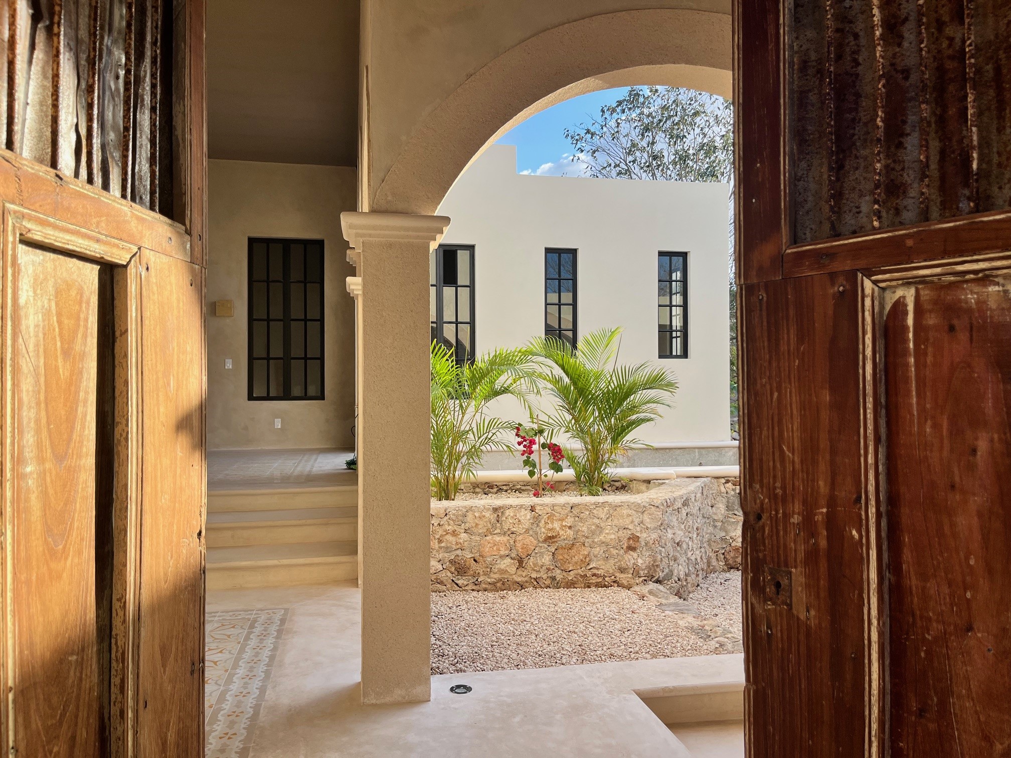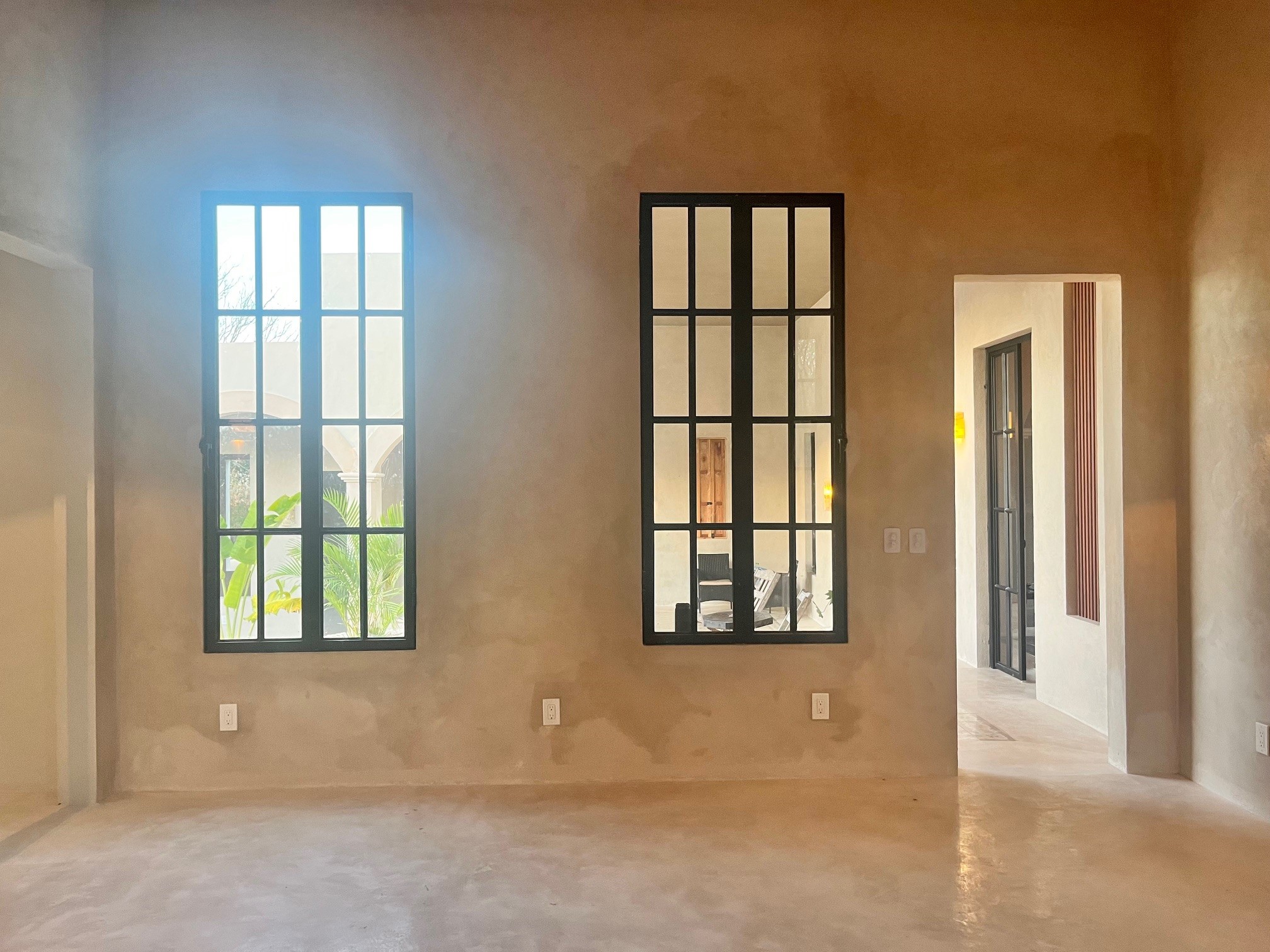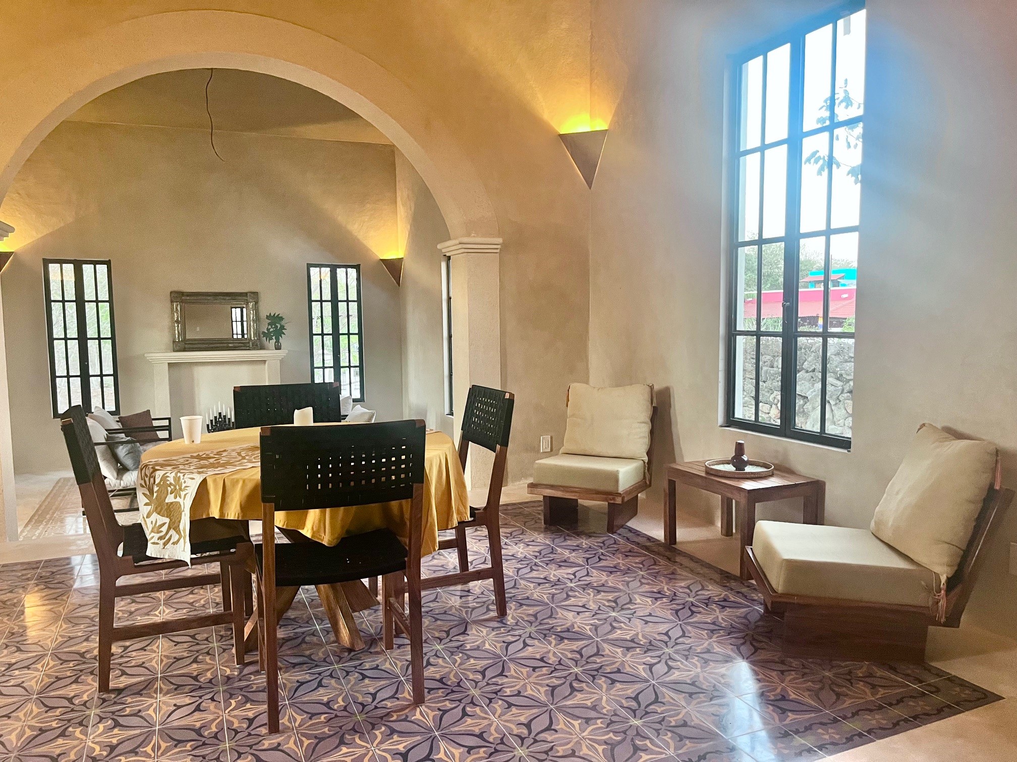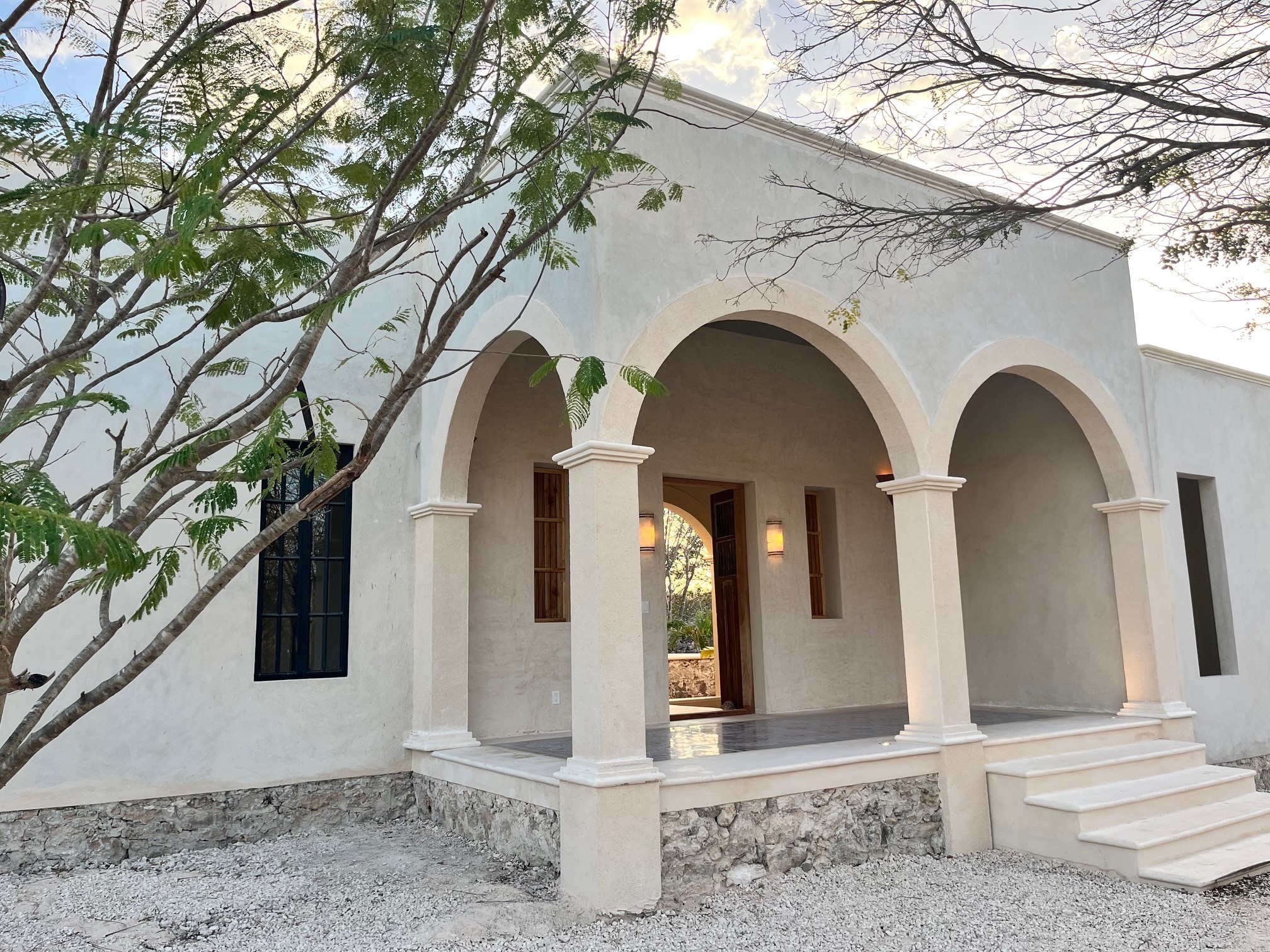 Relax in the privacy of your own central courtyard with pool, palm trees and sunset vistas. This new build is located at the end of a small private lane lined with other pretty homes. The country setting makes you forget you are only 7 minutes from downtown Izamal, designated one of Mexico's 'Magical Towns'. The state of Yucatan is known for being one of Mexico's safest and the cultural and culinary scenes of the region are renowned. Just one hour from Merida and 8 minutes to the Tren Maya Station, this hacienda-style beauty features high ceilings, handmade pasta tile floors, steel windows, custom architectural details including stone and wood sconce light fixtures, and a private pool. A shortlist of finish details will be completed after an offer is accepted and prior to closing. This is a rare new construction home built in the style of the old haciendas but with all the comforts of modern electric, plumbing and a sensible layout.