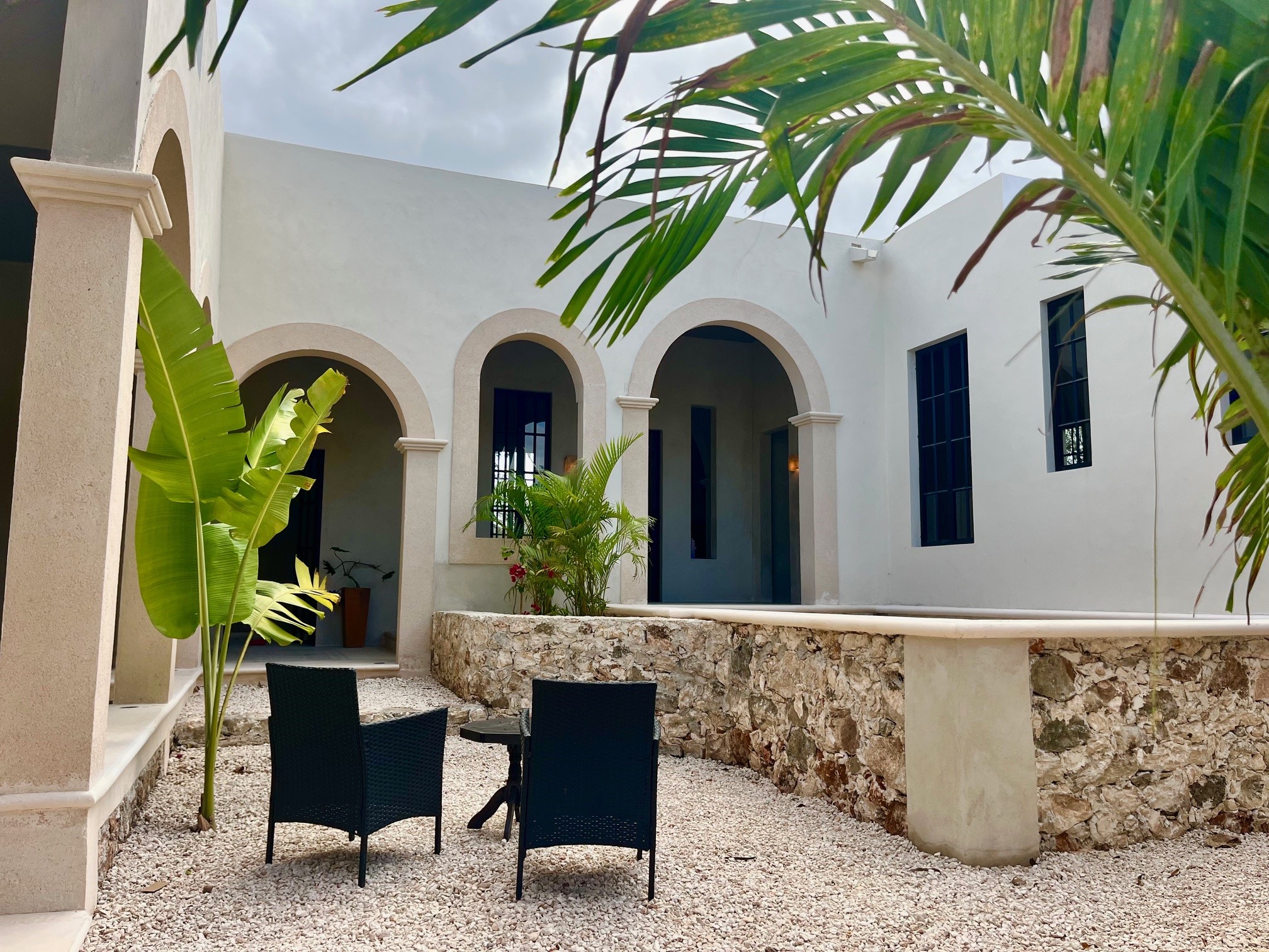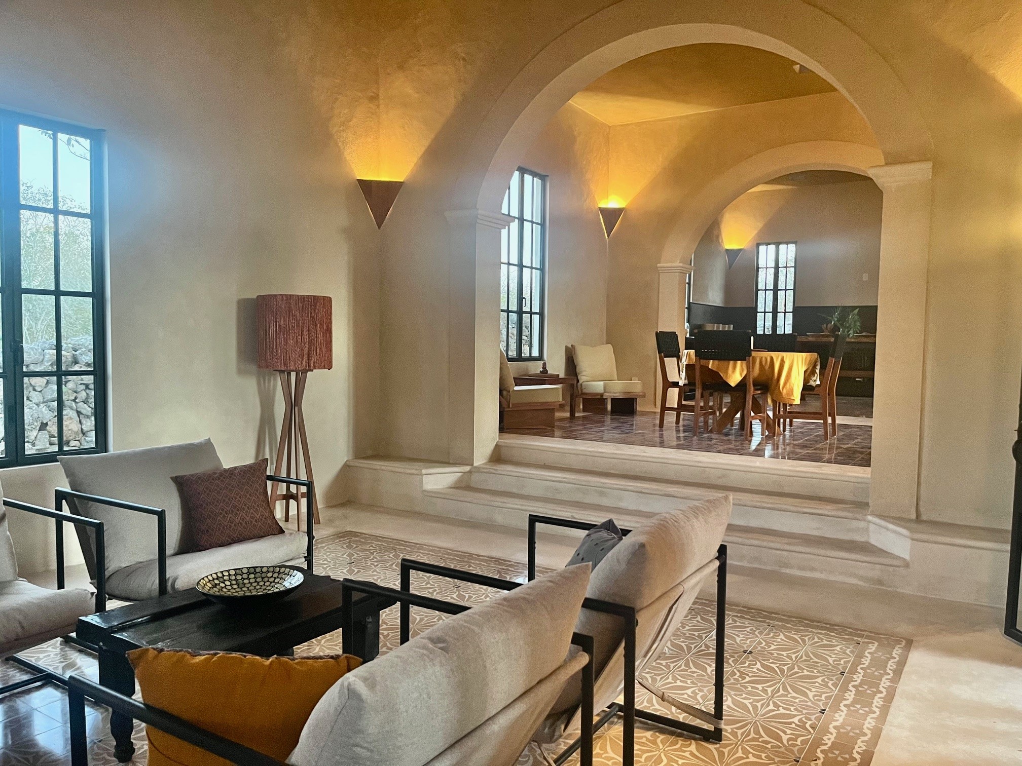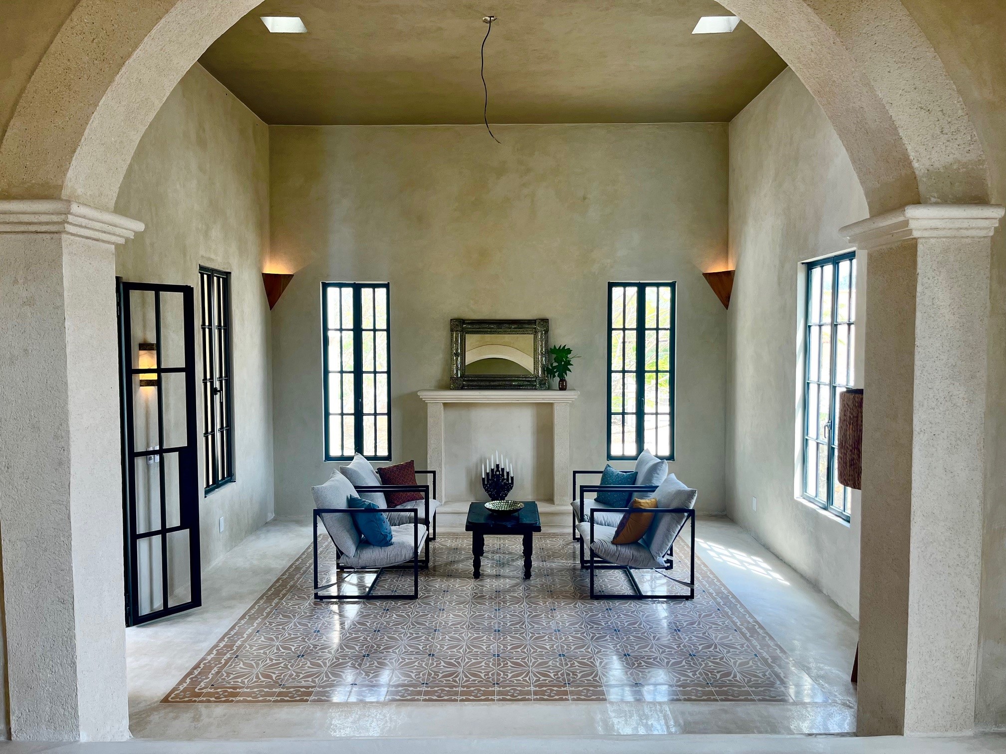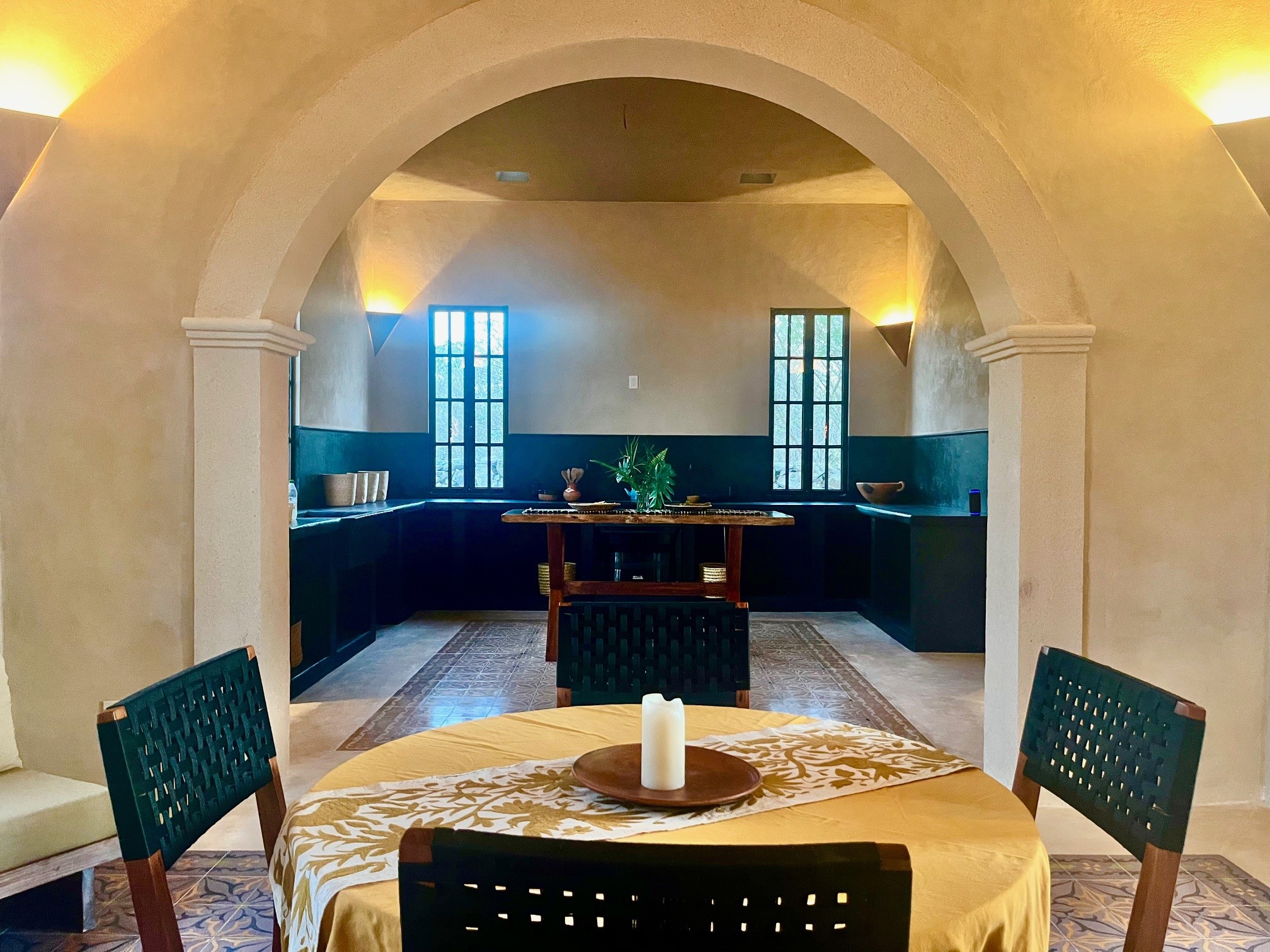 Relax in the privacy of your own central courtyard with pool, palm trees and sunset vistas. This new build is located at the end of a small private lane lined with other pretty homes. The country setting makes you forget you are only 7 minutes from downtown Izamal, designated one of Mexico's 'Magical Towns'. The state of Yucatan is known for being one of Mexico's safest and the cultural and culinary scenes of the region are renowned. Just one hour from Merida and 8 minutes to the Tren Maya Station, this hacienda-style beauty features high ceilings, handmade pasta tile floors, steel windows, custom architectural details including stone and wood sconce light fixtures, and a private pool. A shortlist of finish details will be completed after an offer is accepted and prior to closing. This is a rare new construction home built in the style of the old haciendas but with all the comforts of modern electric, plumbing and a sensible layout.