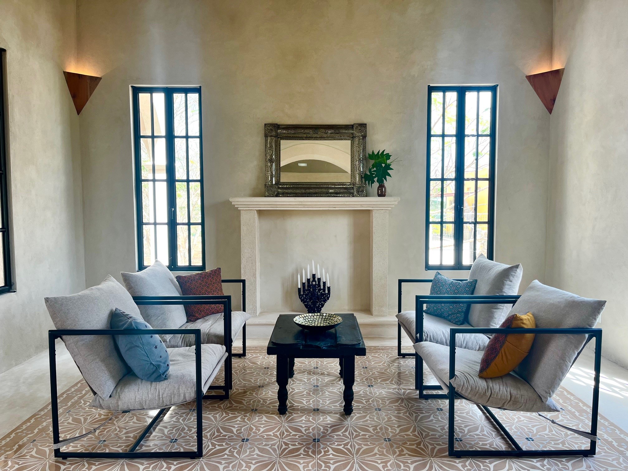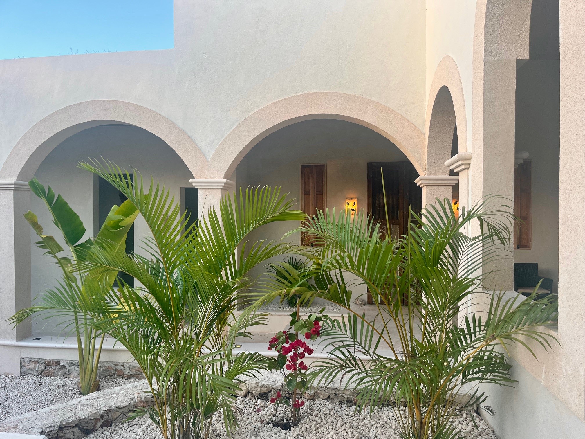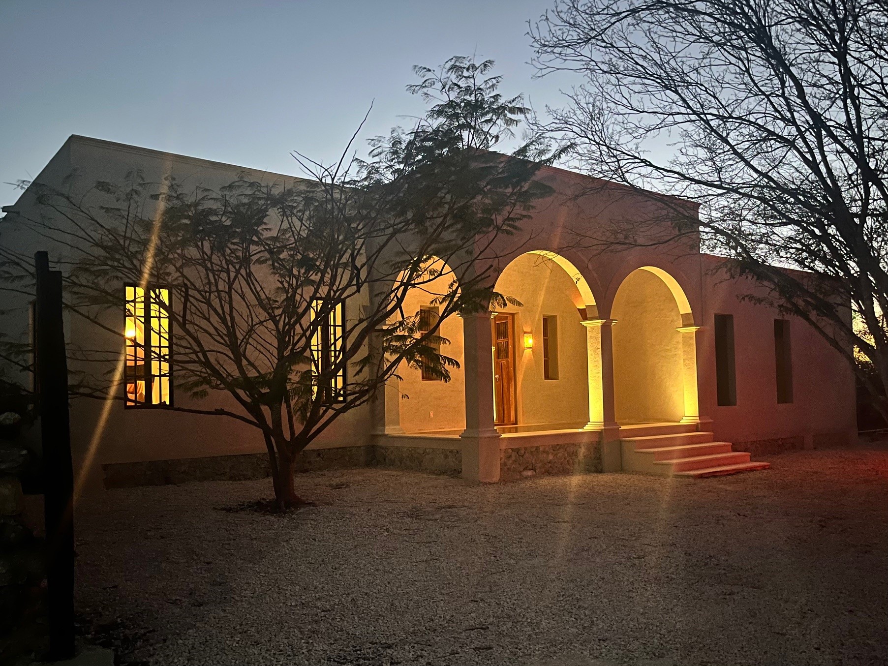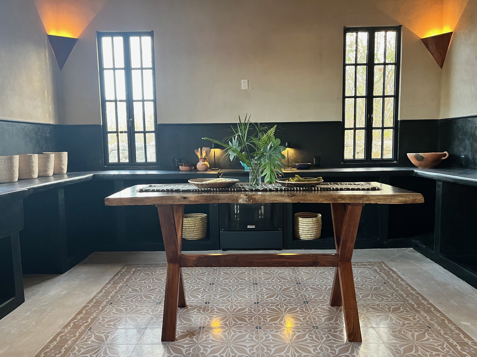 Relax in the privacy of your own central courtyard with pool, palm trees and sunset vistas. This new build is located at the end of a small private lane lined with other pretty homes. The country setting makes you forget you are only 7 minutes from downtown Izamal, designated one of Mexico's 'Magical Towns'. The state of Yucatan is known for being one of Mexico's safest and the cultural and culinary scenes of the region are renowned. Just one hour from Merida and 8 minutes to the Tren Maya Station, this hacienda-style beauty features high ceilings, handmade pasta tile floors, steel windows, custom architectural details including stone and wood sconce light fixtures, and a private pool. A shortlist of finish details will be completed after an offer is accepted and prior to closing. This is a rare new construction home built in the style of the old haciendas but with all the comforts of modern electric, plumbing and a sensible layout.