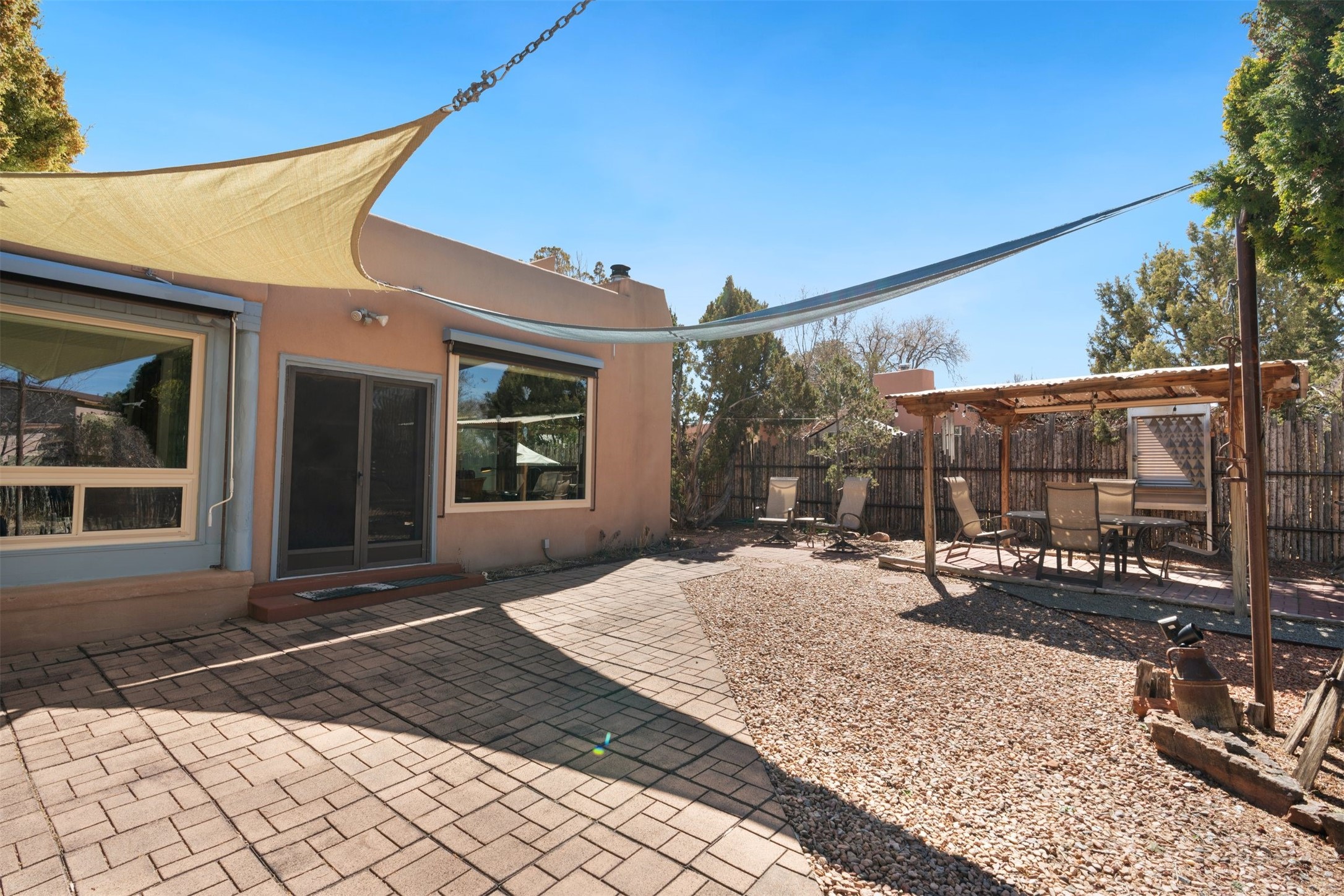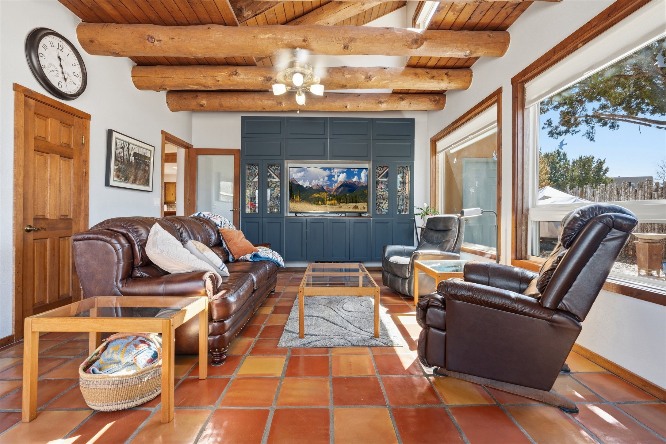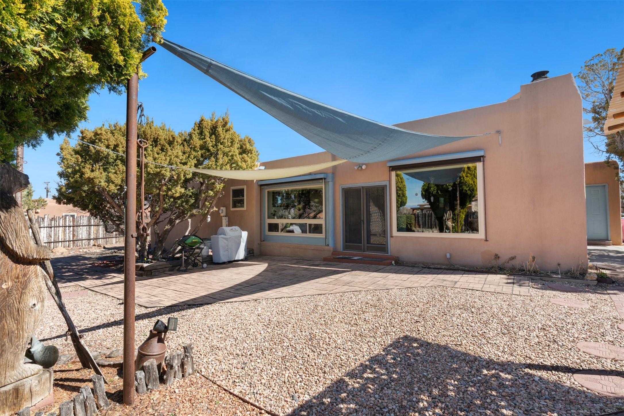 Located in the highly desirable Villa Caballero subdivision, this classic Santa Fe Pueblo Revival-style home offers timeless charm and thoughtful updates throughout. Authentic viga wood-beamed ceilings, spacious sun-drenched rooms, and rich architectural details create a warm and inviting atmosphere.At the heart of the home is a stunning great room with soaring ceilings and a cozy wood-burning fireplace--one of two fireplaces in the home--adding both character and comfort. The second fireplace enhances the main living area, making this home especially welcoming during cooler months.With three bedrooms and 2.5 baths, the floor plan is both flexible and functional. Just off the primary suite and main living areas is a charming heated and cooled sunroom--ideal for a home office, art studio, fitness space, or peaceful retreat.The kitchen maintains its original character while featuring updated appliances, and the bathrooms have been tastefully modernized for comfort and style.Situated on a generous 1/3-acre lot, the property also offers refrigerated air conditioning and the added value of a newly installed silicone roof coating in 2022, with warranty. Outdoor living is effortless with an inviting front porch, low-maintenance xeriscape landscaping, and a large yard with plenty of room to roam.Completing the package is a two-car garage and a gated area perfect for RV or additional vehicle parking.This is classic Santa Fe living in a sought-after location--blending architectural charm, modern conveniences, and practical updates.