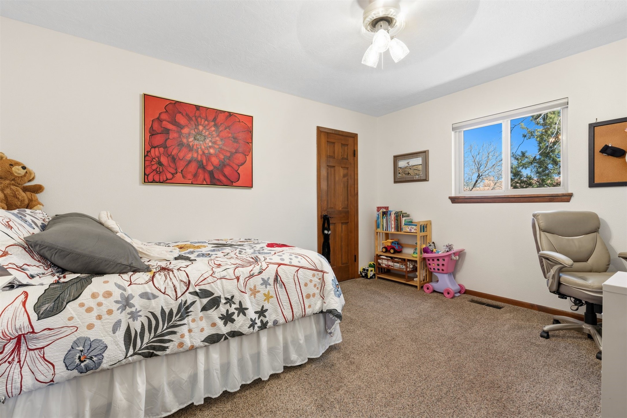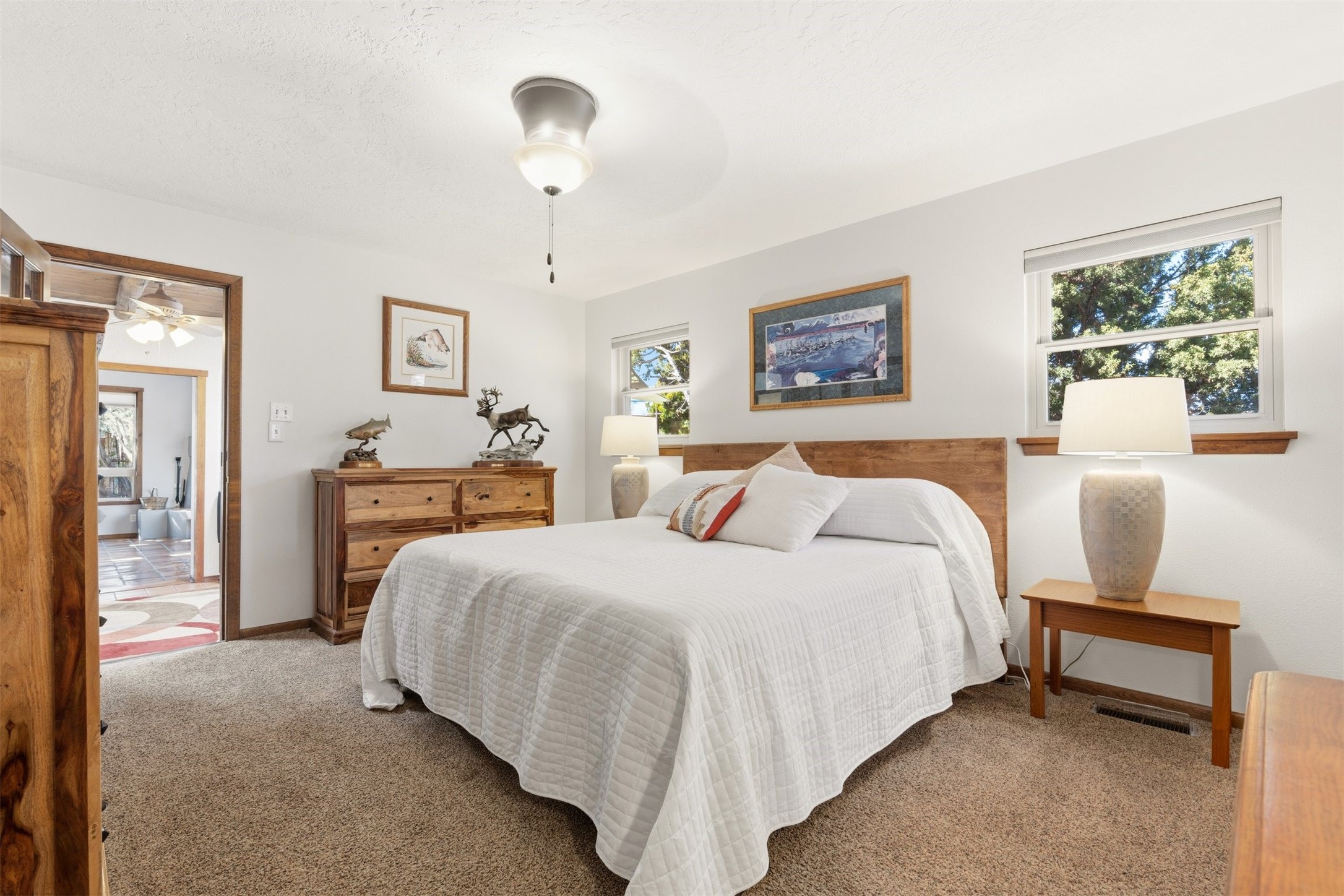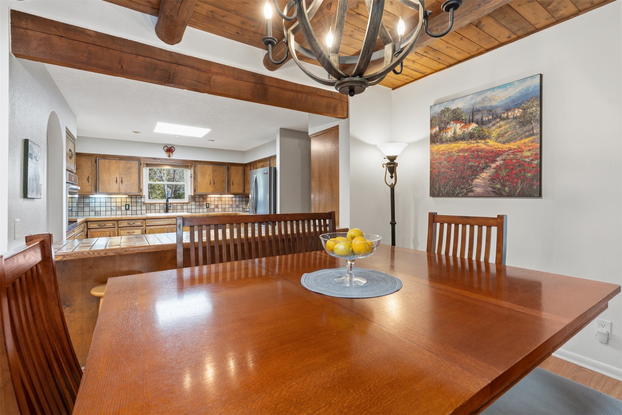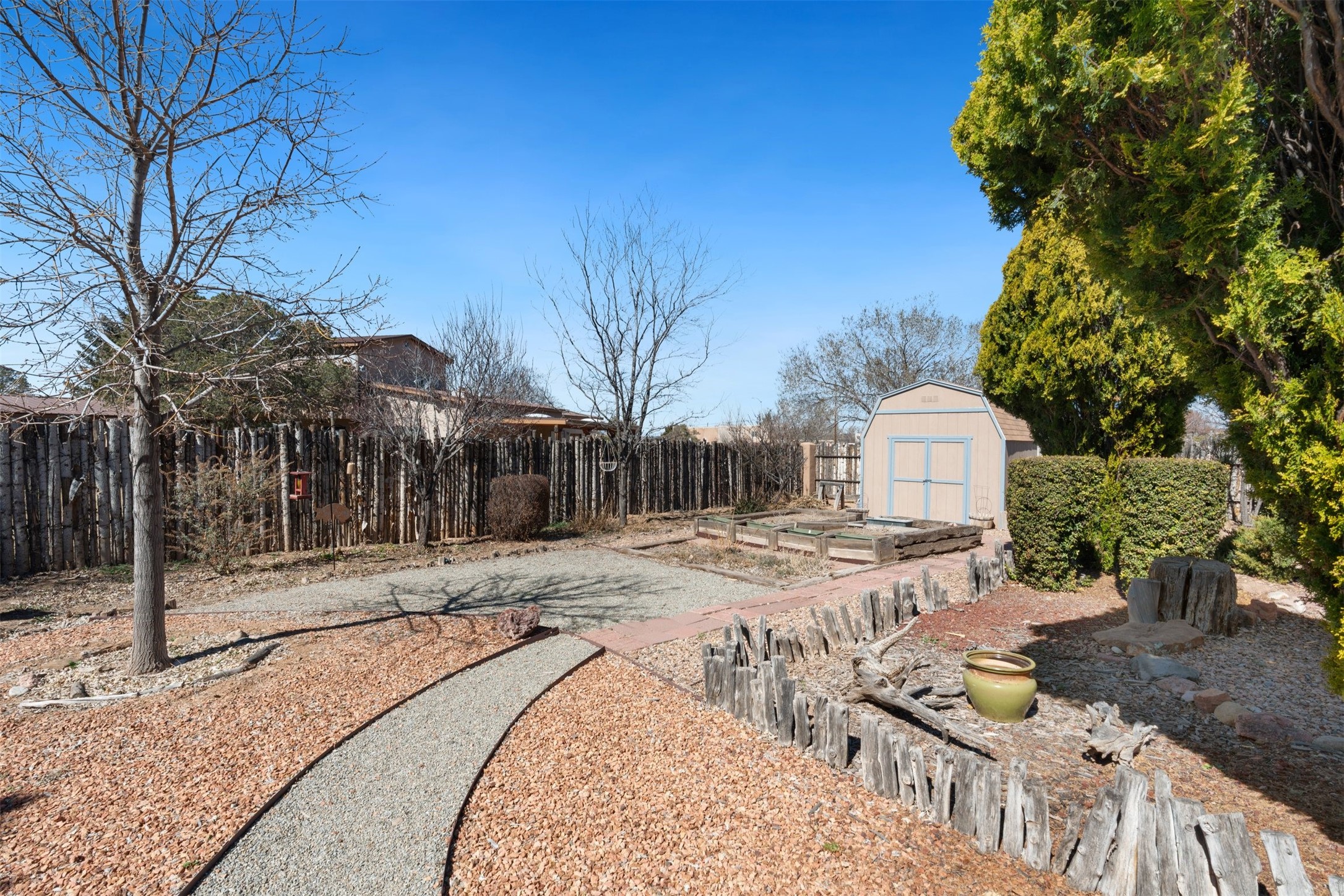 Located in the highly desirable Villa Caballero subdivision, this classic Santa Fe Pueblo Revival-style home offers timeless charm and thoughtful updates throughout. Authentic viga wood-beamed ceilings, spacious sun-drenched rooms, and rich architectural details create a warm and inviting atmosphere.At the heart of the home is a stunning great room with soaring ceilings and a cozy wood-burning fireplace--one of two fireplaces in the home--adding both character and comfort. The second fireplace enhances the main living area, making this home especially welcoming during cooler months.With three bedrooms and 2.5 baths, the floor plan is both flexible and functional. Just off the primary suite and main living areas is a charming heated and cooled sunroom--ideal for a home office, art studio, fitness space, or peaceful retreat.The kitchen maintains its original character while featuring updated appliances, and the bathrooms have been tastefully modernized for comfort and style.Situated on a generous 1/3-acre lot, the property also offers refrigerated air conditioning and the added value of a newly installed silicone roof coating in 2022, with warranty. Outdoor living is effortless with an inviting front porch, low-maintenance xeriscape landscaping, and a large yard with plenty of room to roam.Completing the package is a two-car garage and a gated area perfect for RV or additional vehicle parking.This is classic Santa Fe living in a sought-after location--blending architectural charm, modern conveniences, and practical updates.