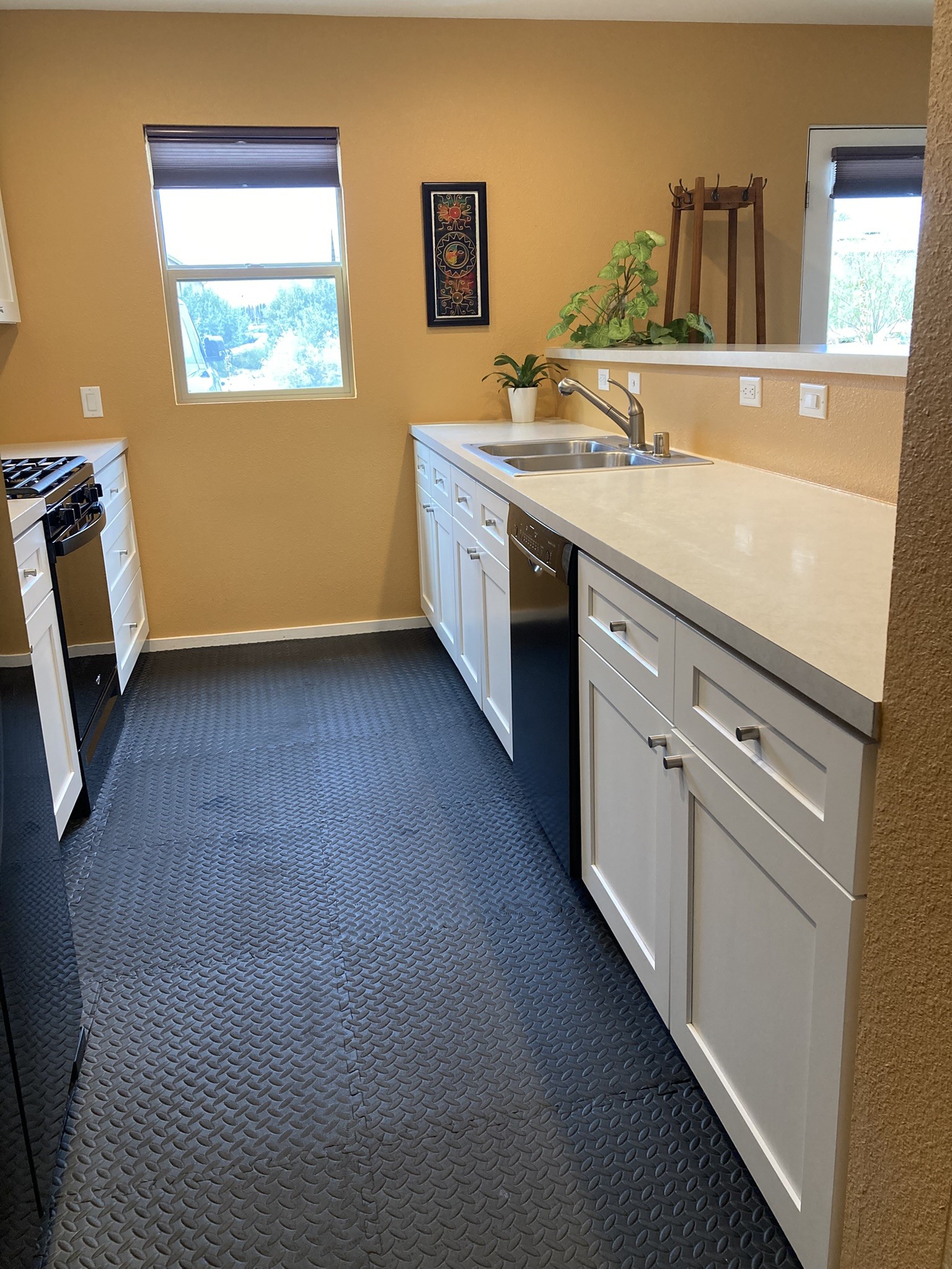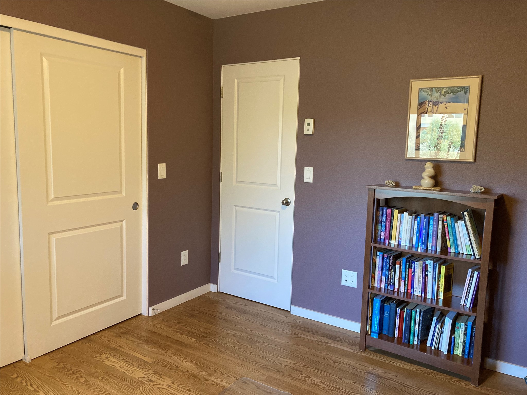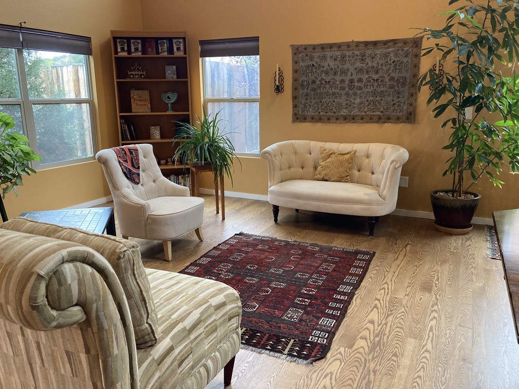 Discover an exceptional blend of comfort, style, and location at this beautifully upgraded 4 bed, 2 bath residence in River Trail Lofts. With direct access to the Santa Fe River Trail from your front door, this lightly used 1,877+/- sq ft home offers bright, inviting living spaces and a thoughtful two-story layout. Interior features include radiant heat, real red oak flooring, high and vaulted ceilings, deep closets, upgraded kitchen appliances, ceiling fans, and top down bottom up cellular blinds throughout. The kitchen and baths feature padded gym flooring for added comfort, with tile in the laundry room. The private backyard has been transformed into a serene outdoor retreat with a custom hardwood deck, fountain, custom storage shed, flower beds, new ground coverings, shrubs, and automated irrigation. It feels like a true extension of the living space and works well for quiet enjoyment or outdoor dining. Ample parking adds to the convenience. River Trail Lofts is tucked below Alameda with no through street, offering a peaceful setting with minimal traffic while still being minutes from downtown, the Railyard, shopping, and the airport.