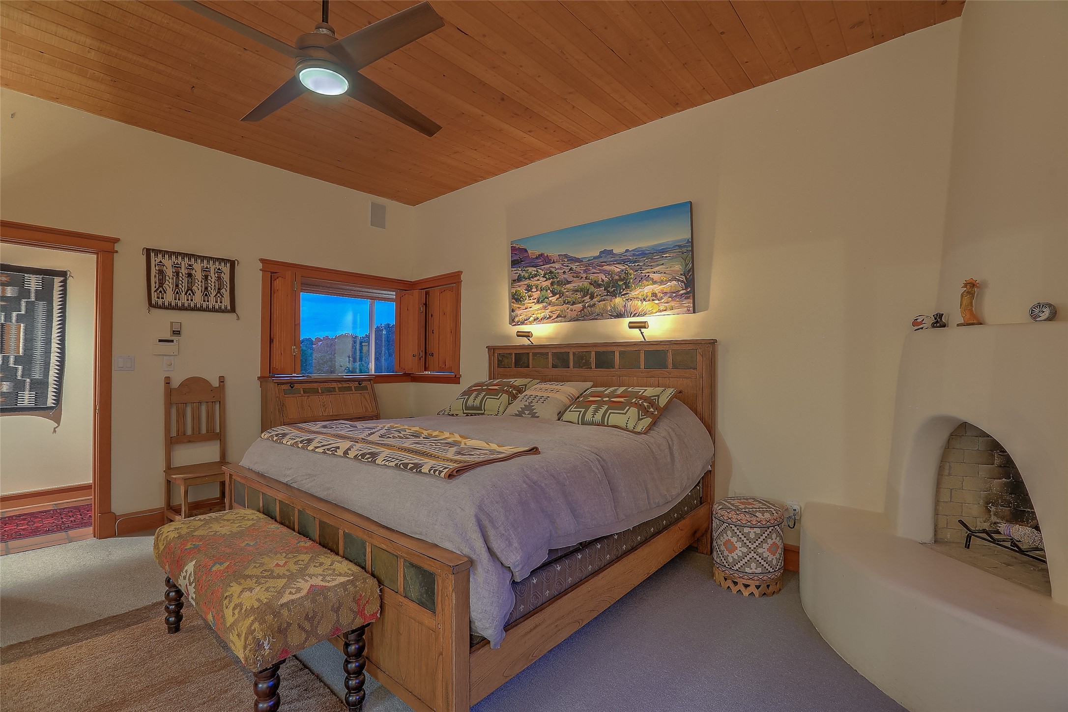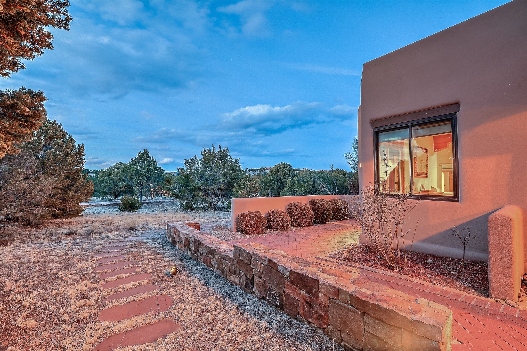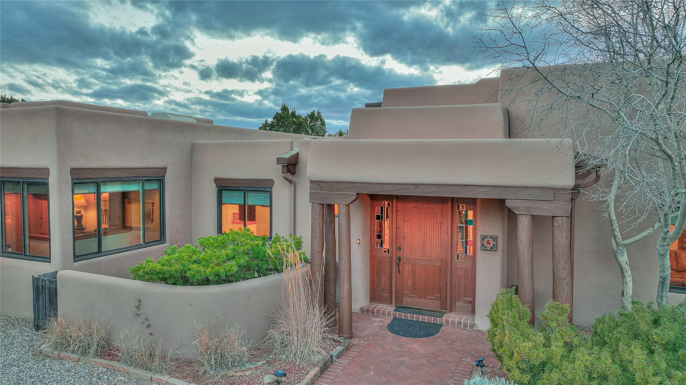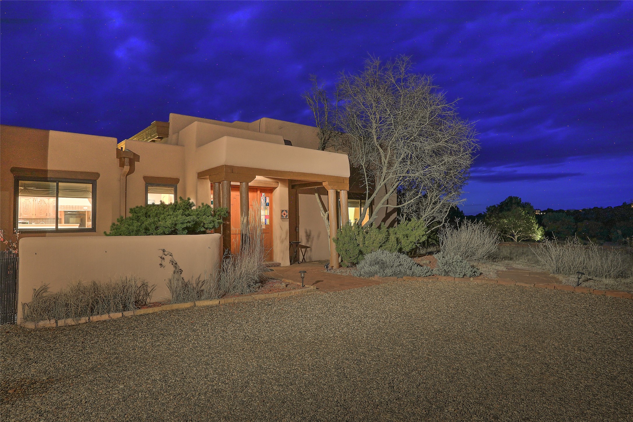 Welcome to lovely 4 Morning Glory! Salva Tierra home with Sangre views and sunset beauty. This is a SHOWCASE HOME. Thoughtful architectural custom design and handcrafted woodwork throughout with lots of natural light, this single level home (two steps to living room) is in absolutely pristine condition. Spacious master suite with kiva fireplace and sparkly custom bathroom near well planned powder room and walk in closet. Love to cook? This is a great space for entertaining! The kitchen is more than a kitchen... it is a welcoming place to spend time with loved ones, with a wonderful layout and is cozy yet also has generous counter and cabinet space plus an eat-in breakfast nook that is a favorite spot. Formal dining area too with a walk out dining area under the back portal. Private and quiet third bedroom with fireplace, has great natural light & can also be a bright office or studio space with a walk out door to access the back portal. Beautifully landscaped & low maintenance gardens. Multiple outdoor patio spaces; with a back sunset portal and a walled master bedroom patio that also has garage access and access to the yard. All rooms have outside access. This makes indoor/outdoor living truly accessible and enjoyable! Forced air heating system + AIR CONDITIONING. Newer windows & newer roof. Dream 2 car garage with lots of built-in storage keeps everything neat & organized. Sonos sound system stays too!