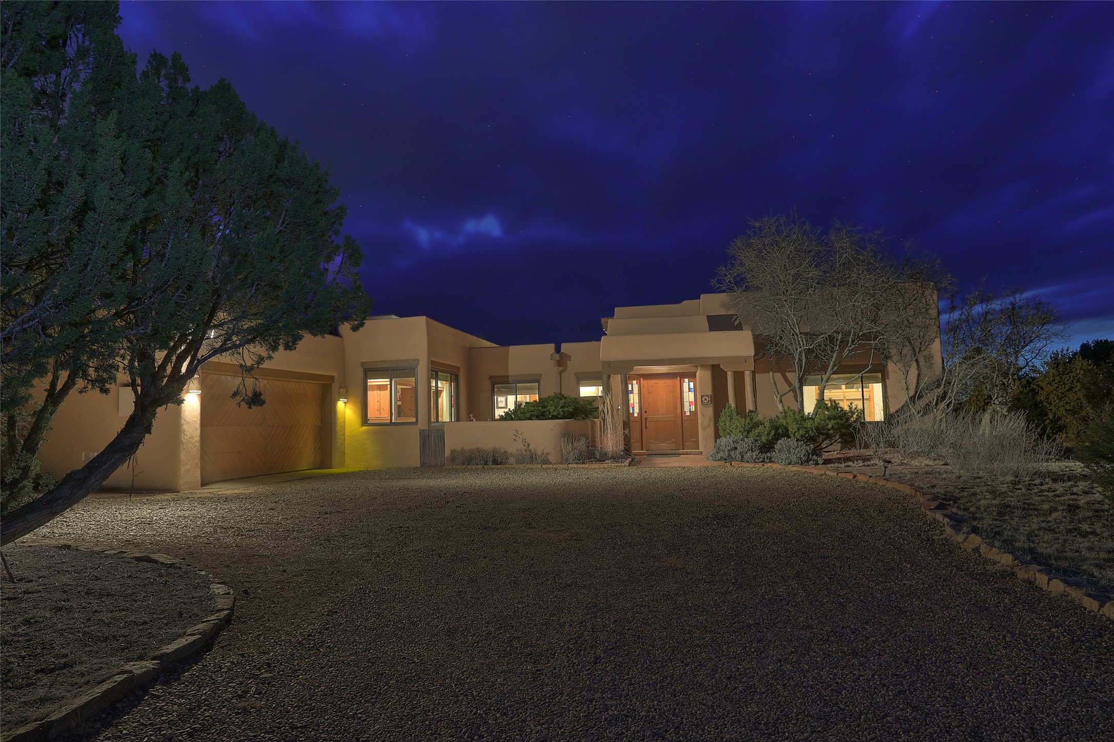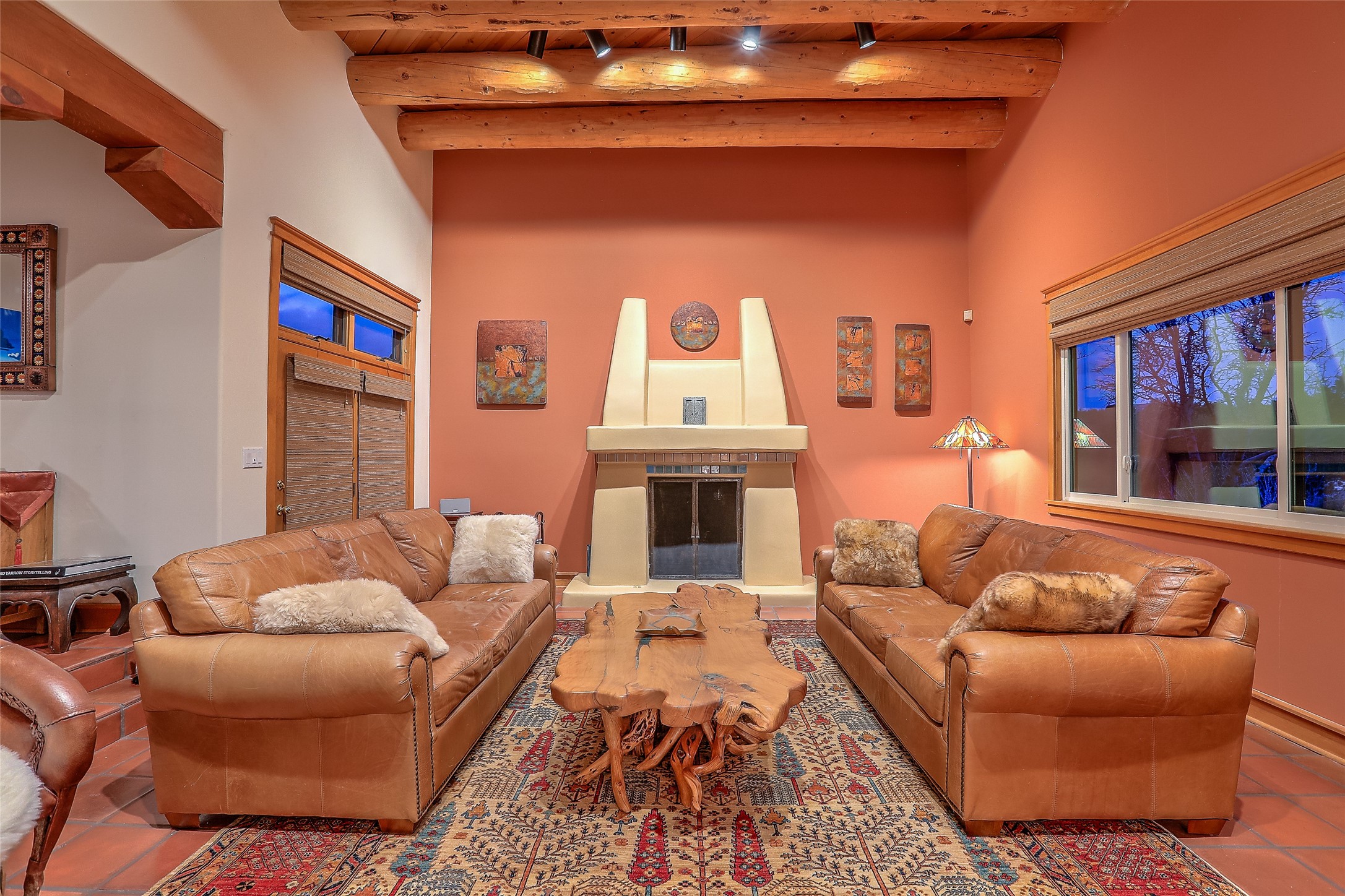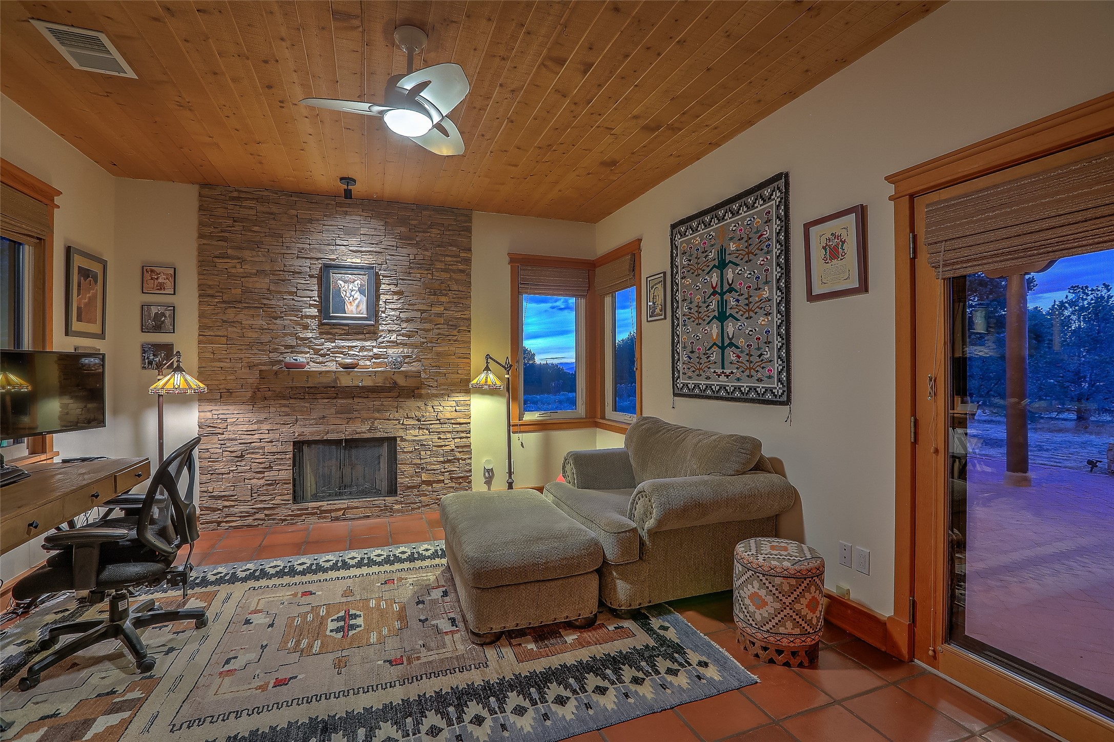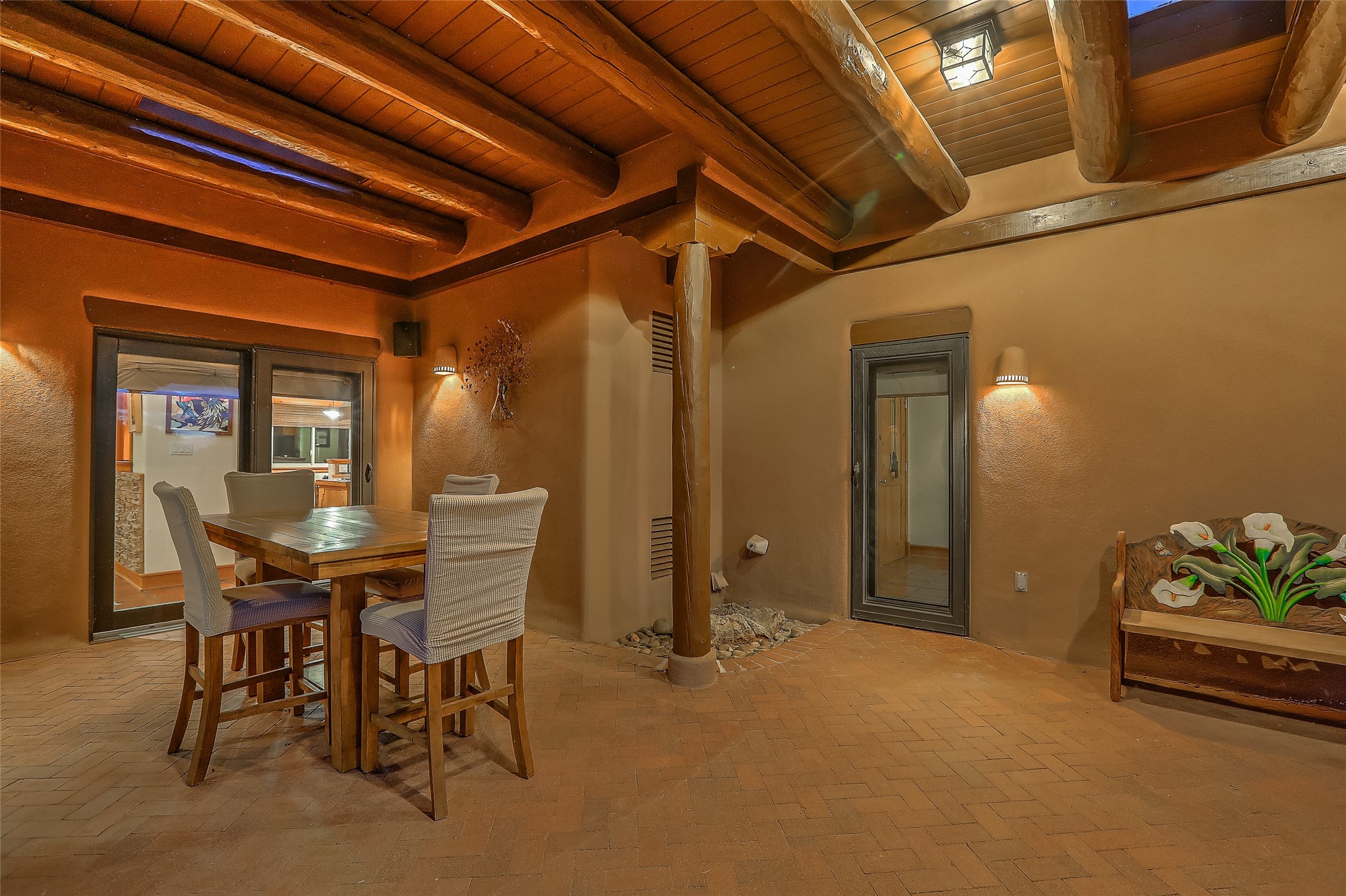 Welcome to lovely 4 Morning Glory! Salva Tierra home with Sangre views and sunset beauty. This is a SHOWCASE HOME. Thoughtful architectural custom design and handcrafted woodwork throughout with lots of natural light, this single level home (two steps to living room) is in absolutely pristine condition. Spacious master suite with kiva fireplace and sparkly custom bathroom near well planned powder room and walk in closet. Love to cook? This is a great space for entertaining! The kitchen is more than a kitchen... it is a welcoming place to spend time with loved ones, with a wonderful layout and is cozy yet also has generous counter and cabinet space plus an eat-in breakfast nook that is a favorite spot. Formal dining area too with a walk out dining area under the back portal. Private and quiet third bedroom with fireplace, has great natural light & can also be a bright office or studio space with a walk out door to access the back portal. Beautifully landscaped & low maintenance gardens. Multiple outdoor patio spaces; with a back sunset portal and a walled master bedroom patio that also has garage access and access to the yard. All rooms have outside access. This makes indoor/outdoor living truly accessible and enjoyable! Forced air heating system + AIR CONDITIONING. Newer windows & newer roof. Dream 2 car garage with lots of built-in storage keeps everything neat & organized. Sonos sound system stays too!