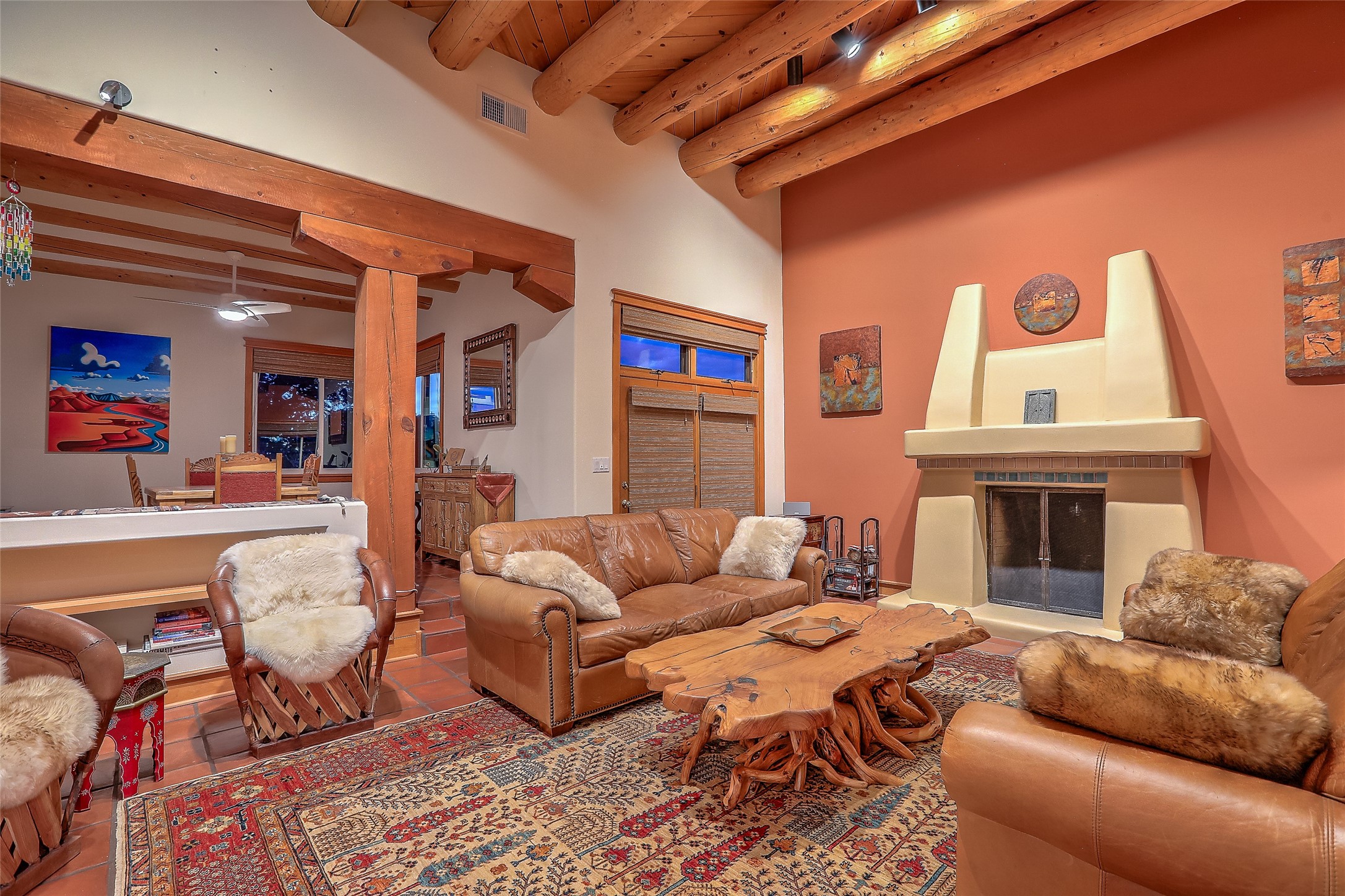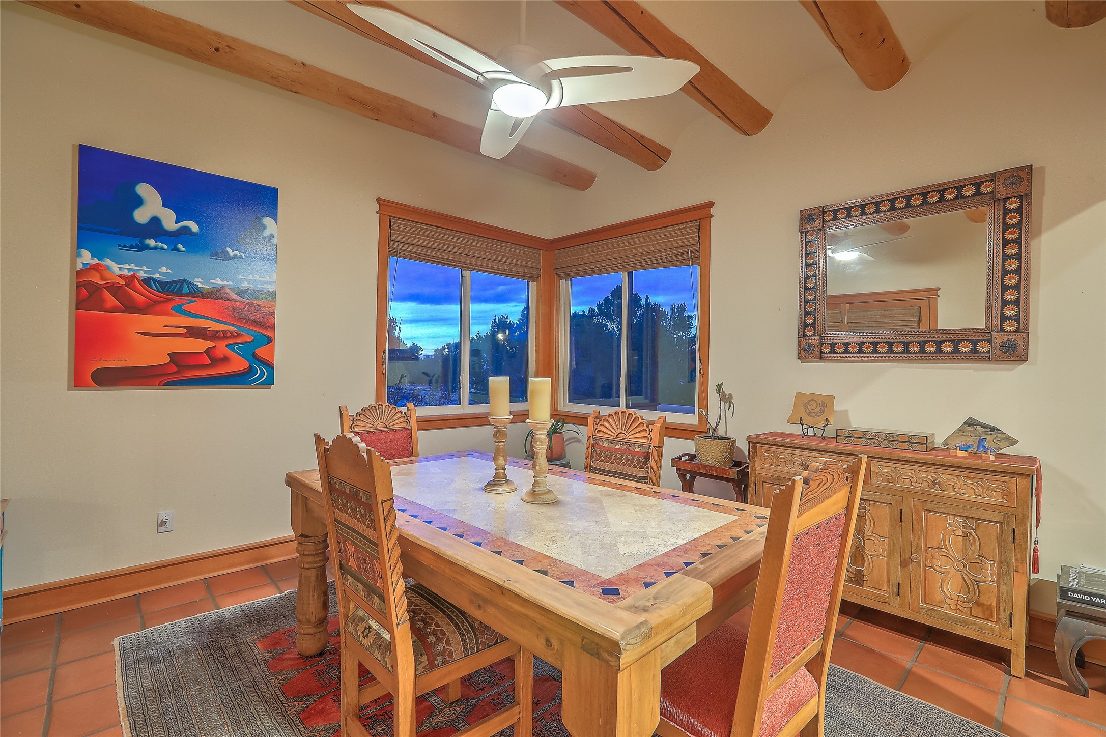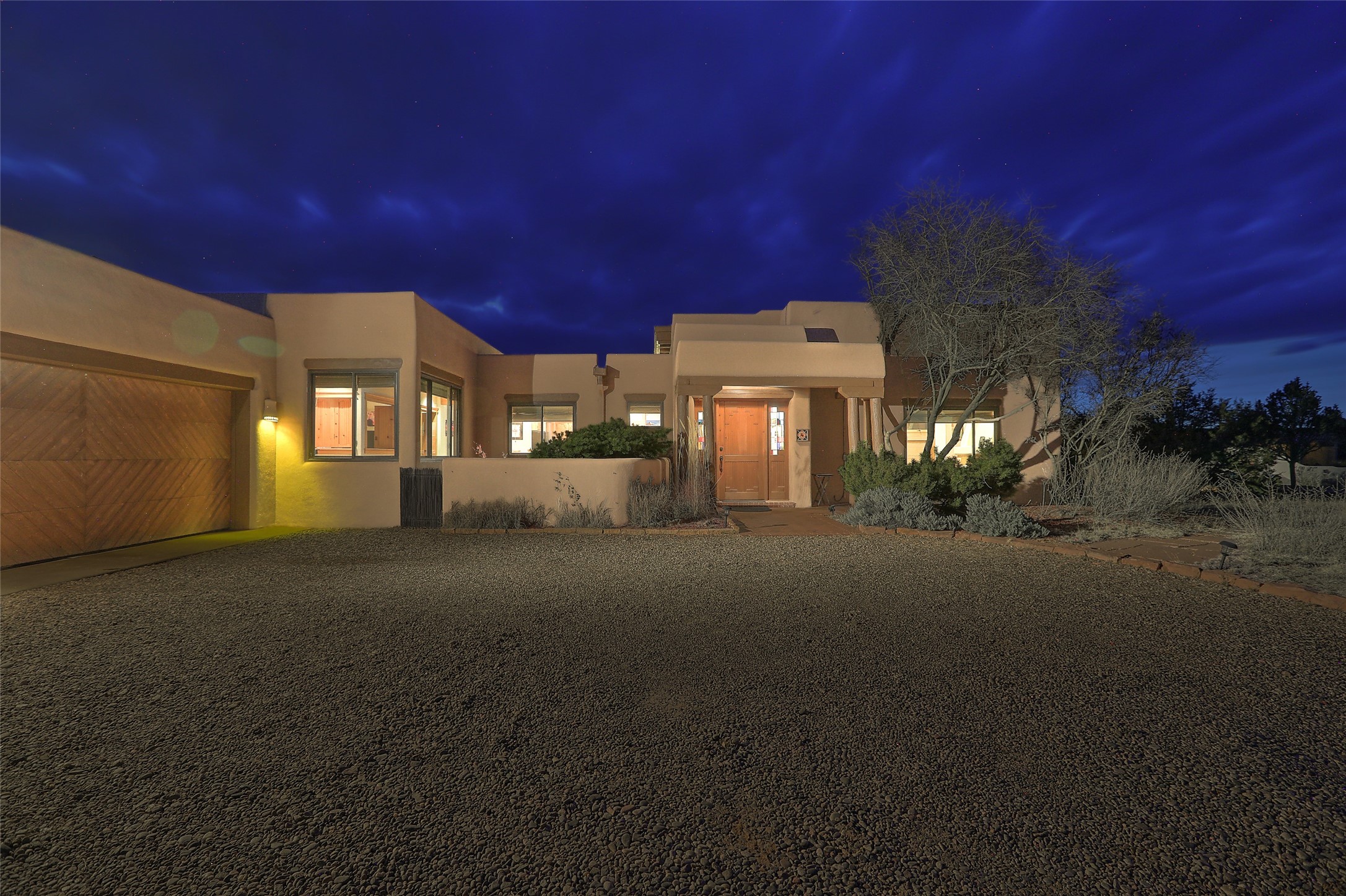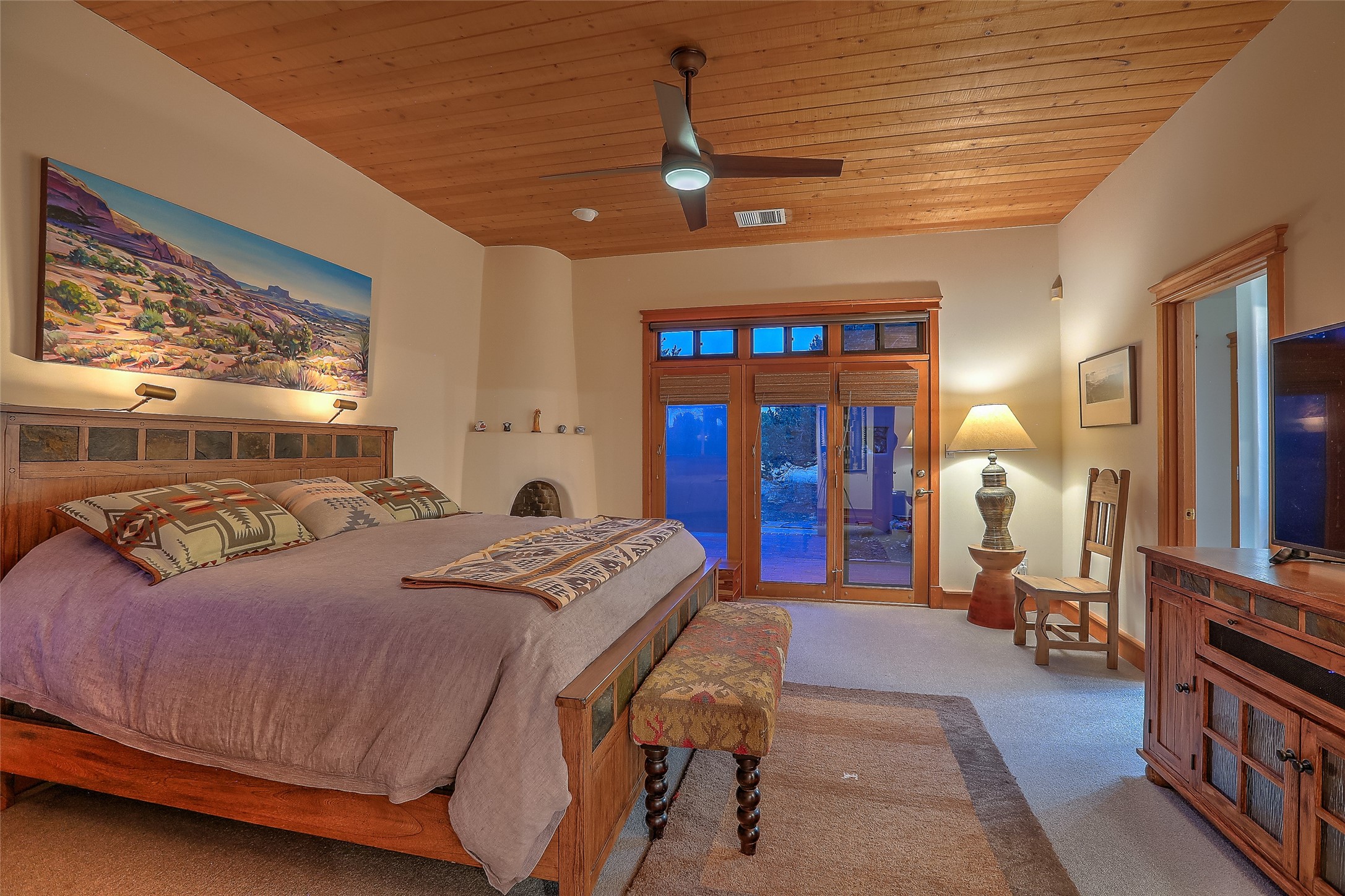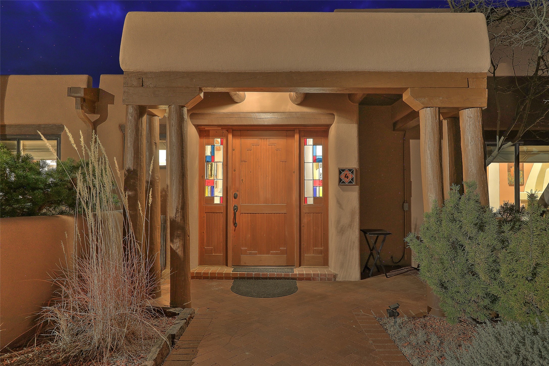 Welcome to lovely 4 Morning Glory! Salva Tierra home with Sangre views and sunset beauty. This is a SHOWCASE HOME. Thoughtful architectural custom design and handcrafted woodwork throughout with lots of natural light, this single level home (two steps to living room) is in absolutely pristine condition. Spacious master suite with kiva fireplace and sparkly custom bathroom near well planned powder room and walk in closet. Love to cook? This is a great space for entertaining! The kitchen is more than a kitchen... it is a welcoming place to spend time with loved ones, with a wonderful layout and is cozy yet also has generous counter and cabinet space plus an eat-in breakfast nook that is a favorite spot. Formal dining area too with a walk out dining area under the back portal. Private and quiet third bedroom with fireplace, has great natural light & can also be a bright office or studio space with a walk out door to access the back portal. Beautifully landscaped & low maintenance gardens. Multiple outdoor patio spaces; with a back sunset portal and a walled master bedroom patio that also has garage access and access to the yard. All rooms have outside access. This makes indoor/outdoor living truly accessible and enjoyable! Forced air heating system + AIR CONDITIONING. Newer windows & newer roof. Dream 2 car garage with lots of built-in storage keeps everything neat & organized. Sonos sound system stays too!