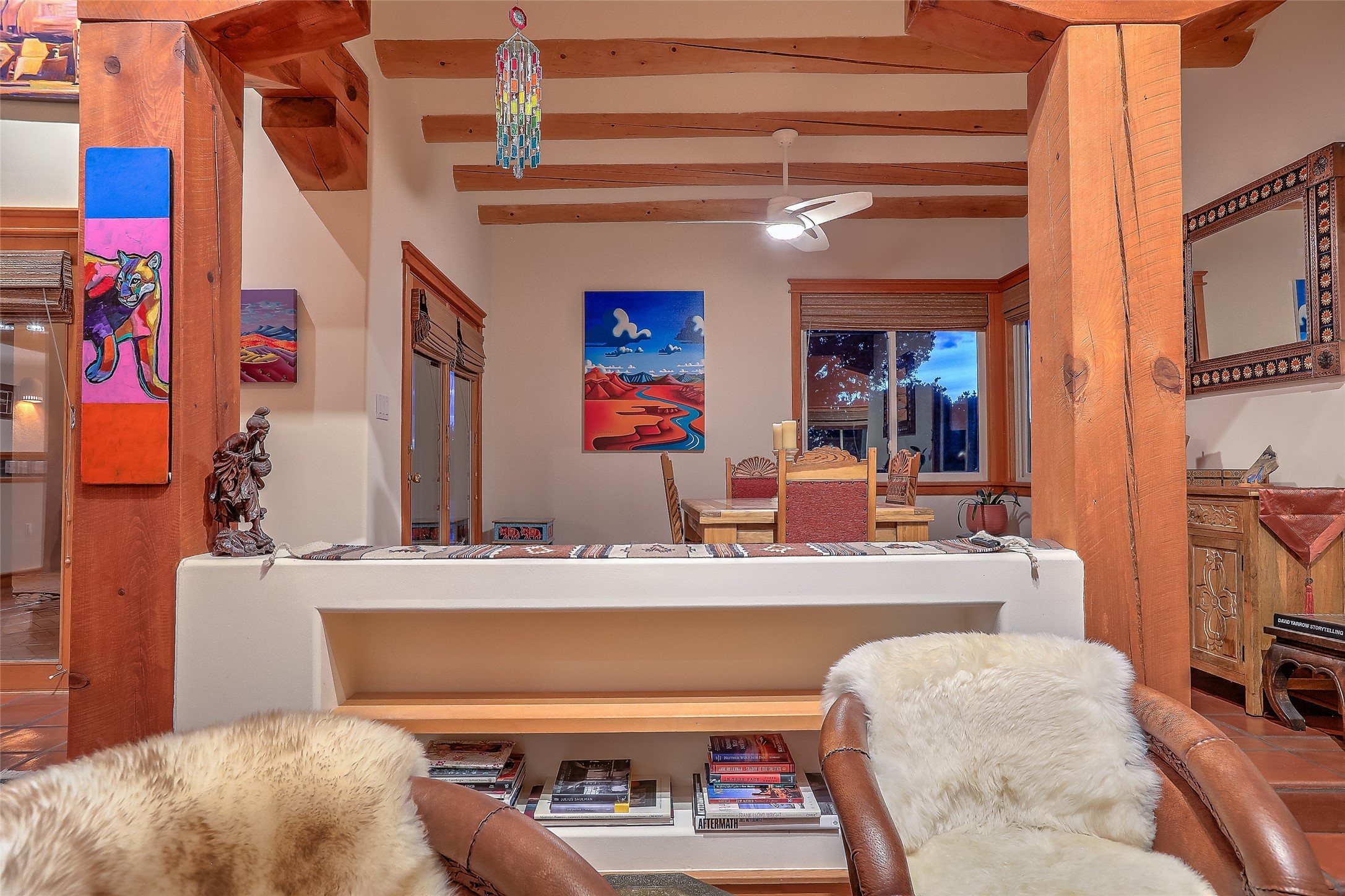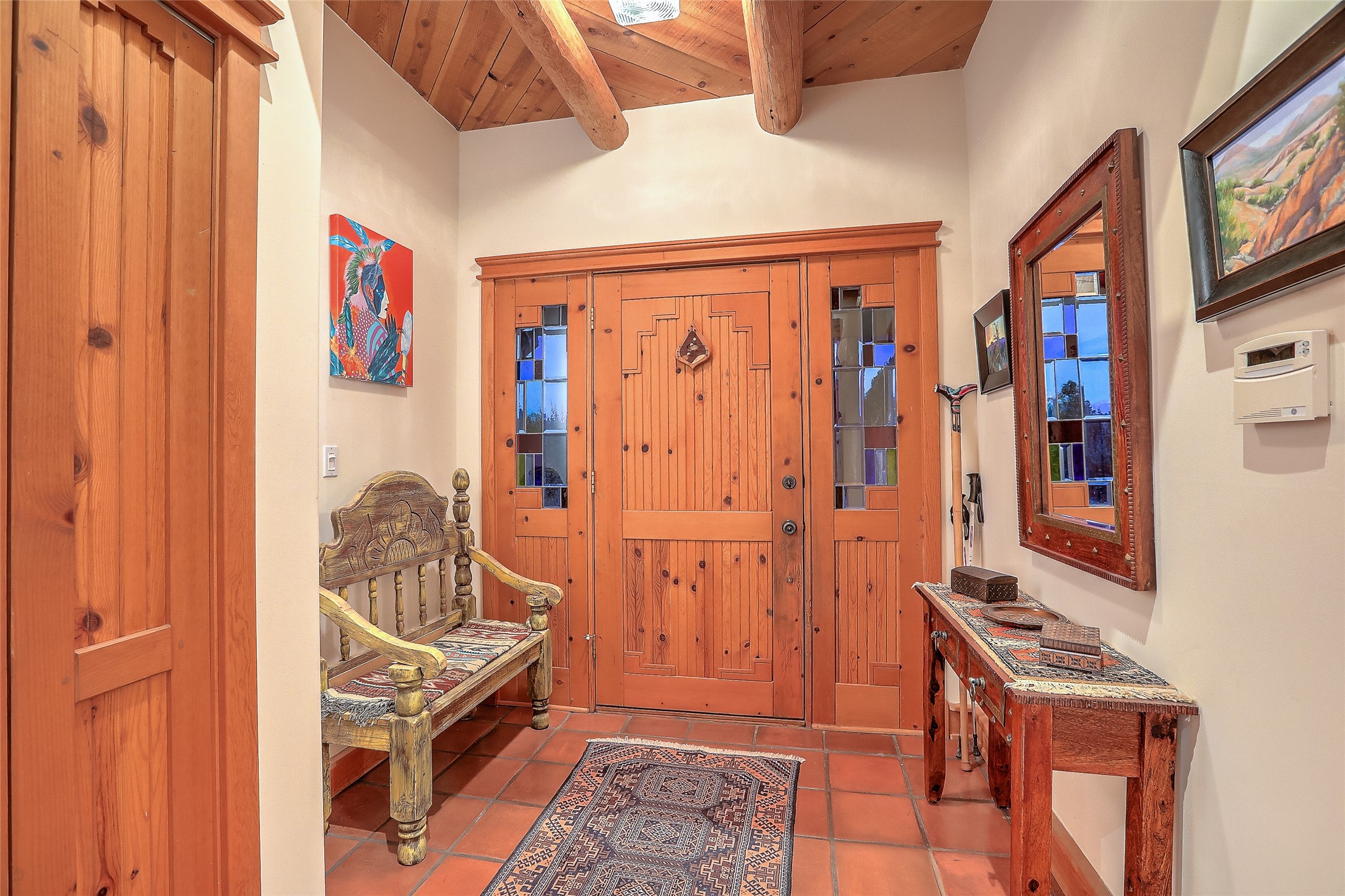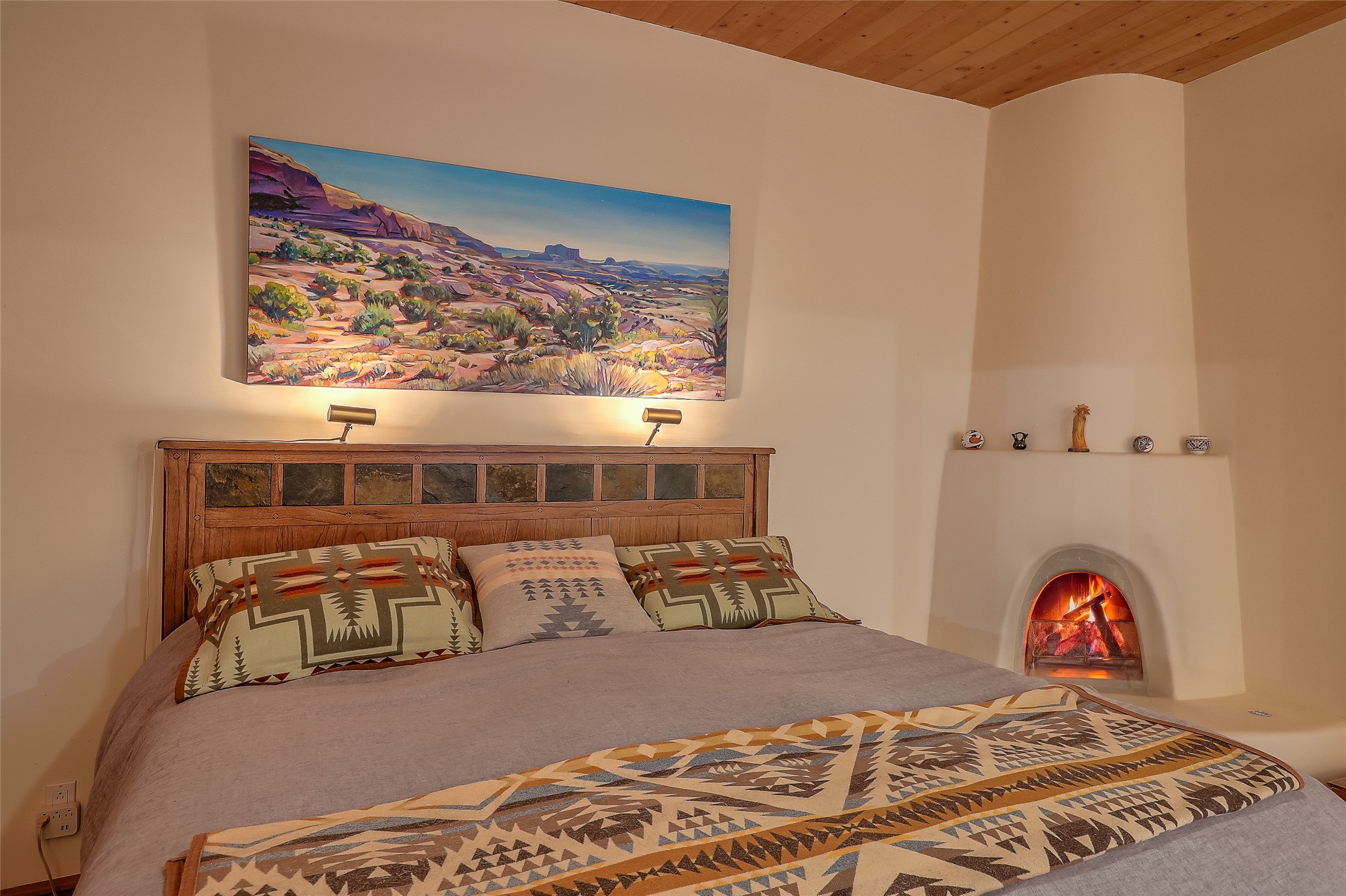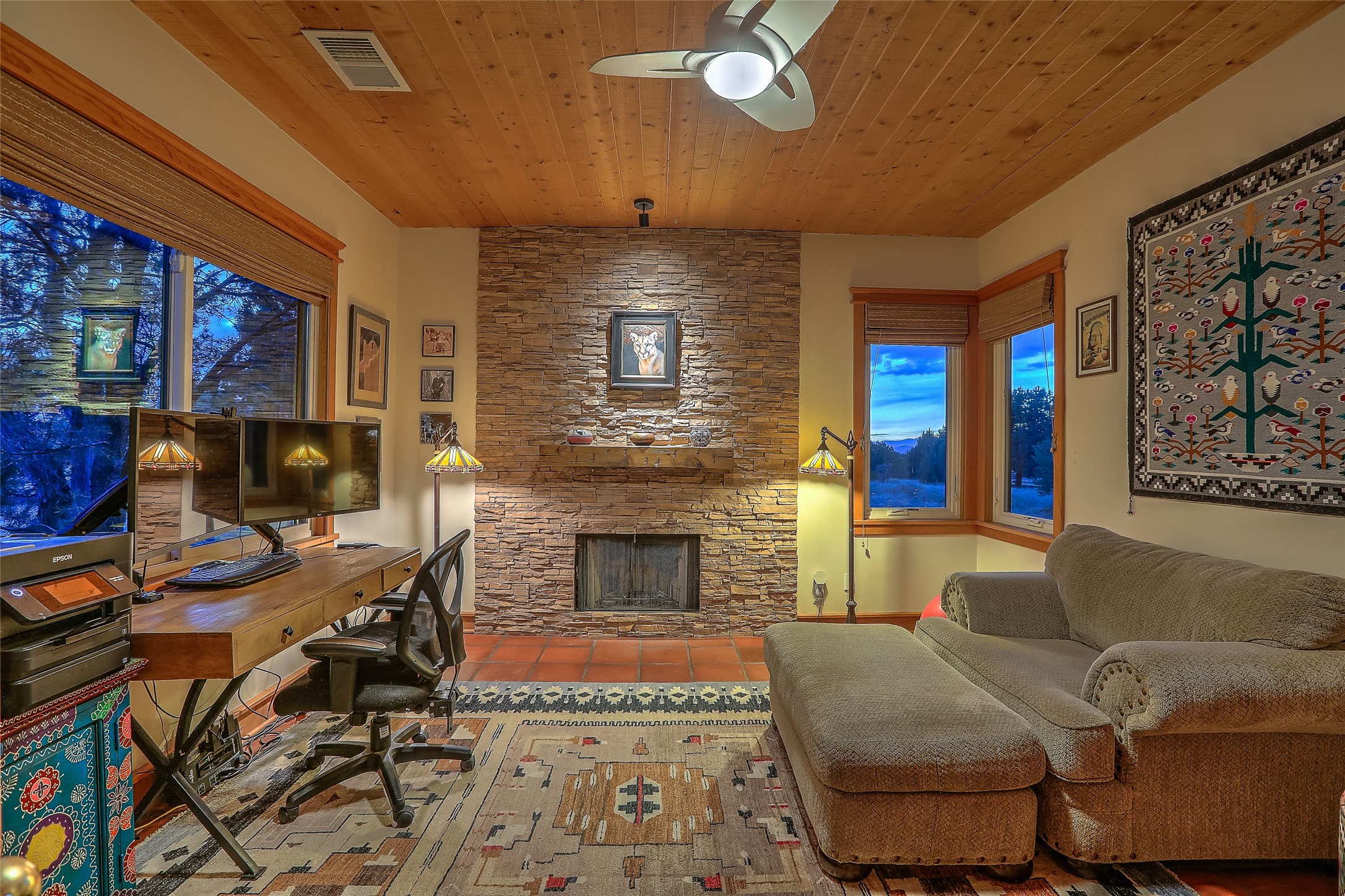 Welcome to lovely 4 Morning Glory! Salva Tierra home with Sangre views and sunset beauty. This is a SHOWCASE HOME. Thoughtful architectural custom design and handcrafted woodwork throughout with lots of natural light, this single level home (two steps to living room) is in absolutely pristine condition. Spacious master suite with kiva fireplace and sparkly custom bathroom near well planned powder room and walk in closet. Love to cook? This is a great space for entertaining! The kitchen is more than a kitchen... it is a welcoming place to spend time with loved ones, with a wonderful layout and is cozy yet also has generous counter and cabinet space plus an eat-in breakfast nook that is a favorite spot. Formal dining area too with a walk out dining area under the back portal. Private and quiet third bedroom with fireplace, has great natural light & can also be a bright office or studio space with a walk out door to access the back portal. Beautifully landscaped & low maintenance gardens. Multiple outdoor patio spaces; with a back sunset portal and a walled master bedroom patio that also has garage access and access to the yard. All rooms have outside access. This makes indoor/outdoor living truly accessible and enjoyable! Forced air heating system + AIR CONDITIONING. Newer windows & newer roof. Dream 2 car garage with lots of built-in storage keeps everything neat & organized. Sonos sound system stays too!