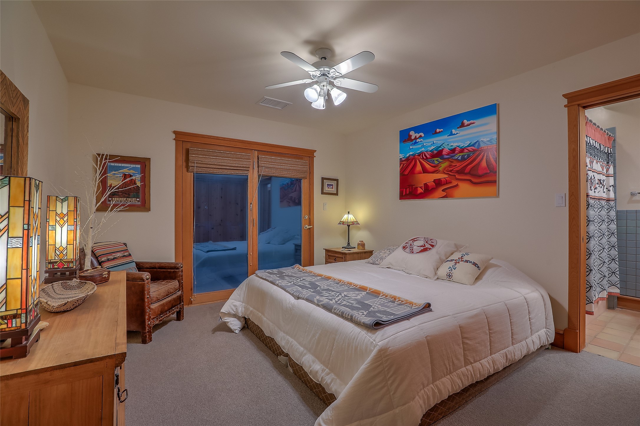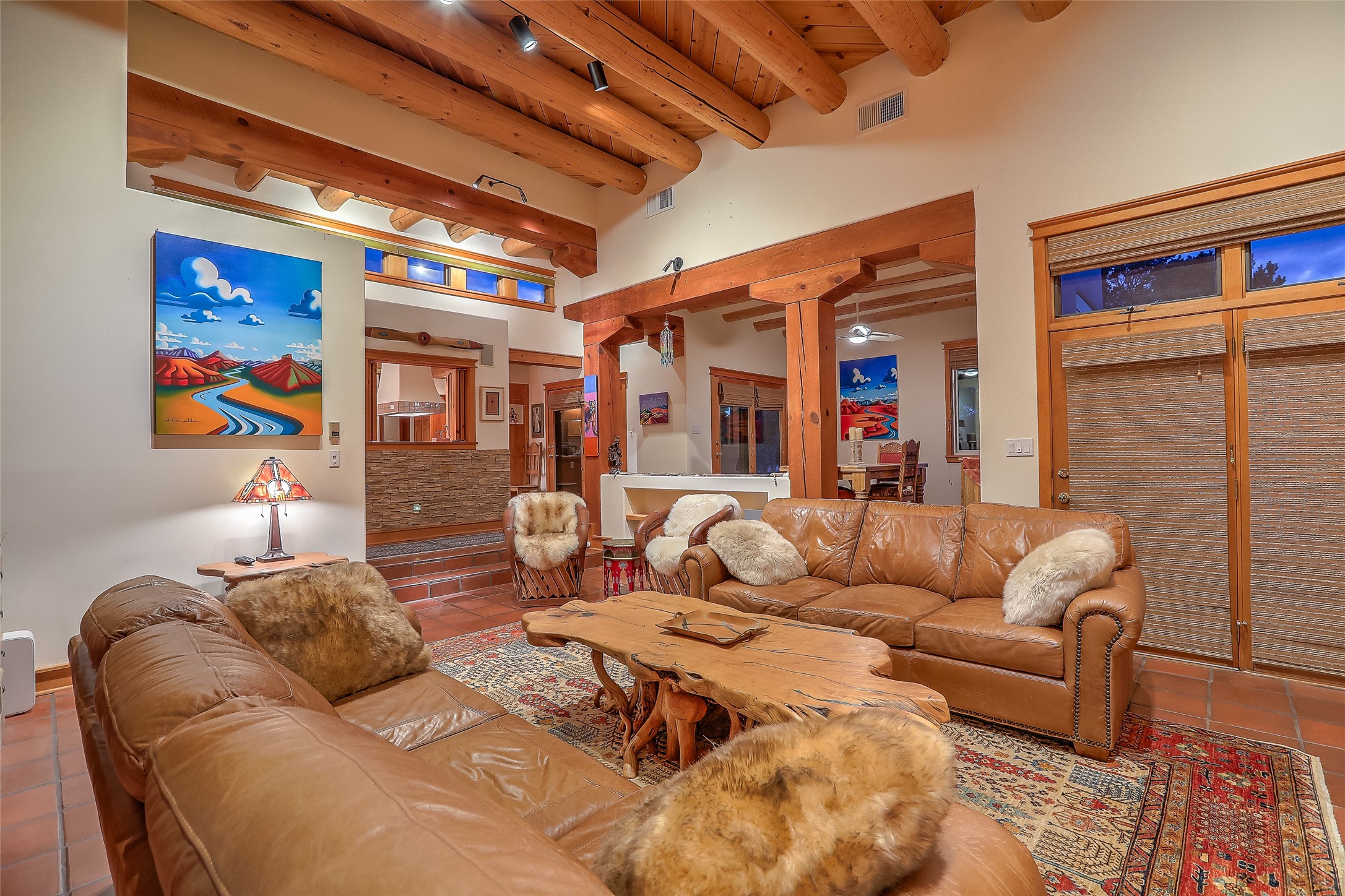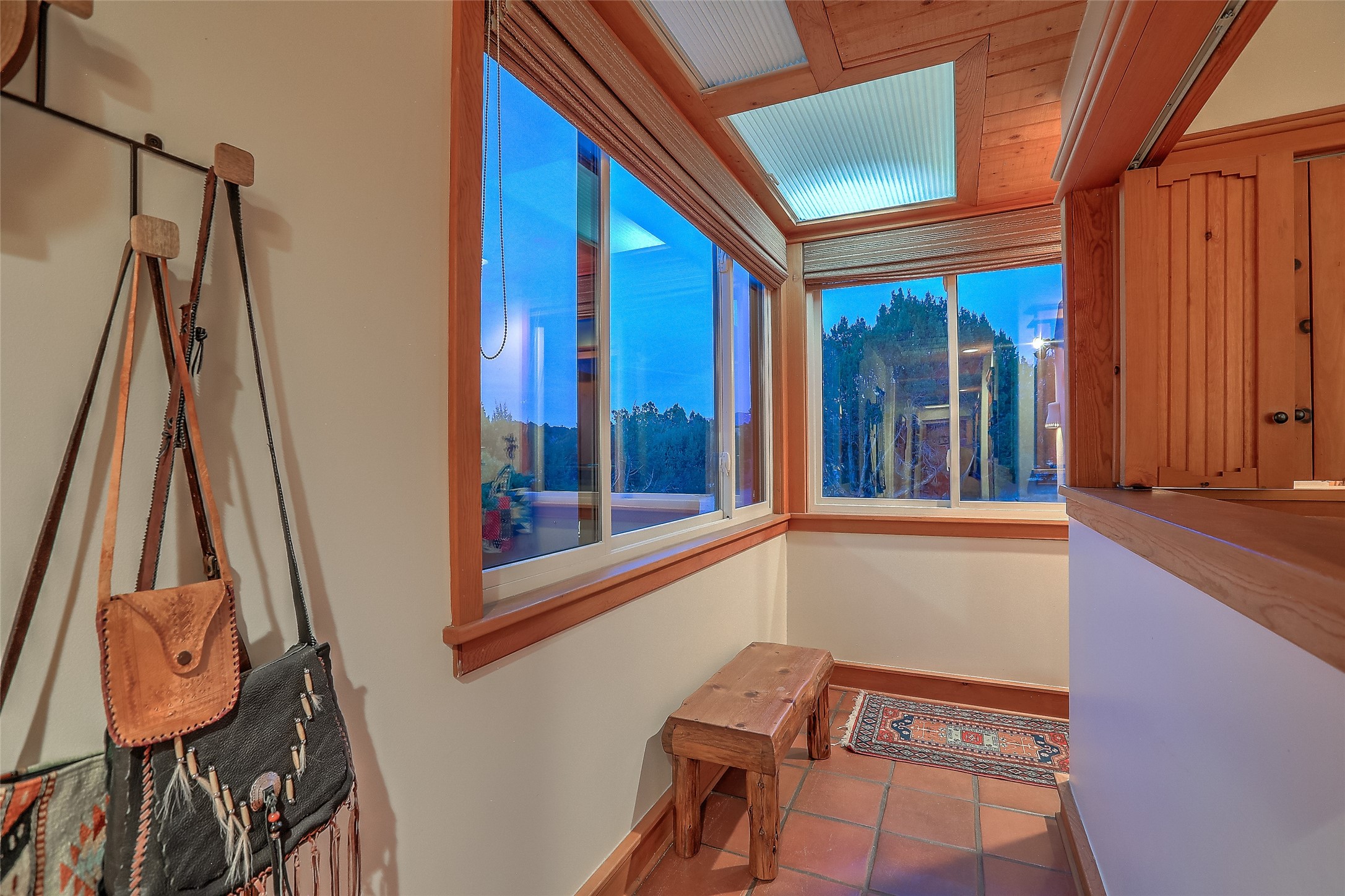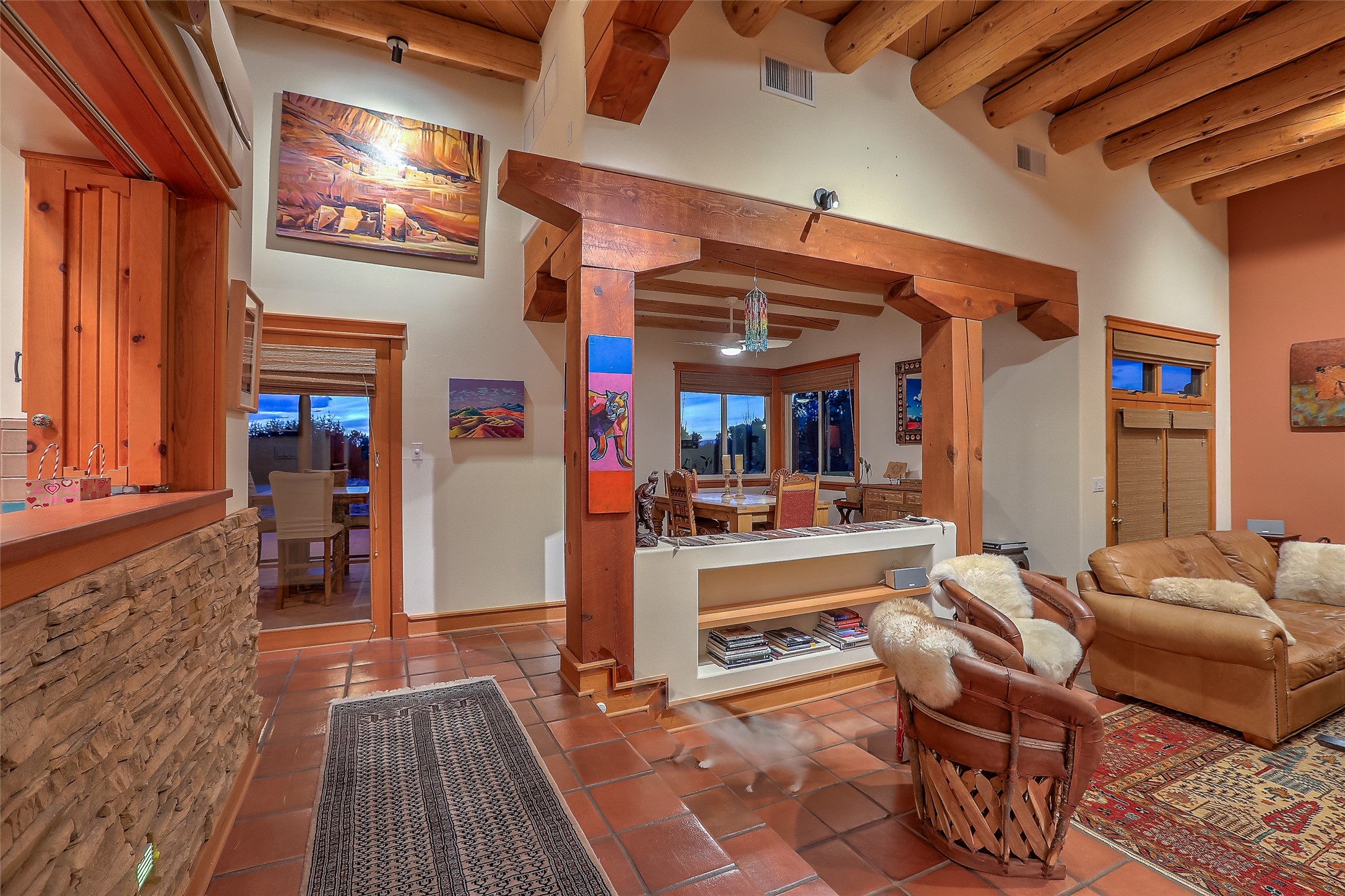 Welcome to lovely 4 Morning Glory! Salva Tierra home with Sangre views and sunset beauty. This is a SHOWCASE HOME. Thoughtful architectural custom design and handcrafted woodwork throughout with lots of natural light, this single level home (two steps to living room) is in absolutely pristine condition. Spacious master suite with kiva fireplace and sparkly custom bathroom near well planned powder room and walk in closet. Love to cook? This is a great space for entertaining! The kitchen is more than a kitchen... it is a welcoming place to spend time with loved ones, with a wonderful layout and is cozy yet also has generous counter and cabinet space plus an eat-in breakfast nook that is a favorite spot. Formal dining area too with a walk out dining area under the back portal. Private and quiet third bedroom with fireplace, has great natural light & can also be a bright office or studio space with a walk out door to access the back portal. Beautifully landscaped & low maintenance gardens. Multiple outdoor patio spaces; with a back sunset portal and a walled master bedroom patio that also has garage access and access to the yard. All rooms have outside access. This makes indoor/outdoor living truly accessible and enjoyable! Forced air heating system + AIR CONDITIONING. Newer windows & newer roof. Dream 2 car garage with lots of built-in storage keeps everything neat & organized. Sonos sound system stays too!
