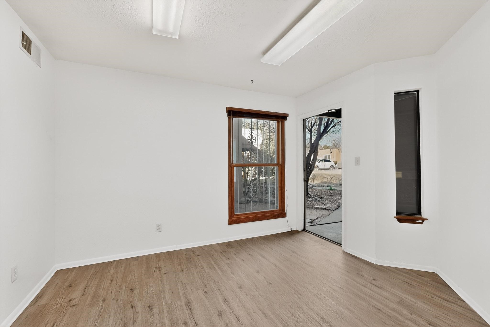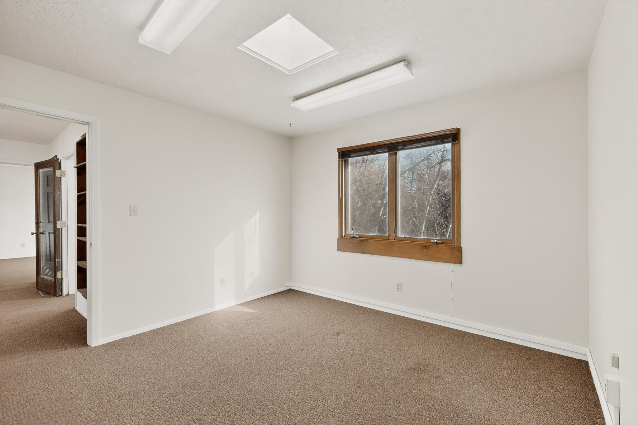 Excellent opportunity to purchase flexible office space in St. Francis Professional Center. Well located in the complex with great visibility, the space had been configured as two separate suites, which provided excellent flexibility. There are a total of 7 private offices, 2 bathrooms, 1 kitchenette, 2 large storage rooms, and 2 waiting areas. Great layout for wellness practitioners or professional offices (legal, accounting, etc). The section that was used as the larger suite has offices on two floors, a kitchenette, bathroom, waiting area and a very large multi-use space for storage, open concept workspace etc.