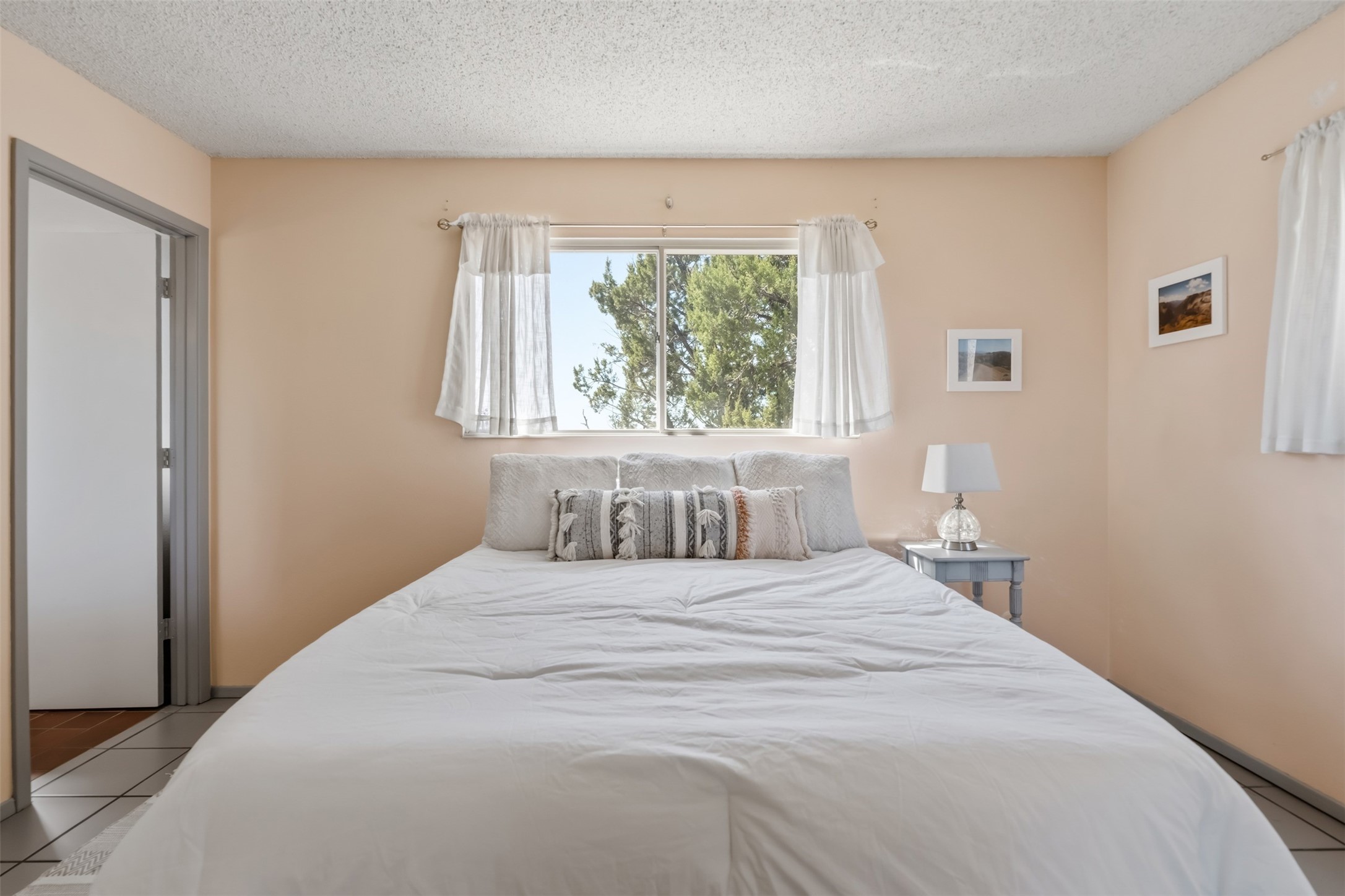 At 6445 Vooscane, the view is the headline. The backyard opens east toward the Sandia Mountains, where the landscape stretches across the Rio Grande valley in a wide, uninterrupted sweep of desert and sky. Morning light reaches the peaks first, and evenings bring the deep pink and purple hues the Sandias are known for.The move-in ready home offers approximately 1,250 square feet of comfortable, easy-to-maintain living space. Large windows frame the surrounding landscape, keeping the mountains present in everyday life. The scale is manageable yet comfortable, creating a home that feels easy to live in and connected to its remarkable natural setting.A covered rear portal provides a perfect place to take in the view--morning coffee, a quiet afternoon with a book, or dinner outside as the mountains shift color in the evening light. An adjacent hot tub, which conveys with the property, is the perfect place to unwind. Raised garden beds and a small gardening hutch add a practical outdoor touch.Cochiti Lake is a quiet, established community between Santa Fe and Albuquerque known for its open skies, dramatic scenery, and access to hiking, the lake, and nearby destinations like Tent Rocks and Bandelier National Monument.