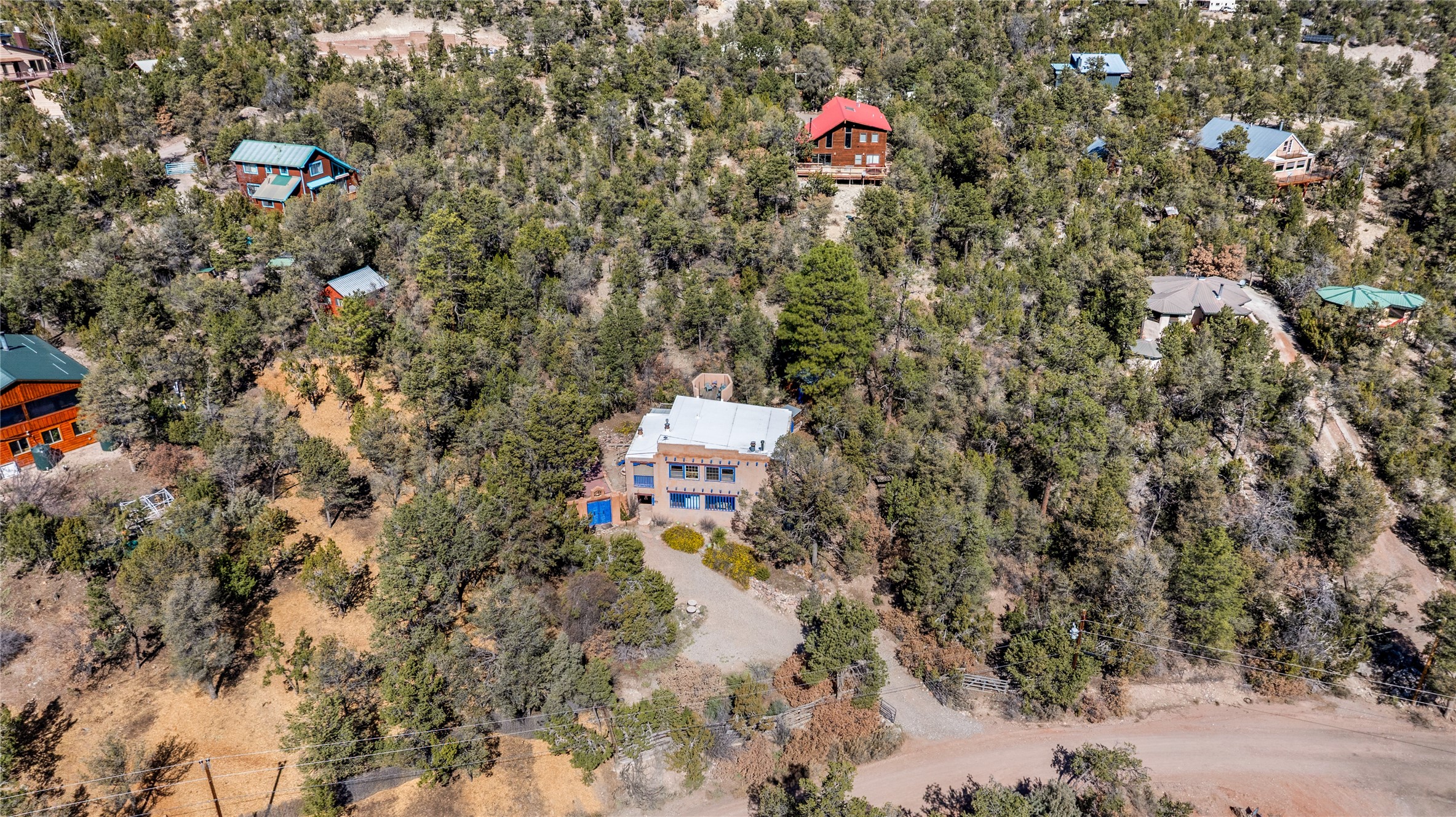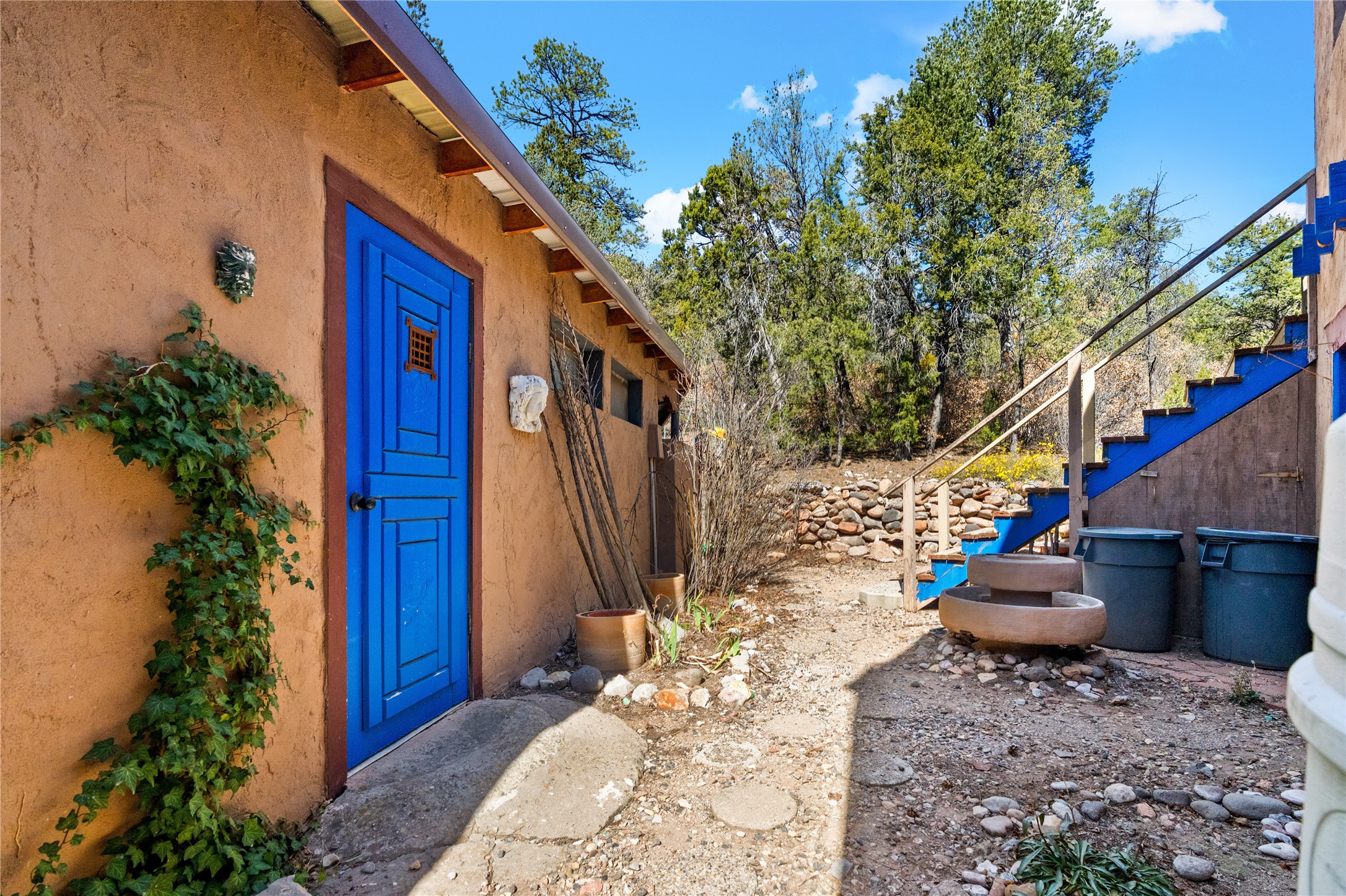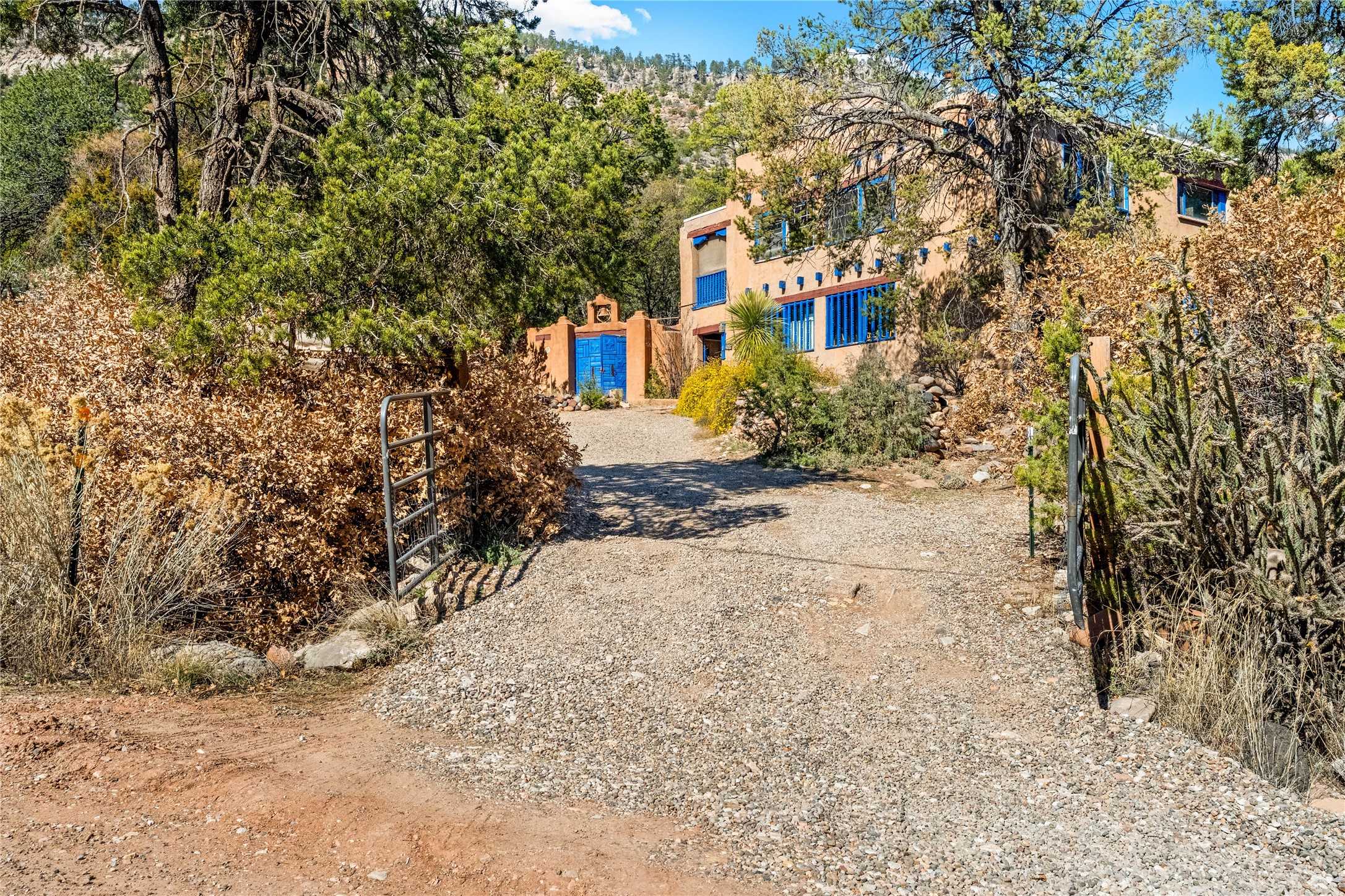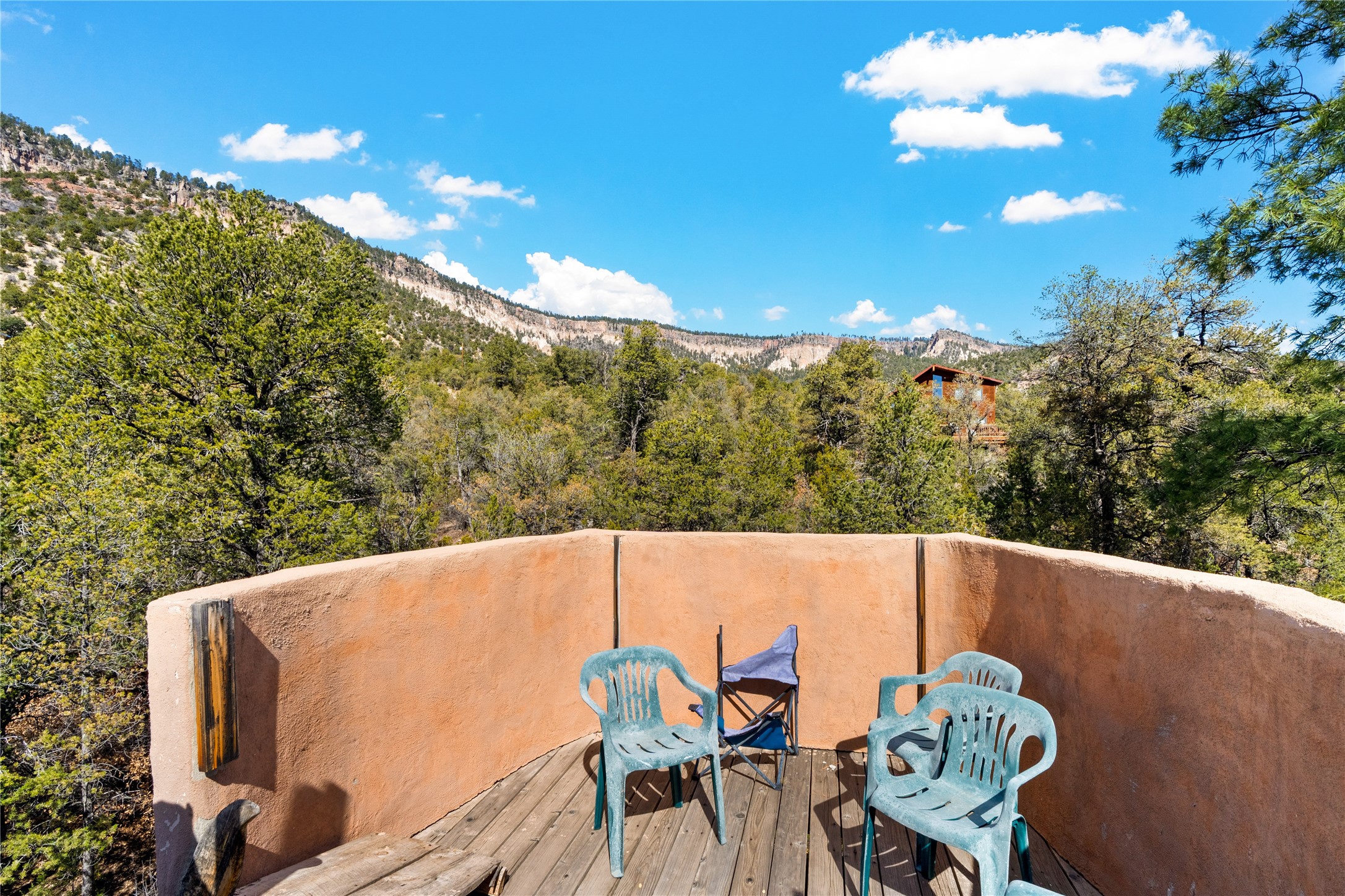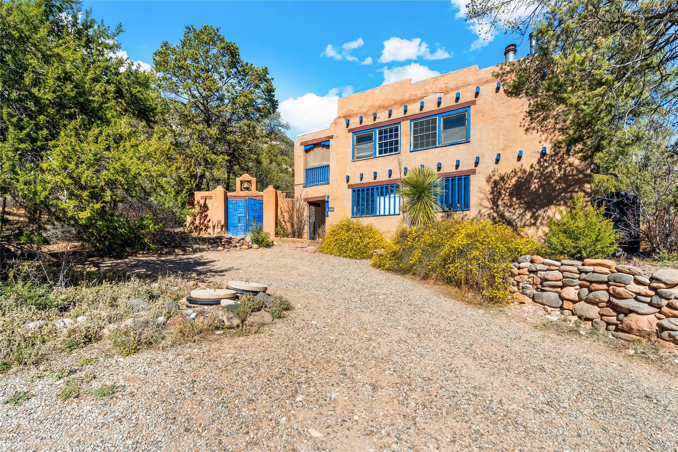 The Sweet Style of Santa Fe...in the Jemez! Just north of Jemez Springs and minutes from Soda Dam, this unique home blends Southwestern charm with proven income potential. Currently operating as a successful Airbnb, it offers a turn-key short-term rental opportunity in one of the most desirable areas of the Jemez. Upper and lower levels each feature their own living space with kitchen. Custom tile work, hand-carved wood doors, and warm Southwestern character throughout. Enjoy mountain views from the partially covered deck or shaded portal. Separate 370 sq ft studio, meditation space, and sand star-gazing platform. Recent upgrades include new propane heaters on both floors, new water heater, electrical grounding upgrades, and stucco repainting in 2025. Most furnishings convey.