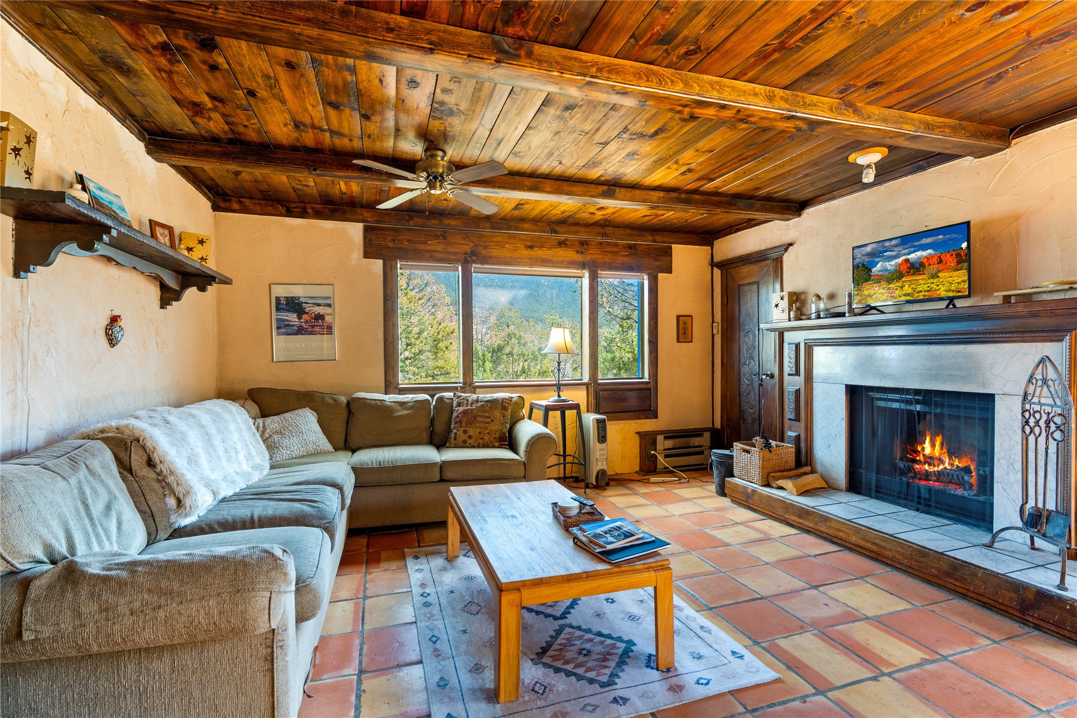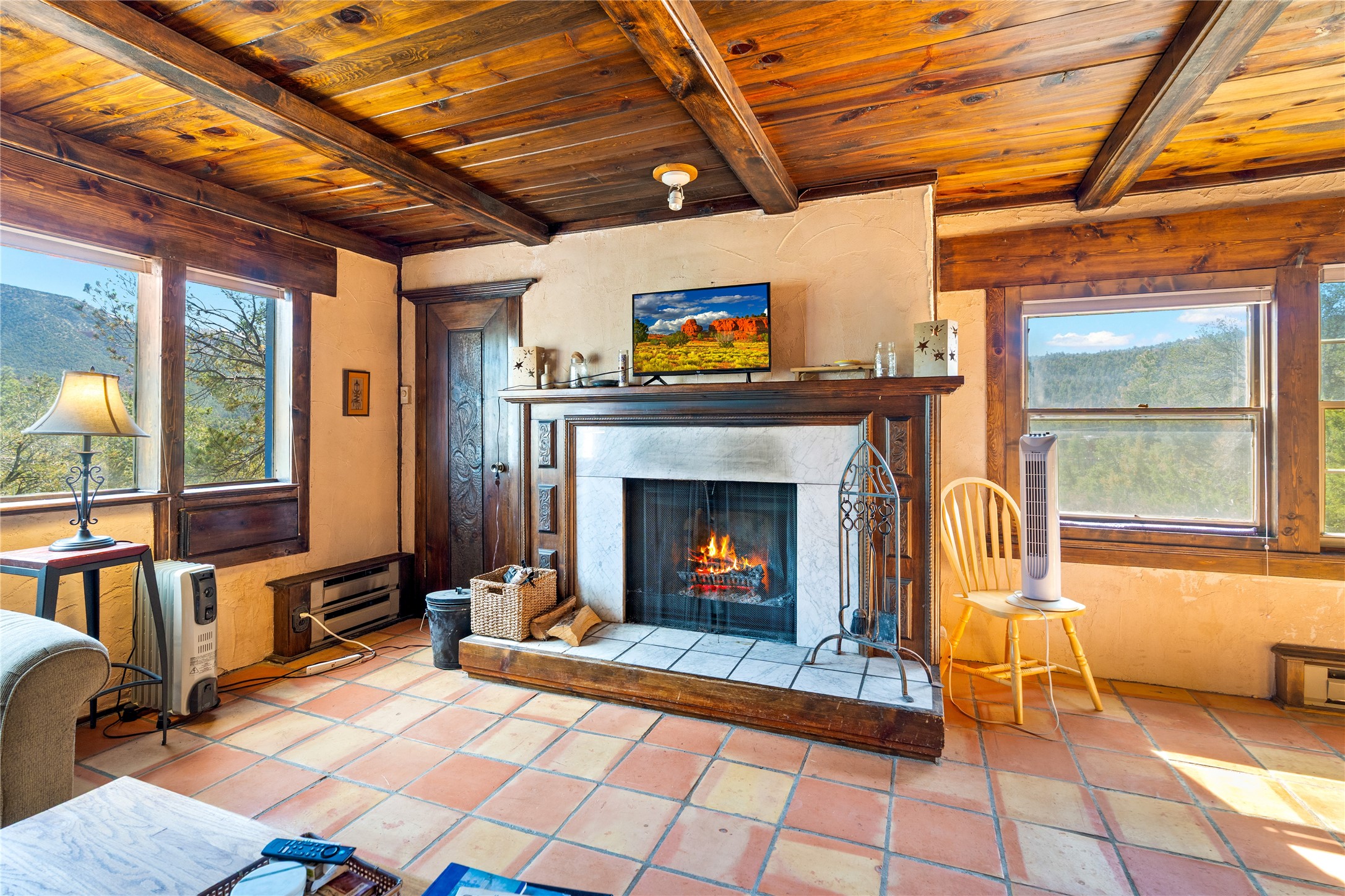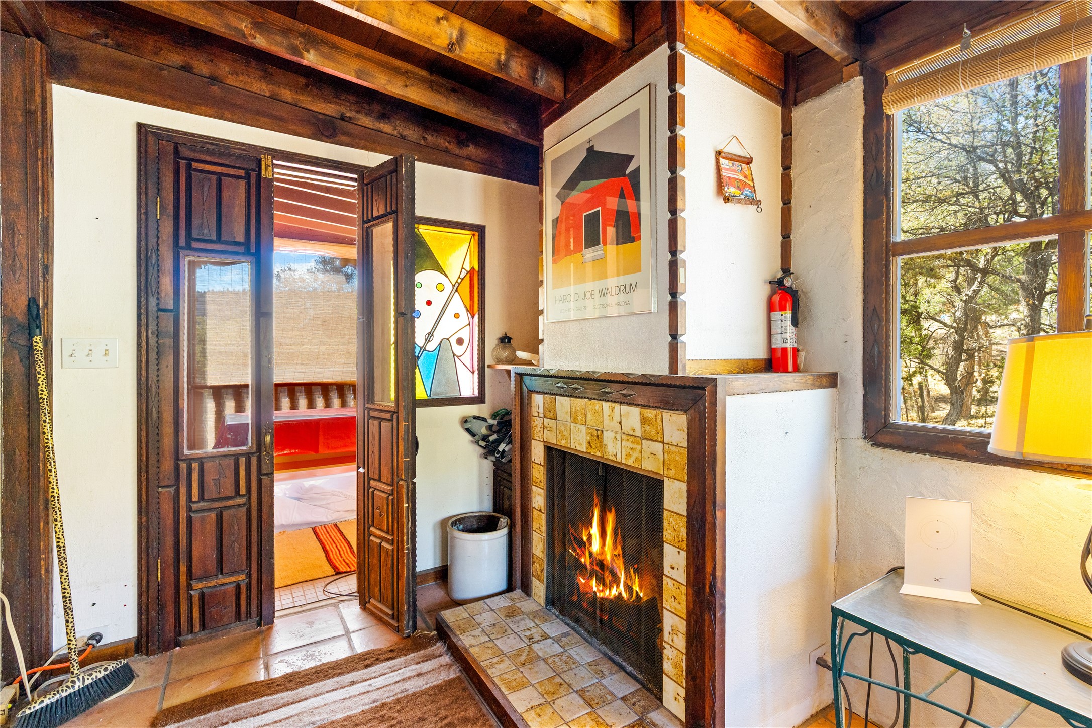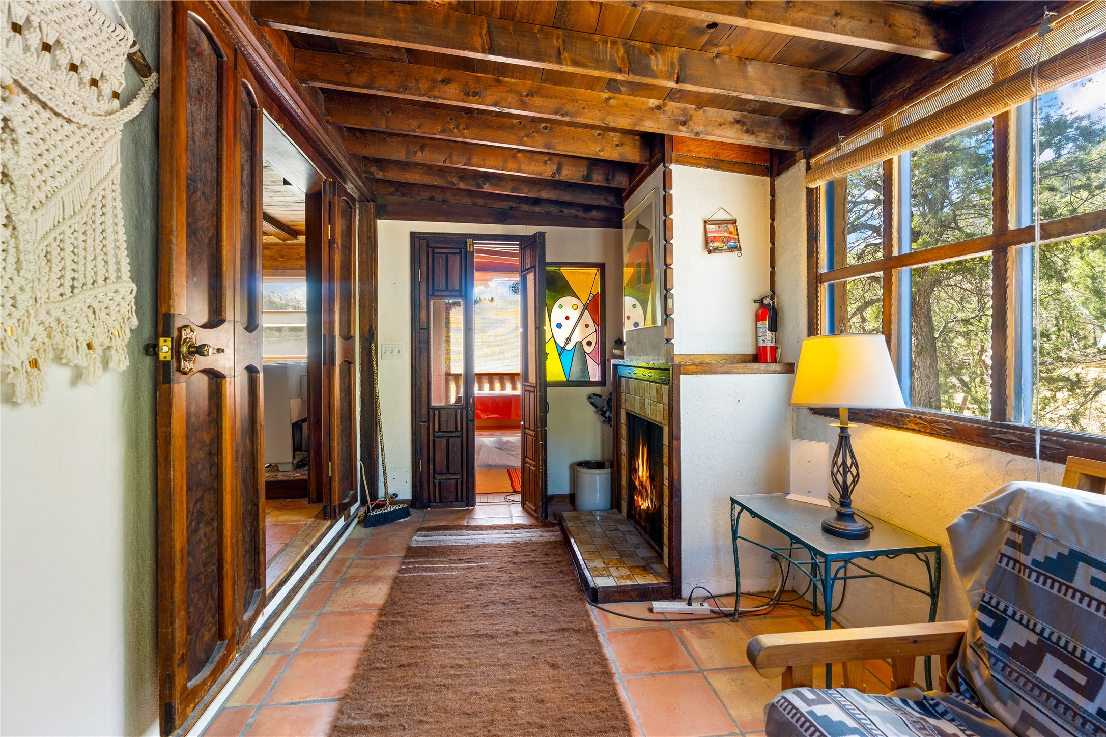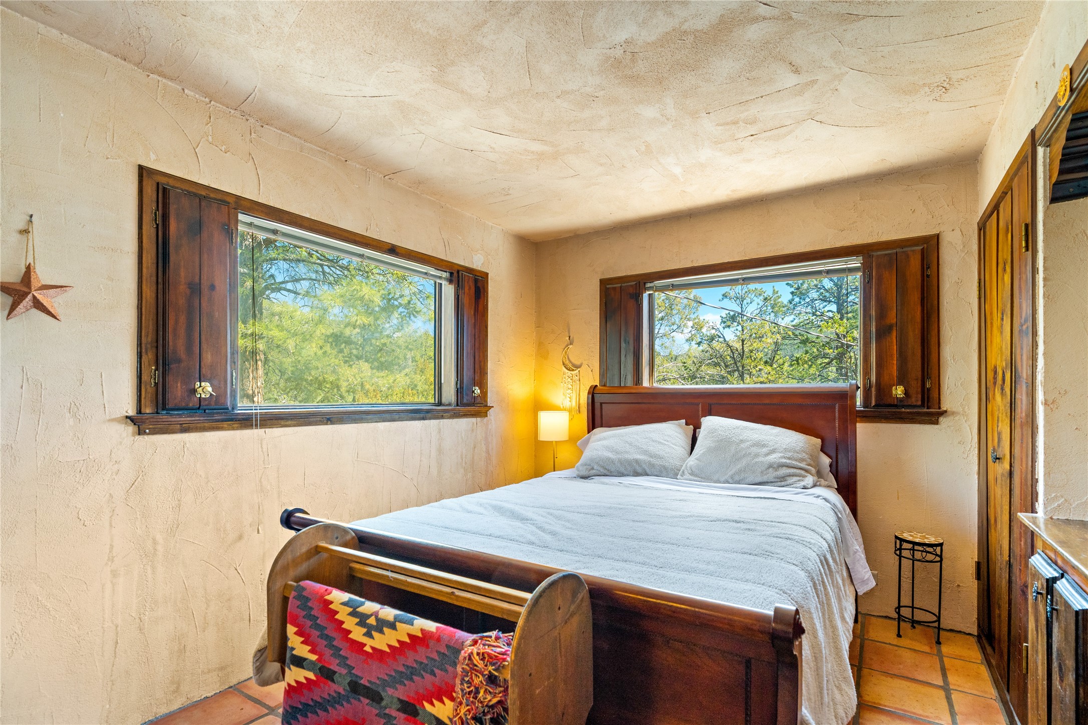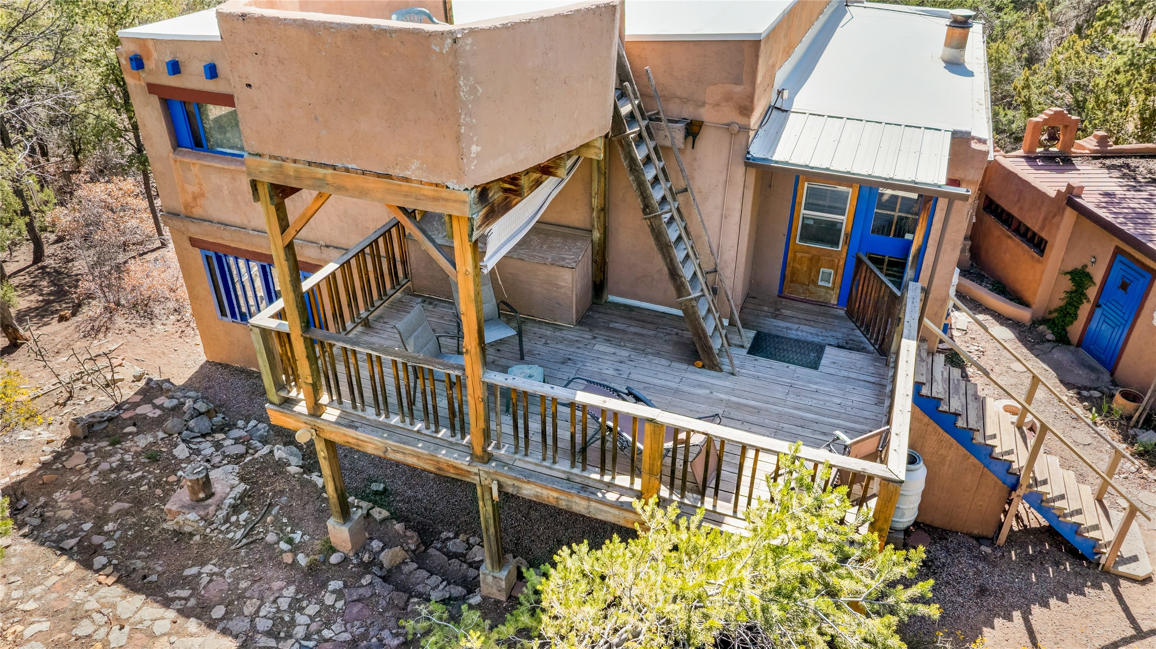 The Sweet Style of Santa Fe...in the Jemez! Just north of Jemez Springs and minutes from Soda Dam, this unique home blends Southwestern charm with proven income potential. Currently operating as a successful Airbnb, it offers a turn-key short-term rental opportunity in one of the most desirable areas of the Jemez. Upper and lower levels each feature their own living space with kitchen. Custom tile work, hand-carved wood doors, and warm Southwestern character throughout. Enjoy mountain views from the partially covered deck or shaded portal. Separate 370 sq ft studio, meditation space, and sand star-gazing platform. Recent upgrades include new propane heaters on both floors, new water heater, electrical grounding upgrades, and stucco repainting in 2025. Most furnishings convey.