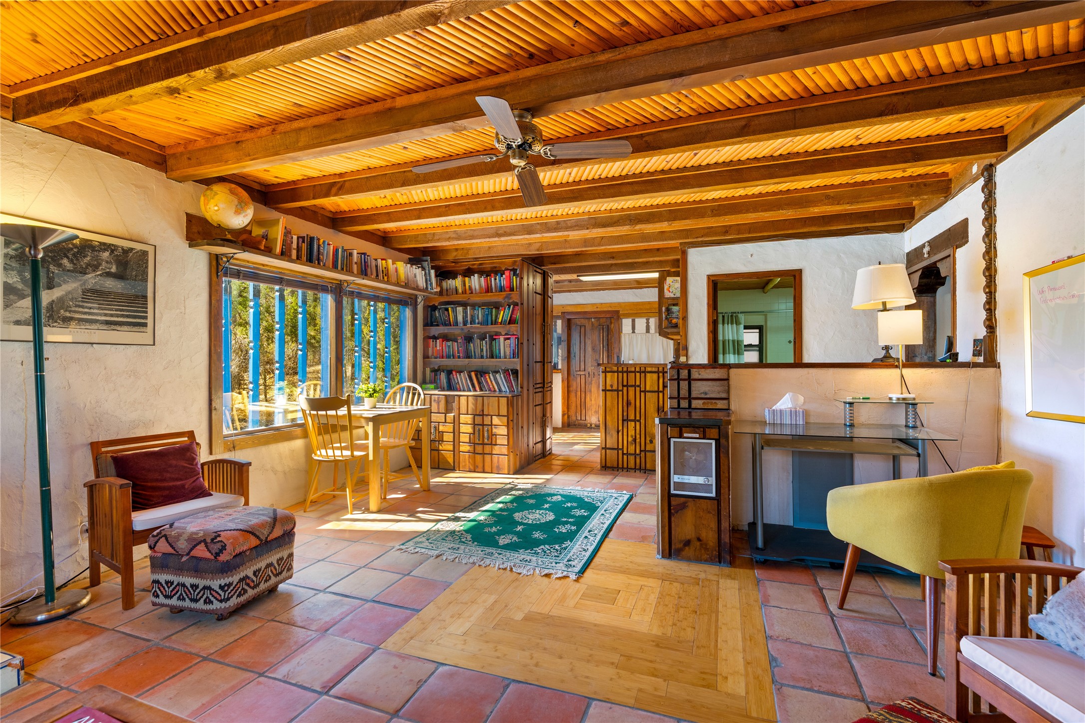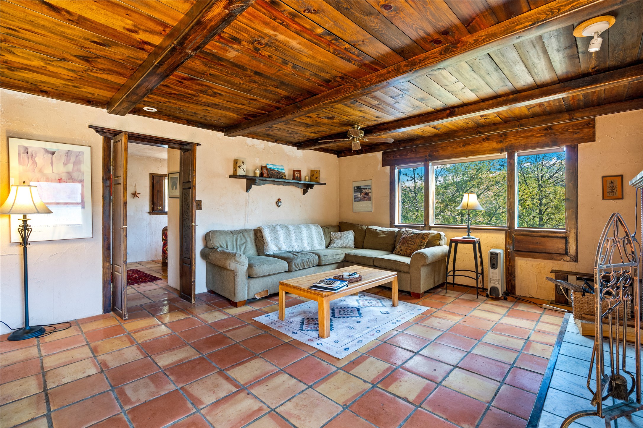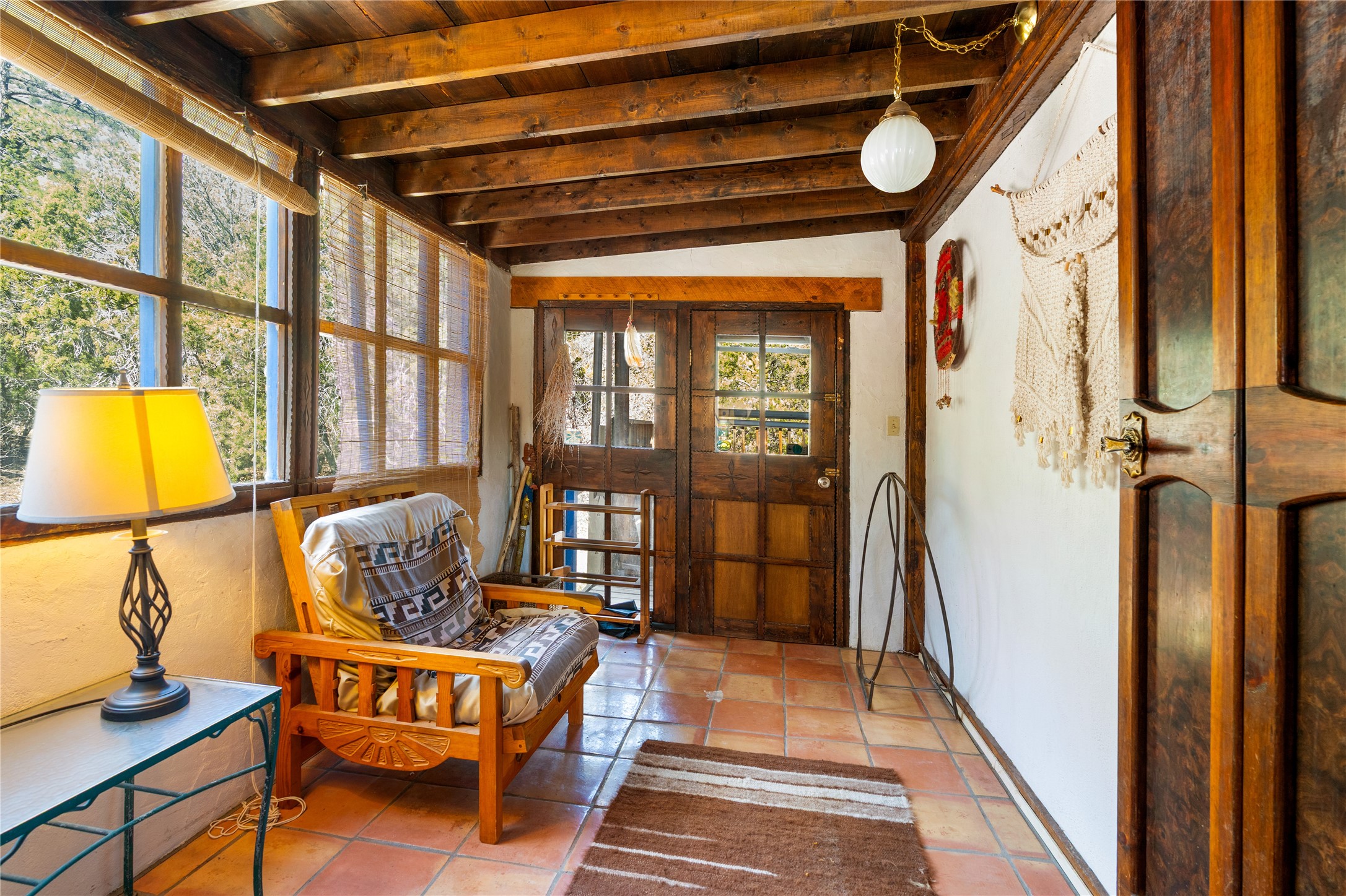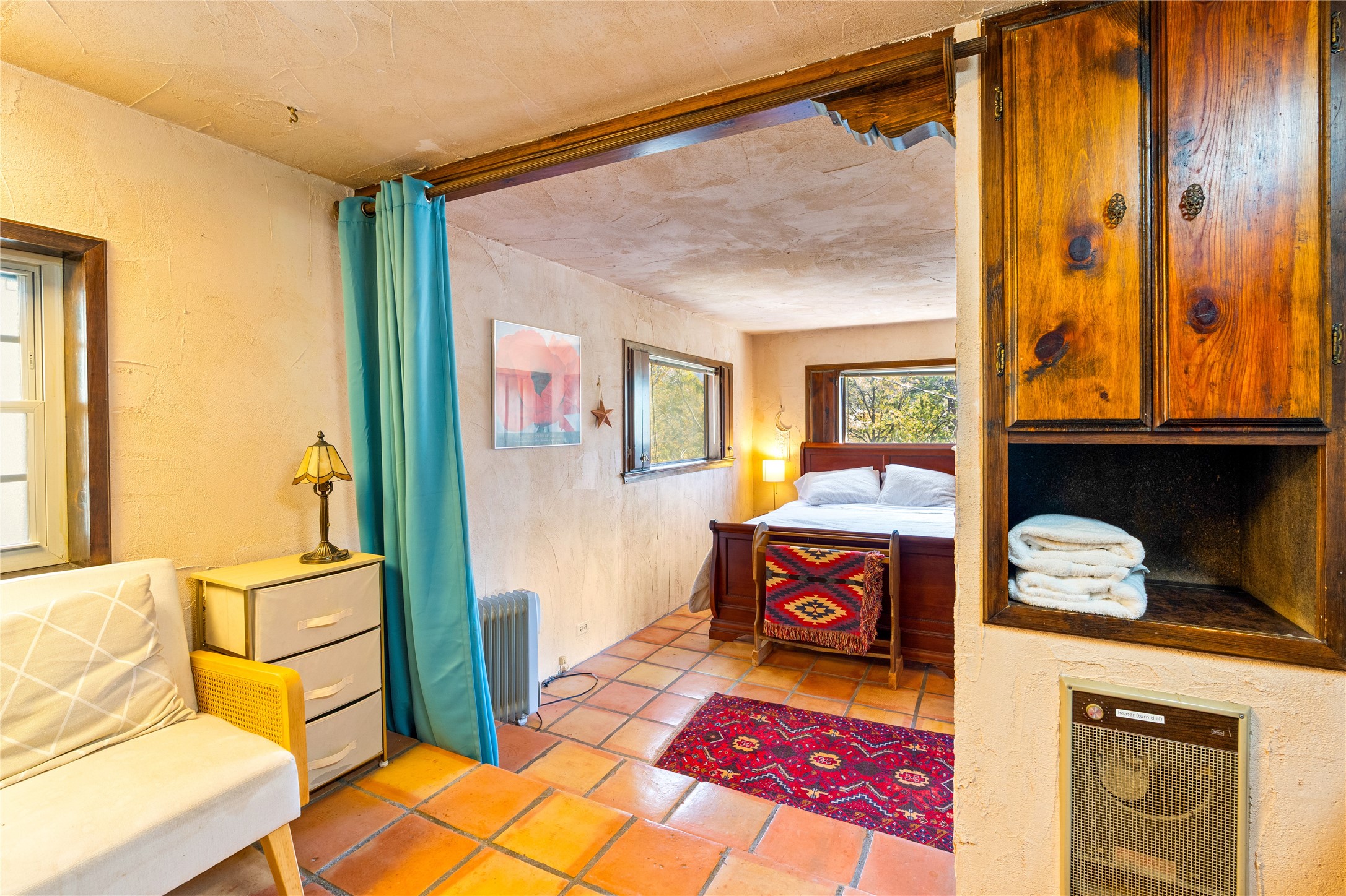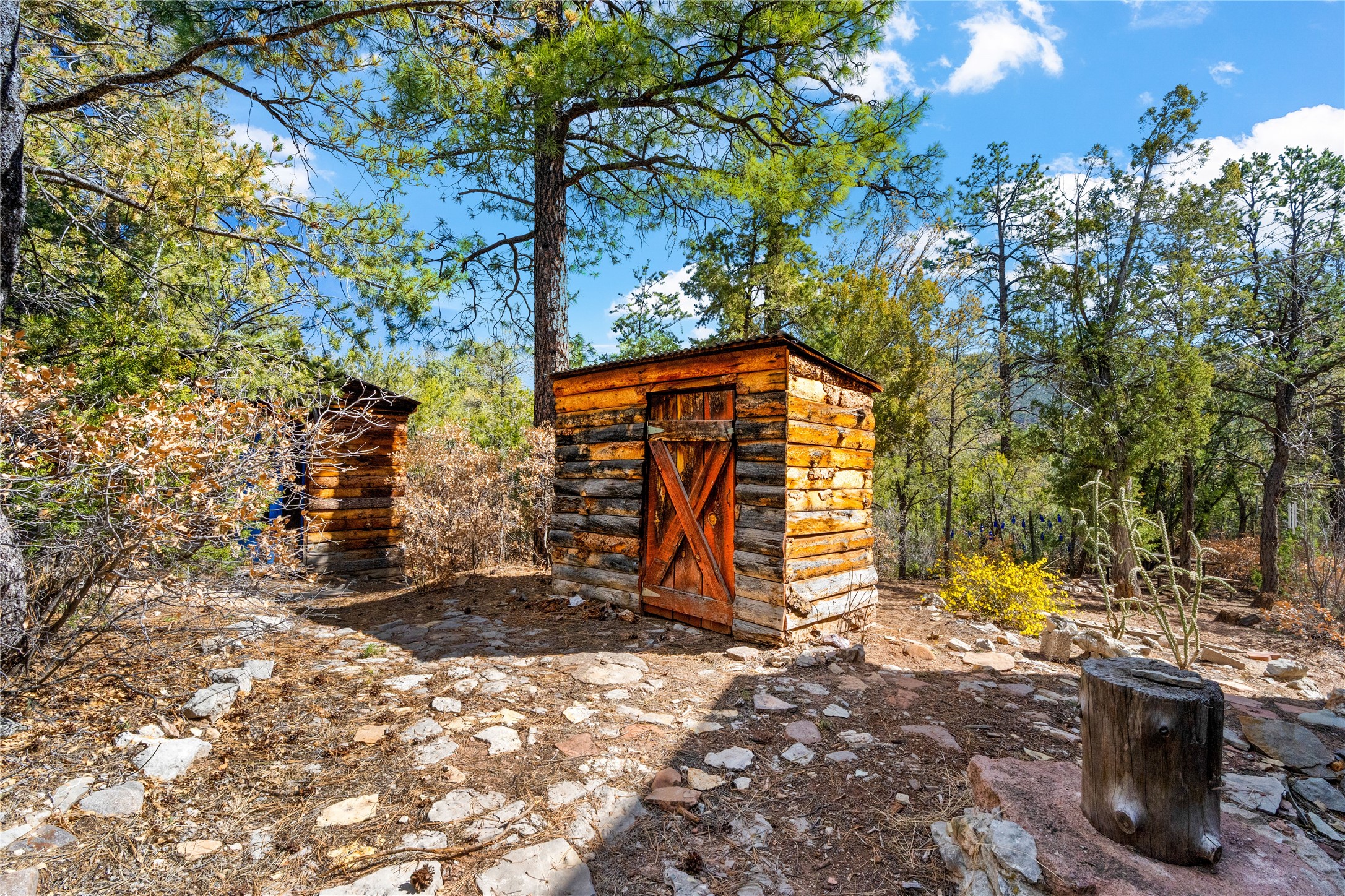 The Sweet Style of Santa Fe...in the Jemez! Just north of Jemez Springs and minutes from Soda Dam, this unique home blends Southwestern charm with proven income potential. Currently operating as a successful Airbnb, it offers a turn-key short-term rental opportunity in one of the most desirable areas of the Jemez. Upper and lower levels each feature their own living space with kitchen. Custom tile work, hand-carved wood doors, and warm Southwestern character throughout. Enjoy mountain views from the partially covered deck or shaded portal. Separate 370 sq ft studio, meditation space, and sand star-gazing platform. Recent upgrades include new propane heaters on both floors, new water heater, electrical grounding upgrades, and stucco repainting in 2025. Most furnishings convey.