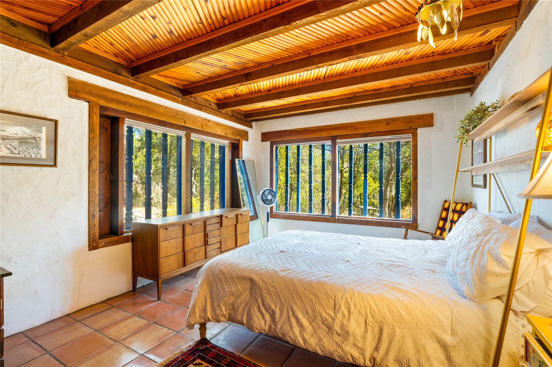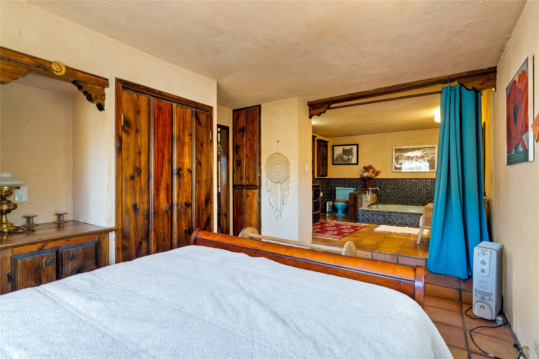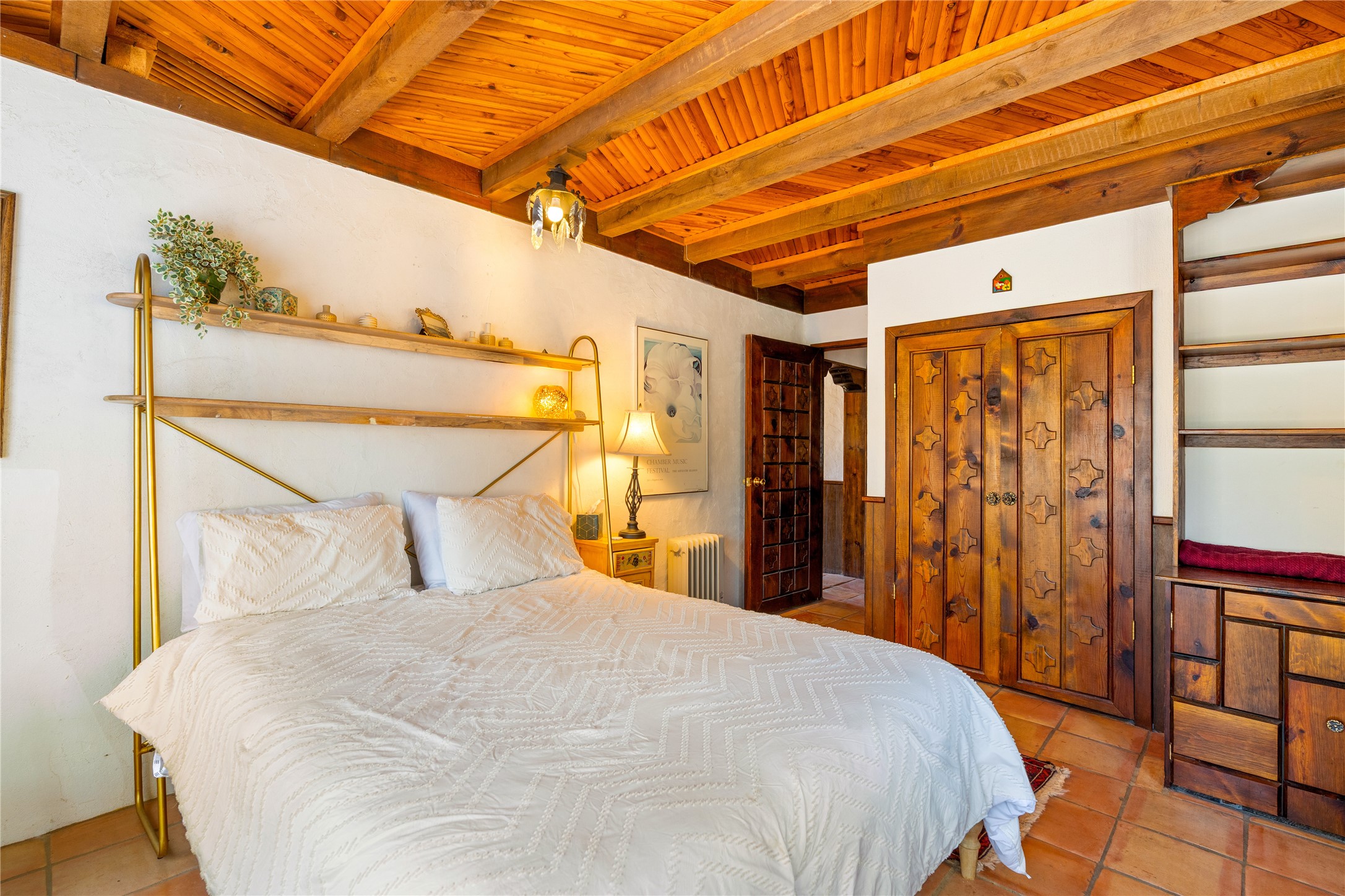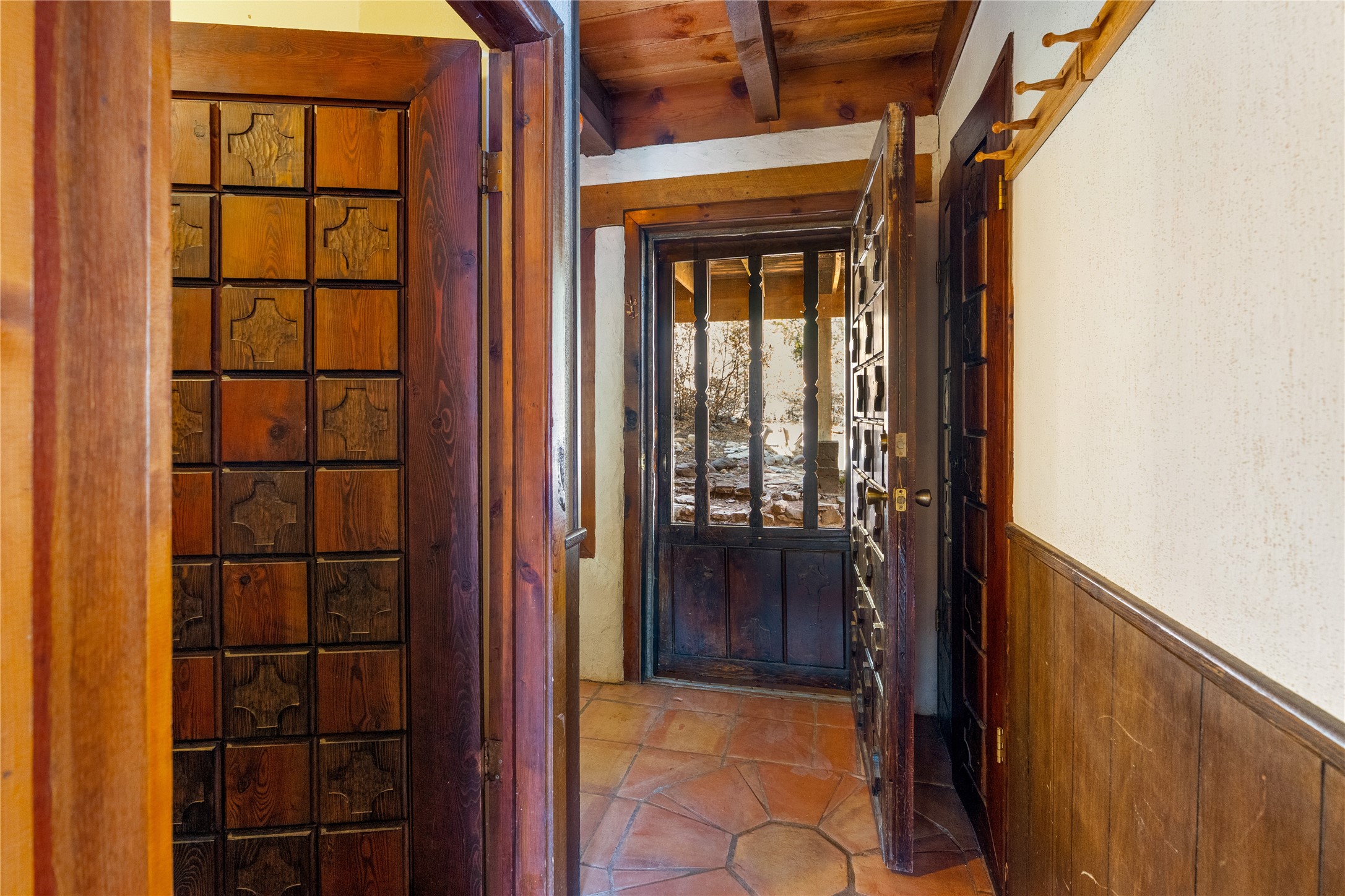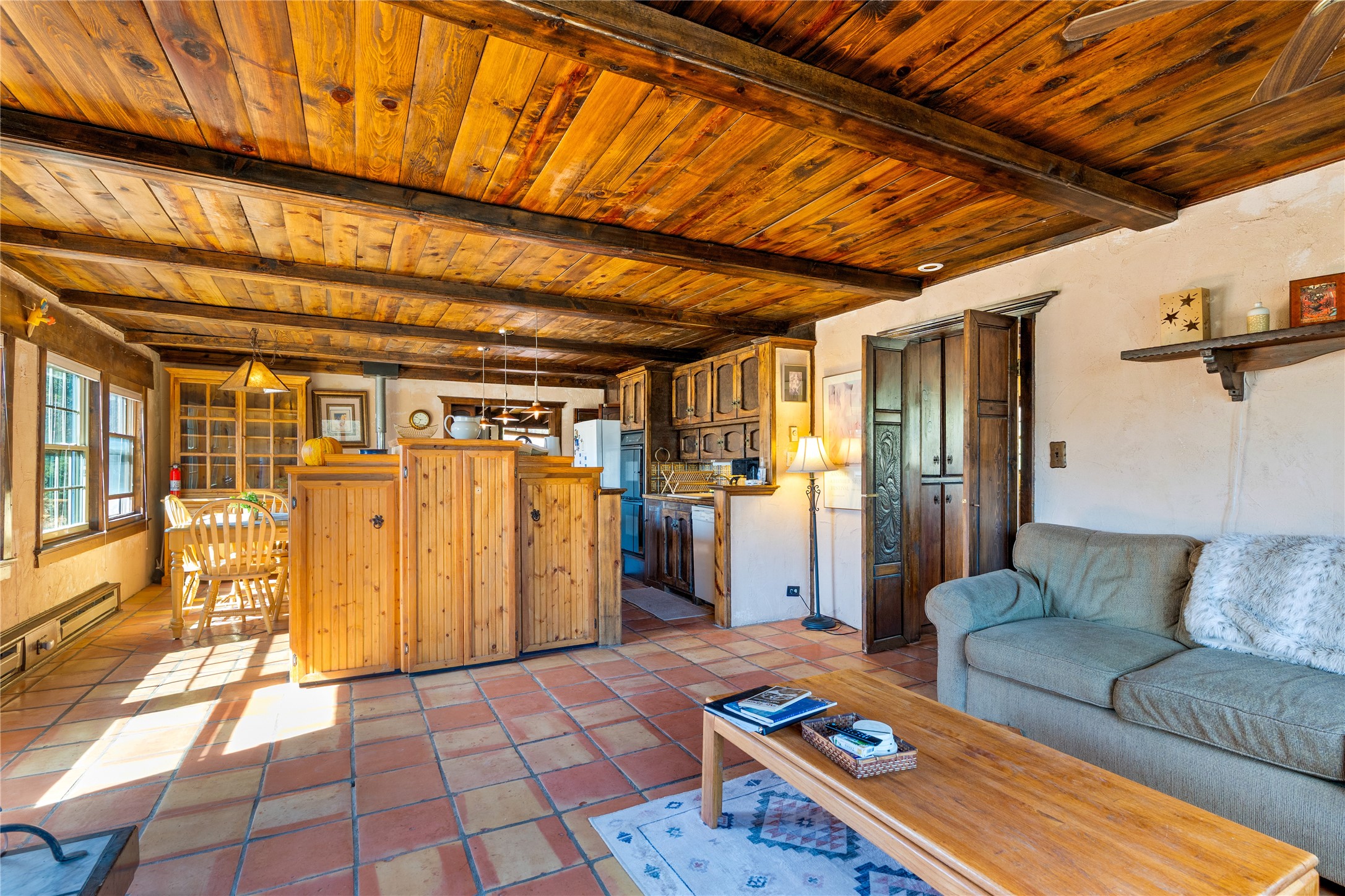 The Sweet Style of Santa Fe...in the Jemez! Just north of Jemez Springs and minutes from Soda Dam, this unique home blends Southwestern charm with proven income potential. Currently operating as a successful Airbnb, it offers a turn-key short-term rental opportunity in one of the most desirable areas of the Jemez. Upper and lower levels each feature their own living space with kitchen. Custom tile work, hand-carved wood doors, and warm Southwestern character throughout. Enjoy mountain views from the partially covered deck or shaded portal. Separate 370 sq ft studio, meditation space, and sand star-gazing platform. Recent upgrades include new propane heaters on both floors, new water heater, electrical grounding upgrades, and stucco repainting in 2025. Most furnishings convey.