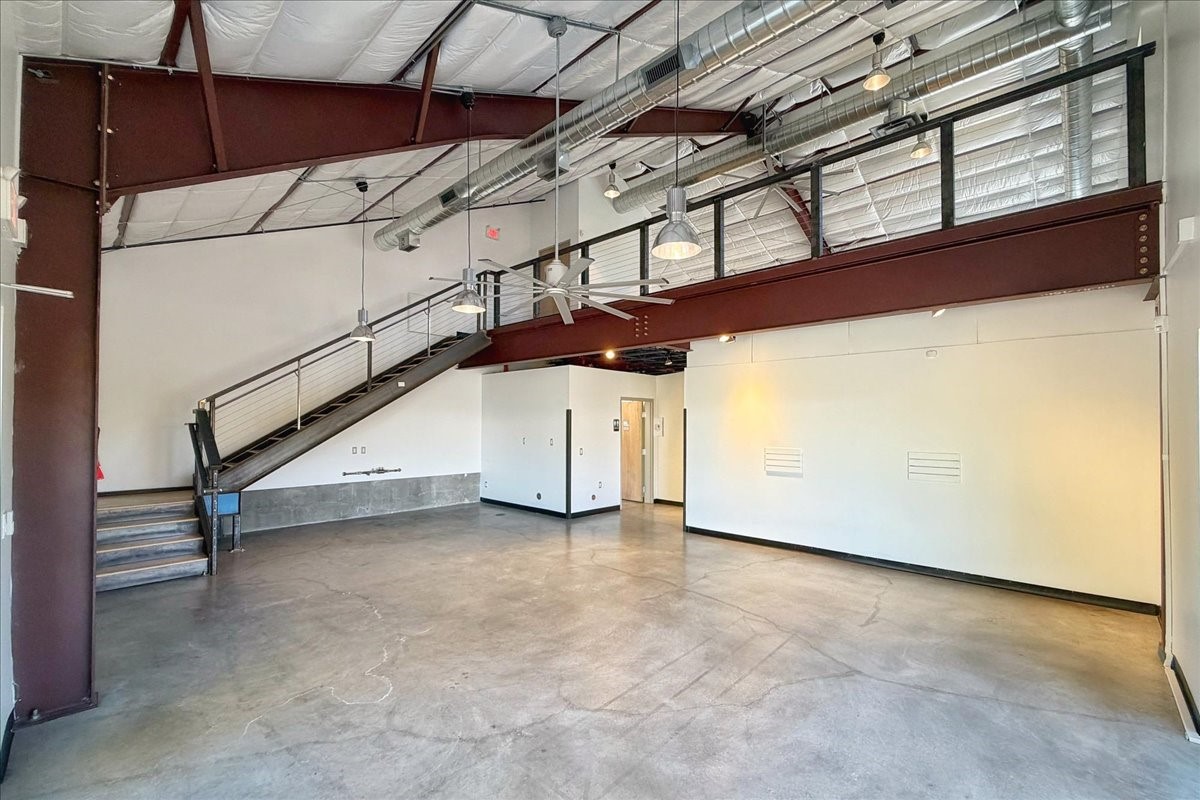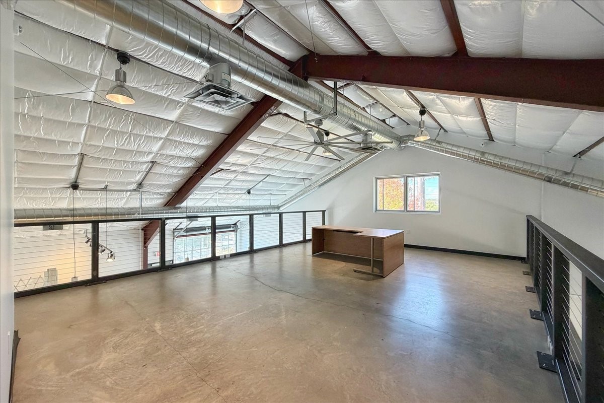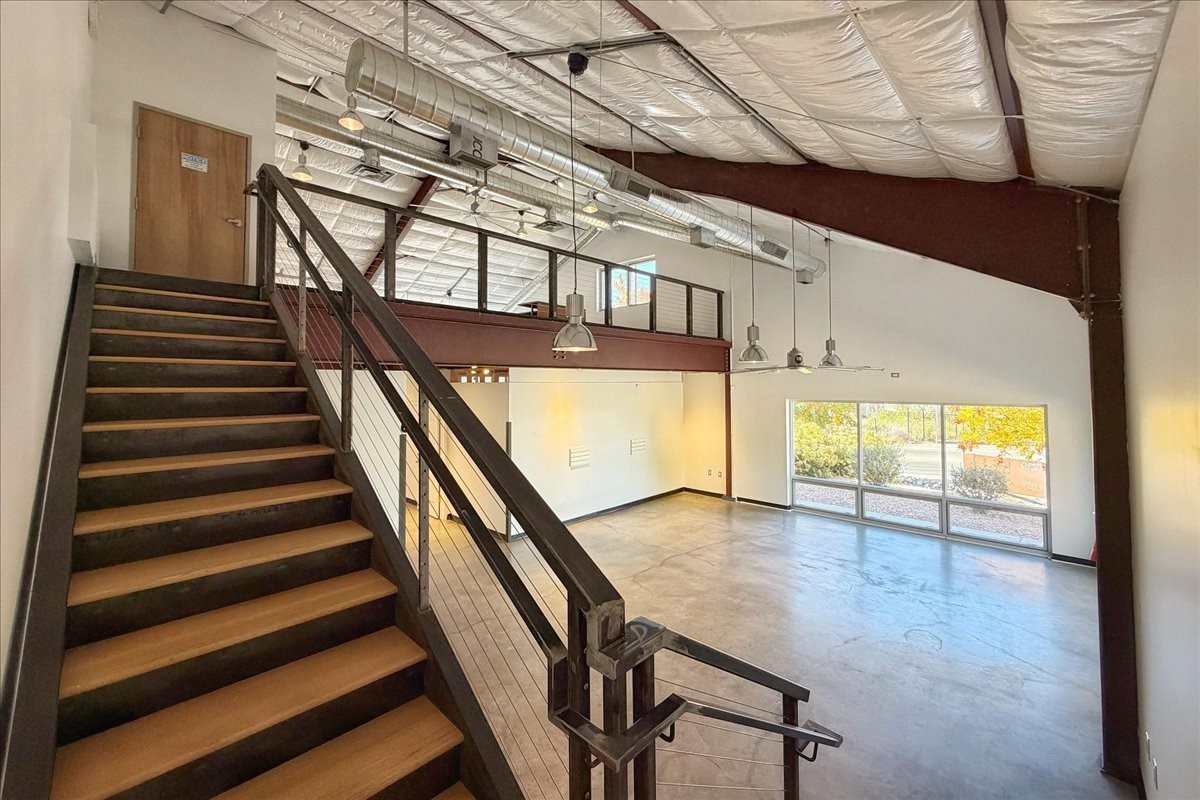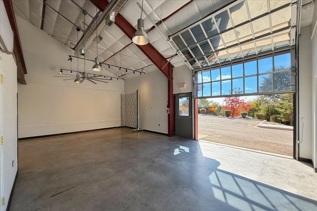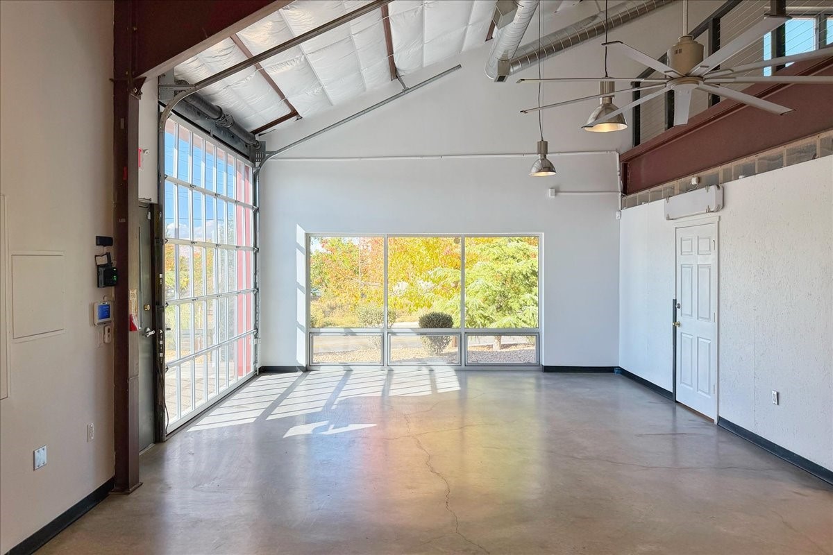 Corner unit filled with natural light and full street visibility. This architecturally striking commercial space, zoned I-2, offers flexible potential--think showroom, gallery, fitness studio, caf, or wine bar (subject to zoning). The interior features soaring ceilings with exposed steel, expansive storefront windows, a glass roll-up door, and hard-troweled concrete floors. Two large bathrooms and a reliable heating and cooling system ensure comfort and functionality. Ideal for artists or makers who need space for large-scale installations, it's located on a prominent corner near Second Street Brewery and Meow Wolf--where creativity, visibility, and opportunity meet. If the space feels larger than you need, consider subletting a portion to generate income and offset your mortgage!