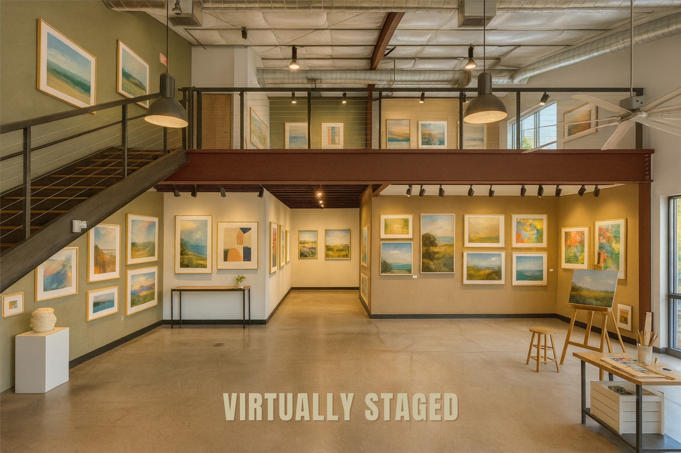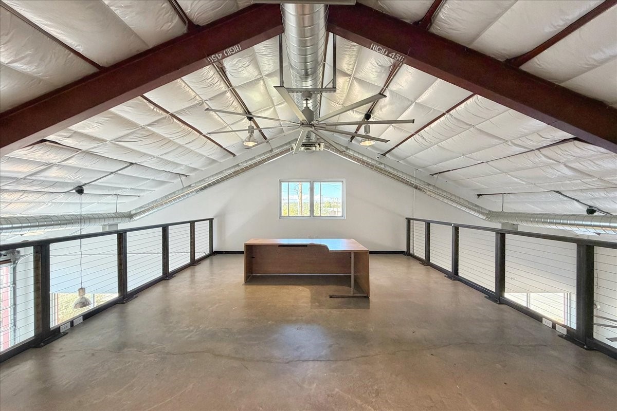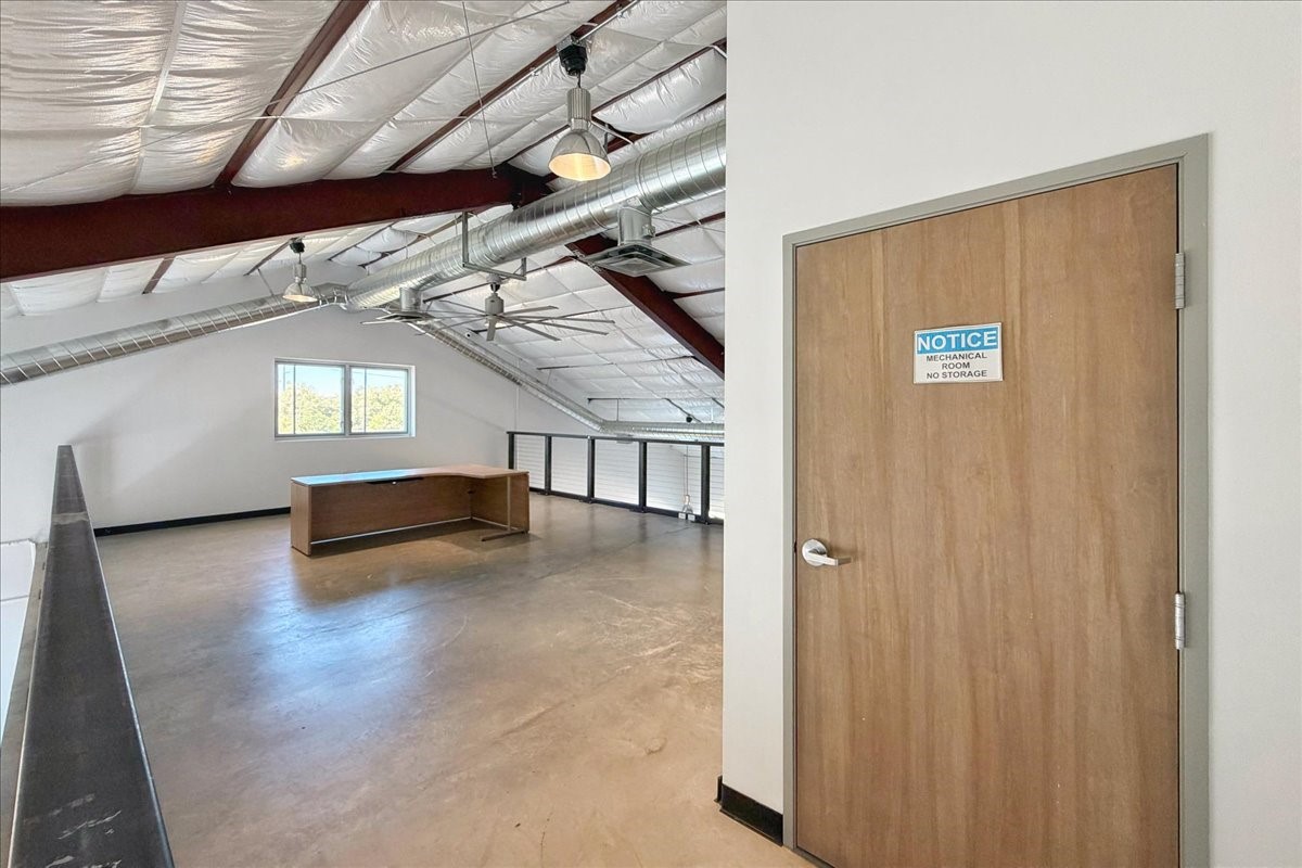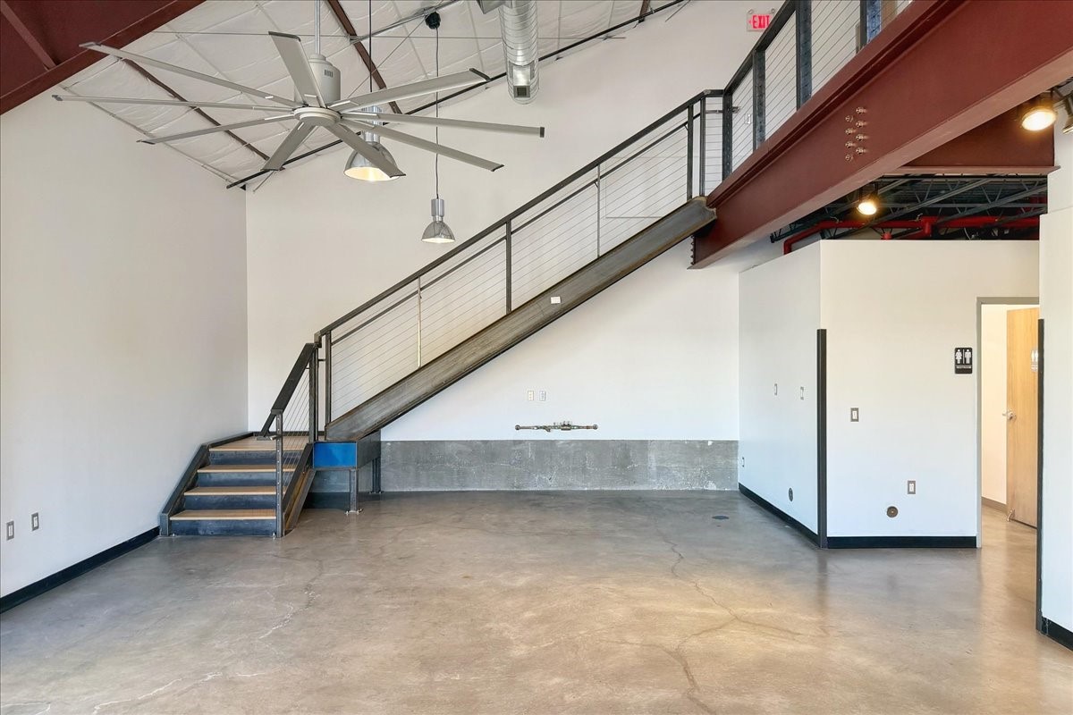 Corner unit filled with natural light and full street visibility. This architecturally striking commercial space, zoned I-2, offers flexible potential--think showroom, gallery, fitness studio, caf, or wine bar (subject to zoning). The interior features soaring ceilings with exposed steel, expansive storefront windows, a glass roll-up door, and hard-troweled concrete floors. Two large bathrooms and a reliable heating and cooling system ensure comfort and functionality. Ideal for artists or makers who need space for large-scale installations, it's located on a prominent corner near Second Street Brewery and Meow Wolf--where creativity, visibility, and opportunity meet. If the space feels larger than you need, consider subletting a portion to generate income and offset your mortgage!