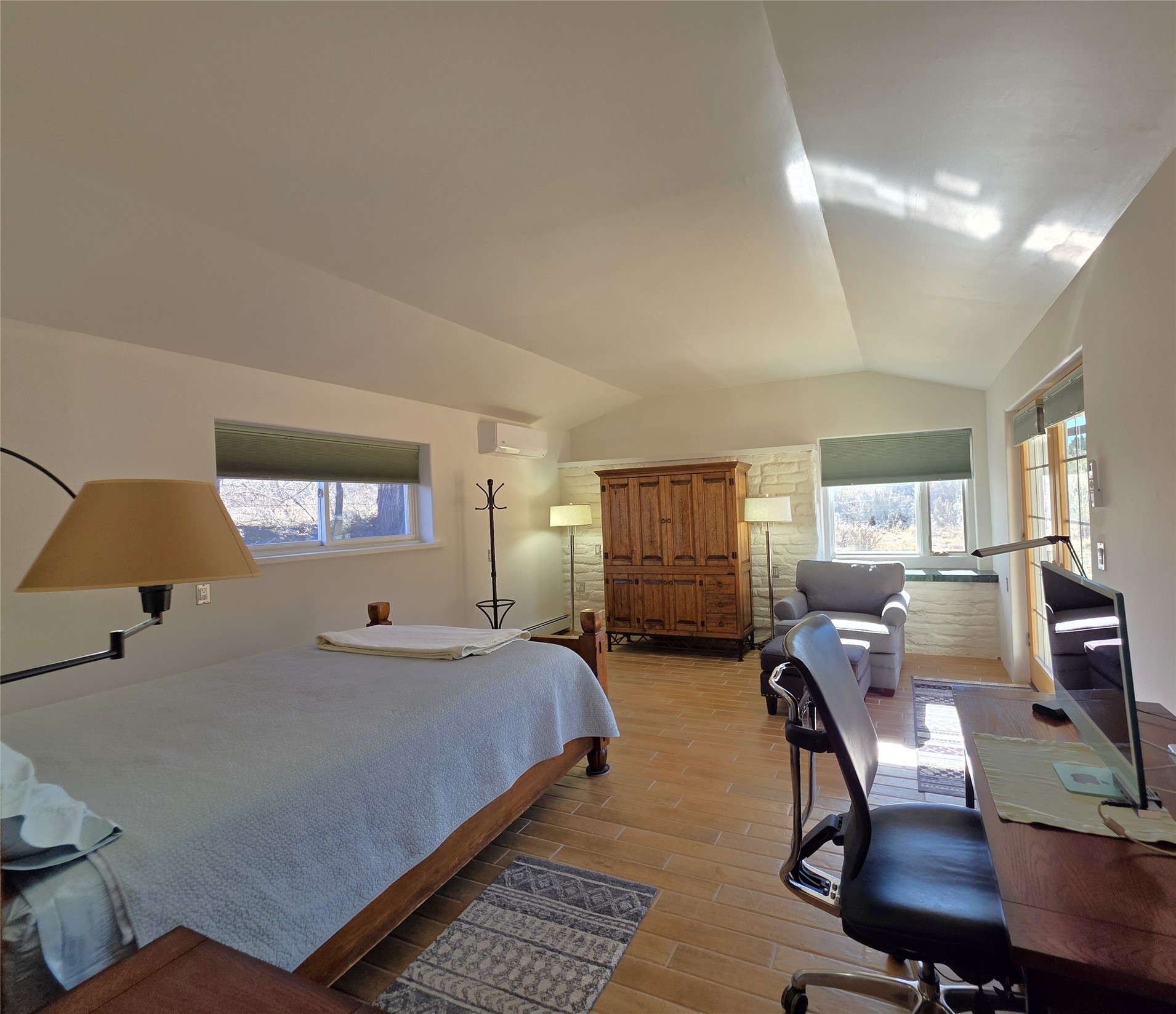 Experience the best of both worlds in this classic Northern New Mexico adobe, where timeless architecture meets a contemporary, light-filled interior. Spanning 3,237 sq. ft., the home offers 3 bedrooms, 2 baths, and an inviting upstairs loft with generous storage. The residence features a chef's kitchen, soaring ceilings, and a dining/family room warmed by a wood-burning stove. The large primary en-suite includes a spacious walk-in closet system, a luxurious soaking tub, and a separate shower. The bedroom's high ceilings and walk-out access to the garden create a private retreat. The expansive living room--anchored by a wood-burning fireplace--can be configured as both a living space and formal dining area. A 231 sq. ft. front patio provides an exceptional setting for entertaining or simply enjoying the outdoors. Several versatile outbuildings complement the main home: a 2-car carport, a 1,259 sq. ft. garage/workshop with an attached studio and office, and a 720 sq. ft. adobe garage with warehouse-style roll-up doors--ideal for artists, craftsmen, hobbyists, or a home-based business. Set on a sprawling 3.17-acre lot, the offering also includes an additional 2.52-acre parcel with its own water rights and an 840 sq. ft. garage/storage building--for a combined 5.69 acres. The property is a gardener's or farmer's dream, boasting 13.26 acre-feet of irrigation water rights across the two parcels, plus a private well with water rights. With boundless potential for future development--and room for horses--this unique property is located just 20 minutes from Los Alamos or Santa Fe. Don't miss the aerial video and 3D virtual tour!