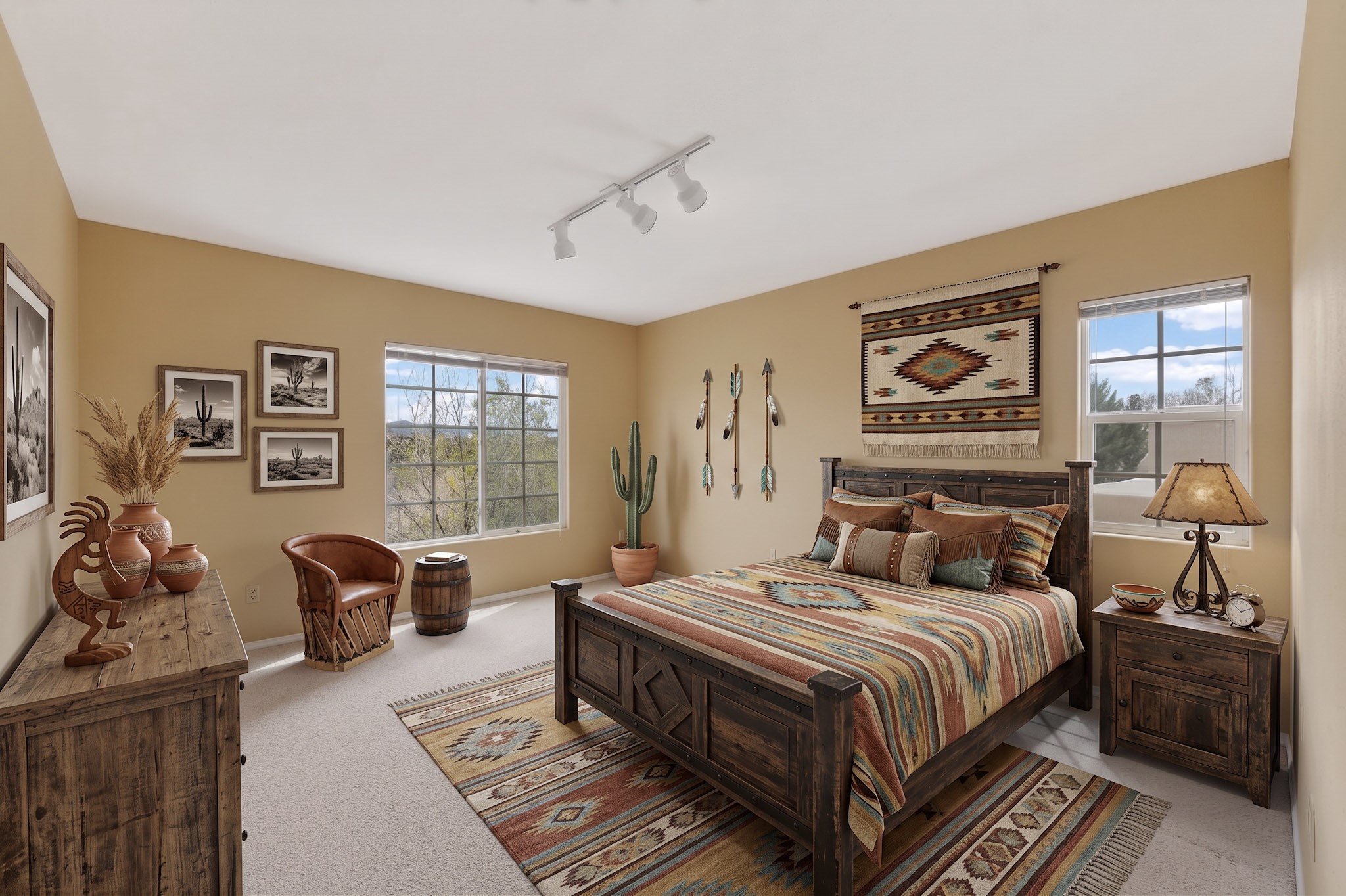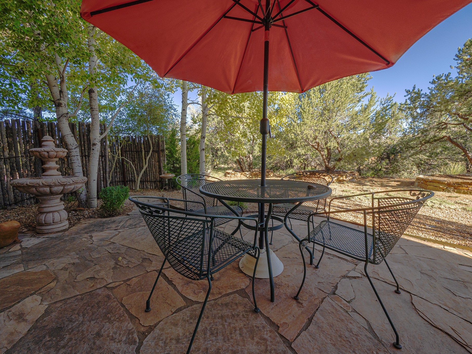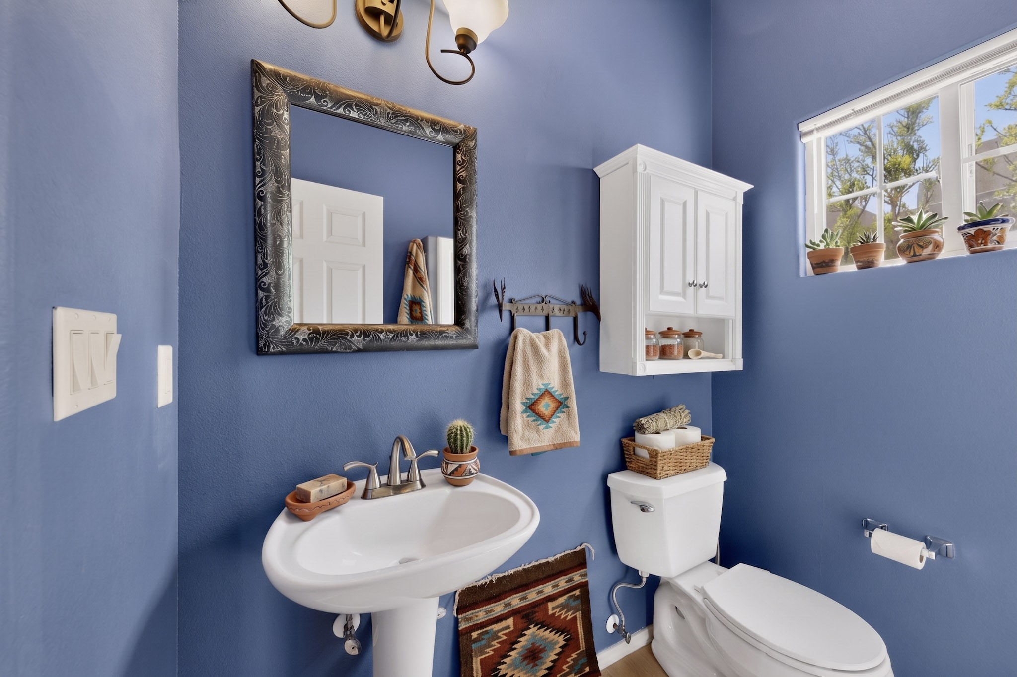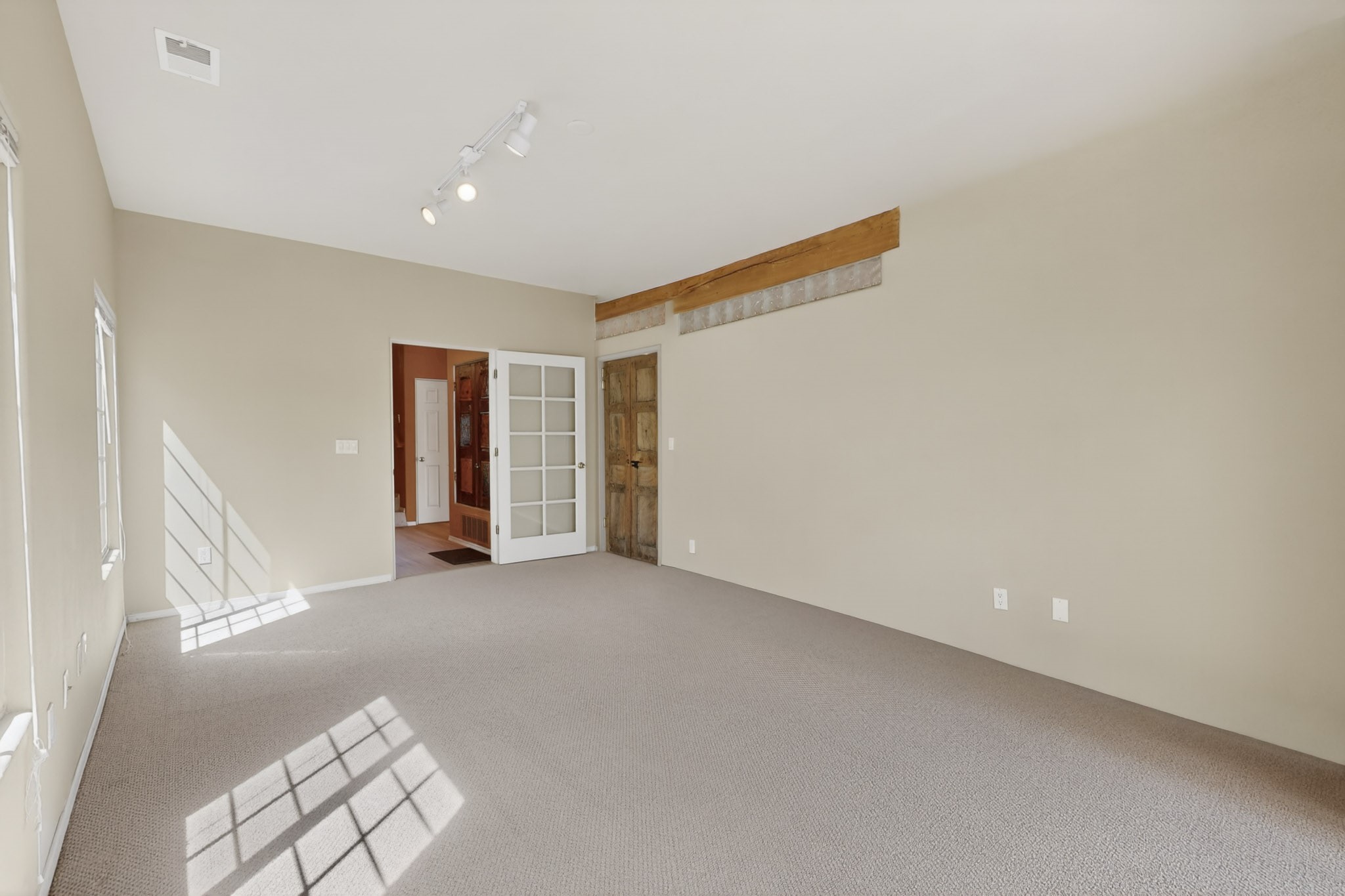 Private, spacious, Nava Ade Gem with Mountain Views! Tucked away at the end of a quiet cul-de-sac & backing to some open space, this home provides tons of privacy, & access to Santa Fe's trail system. With appx 2,024 square feet of well-designed living space, this 3-bedroom + office (or 4th bedroom), 3-bathroom residence offers both flexibility & comfort. Step inside to a light-filled, two-story home to the living room featuring soaring ceiling with vigas & a two-sided gas (gas stub out has never been used-was added when home was built) & wood-burning fireplace shared w/ the dining area. The open-concept kitchen is ideal for entertaining, w/ granite countertops, an island, ample cabinetry, a pantry, & a water purification system at the sink. A standout feature is the versatile downstairs large office space--complete w/ a custom door & separate entrance from the kitchen & exterior--perfect for a studio, guest room, workout area, playroom, or 4th bedroom. Spacious primary suite w/ mountain views include an en-suite bath w/ dual vanity, a separate tub & shower, & a walk-in closet w/ built ins. 2 additional good-sized bedrooms & a full bath complete the upper level. Additional highlights include: Forced air heat w/ refrigerated air, washer/dryer, ceiling fans, track lighting, tile, carpet & NEW laminate flooring (2025) & NEW windows (2018-2019) on east, west, and south sides, NEW stucco (2020), NEW furnace/AC (+/- 2019), NEW refrigerator (+/- 2022), NEW garage door (2025), TPO roof, long driveway providing room for multiple cars, under-stair storage, drip irrigation & more. Enjoy peaceful mornings or evenings in the backyard from 2 patios, & open space offering a natural feel--yet you're only minutes from hospitals, restaurants, shopping, and schools. Nava Ade offers a clubhouse, pool, work-out room, hot tub & more in addition to a trail system connecting to the Arroyo Chamiso Trail, making it ideal for outdoor lovers.