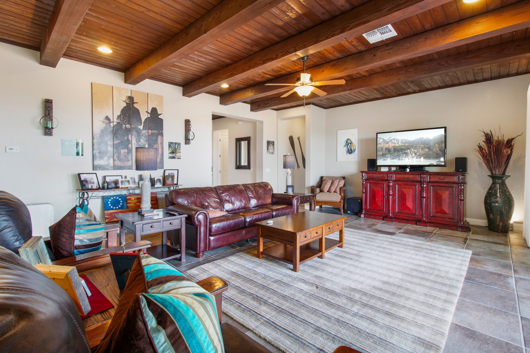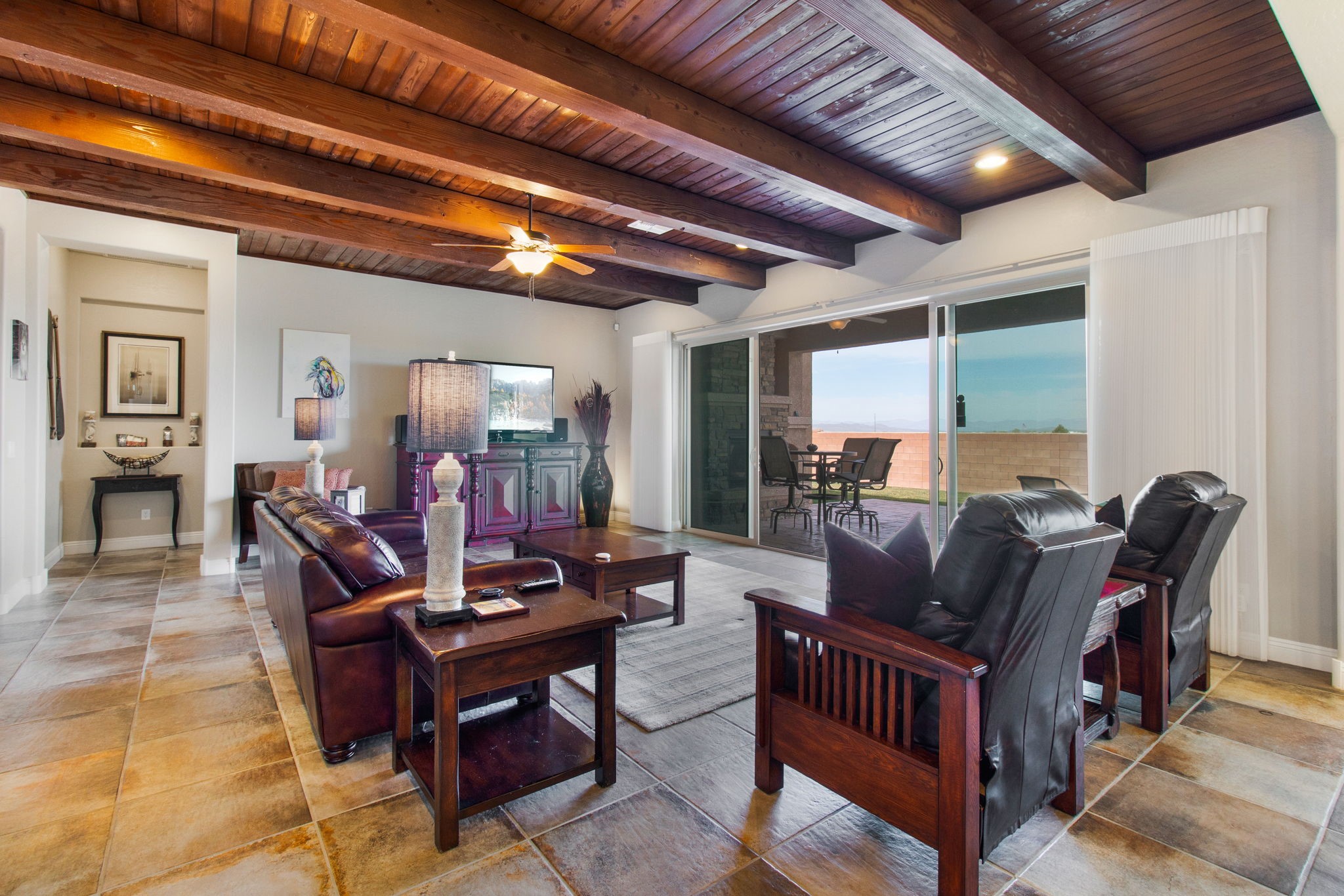 Sited on one of the highest lots in Las Soleras, this stunning Las Soleras Journey model showcases breathtaking mountain and ski basin views. Designed with both comfort and entertaining in mind, the home features a true open-concept floor plan, highlighted by a chef's kitchen and an inviting outdoor portal complete with a handcrafted stone fireplace. This meticulously maintained, single-level home has had only one owner and has been pre-inspected with all repairs already completed for added peace of mind. The beautifully appointed kitchen offers quartz countertops, a large island with bar seating, stainless steel appliances, a wine cooler, and a butler's pantry with a generous walk-in pantry--perfect for both everyday living and entertaining. The spacious primary suite captures serene mountain views and includes a luxurious spa-like bathroom with dual sinks, quartz counters, a soaking tub, separate shower, and a large walk-in closet. Additional highlights include a dedicated office space and a versatile bonus room--currently used as a weight room--that can easily serve as a third bedroom. The oversized laundry room provides ample storage and includes a utility sink, with washer and dryer included. The finished two-car garage features epoxy floors, an insulated door, and a work sink, while a separate "cart garage" offers ideal space for motorcycles or additional storage. The professionally landscaped yard is equipped with drip irrigation for low-maintenance care. An inspection report is available upon request. Seller requires a leaseback through the end of June but may be able to vacate sooner.