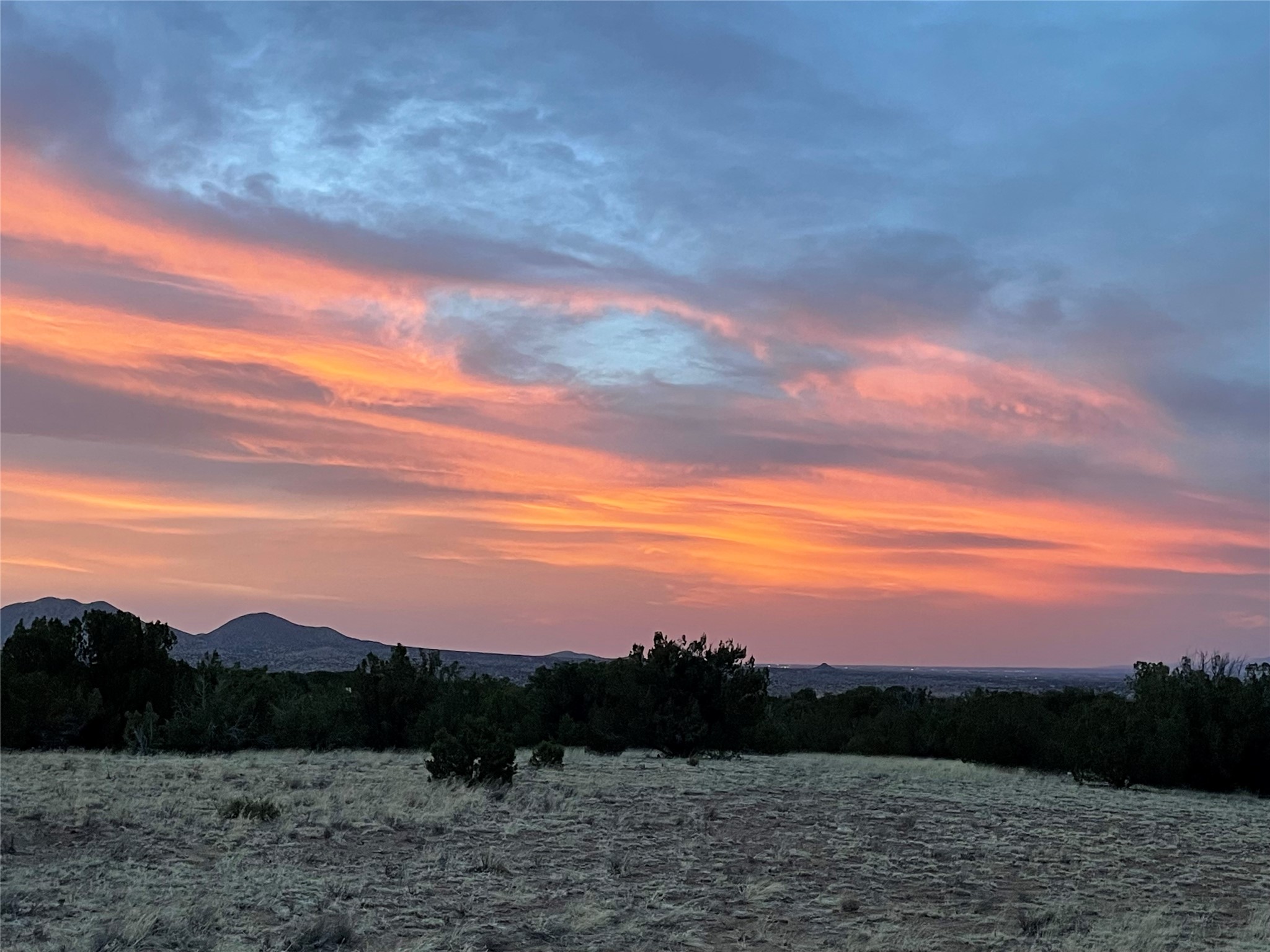 On an elevated ridge above the Galisteo valley, twenty miles from Santa Fe, this forty acre parcel offers mountain views in all directions. In a gated neighborhood with underground power, well-maintained gravel roads, and no HOA, the lot has a roughed in driveway, multiple flat building spots, and a drilled and cased well. Dramatic arroyos provide places to explore, and the neighborhood is welcoming to equestrians. Quiet, private, with spectacular sunsets and vibrant night skies, this lovely lot is ready for your high-desert home.
