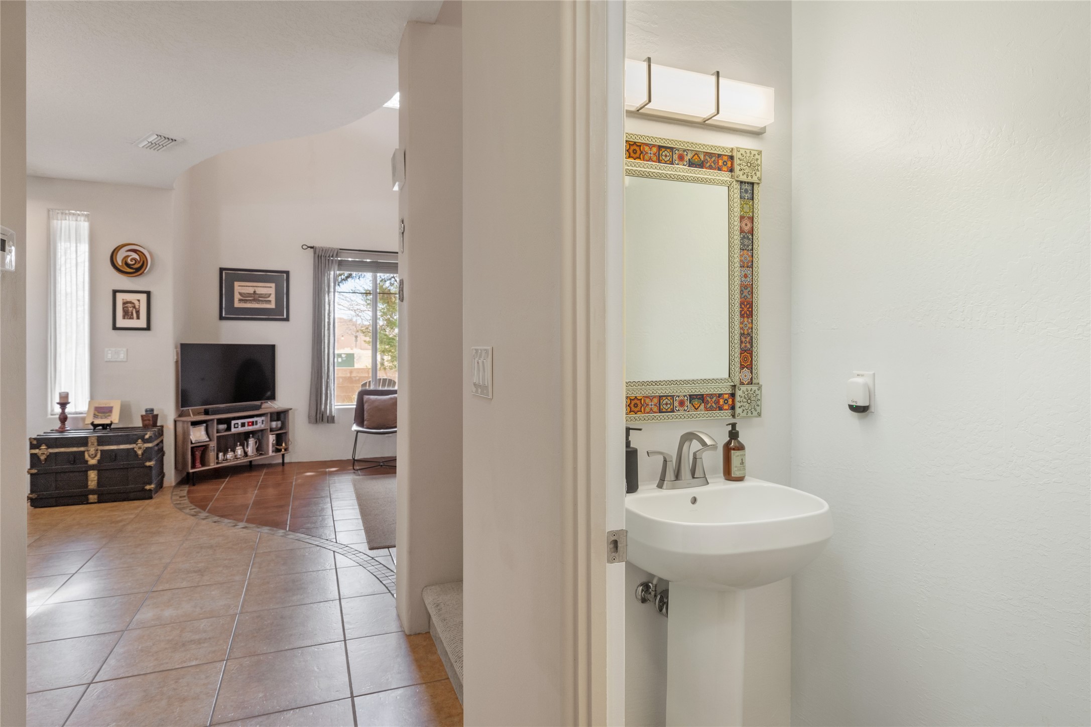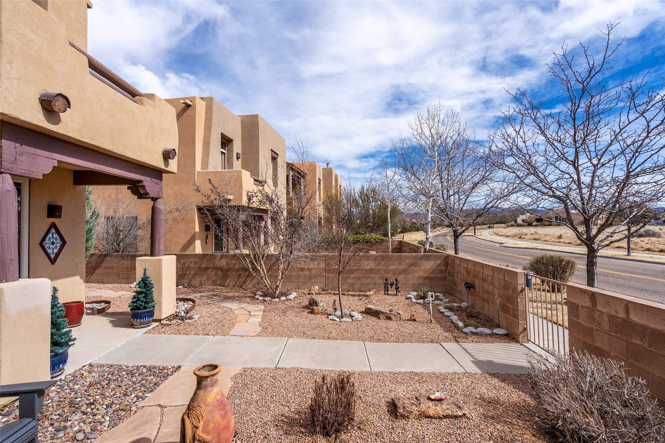 Arguably one of the finest townhomes in Rancho Viejo, this beautifully reimagined residence offers sophisticated style, thoughtful upgrades, and effortless lock-and-leave living in one of Santa Fe's most beloved communities. Over time, the home has been meticulously transformed, creating an interior that feels both refined and welcoming. Elegant tile floors extend throughout both levels, with subtle transition details that gracefully define each space. The kitchen is a standout feature, beautifully appointed with rich granite countertops, high-end stainless steel appliances, upgraded lighting, and custom blinds that create the perfect balance of natural light and ambiance. Upstairs, two well-proportioned bedrooms each enjoy their own beautifully remodeled ensuite bath, finished with custom tilework, glass enclosures, granite countertops, and designer lighting. A versatile loft provides an ideal setting for a home office, media lounge, or exercise space. Outdoor living is equally inviting. Two Trex decks capture different moments of the day and offer lovely mountain views, while the interior courtyard--larger than most--creates a welcoming front yard along with additional side yard space for relaxing or entertaining. The grounds are beautifully landscaped with a thoughtful blend of native and southwestern blooming bushes and trees. Perfectly positioned across from a designated park and situated as a private interior end unit, the home enjoys both tranquility and convenience. Residents of Rancho Viejo appreciate the community's thoughtfully preserved open space, numerous neighborhood parks, and more than 14 miles of paved walking and biking trails--creating a lifestyle defined by connection to nature, neighbors, and the beauty of the surrounding landscape.