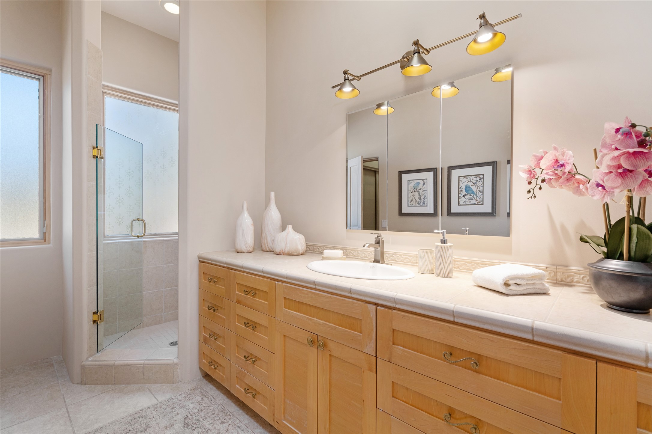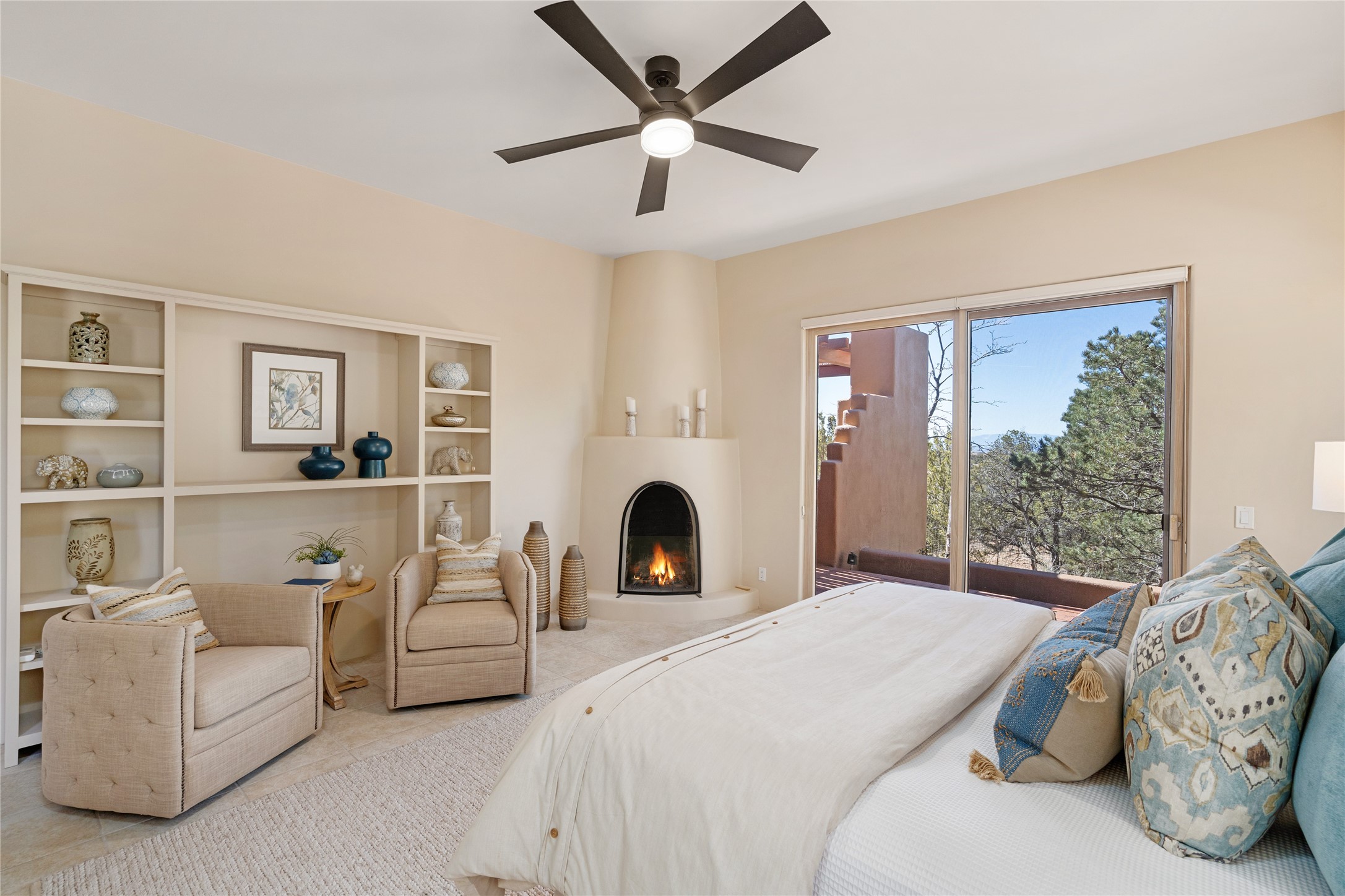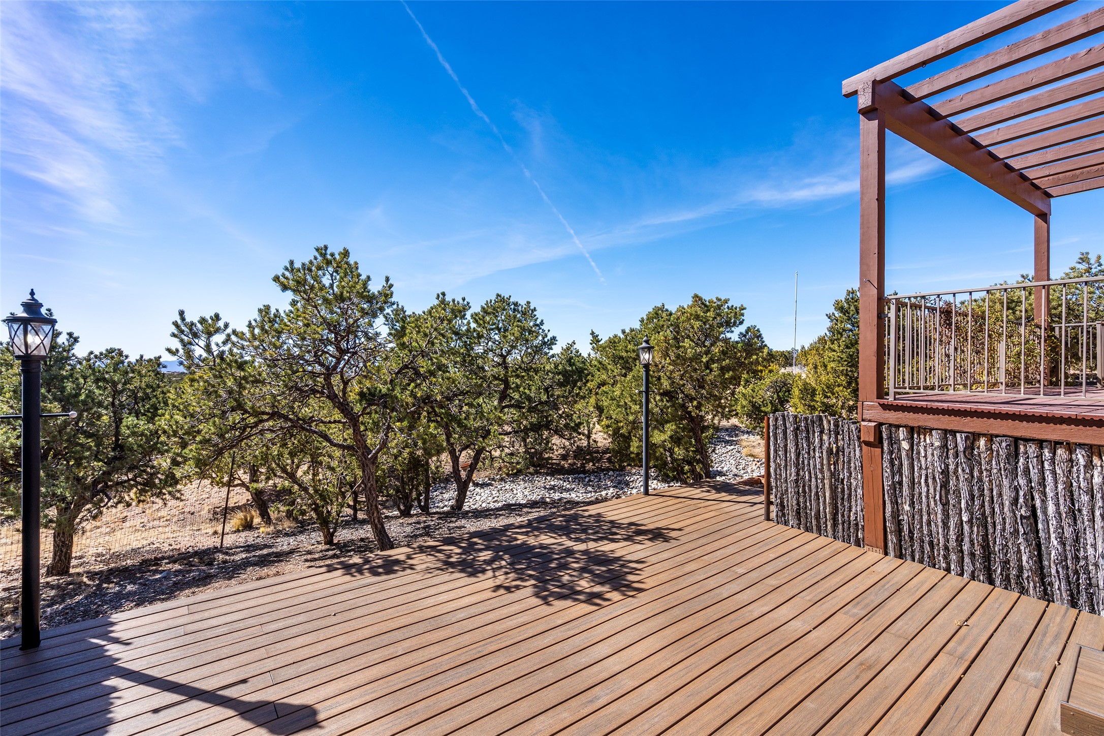 Santa Fe Compound Minutes From Plaza. This gated 8+ acre Santa Fe estate with two homes and sweeping southern views is tucked away along Old Agua Fria Road at the end of Old Pecos Trail and offers privacy and exceptional convenience. Located less than 5 miles from the Historic Santa Fe Plaza and moments from the I-25 Old Pecos Trail exit, this gated property feels peaceful and secluded while remaining incredibly accessible. The estate includes two residences with separate addresses, creating an ideal setup for multi-generational living, guests, rental potential, or a private retreat. Expansive views, big skies, and multiple outdoor living areas provide the perfect setting for entertaining or enjoying a beautiful sunset. The main residence (approx. 3,300 sq ft) features 3 bedrooms and 3.5 baths, with ensuite baths in every bedroom. The thoughtful layout includes a spacious main-level bedroom suite and two additional bedrooms upstairs, providing flexibility and privacy. The separate casita (approx. 1,200 sq ft) offers 2 bedrooms and 1.5 baths and opens to a large south-facing deck with panoramic views--an ideal space for gatherings, sunset dinners or relaxing under star-filled skies. Arroyo Hondo open space and archaeological easements run through the back of the property, which help to preserve the natural landscape, history of the area, and sight-lines. Recent improvements include new roofs with transferable warranties, a new boiler, and updated & repainted stucco. Experience the privacy, views, and convenience of this distinctive Santa Fe compound. Be sure to watch the drone video over the arroyo and property here https://youtu.be/qAOJMNmIgfY