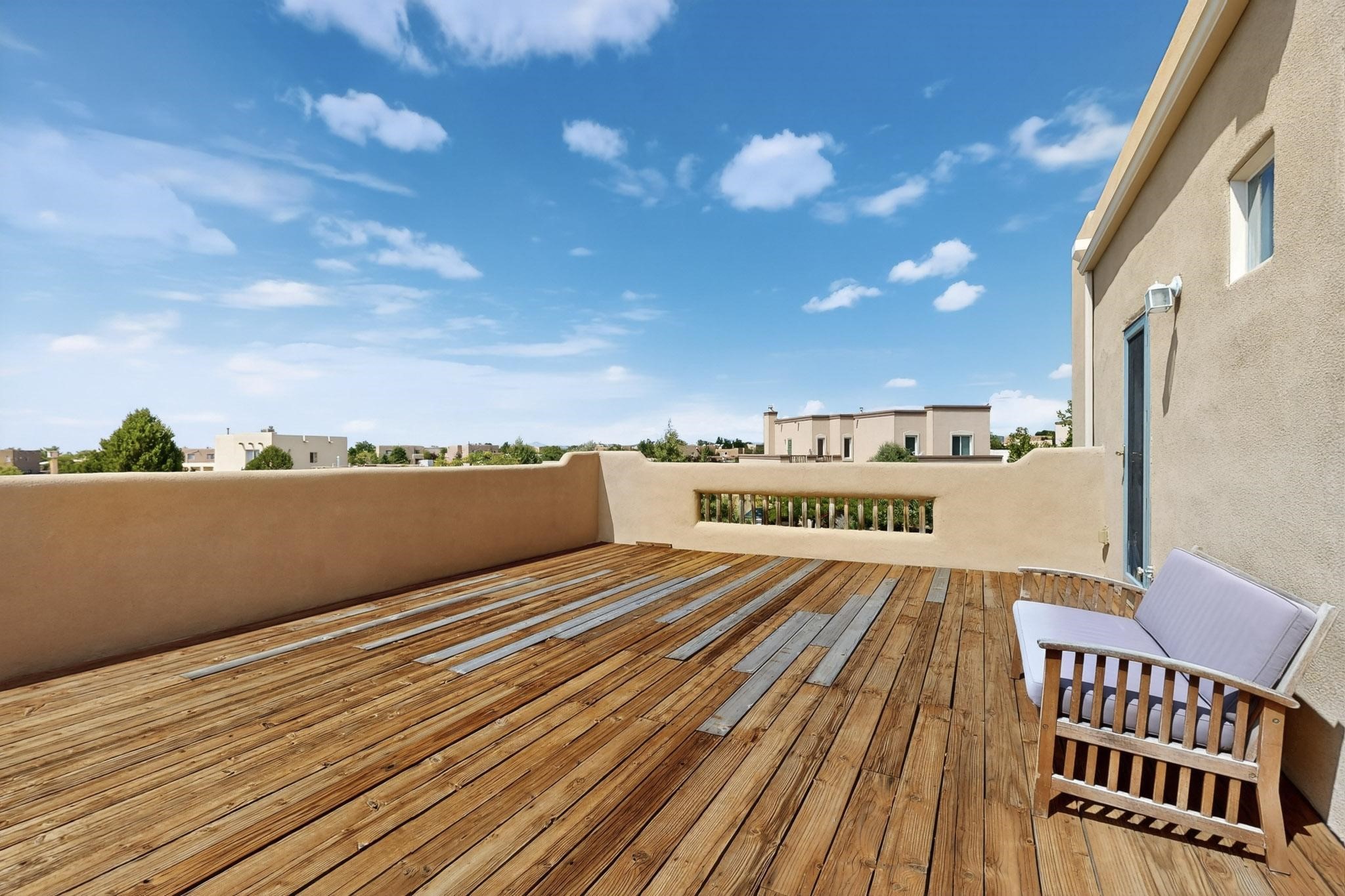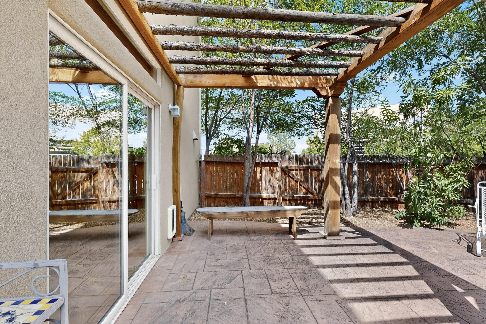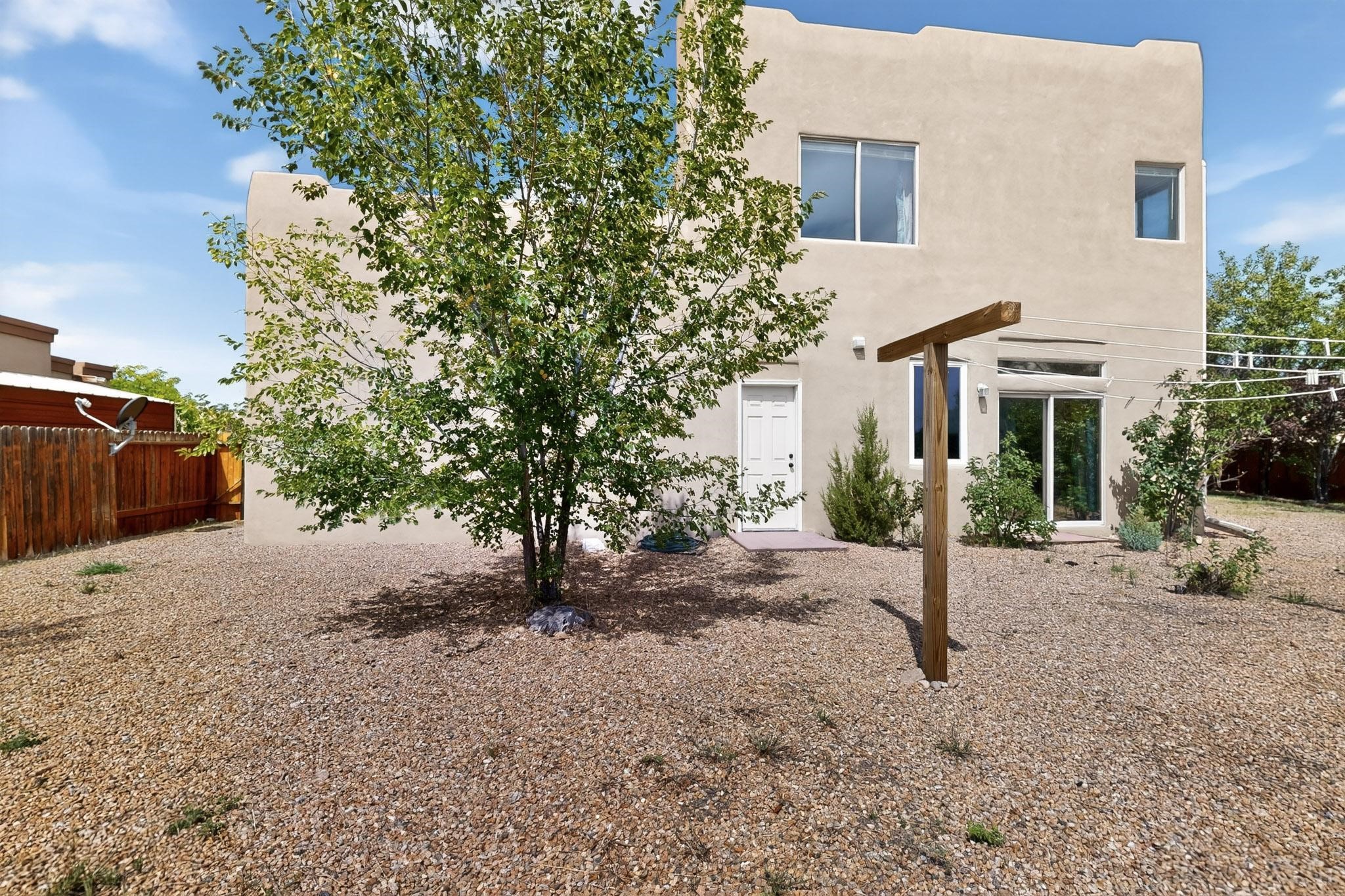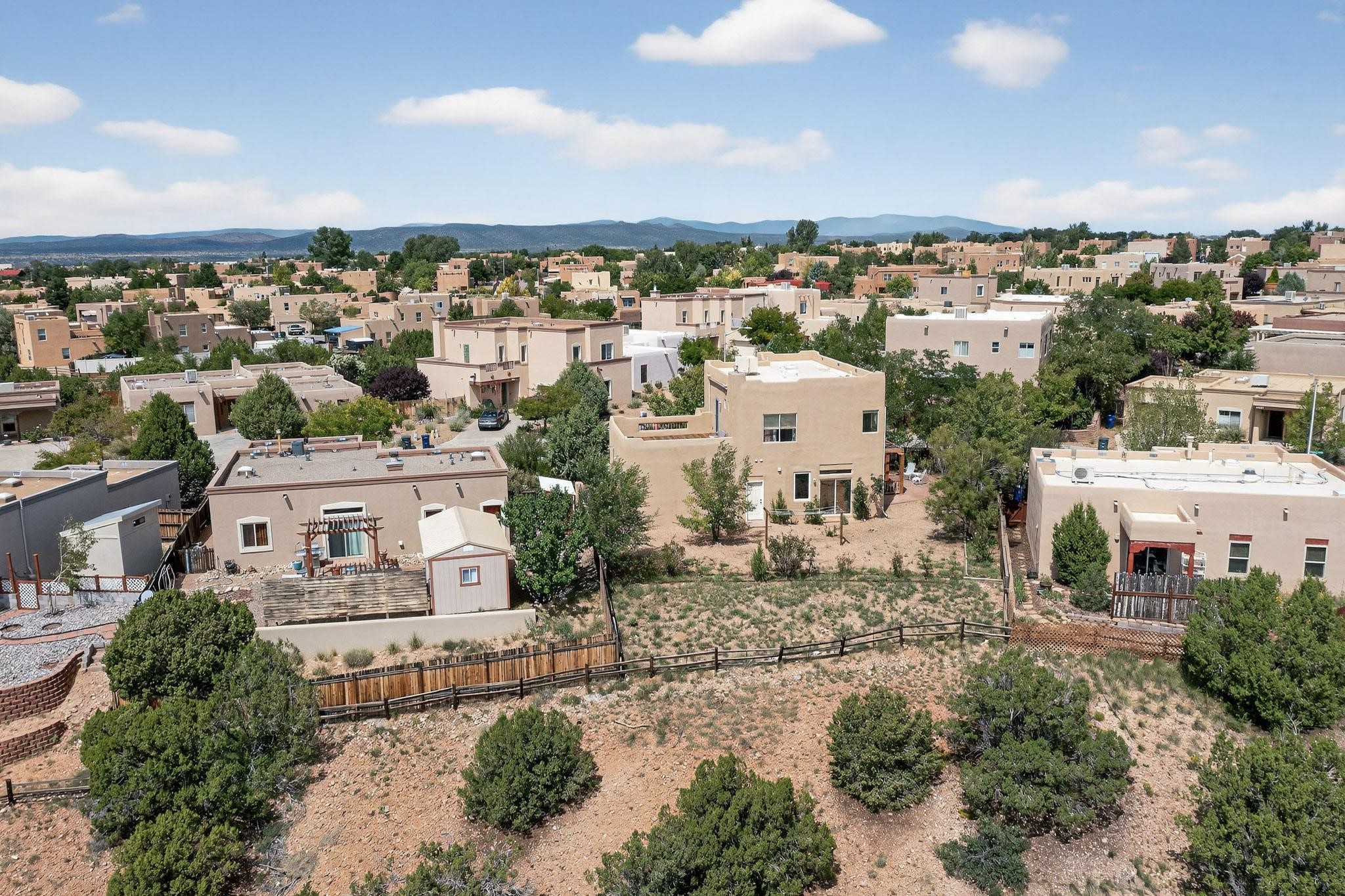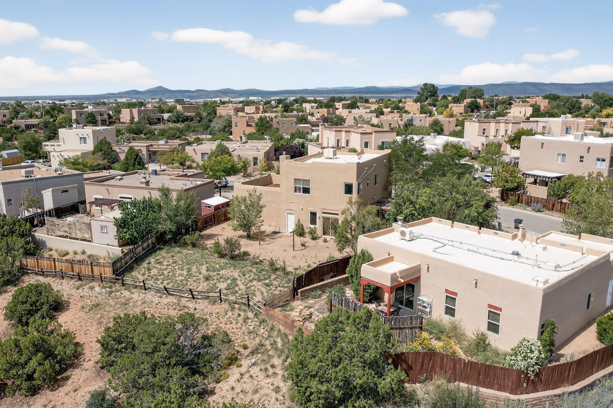 Nestled atop a serene arroyo, this exceptional property offers unparalleled convenience, mere minutes from Highway 599 and Cerrillos Road--perfect for commuters heading to Los Alamos (45 minutes) or Albuquerque (50 minutes). This location is the heart of a vibrant community, with tree-lined sidewalks and trails along Jaguar Drive, nearby schools, a public library, and the picturesque Swan Park. Plus, you can easily access historic Agua Fria Street for a quick 20-minute drive to the Railyard or Plaza in the charming heart of Santa Fe. Inside, the home welcomes you with soaring ceilings and is truly move-in ready, featuring a newer TPO roof and fresh exterior stucco. The original garage has been transformed into a stunning Artist Studio. The original garage has been transformed into a stunning Artist Studio, a versatile space that can easily be reverted back or used as additional flex space for your hobbies or as a family room. The ground floor seamlessly opens onto a spacious outdoor patio, surrounded by mature trees, creating an ideal setting for entertaining or peace and relaxation. The beautifully upgraded kitchen is perfect for culinary enthusiasts and entertaining, while the master suite upstairs offers a spa tub and a private outdoor deckyour sanctuary for morning yoga or evening stargazing. With a drip irrigation system in place to maintain lush, green grounds and keep the house cool, this property truly embodies comfort and convenience. Don't miss your chance to call this beautiful home your own!