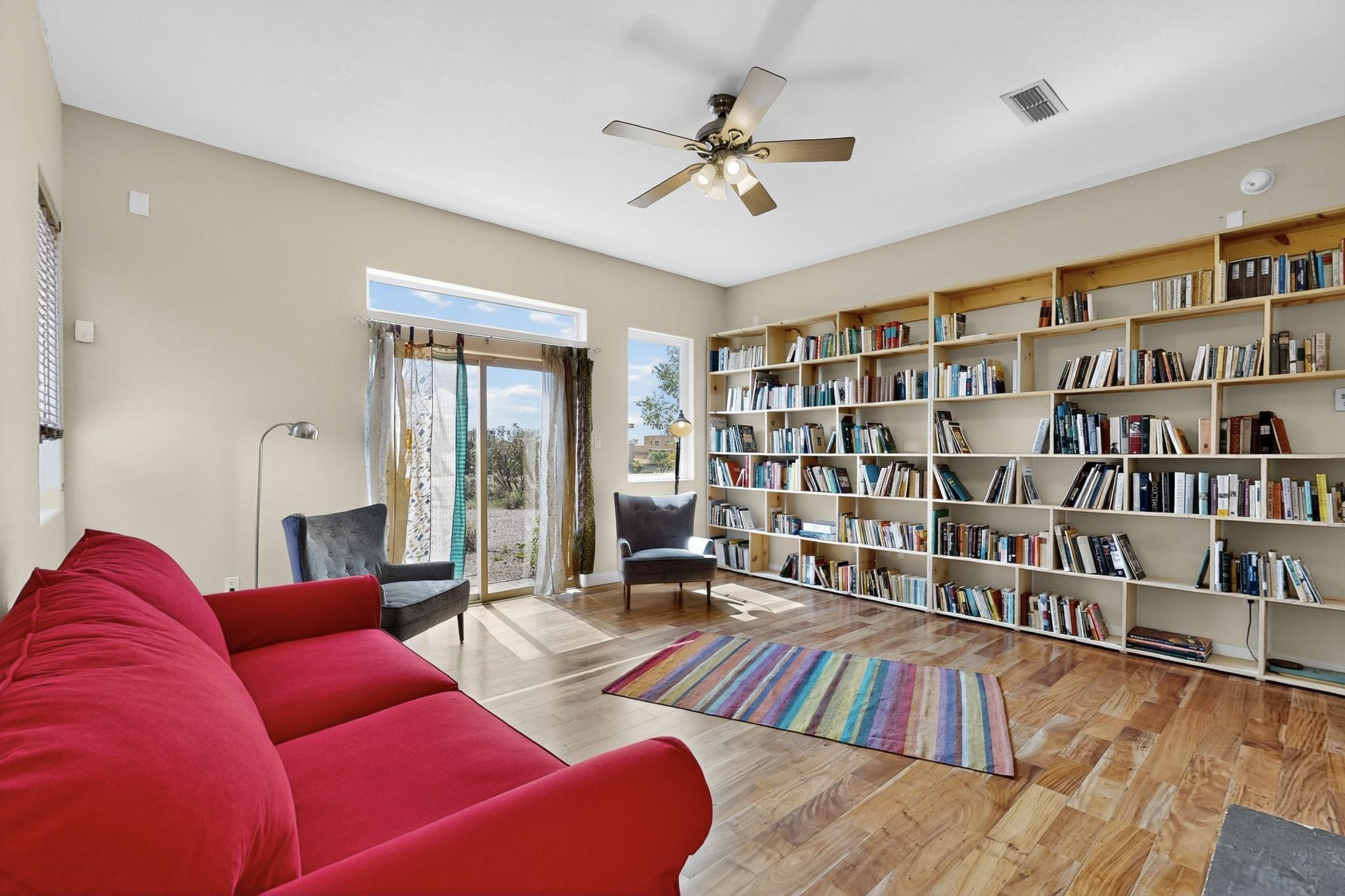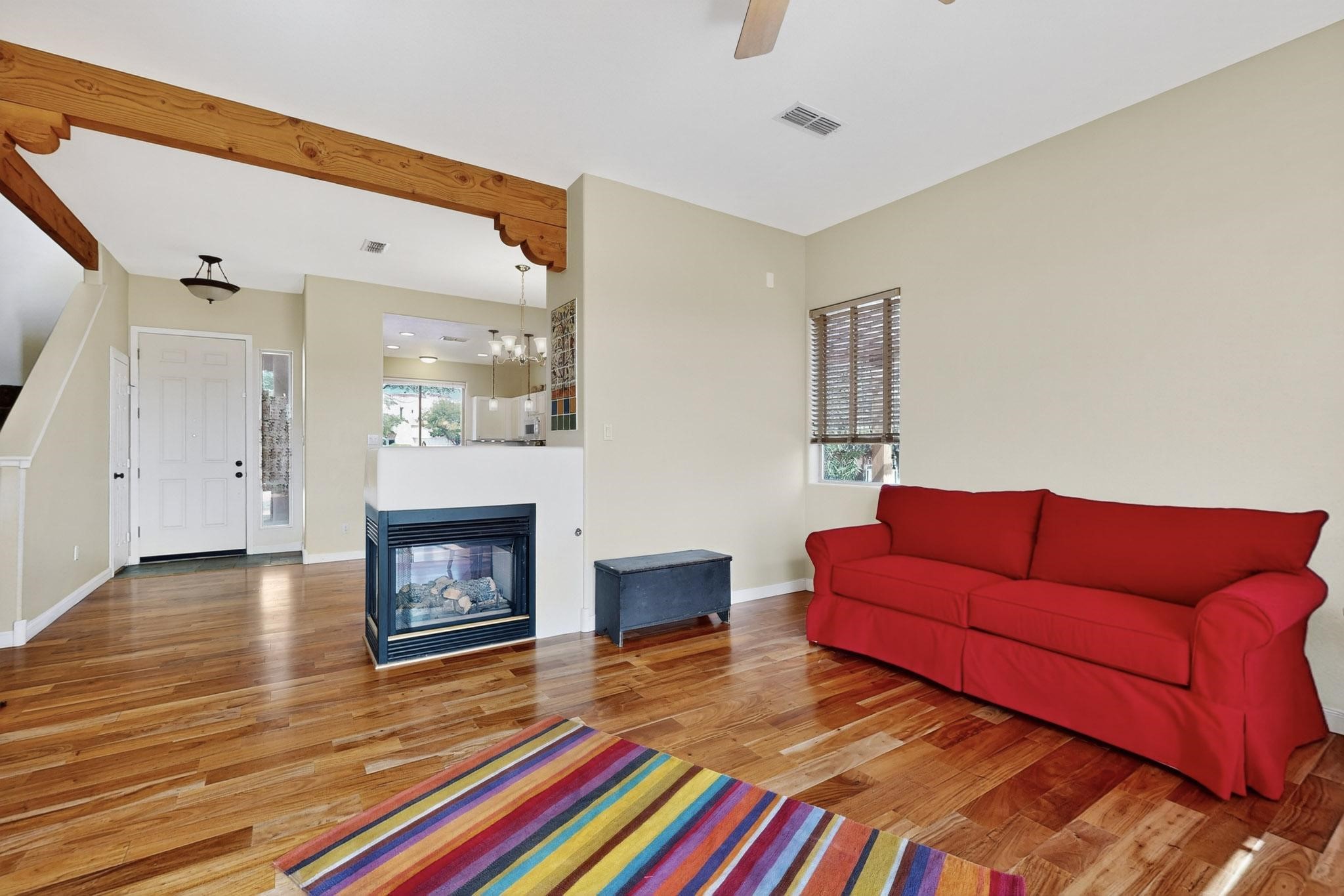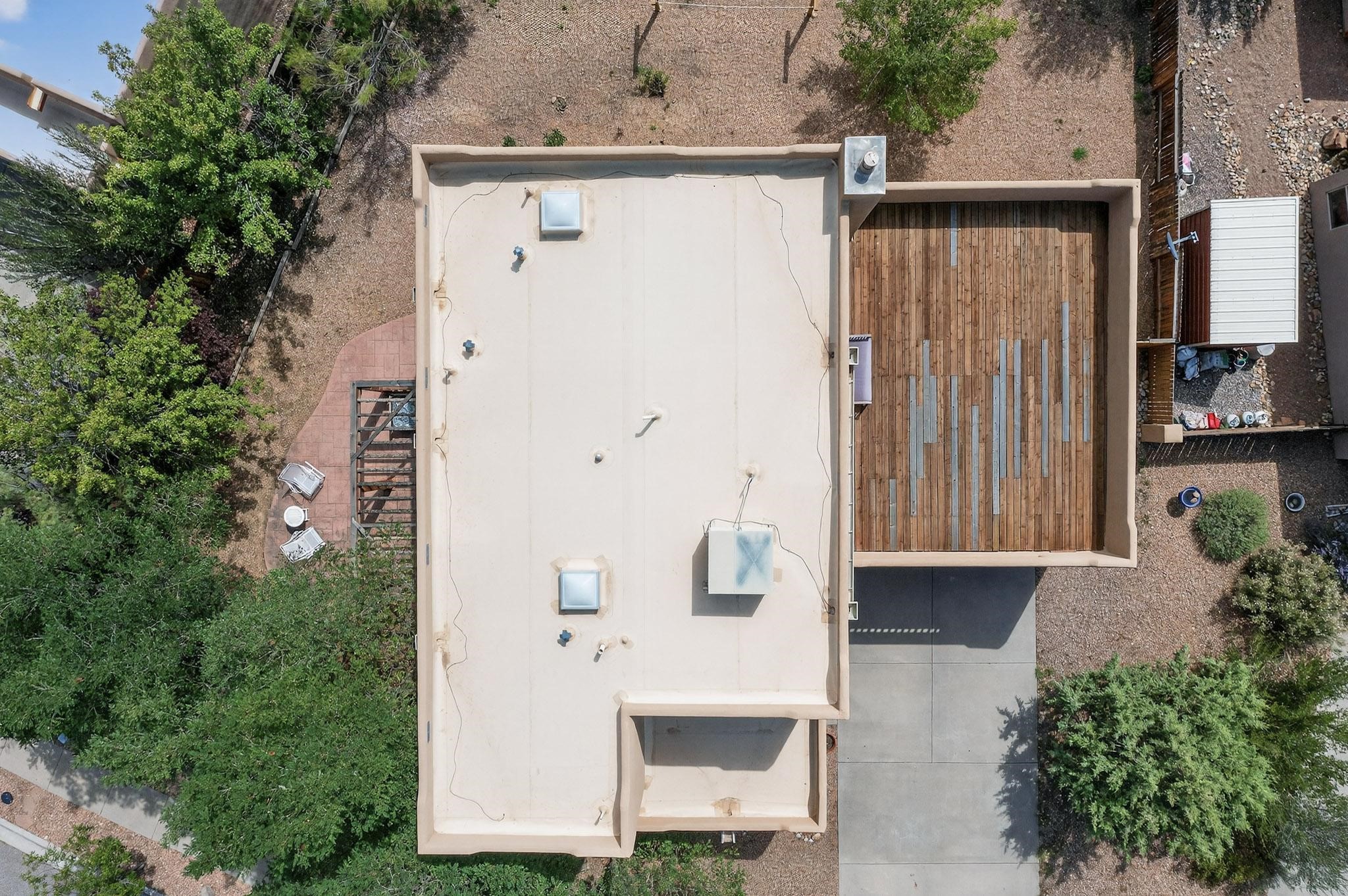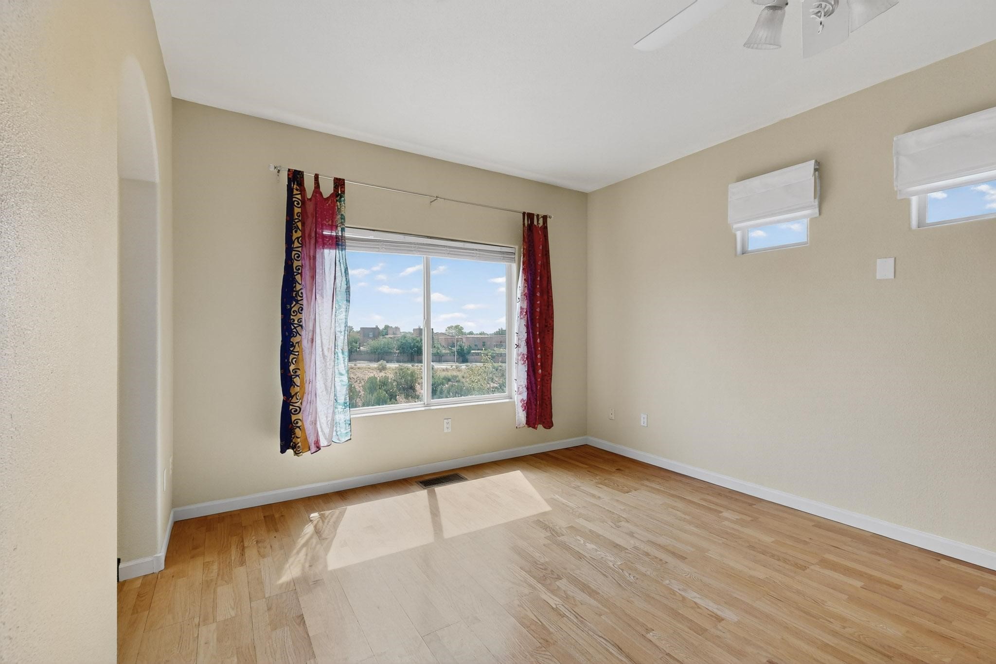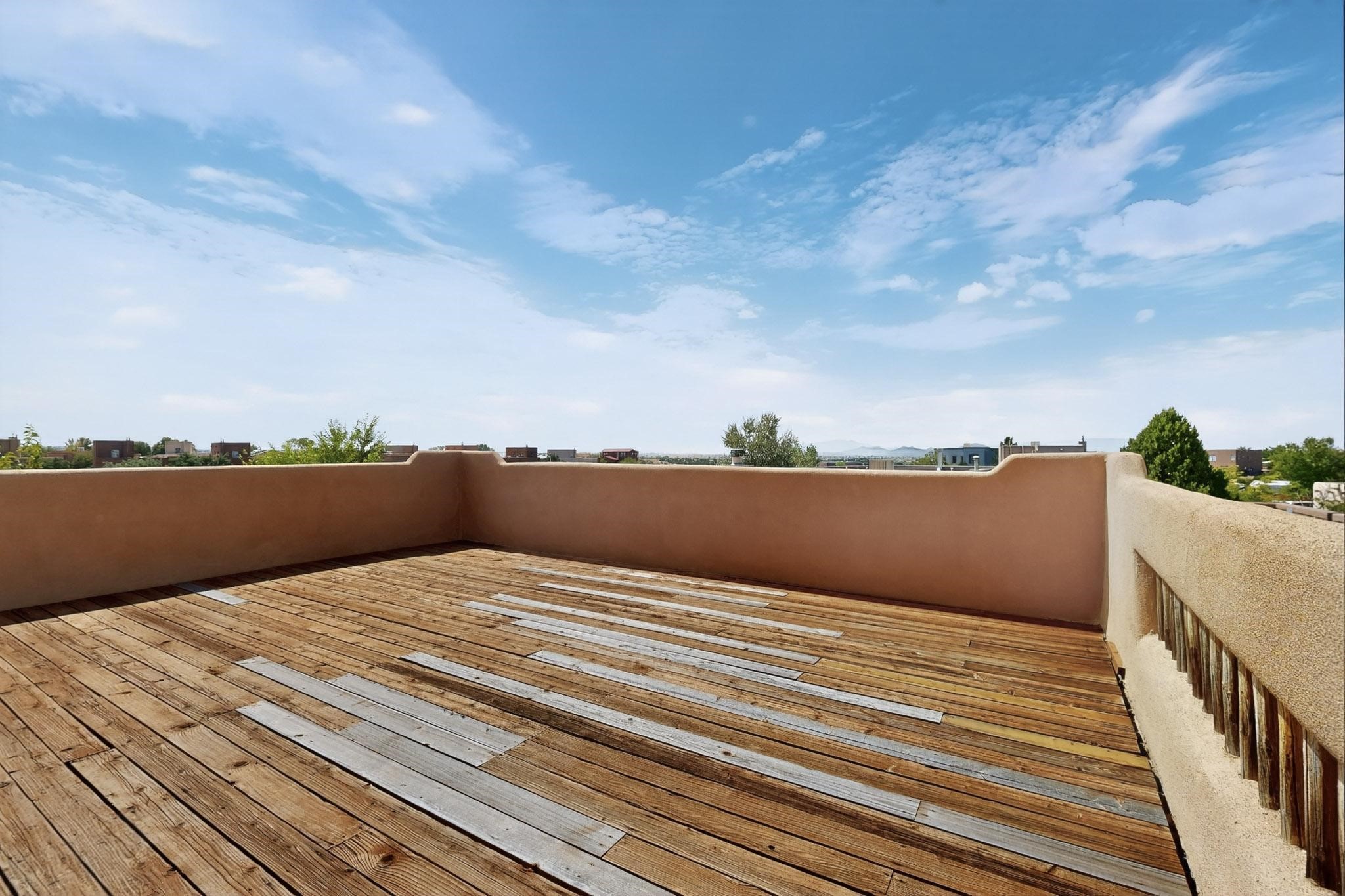 Nestled atop a serene arroyo, this exceptional property offers unparalleled convenience, mere minutes from Highway 599 and Cerrillos Road--perfect for commuters heading to Los Alamos (45 minutes) or Albuquerque (50 minutes). This location is the heart of a vibrant community, with tree-lined sidewalks and trails along Jaguar Drive, nearby schools, a public library, and the picturesque Swan Park. Plus, you can easily access historic Agua Fria Street for a quick 20-minute drive to the Railyard or Plaza in the charming heart of Santa Fe. Inside, the home welcomes you with soaring ceilings and is truly move-in ready, featuring a newer TPO roof and fresh exterior stucco. The original garage has been transformed into a stunning Artist Studio. The original garage has been transformed into a stunning Artist Studio, a versatile space that can easily be reverted back or used as additional flex space for your hobbies or as a family room. The ground floor seamlessly opens onto a spacious outdoor patio, surrounded by mature trees, creating an ideal setting for entertaining or peace and relaxation. The beautifully upgraded kitchen is perfect for culinary enthusiasts and entertaining, while the master suite upstairs offers a spa tub and a private outdoor deckyour sanctuary for morning yoga or evening stargazing. With a drip irrigation system in place to maintain lush, green grounds and keep the house cool, this property truly embodies comfort and convenience. Don't miss your chance to call this beautiful home your own!