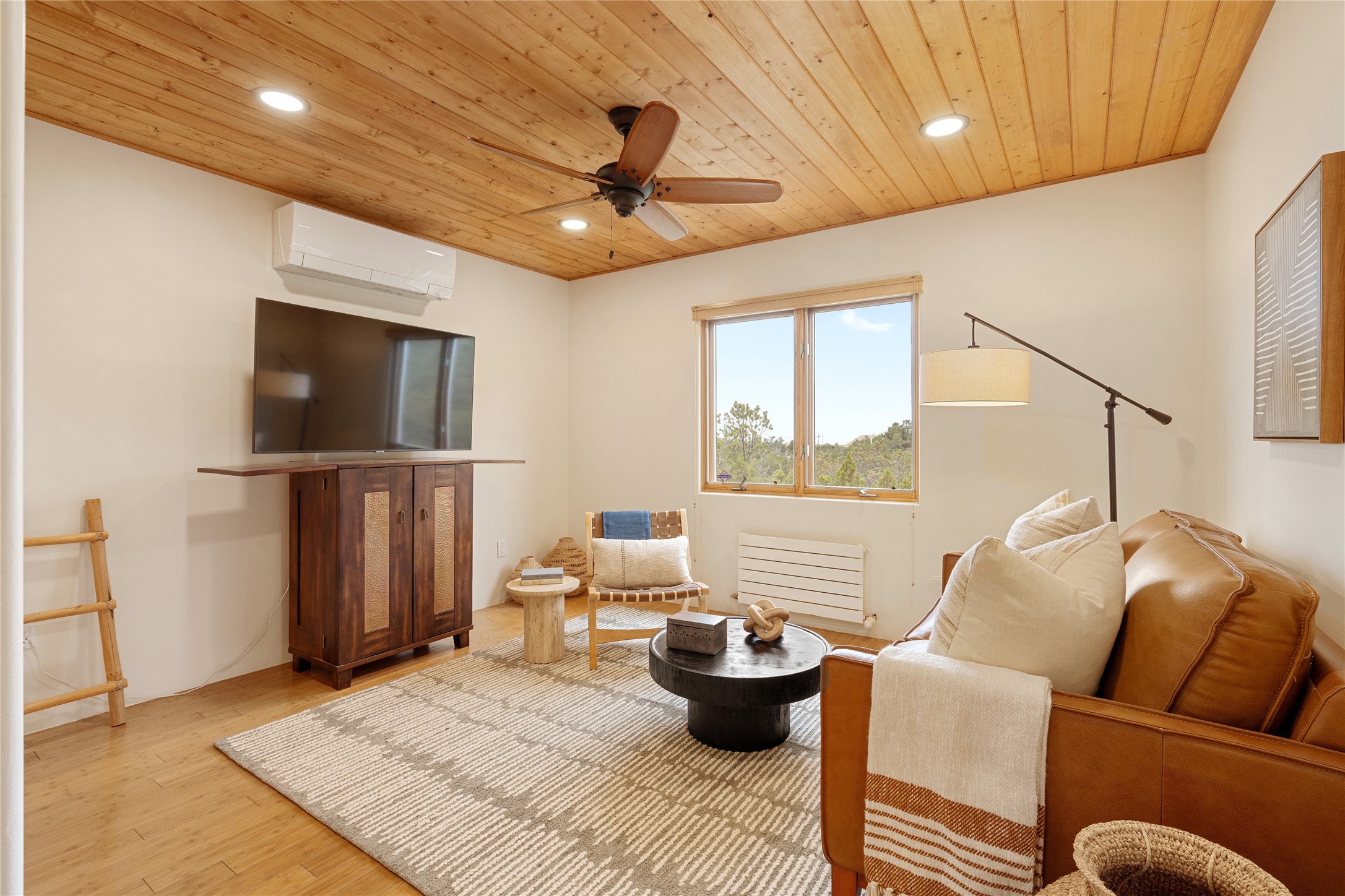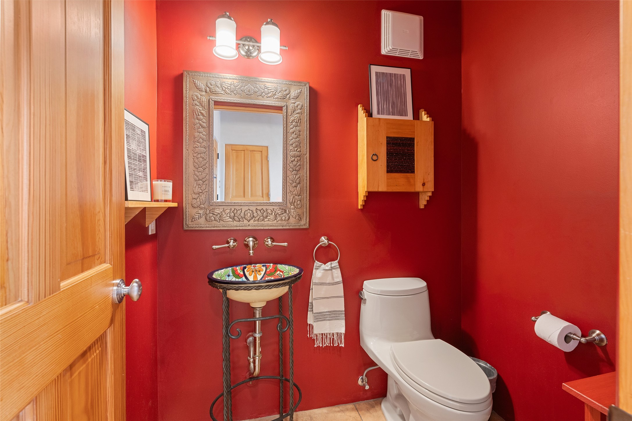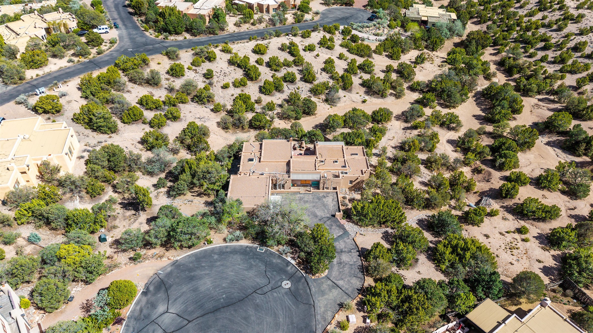 This exceptional custom Pueblo-style residence is positioned to capture sweeping mountain views and city lights across the horizon. Set within the desirable Las Lomas neighborhood, the property is minutes from the historic downtown Plaza and convenient to the Santa Fe River Trail. 1702 Watchpoint is a classic Santa Fe offering that authentically blends New Mexico architecture with modern comfort across 2,745 square feet of thoughtfully designed living space. Hand-carved entry doors open to immediate, expansive views off the patio, a first impression that sets the tone throughout. The living room anchors the main level with a classic kiva fireplace and hand-troweled plaster walls, also, directly off the living room is a flex-space suitable for a home office or studio. The multi-level layout flows naturally from formal dining with recessed lighting to an updated chef's kitchen featuring Silestone quartz countertops, stainless appliances, and a handsome tile backsplash. Many rooms connect to the outdoors, making indoor-outdoor living effortless whether for a quiet morning or a gathering on one of the home's covered portales.The primary suite is a private retreat, complete with a kiva fireplace, walk-in closet, outdoor portal, and spa-inspired bath with deep soaking tub, oversized pebble shower, and dual sinks. Two additional guest rooms share a generous full bath.An oversized two-car garage provides direct kitchen access and a dedicated laundry area. The home has been meticulously maintained and thoughtfully improved -- a full list of upgrades is available upon request. 1702 Watchpoint is a rare opportunity to own one of Las Lomas' finest homes, where authentic Santa Fe character, breathtaking views, and careful stewardship come together in one distinguished property.