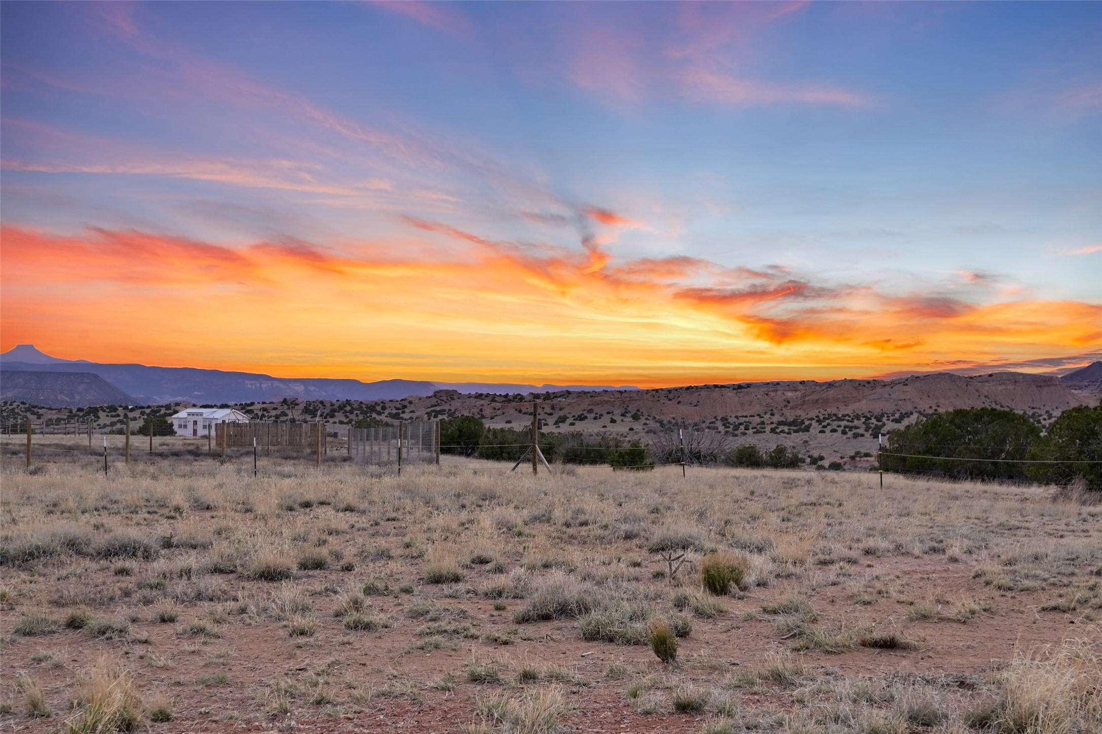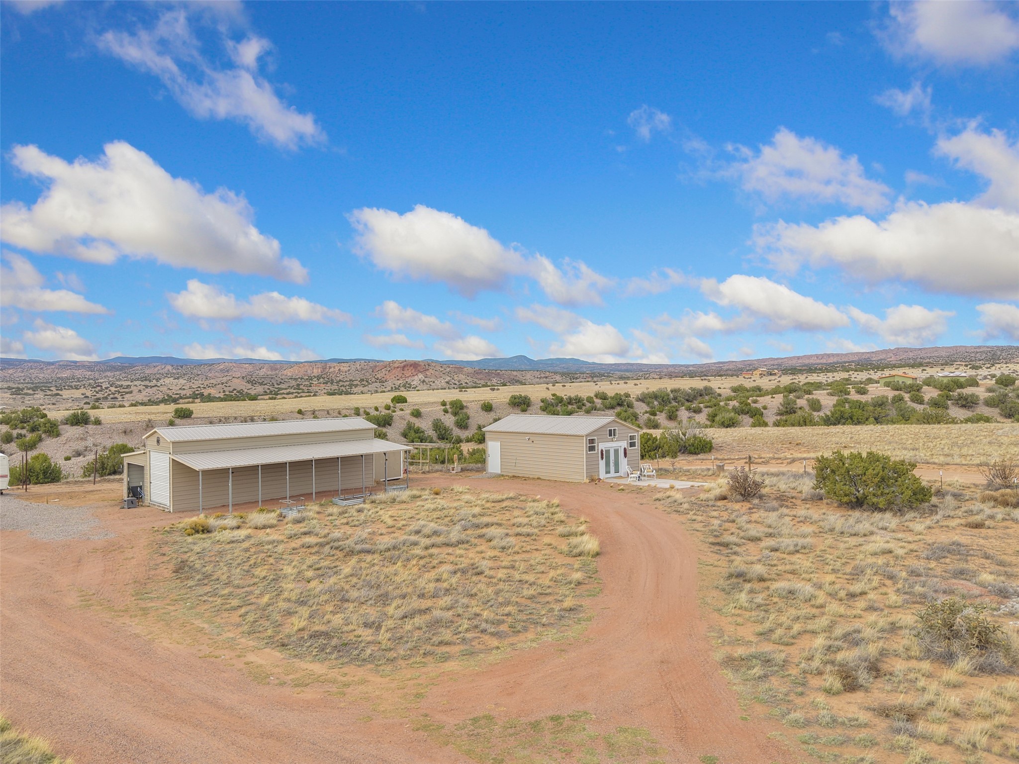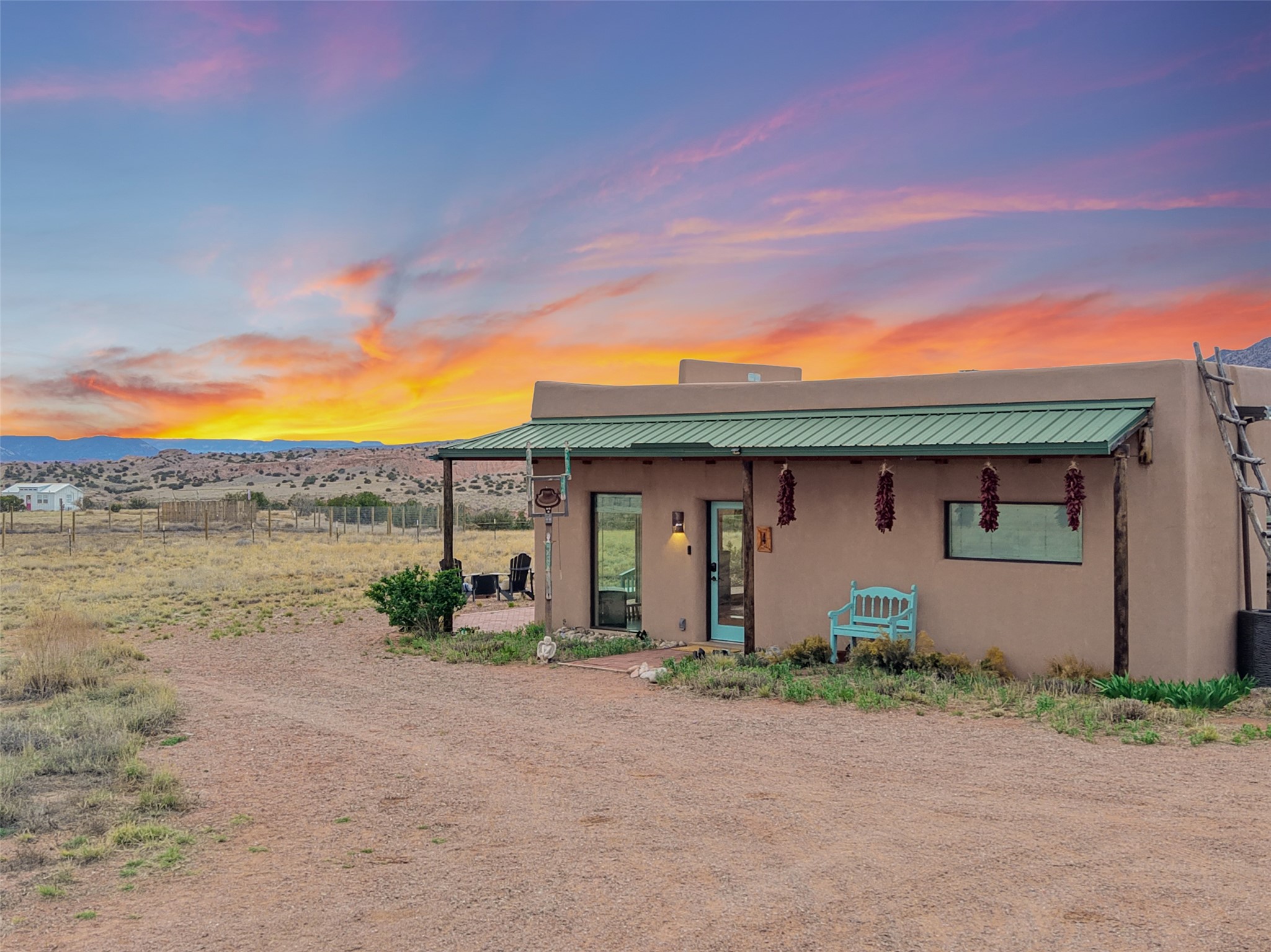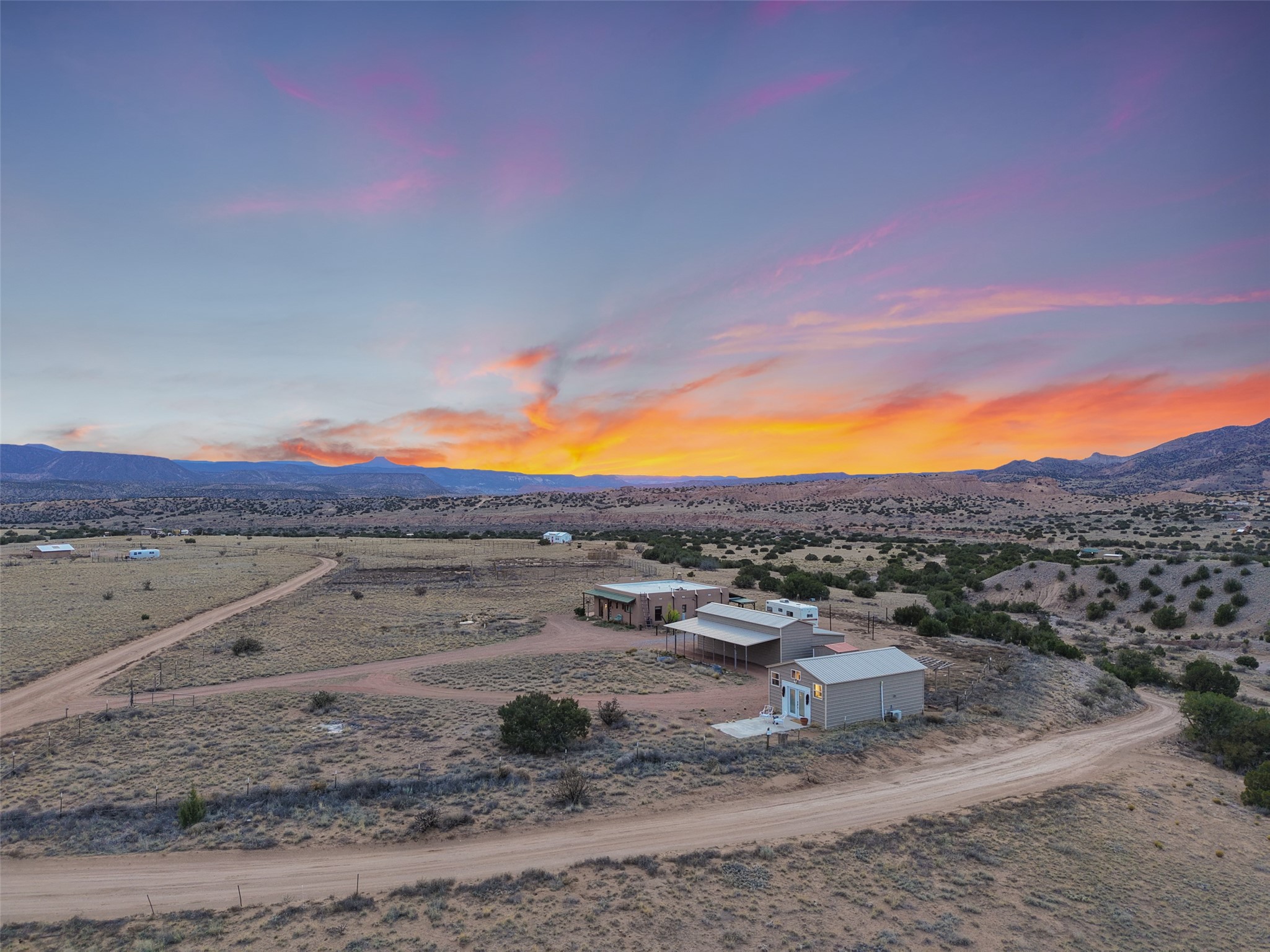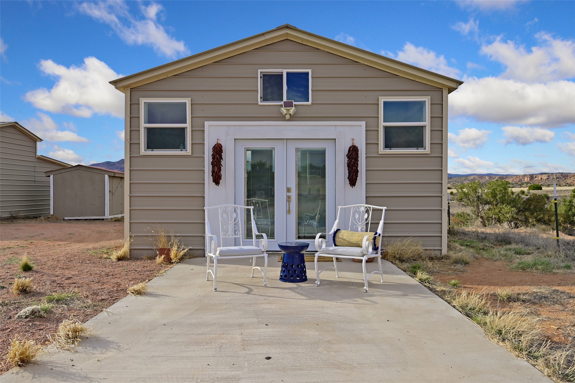 Imagine waking to endless skies, where soft morning light stretches across the high desert and the only sounds are the breeze and distant birds. This is a place of deep solitude and quiet inspiration, a landscape that invites reflection, creativity, and possibility. Days unfold slowly under vast blue skies with drifting white clouds, and evenings settle into unforgettable sunsets, with the silhouette of Pedernal Mountain glowing in the distance. At night, the stars take over, offering a front-row seat to the cosmos. This is more than a home, it's an experience of living fully immersed in the spirit of Abiqui, a place long cherished by artists like Georgia O'Keeffe. Set on 2.23 acres, this well-maintained 2-bedroom, 2-bath residence offers both comfort and character. In addition to to breathtaking views, the home is thoughtfully appointed with stone countertops, stainless steel appliances, and an induction cooktop, blending modern convenience with a timeless Southwestern feel. Large picture windows expertly frame picturesque vistas from room to room. A covered portal extends the living space outdoors The property includes a converted barn now serving as an artist studio, an inspiring space create surrounded by natural beauty. The studio is equipped with an unfinished bath and kitchenette, with all materials included to complete the vision. Additional features include versatile barn with a loft, roll-up door, and concrete floor, as well as additional hay storage. The property also includes a trailer that can convey with the sale, along with materials needed to finish it into guest accommodations or additional living space, offering excellent flexibility and potential. Located near Abiquiu Lake, Ghost Ranch, Plaza Blanca, and Poshuouinge Ruins, the property offers access to some of the Southwest's most iconic landscapes, along with local shops and dining in the Abiqui area. Whether you're seeking a creative sanctuary, a peaceful escape, or a place to live in harmony with the land, 4 Fair Hope Drive offers an extraordinary opportunity to step into a lifestyle defined by beauty, space, and inspiration.
