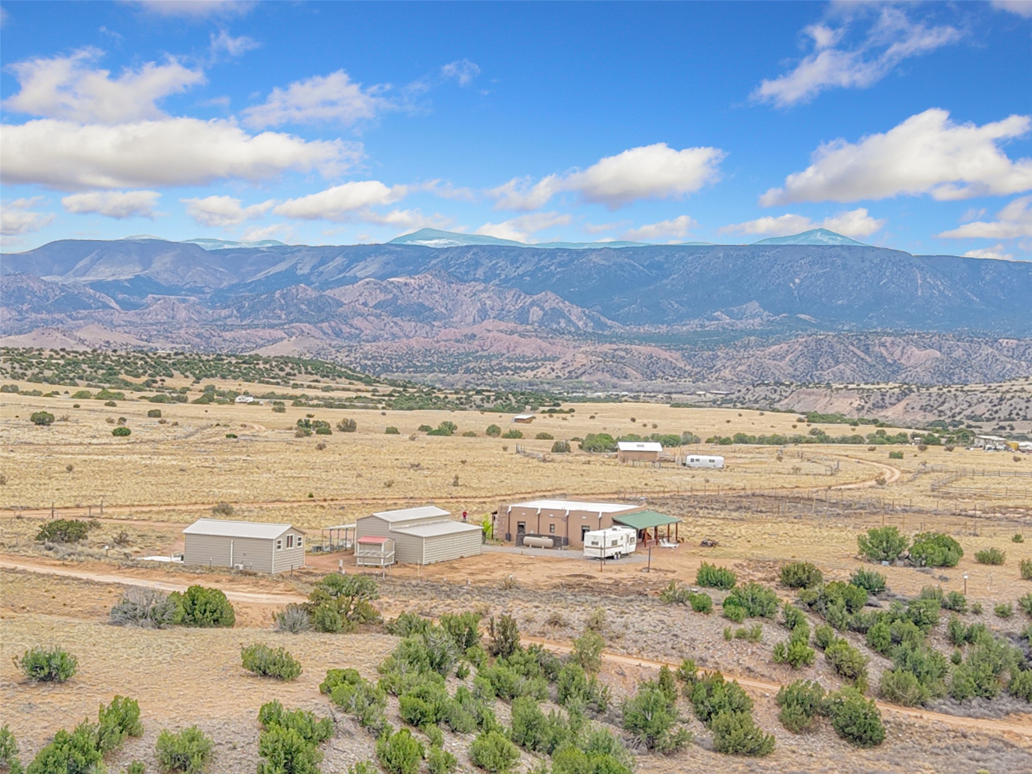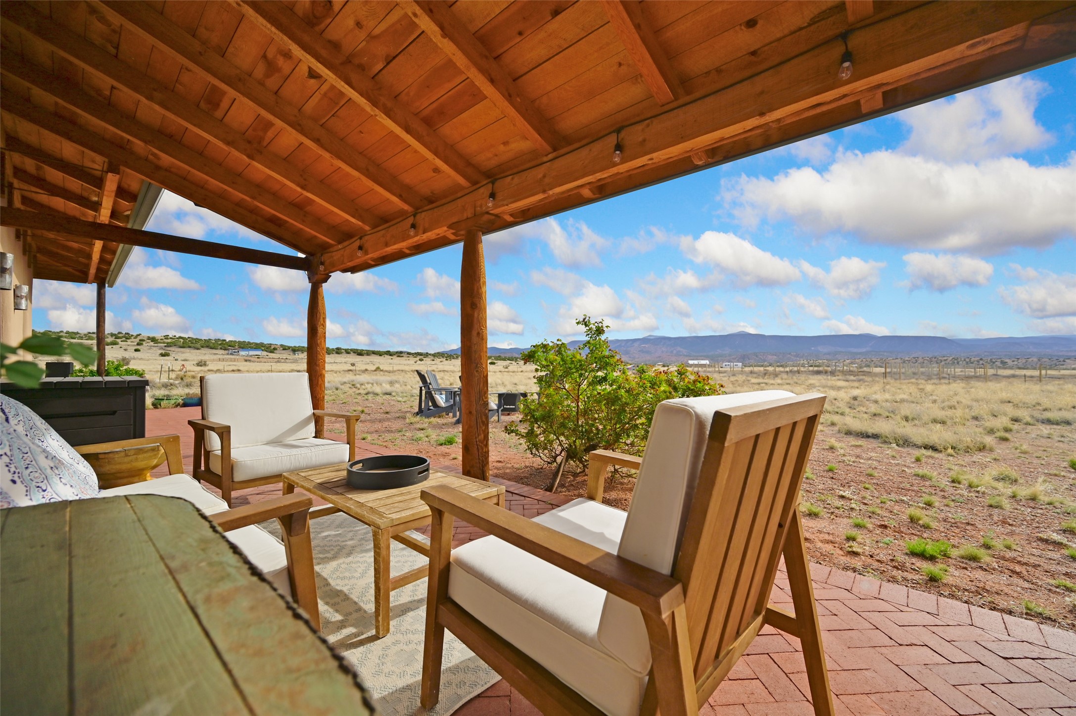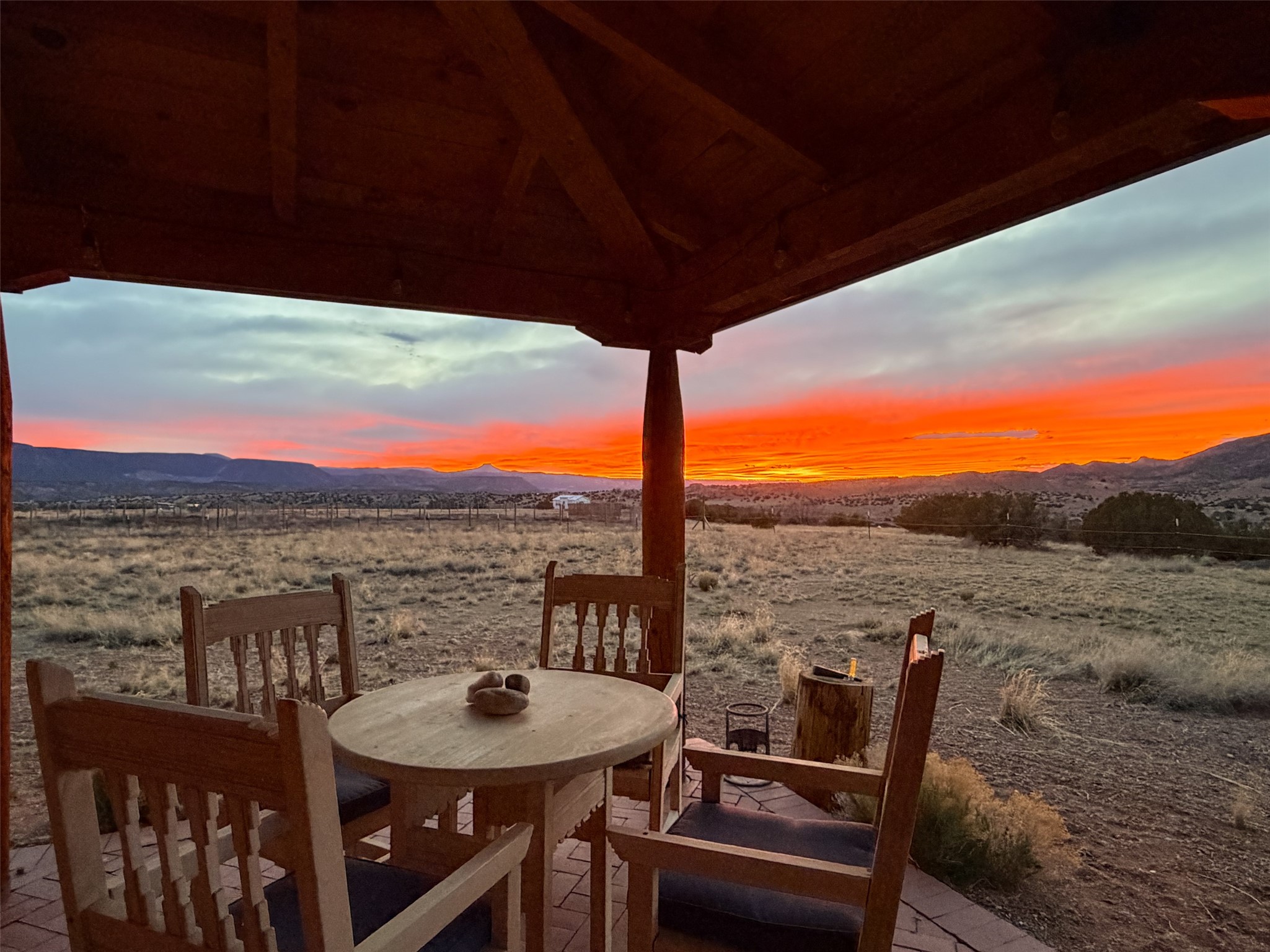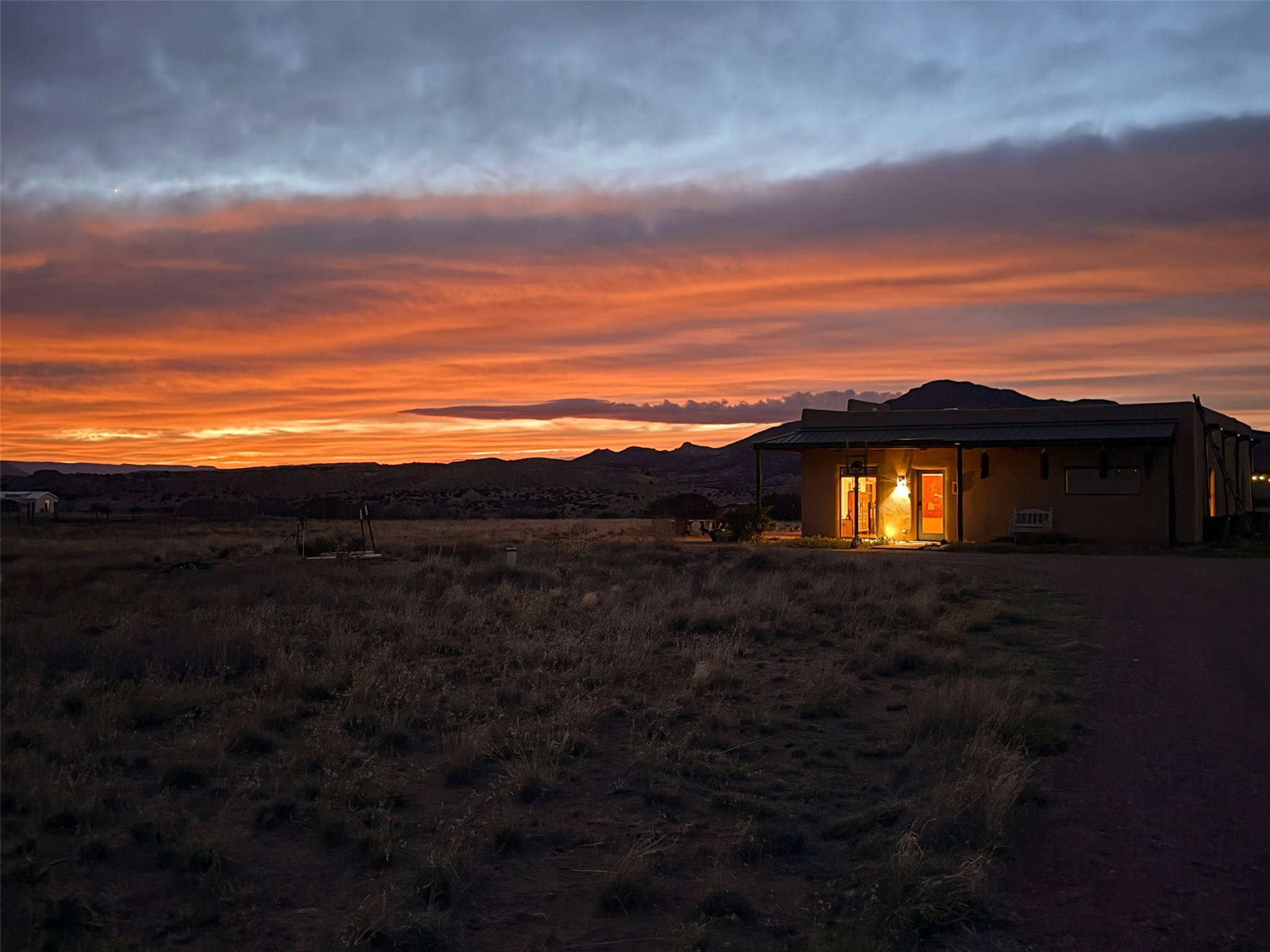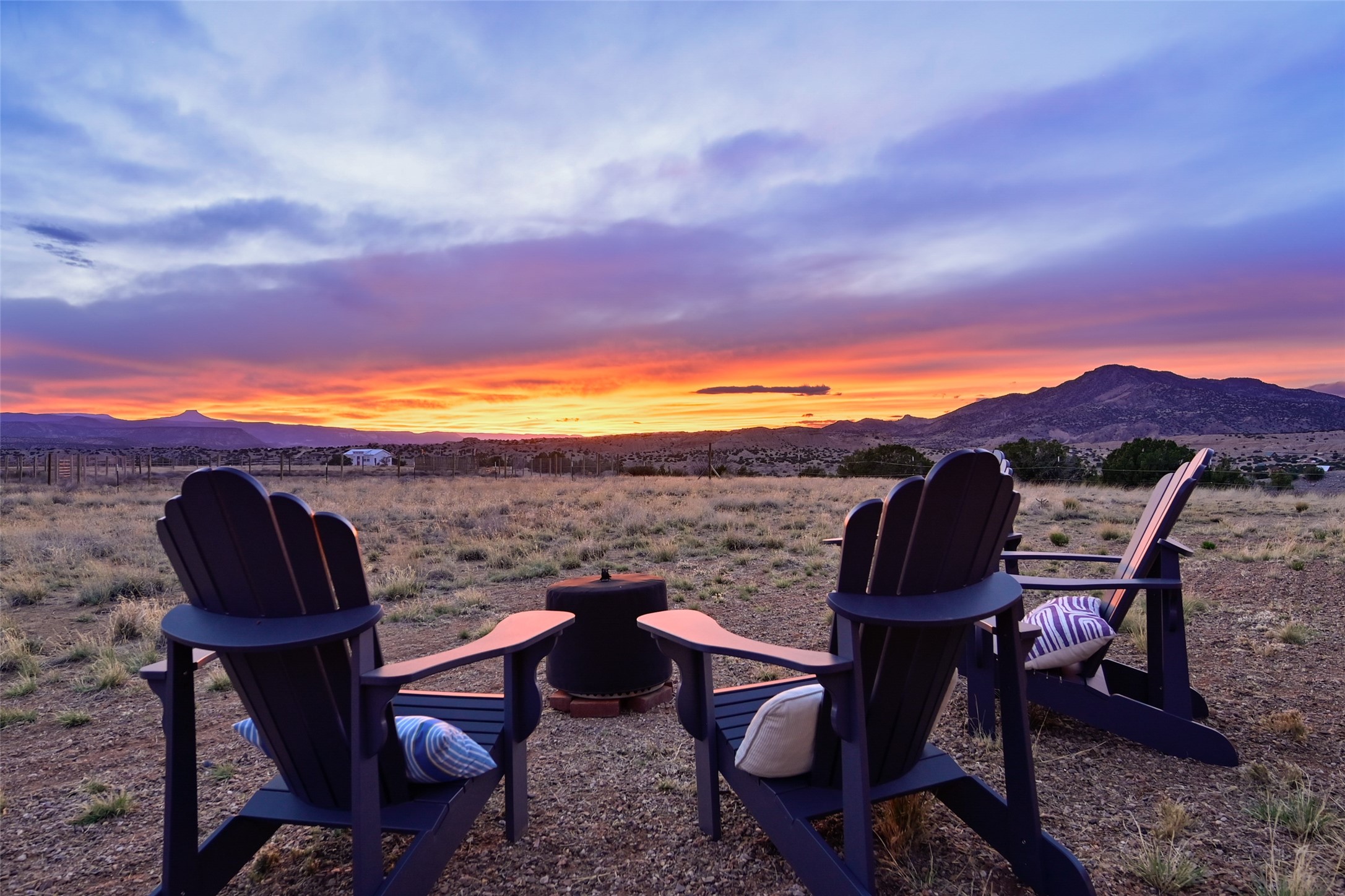 Imagine waking to endless skies, where soft morning light stretches across the high desert and the only sounds are the breeze and distant birds. This is a place of deep solitude and quiet inspiration, a landscape that invites reflection, creativity, and possibility. Days unfold slowly under vast blue skies with drifting white clouds, and evenings settle into unforgettable sunsets, with the silhouette of Pedernal Mountain glowing in the distance. At night, the stars take over, offering a front-row seat to the cosmos. This is more than a home, it's an experience of living fully immersed in the spirit of Abiqui, a place long cherished by artists like Georgia O'Keeffe. Set on 2.23 acres, this well-maintained 2-bedroom, 2-bath residence offers both comfort and character. In addition to to breathtaking views, the home is thoughtfully appointed with stone countertops, stainless steel appliances, and an induction cooktop, blending modern convenience with a timeless Southwestern feel. Large picture windows expertly frame picturesque vistas from room to room. A covered portal extends the living space outdoors The property includes a converted barn now serving as an artist studio, an inspiring space create surrounded by natural beauty. The studio is equipped with an unfinished bath and kitchenette, with all materials included to complete the vision. Additional features include versatile barn with a loft, roll-up door, and concrete floor, as well as additional hay storage. The property also includes a trailer that can convey with the sale, along with materials needed to finish it into guest accommodations or additional living space, offering excellent flexibility and potential. Located near Abiquiu Lake, Ghost Ranch, Plaza Blanca, and Poshuouinge Ruins, the property offers access to some of the Southwest's most iconic landscapes, along with local shops and dining in the Abiqui area. Whether you're seeking a creative sanctuary, a peaceful escape, or a place to live in harmony with the land, 4 Fair Hope Drive offers an extraordinary opportunity to step into a lifestyle defined by beauty, space, and inspiration.