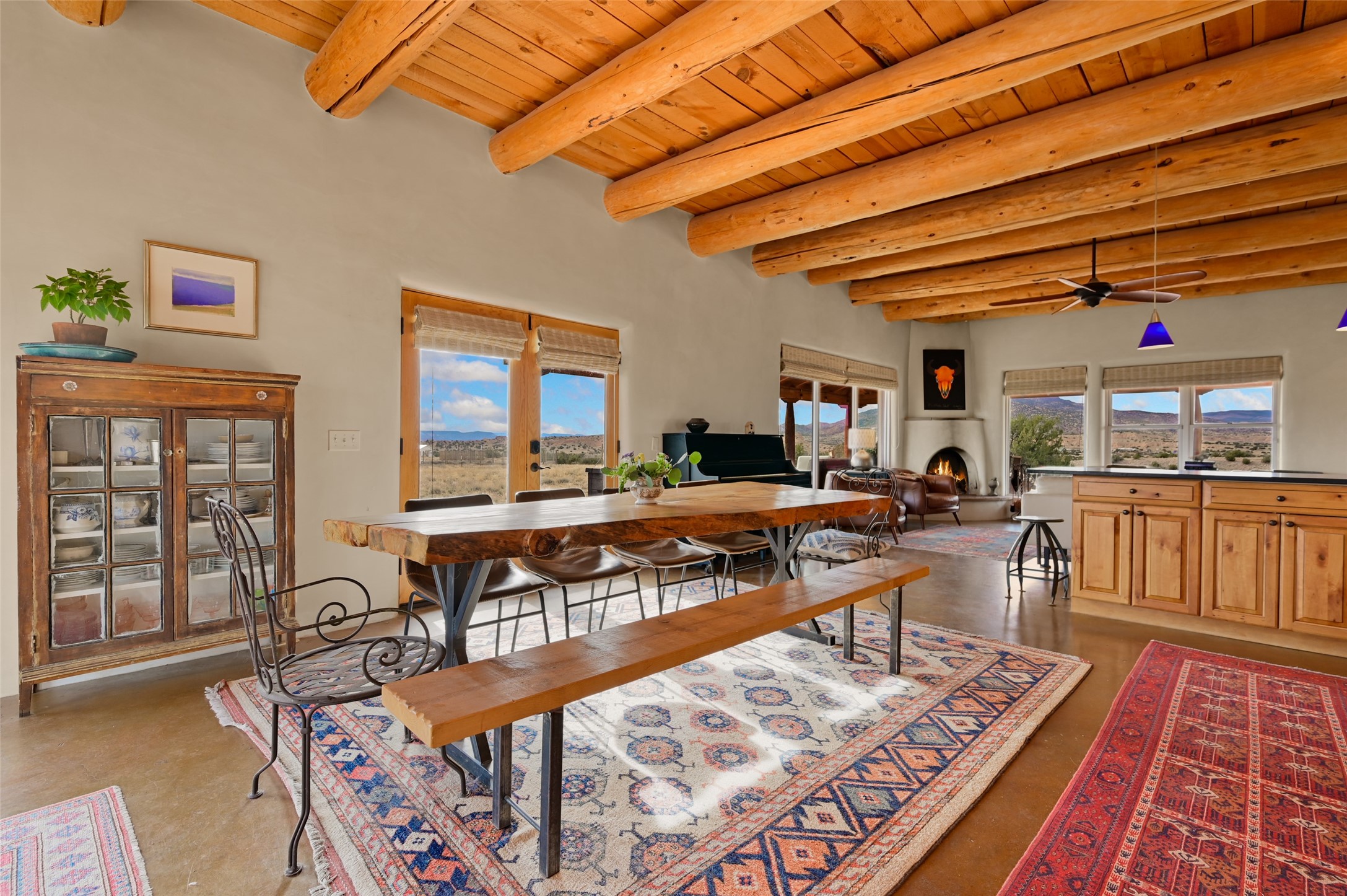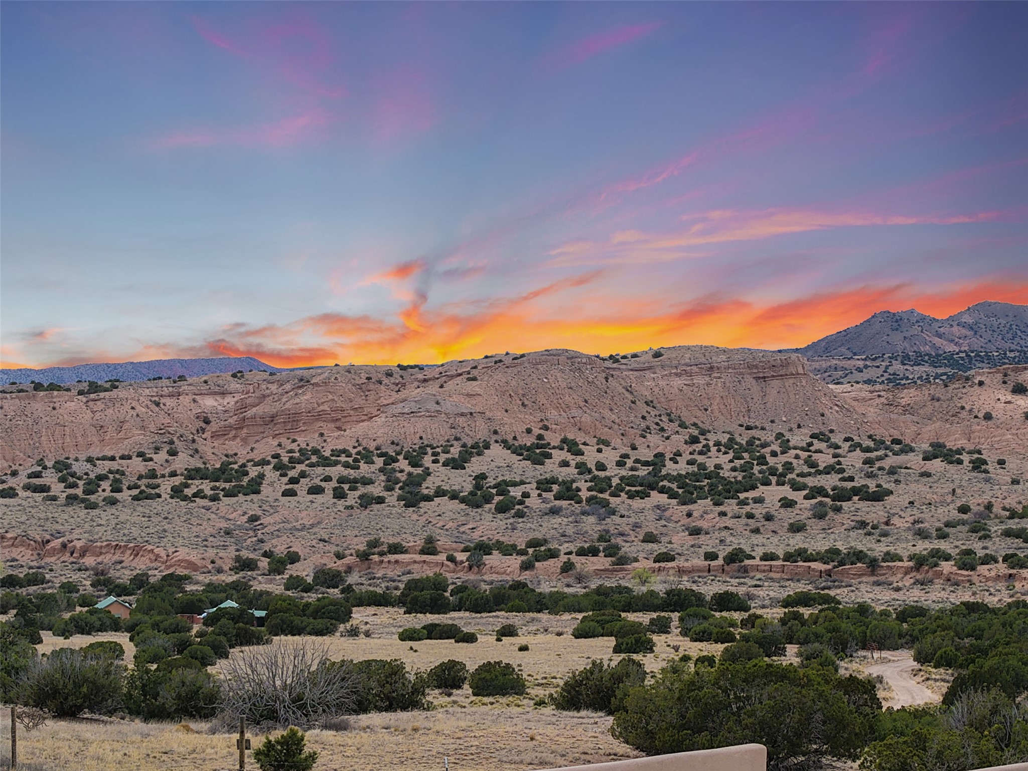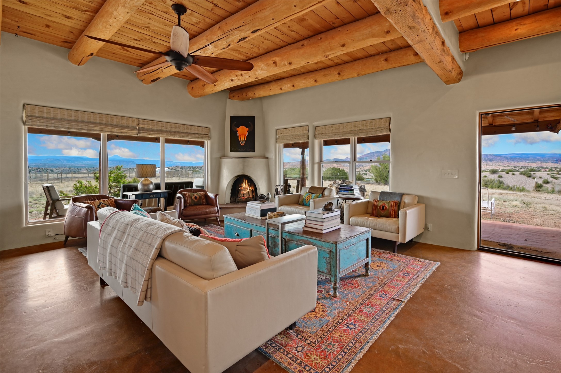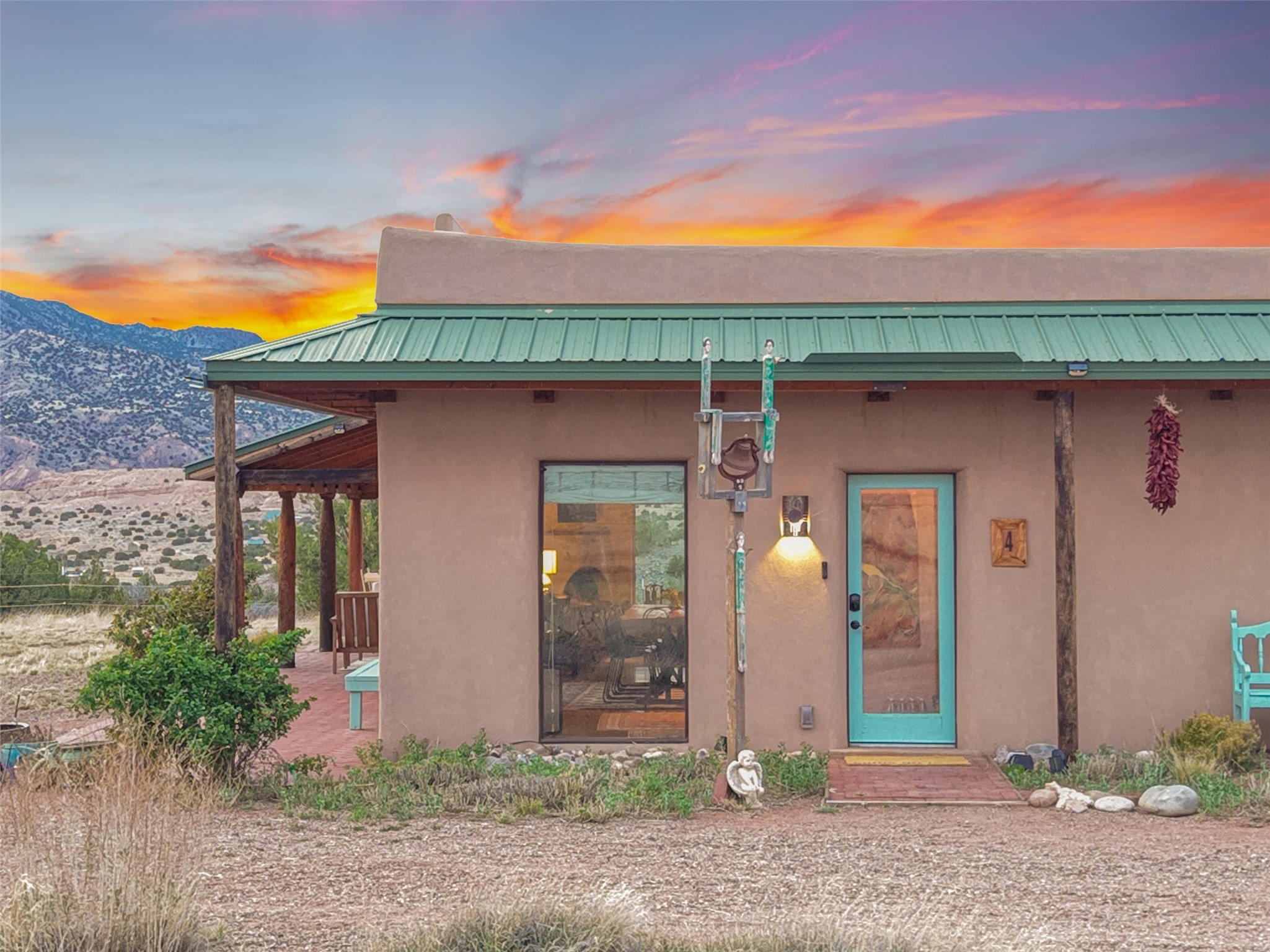 Imagine waking to endless skies, where soft morning light stretches across the high desert and the only sounds are the breeze and distant birds. This is a place of deep solitude and quiet inspiration, a landscape that invites reflection, creativity, and possibility. Days unfold slowly under vast blue skies with drifting white clouds, and evenings settle into unforgettable sunsets, with the silhouette of Pedernal Mountain glowing in the distance. At night, the stars take over, offering a front-row seat to the cosmos. This is more than a home, it's an experience of living fully immersed in the spirit of Abiqui, a place long cherished by artists like Georgia O'Keeffe. Set on 2.23 acres, this well-maintained 2-bedroom, 2-bath residence offers both comfort and character. In addition to to breathtaking views, the home is thoughtfully appointed with stone countertops, stainless steel appliances, and an induction cooktop, blending modern convenience with a timeless Southwestern feel. Large picture windows expertly frame picturesque vistas from room to room. A covered portal extends the living space outdoors The property includes a converted barn now serving as an artist studio, an inspiring space create surrounded by natural beauty. The studio is equipped with an unfinished bath and kitchenette, with all materials included to complete the vision. Additional features include versatile barn with a loft, roll-up door, and concrete floor, as well as additional hay storage. The property also includes a trailer that can convey with the sale, along with materials needed to finish it into guest accommodations or additional living space, offering excellent flexibility and potential. Located near Abiquiu Lake, Ghost Ranch, Plaza Blanca, and Poshuouinge Ruins, the property offers access to some of the Southwest's most iconic landscapes, along with local shops and dining in the Abiqui area. Whether you're seeking a creative sanctuary, a peaceful escape, or a place to live in harmony with the land, 4 Fair Hope Drive offers an extraordinary opportunity to step into a lifestyle defined by beauty, space, and inspiration.