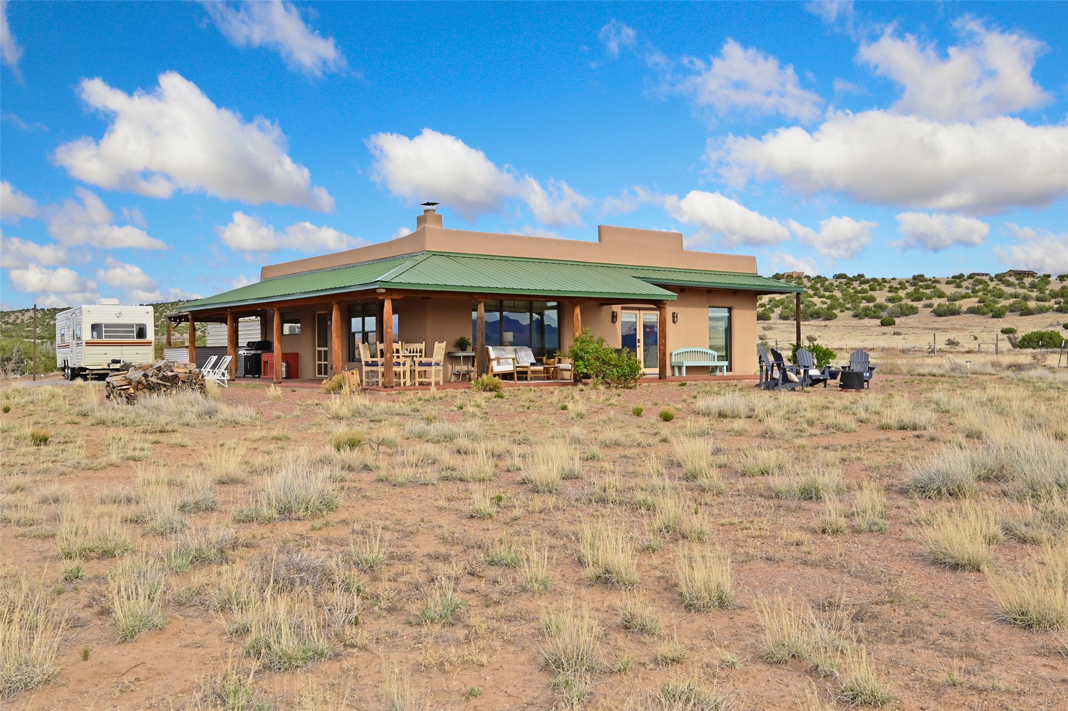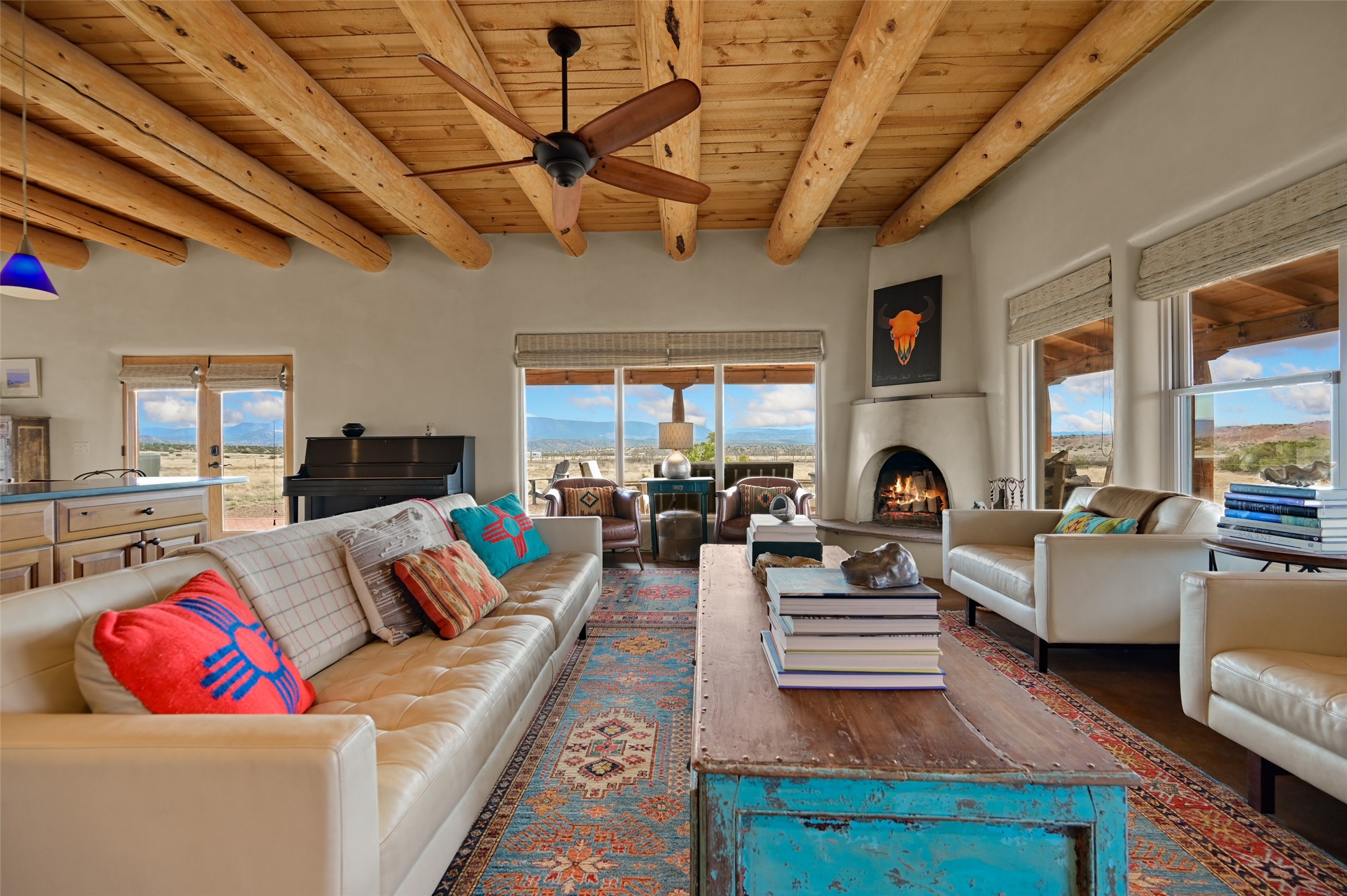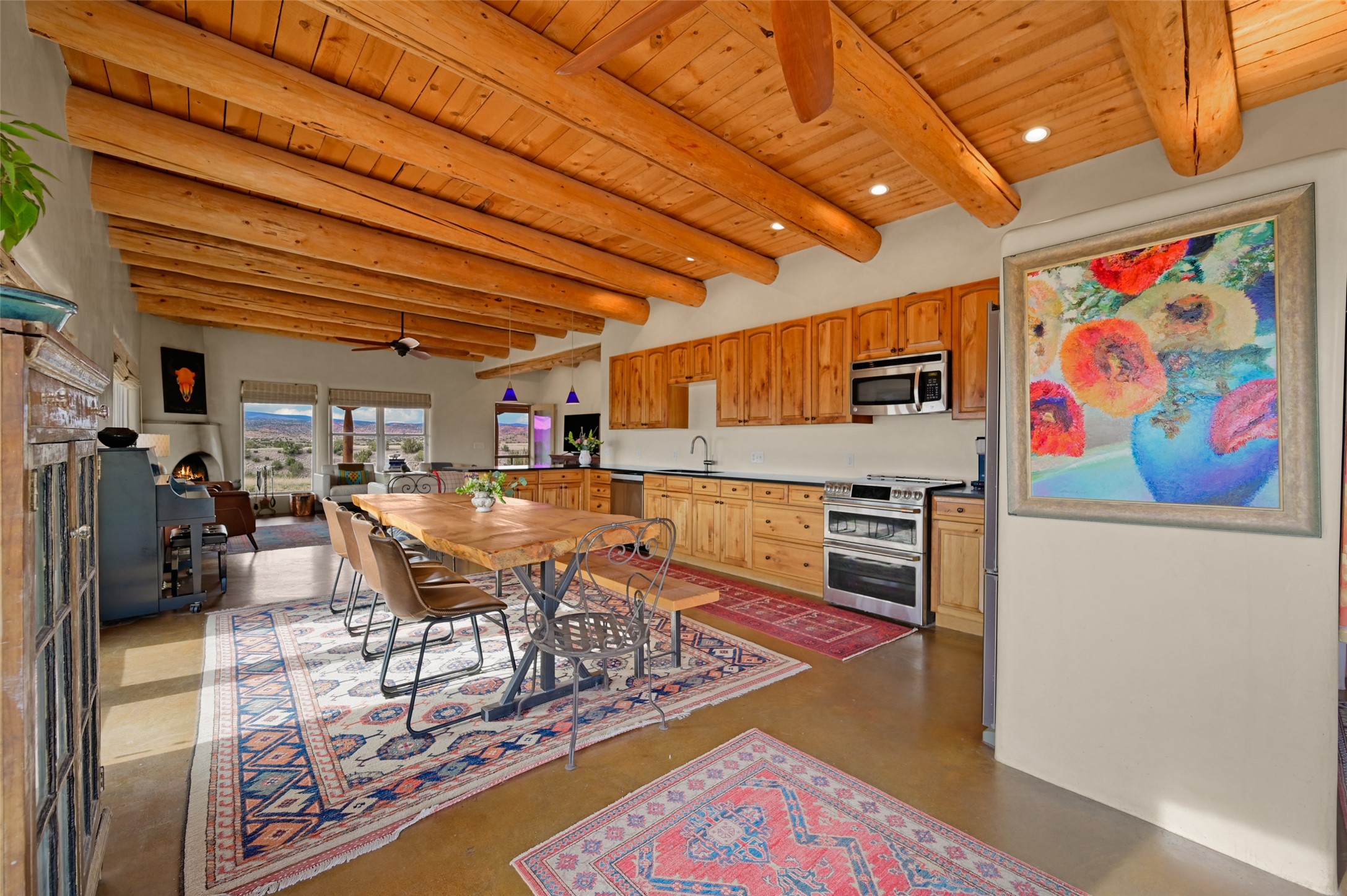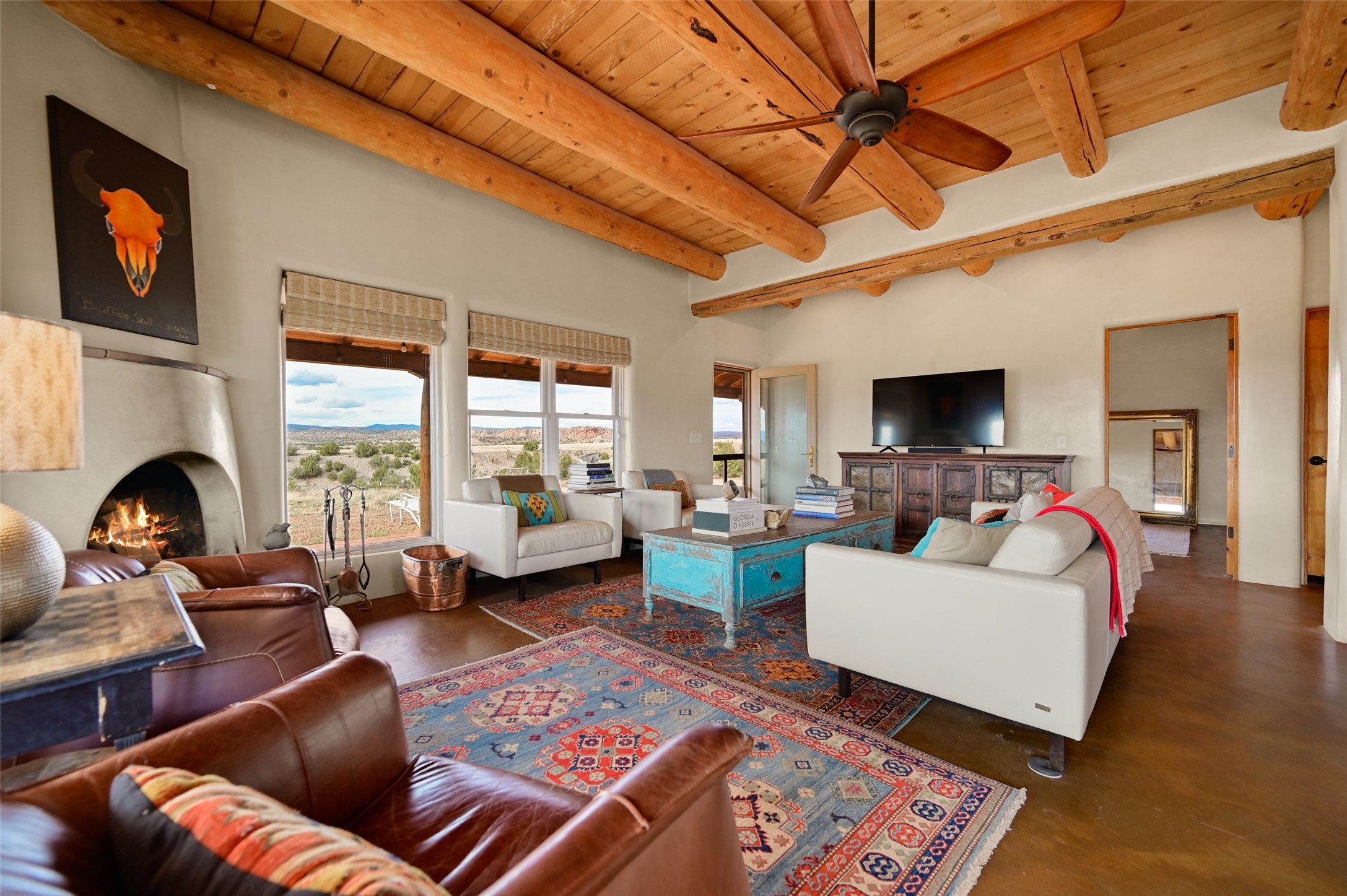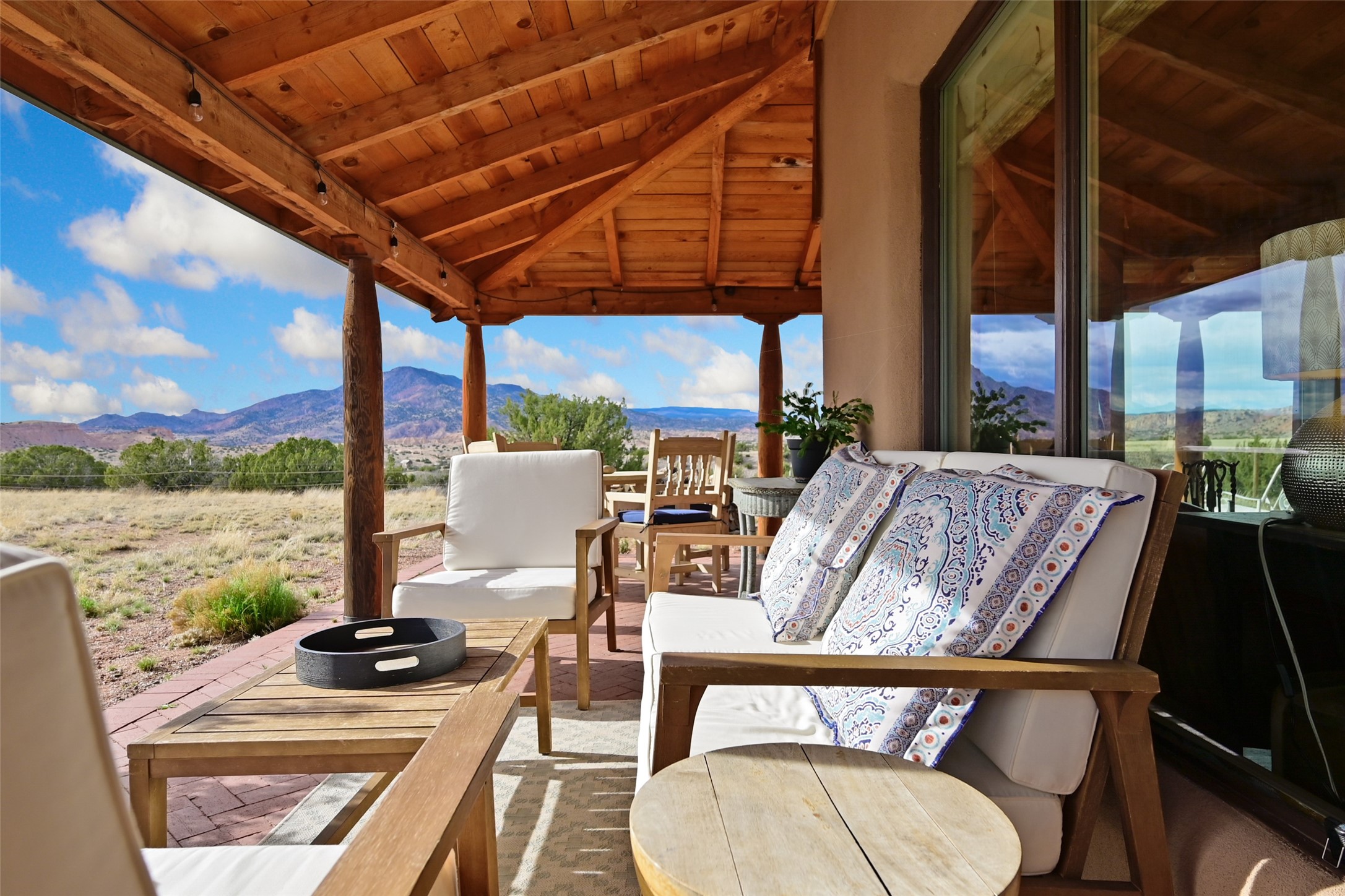 Imagine waking to endless skies, where soft morning light stretches across the high desert and the only sounds are the breeze and distant birds. This is a place of deep solitude and quiet inspiration, a landscape that invites reflection, creativity, and possibility. Days unfold slowly under vast blue skies with drifting white clouds, and evenings settle into unforgettable sunsets, with the silhouette of Pedernal Mountain glowing in the distance. At night, the stars take over, offering a front-row seat to the cosmos. This is more than a home, it's an experience of living fully immersed in the spirit of Abiqui, a place long cherished by artists like Georgia O'Keeffe. Set on 2.23 acres, this well-maintained 2-bedroom, 2-bath residence offers both comfort and character. In addition to to breathtaking views, the home is thoughtfully appointed with stone countertops, stainless steel appliances, and an induction cooktop, blending modern convenience with a timeless Southwestern feel. Large picture windows expertly frame picturesque vistas from room to room. A covered portal extends the living space outdoors The property includes a converted barn now serving as an artist studio, an inspiring space create surrounded by natural beauty. The studio is equipped with an unfinished bath and kitchenette, with all materials included to complete the vision. Additional features include versatile barn with a loft, roll-up door, and concrete floor, as well as additional hay storage. The property also includes a trailer that can convey with the sale, along with materials needed to finish it into guest accommodations or additional living space, offering excellent flexibility and potential. Located near Abiquiu Lake, Ghost Ranch, Plaza Blanca, and Poshuouinge Ruins, the property offers access to some of the Southwest's most iconic landscapes, along with local shops and dining in the Abiqui area. Whether you're seeking a creative sanctuary, a peaceful escape, or a place to live in harmony with the land, 4 Fair Hope Drive offers an extraordinary opportunity to step into a lifestyle defined by beauty, space, and inspiration.