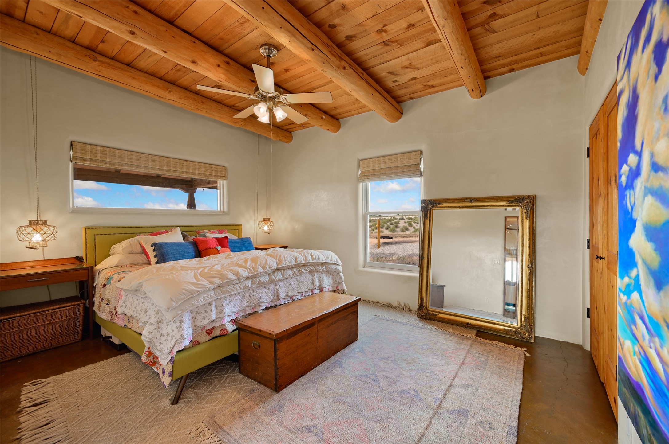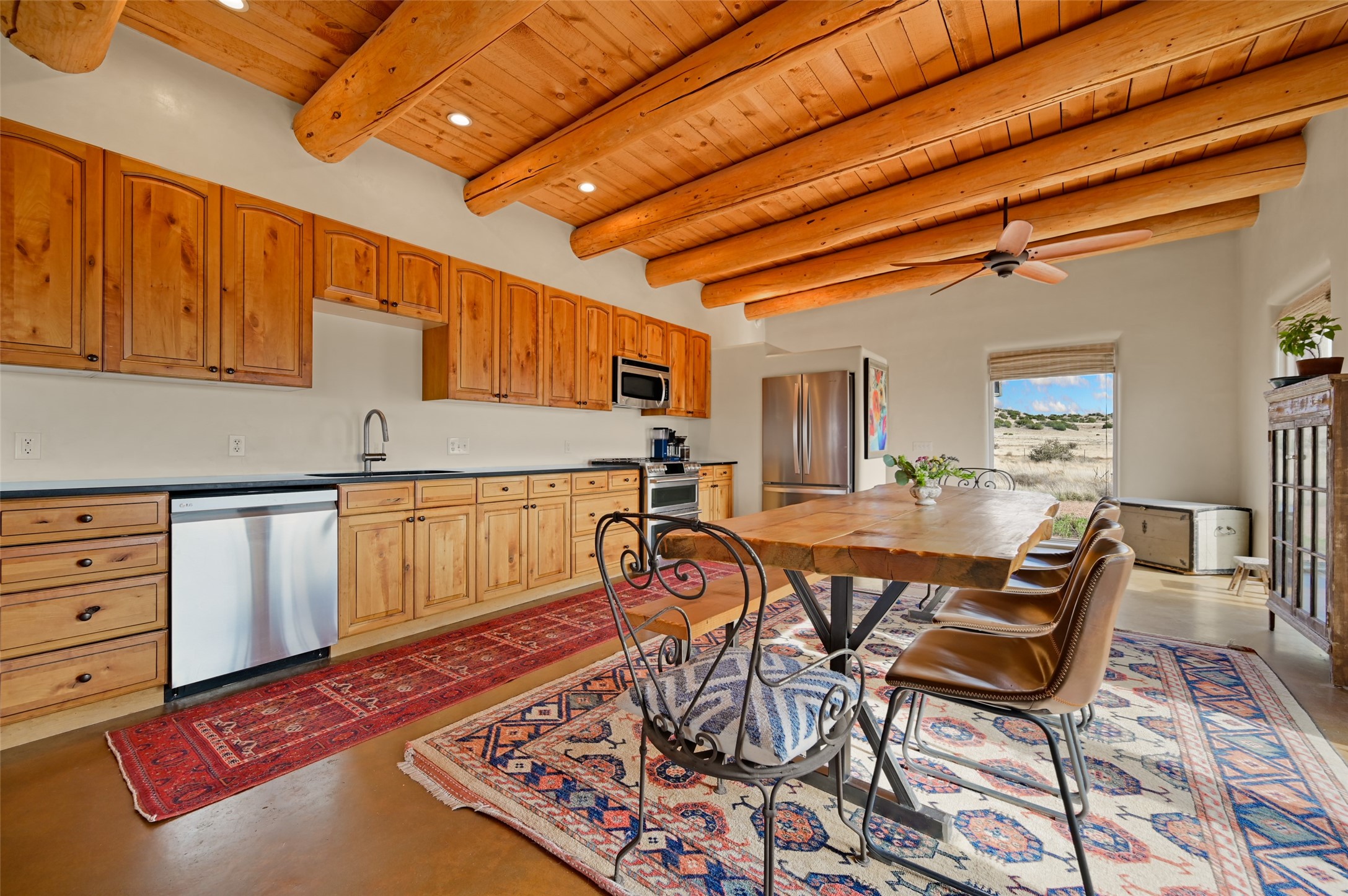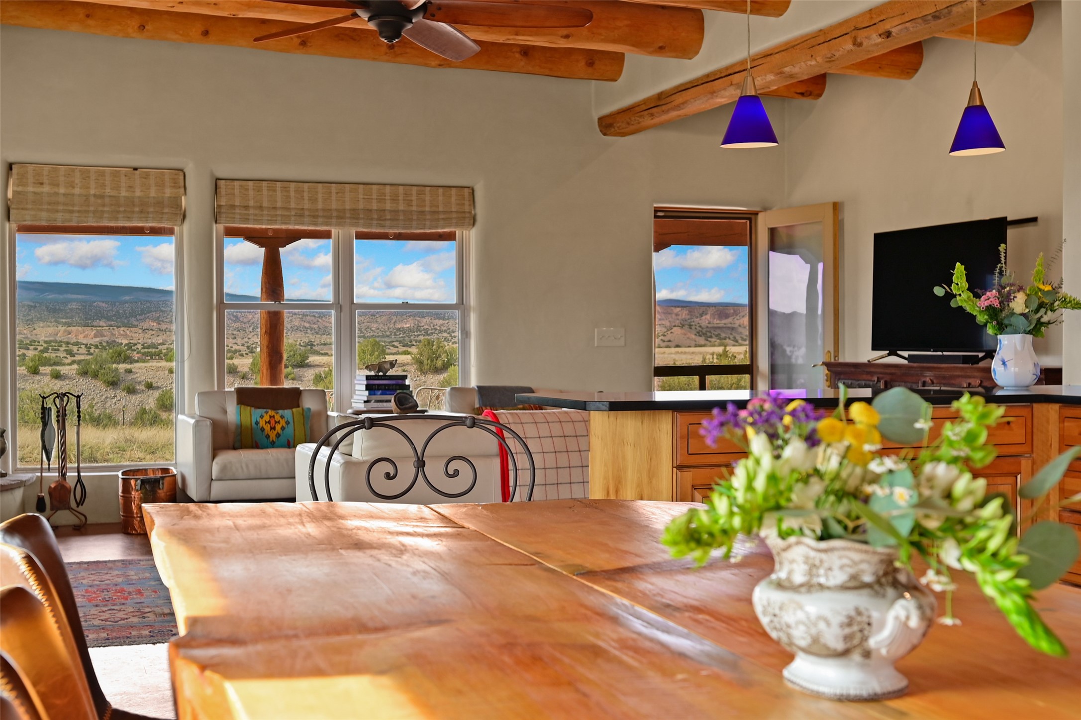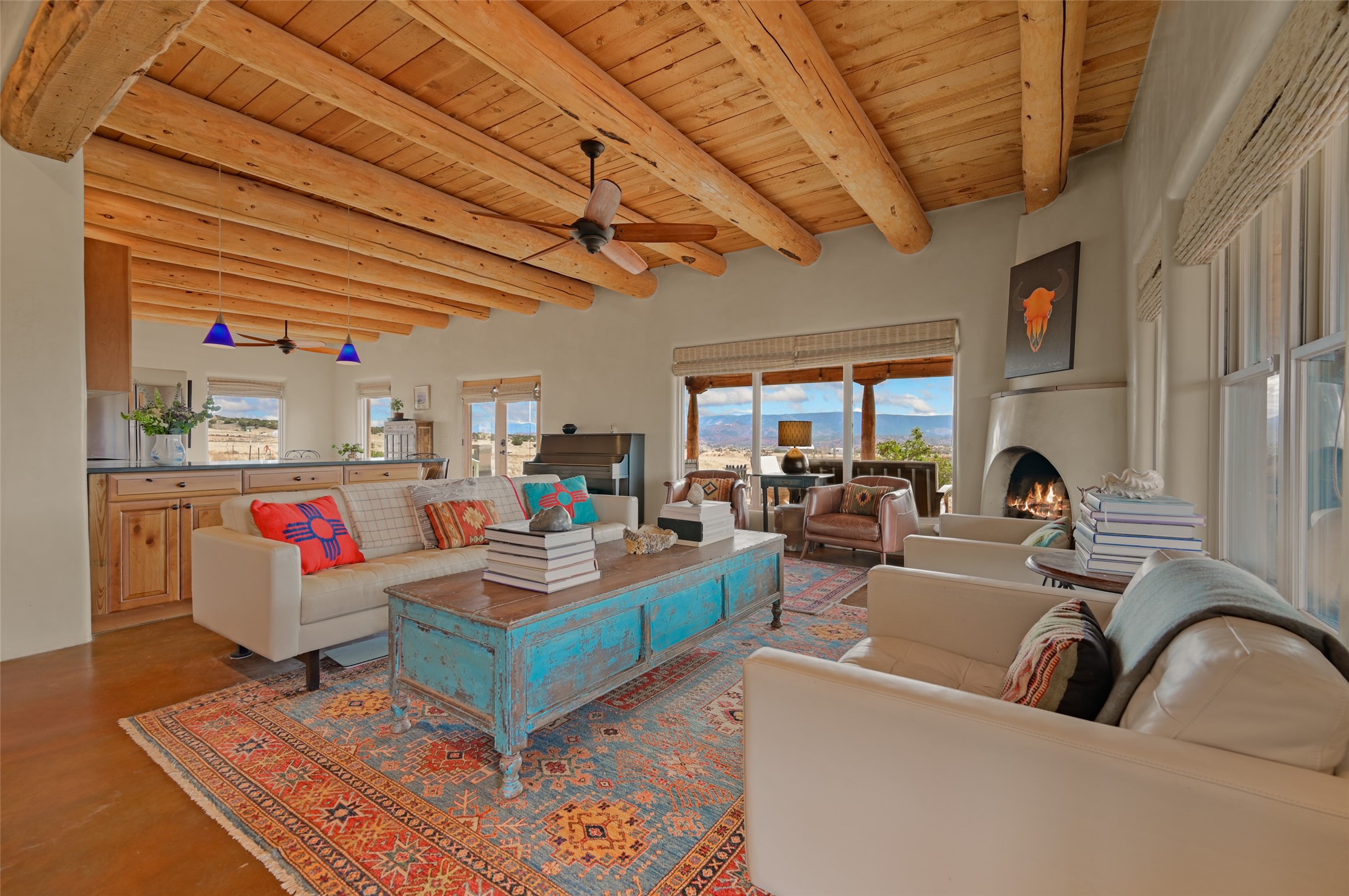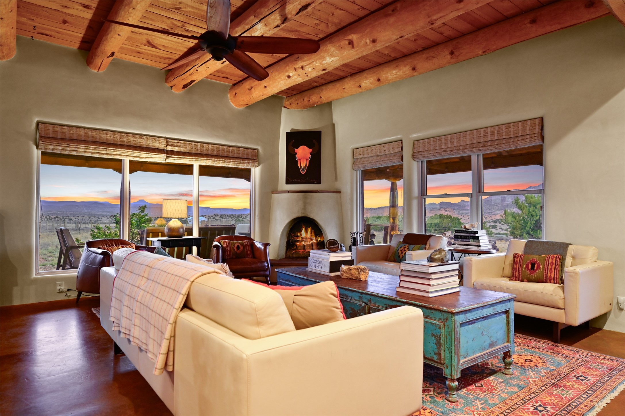 Imagine waking to endless skies, where soft morning light stretches across the high desert and the only sounds are the breeze and distant birds. This is a place of deep solitude and quiet inspiration, a landscape that invites reflection, creativity, and possibility. Days unfold slowly under vast blue skies with drifting white clouds, and evenings settle into unforgettable sunsets, with the silhouette of Pedernal Mountain glowing in the distance. At night, the stars take over, offering a front-row seat to the cosmos. This is more than a home, it's an experience of living fully immersed in the spirit of Abiqui, a place long cherished by artists like Georgia O'Keeffe. Set on 2.23 acres, this well-maintained 2-bedroom, 2-bath residence offers both comfort and character. In addition to to breathtaking views, the home is thoughtfully appointed with stone countertops, stainless steel appliances, and an induction cooktop, blending modern convenience with a timeless Southwestern feel. Large picture windows expertly frame picturesque vistas from room to room. A covered portal extends the living space outdoors The property includes a converted barn now serving as an artist studio, an inspiring space create surrounded by natural beauty. The studio is equipped with an unfinished bath and kitchenette, with all materials included to complete the vision. Additional features include versatile barn with a loft, roll-up door, and concrete floor, as well as additional hay storage. The property also includes a trailer that can convey with the sale, along with materials needed to finish it into guest accommodations or additional living space, offering excellent flexibility and potential. Located near Abiquiu Lake, Ghost Ranch, Plaza Blanca, and Poshuouinge Ruins, the property offers access to some of the Southwest's most iconic landscapes, along with local shops and dining in the Abiqui area. Whether you're seeking a creative sanctuary, a peaceful escape, or a place to live in harmony with the land, 4 Fair Hope Drive offers an extraordinary opportunity to step into a lifestyle defined by beauty, space, and inspiration.