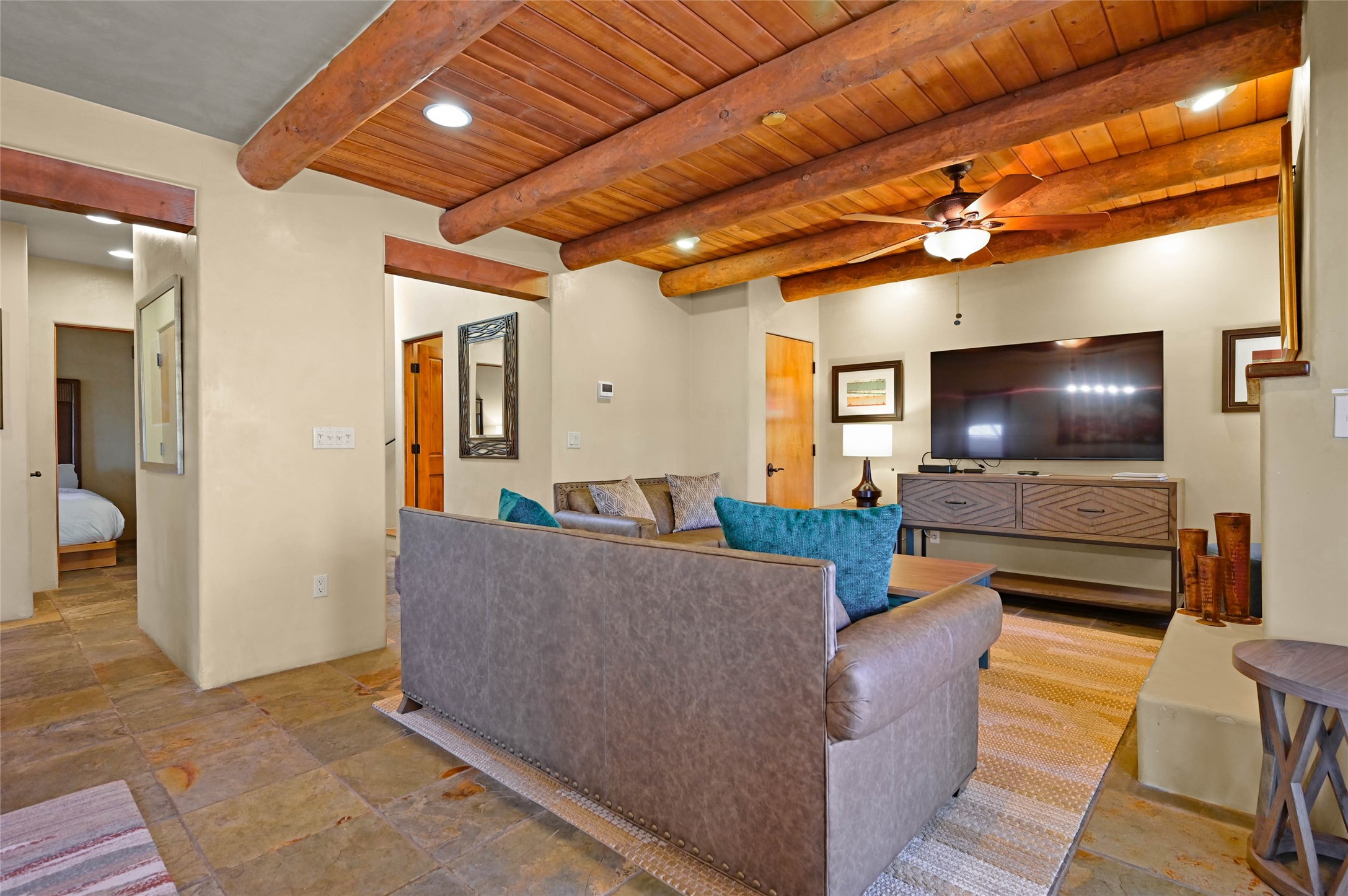 Amazing opportunity: this spacious 1,850 sq ft residence is priced the same as smaller units currently on the market--don't miss out! This is the only 3-bedroom unit available in El Corazon for fractional ownership, offering exceptional space and value just a 5-minute walk to the Historic Santa Fe Plaza, restaurants, galleries, and shopping. Own a fractional share of this beautifully appointed 3-bedroom, 2.5-bath townhome. Not a timeshare--this is deeded real estate.Owners receive 4 guaranteed weeks per year, plus additional weeks based on availability, and may share their time with friends and family. The HOA covers property taxes, insurance, utilities, and full maintenance, including furnishings, appliances, on-site staff, and gated parking. Community amenities include a fitness gym and outdoor BBQ area, making this a convenient and effortless way to enjoy Santa Fe.