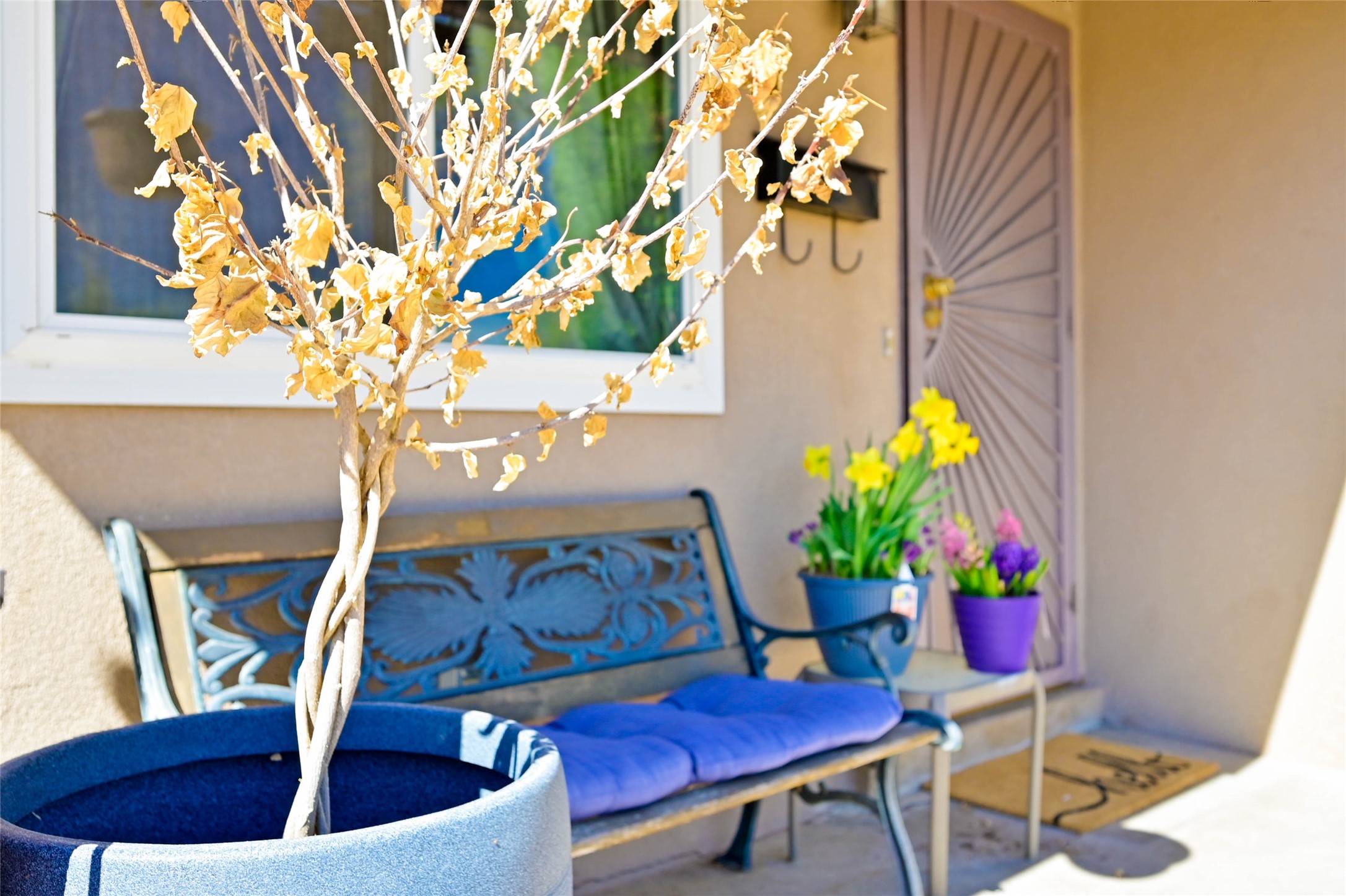 This 1,600 sq ft. residence offers a practical, versatile layout designed for modern living. Featuring 3 bedrooms, a full bathroom, and a convenient powder room, the home is anchored by a bright floor plan that flows naturally from room to room. A major highlight is the professionally converted garage with a fireplace. Outside, the property features a dedicated patio area shaded by a custom, hand-covered wood awning. This unique architectural detail creates a comfortable, private setting for outdoor dining, relaxing, or hosting friends.