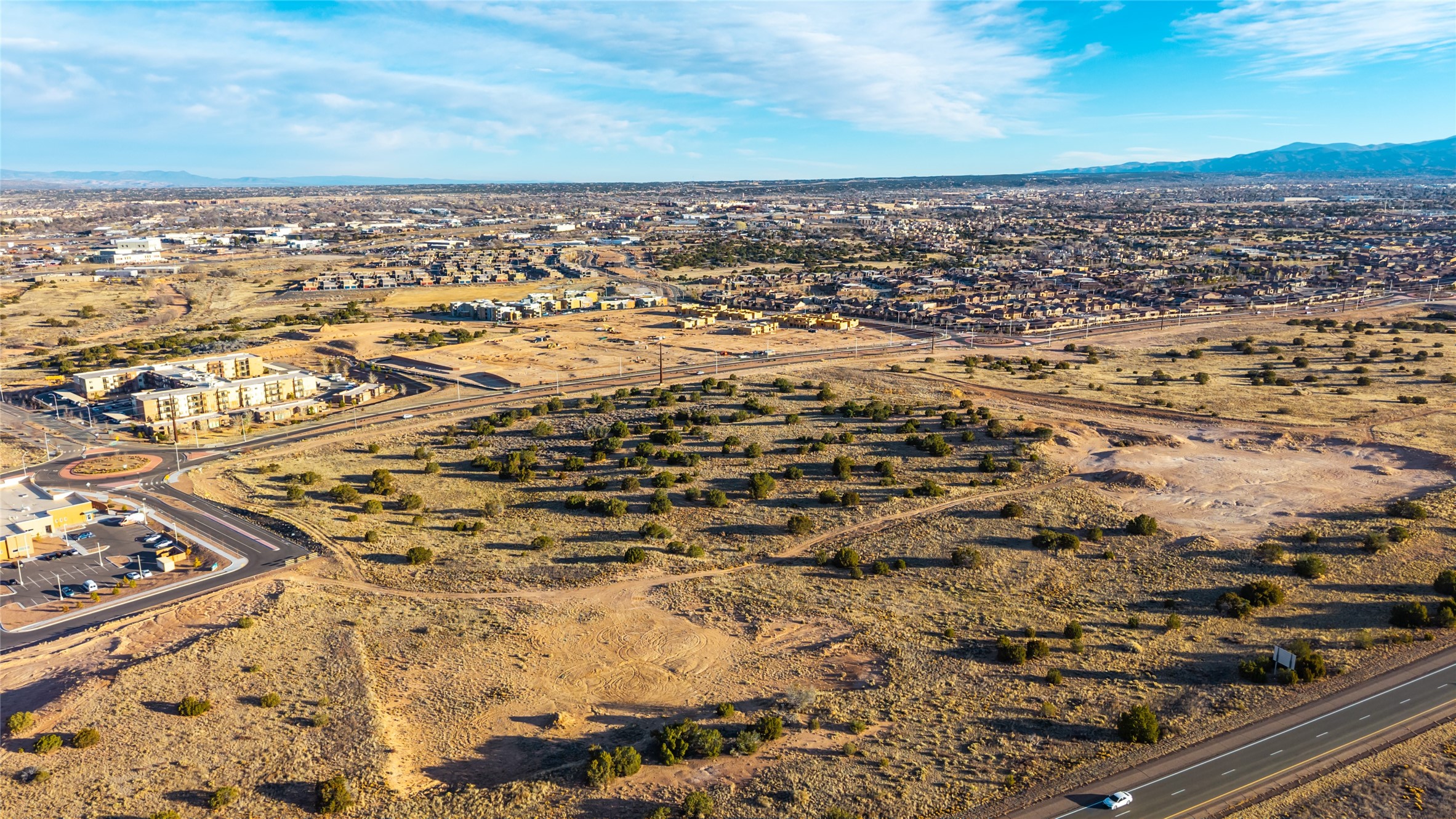 Commercial development parcel available for sale in Las Soleras, a master-planned mixed-use community located in one of Santa Fe's fastest growing commercial corridors. The sites are positioned near Beckner Road, Cerrillos Road, and State Road 599, with convenient access to Interstate 25, providing excellent connectivity throughout Santa Fe and northern New Mexico. The properties are located near major regional anchors including Christus St. Vincent Regional Medical Center, the VA Medical Center, Super Walmart, and Santa Fe Place Mall, placing them within Santa Fe's primary retail, healthcare, and service district. Parcel is zoned C-2 Commercial, allowing a wide range of uses including retail, office, medical, financial, multifamily residential, educational, recreational, and religious facilities, among others. The sites feature gently rolling terrain suitable for a variety of development concepts. City water, sewer, and electricity are available along Beckner Road, making these parcels ready for near-term development. Parcels 20, 25, and 26 are offered together in bulk price, and each parcel is also available for purchase individually. Las Soleras offers developers the opportunity to build in a growing area of Santa Fe supported by strong healthcare, retail, and residential demand with excellent regional access.