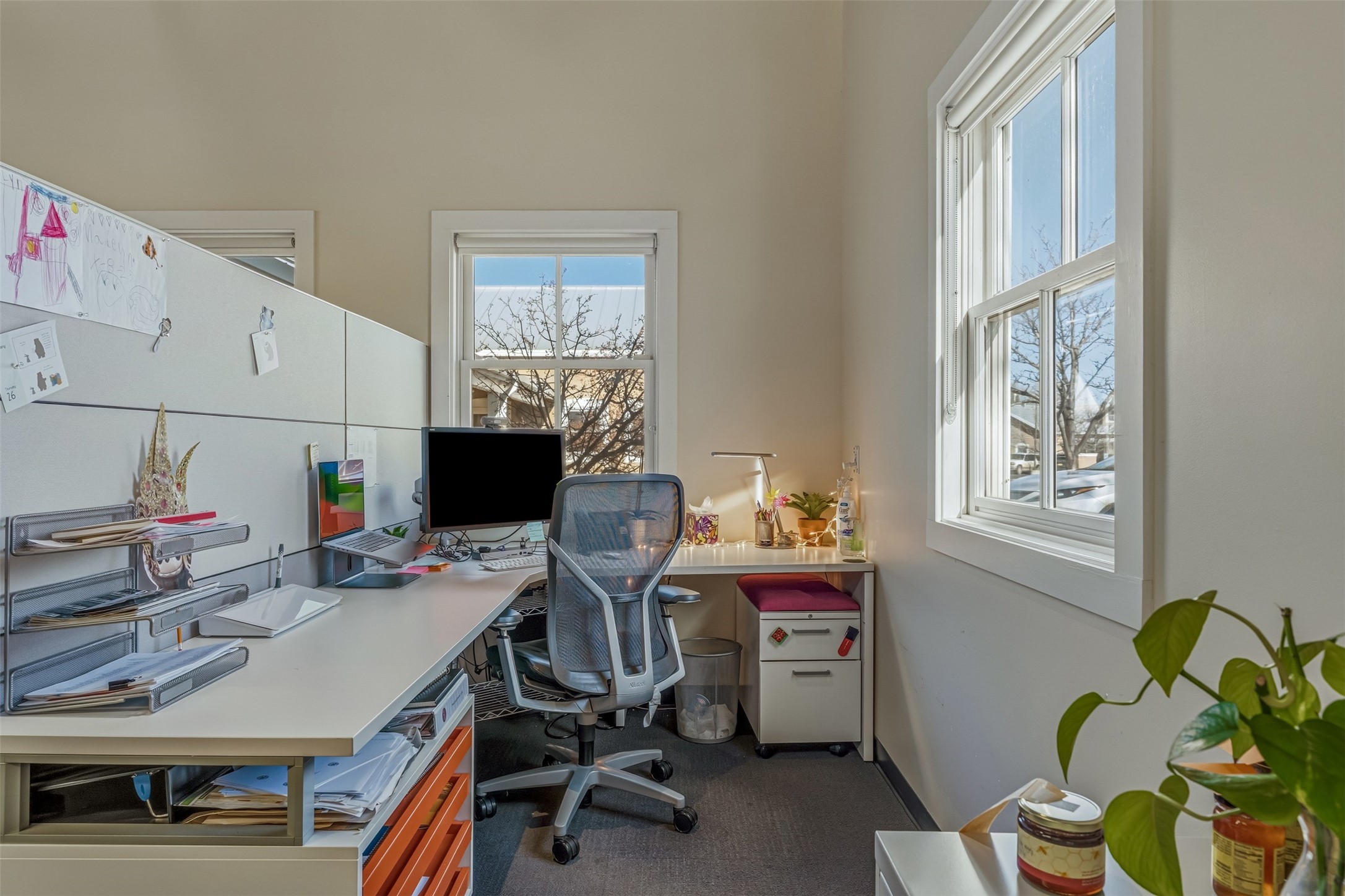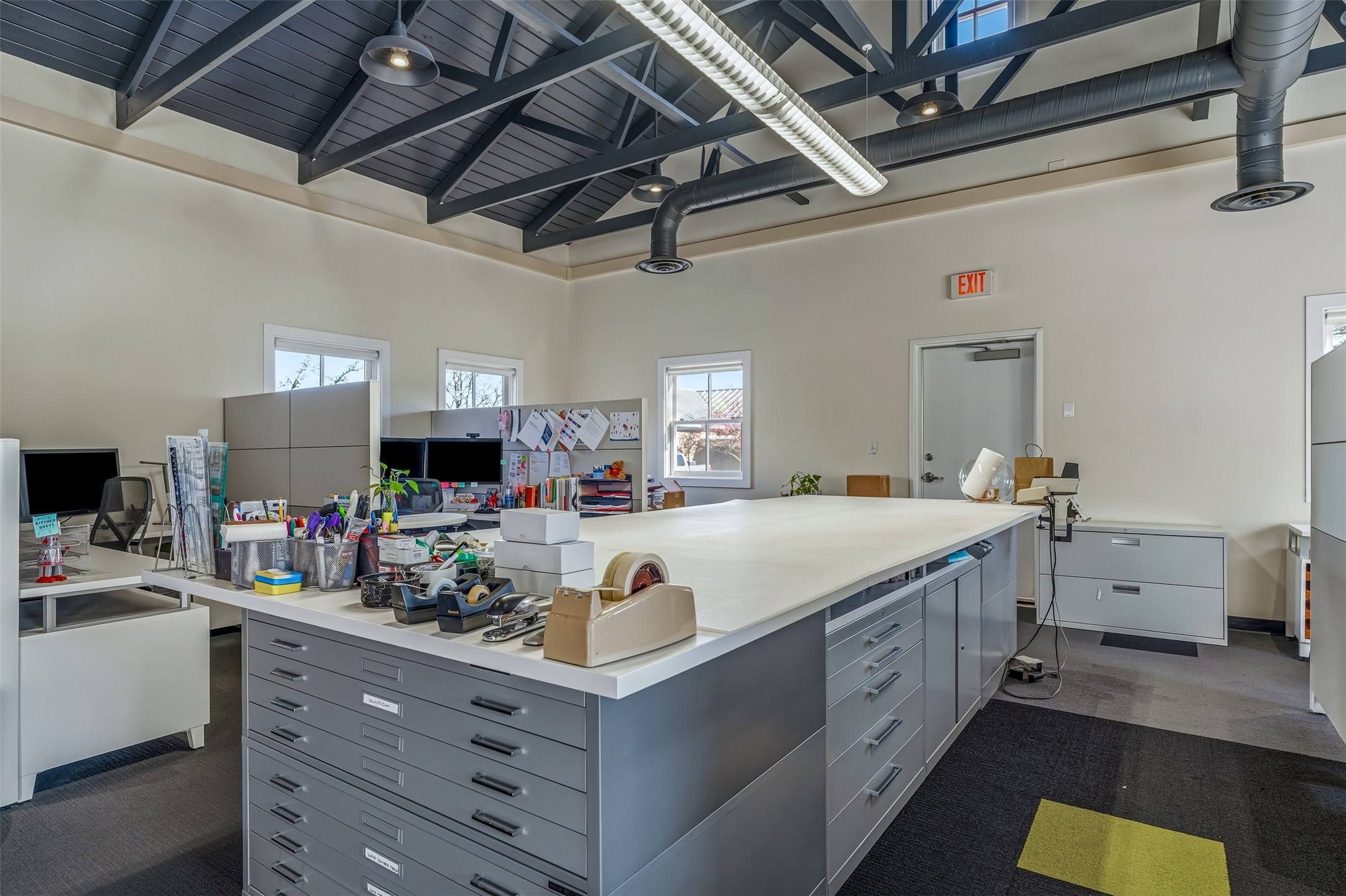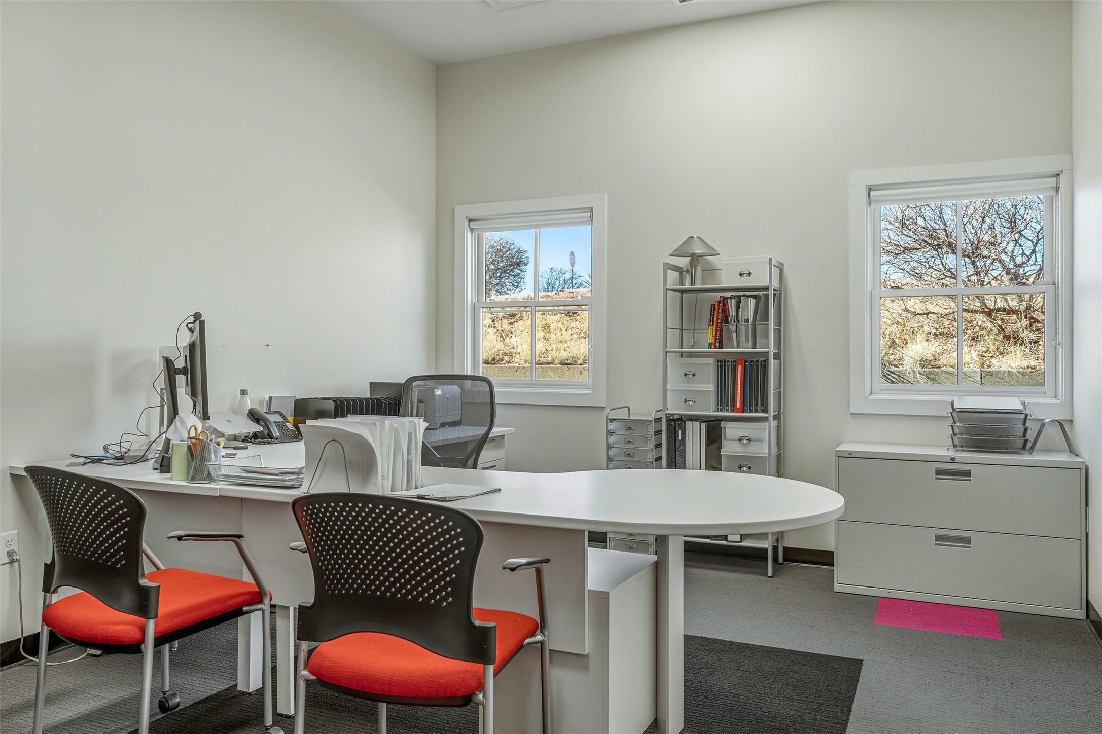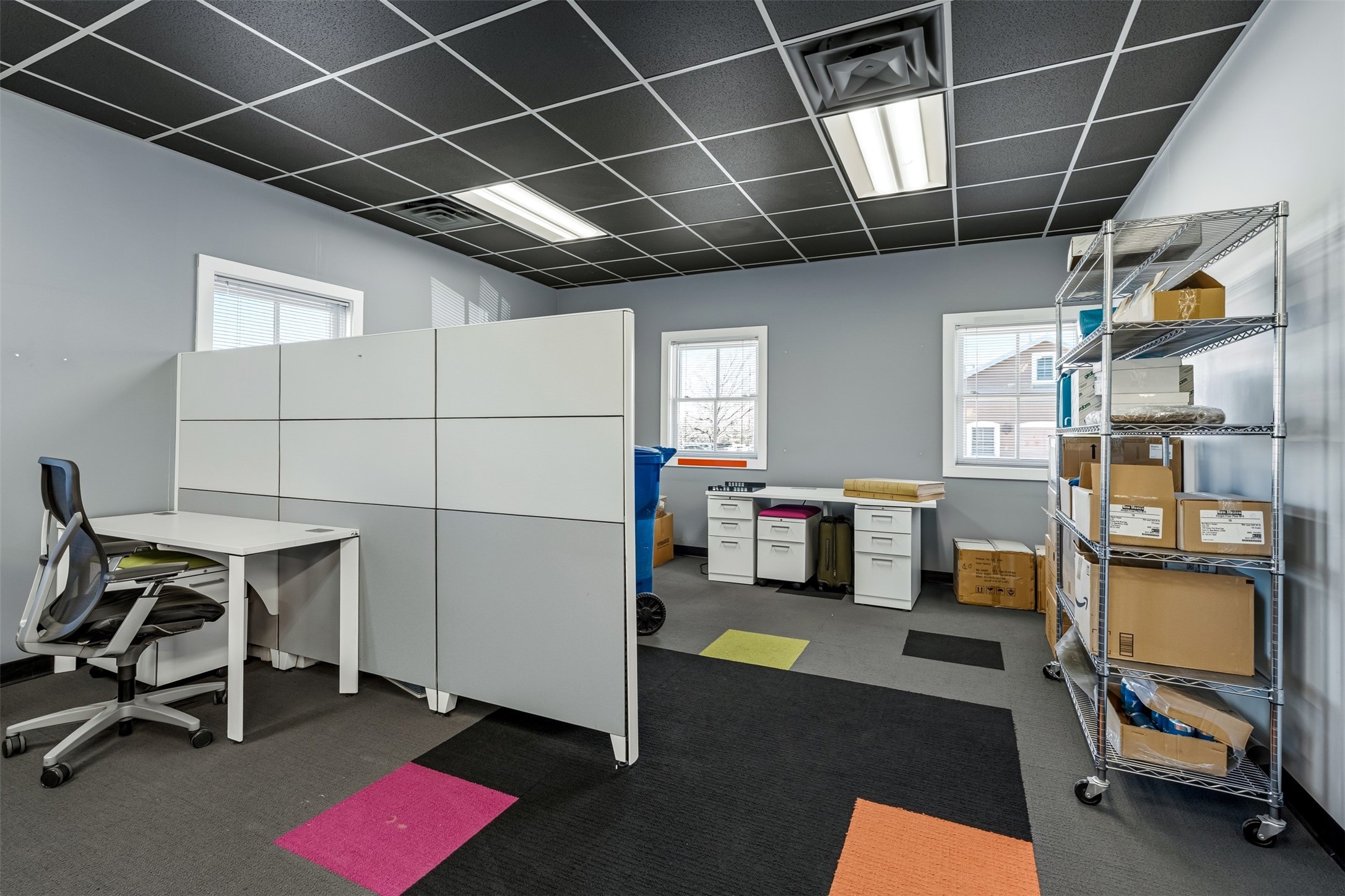 Standalone office building for sale for the first time! This single level office suite features a striking and modern interior designed to make a strong first impression. The space opens into a stylish reception area with polished concrete floors, exposed structural ceilings, and contemporary lighting that creates a bright and creative atmosphere. A curved reception desk anchors the entry, while large openings lead to collaborative meeting spaces, kitchen, conference room and private offices. The layout offers a functional blend of reception, private offices, and open workspace areas, complemented by vibrant design accents and ample natural light. With ADA-accessible entry and convenient ground-floor access, the suite provides excellent usability for clients and staff alike. Ideal for creative, tech, marketing, or professional office users seeking a distinctive and highly accessible workplace. Plenty of parking and an easily accessible in the Rodeo Park Commercial Condominium Business Park! Currently Owner Occupied. Condo dues are $2,048.18/ Quarter and cover exterior maint., master insurance, refuse, parking lot. Owner responsible for their own roof, stucco and HVAC maint. Parking lot was resurfaced in 2025.
