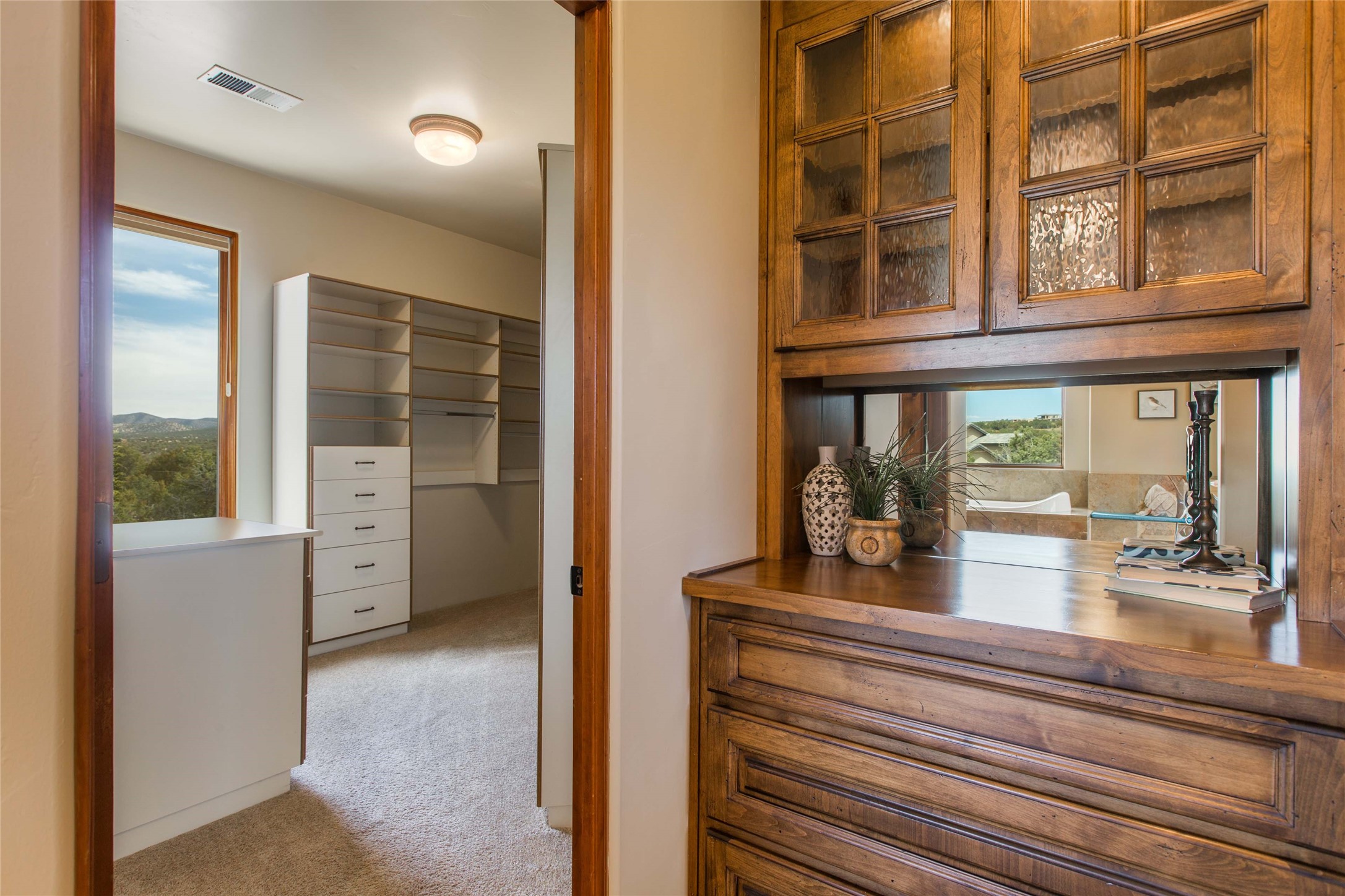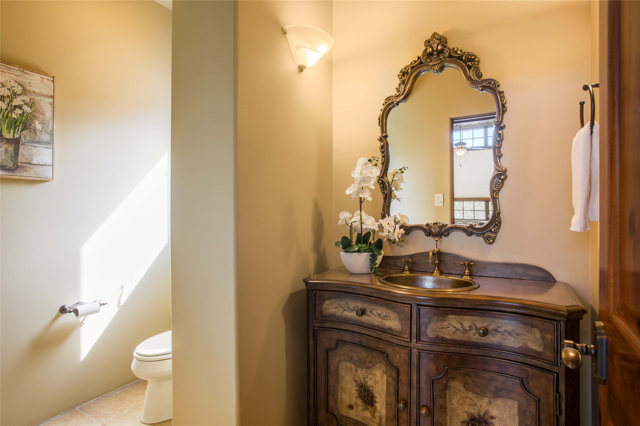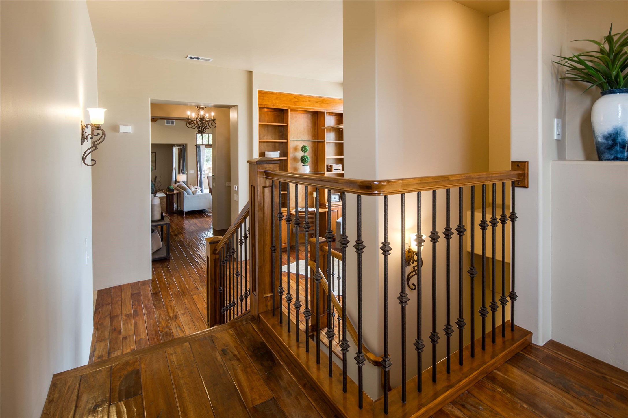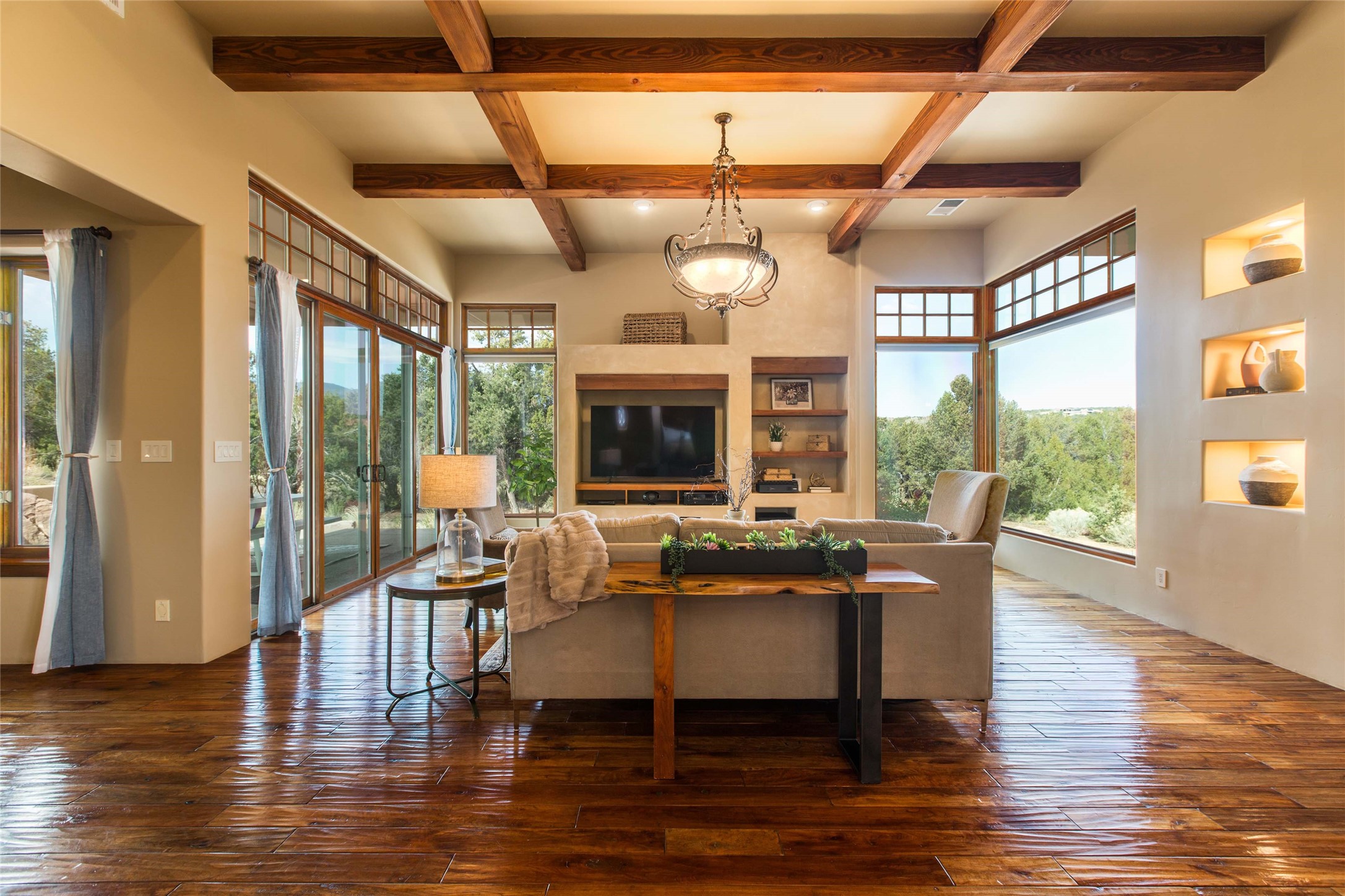 OPEN HOUSE 3-15 from 2-4pm. The outside and the inside meet in this superb warm Contemporary design. Wood, stone and glass elements and views from every room. Custom Harwell home; nestled in Paa-Ko with breathtaking Sandia and Placer Mountain views. Soaring ceilings with elegant wood beams, striking travertine accent walls, a multi-sided gas fireplace, and hand-scraped cherry hardwood floors. The gourmet kitchen boasts custom knotty alder cabinetry, and Wolf & Subzero pro-style appliances. Elegant dining room flanked by a fireplace one one side and large windows on the other is an inviting space and is separated from the kitchen by a convenient wet bar. Plush primary suite, in its own wing for ultimate privacy, offers a coffee bar, gas fireplace, sitting rm,spa-like bath, and private balcony. A gorgeous library features custom wood floor-to-ceiling shelving makes an excellent office. Two additional bedrooms on the opposite side of the home with a large full bath between. Enchanting outdoor spaces include a covered patio, courtyard, nature trail, and water features. Oversized 3-car garage. Owned Solar. The Paa-Ko community features a renowned golf course and a golf club with beautifully situated restaurant overlooking the course with the pond and mountains in the background. Additionally, there is a community pool, tennis courts and clubhouse. All of these amenities are within walking distance of the home. Living in this home is truly living New Mexico.